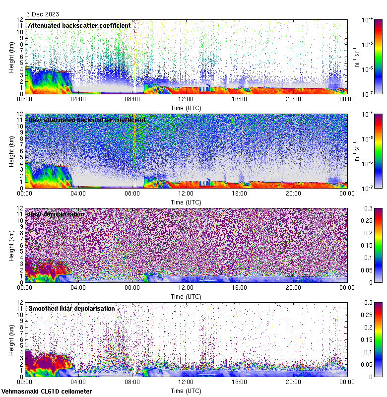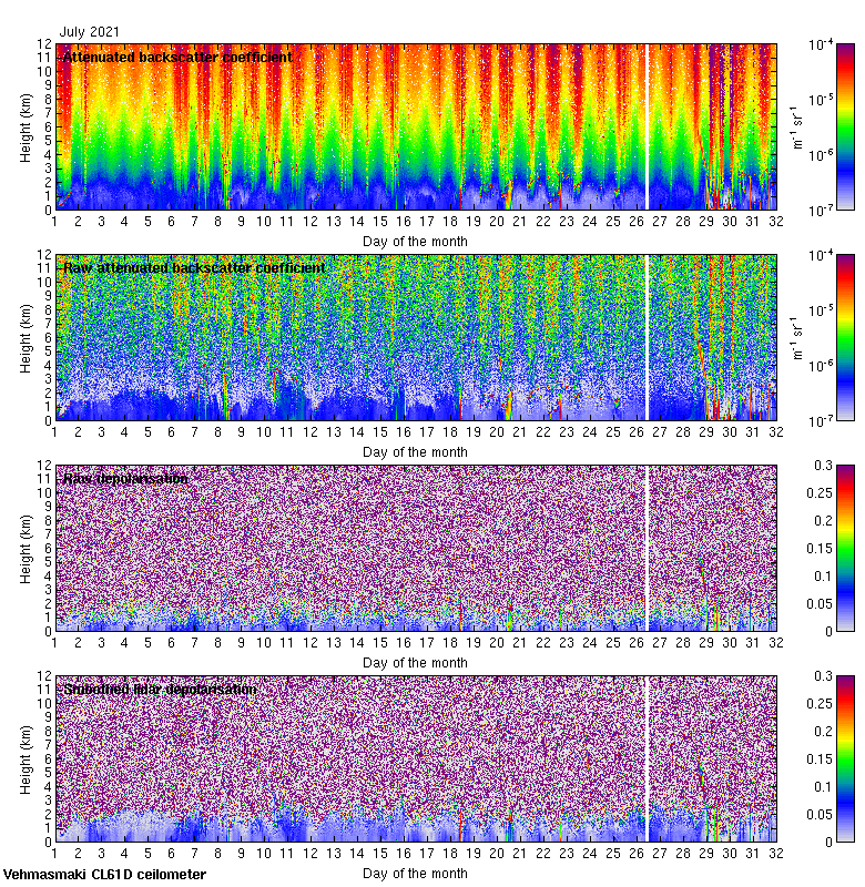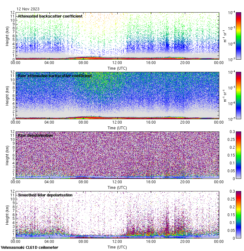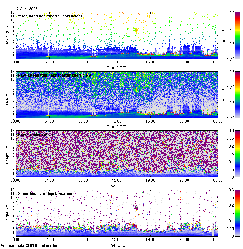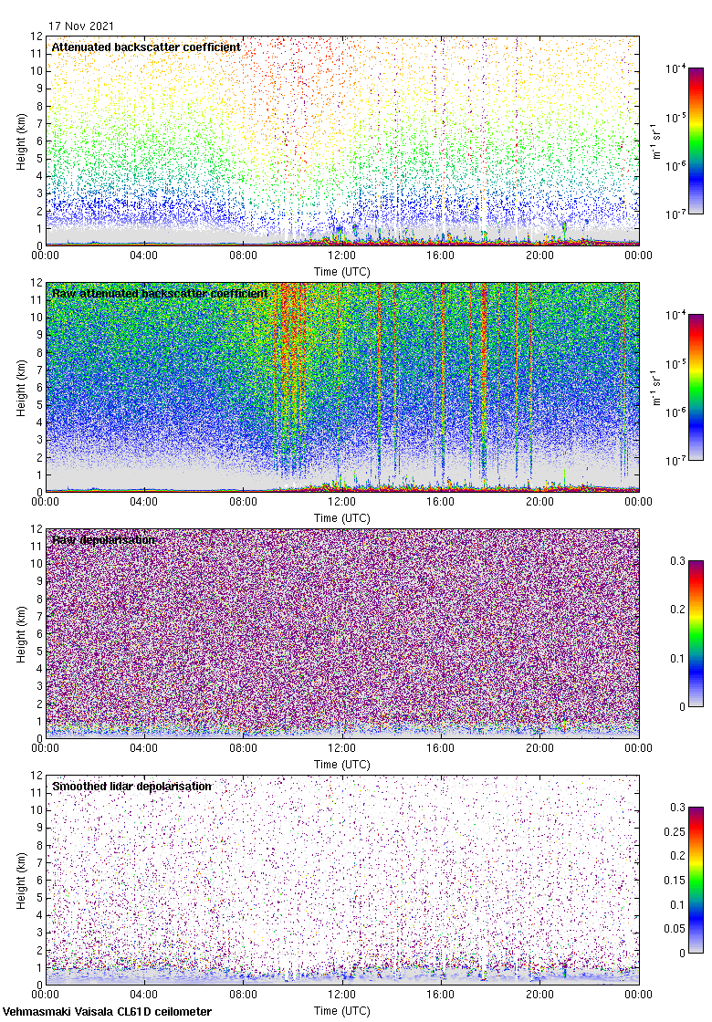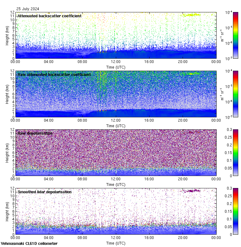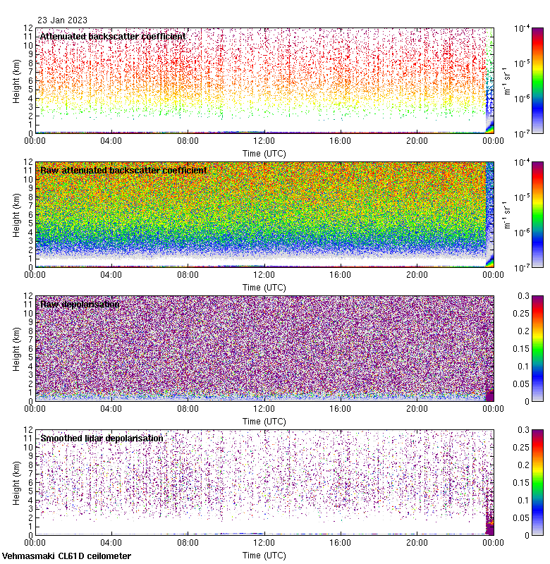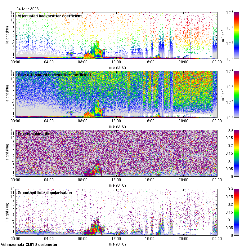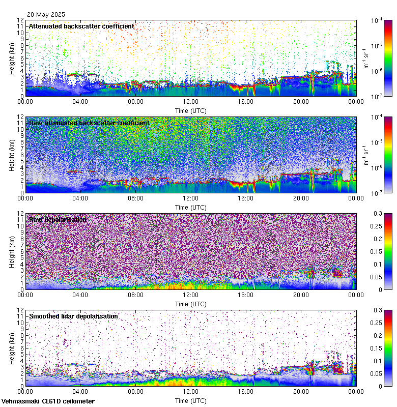 This page contains links to the daily Vehmasmaki Vaisala CL61D ceilometer images created at Kumpula.