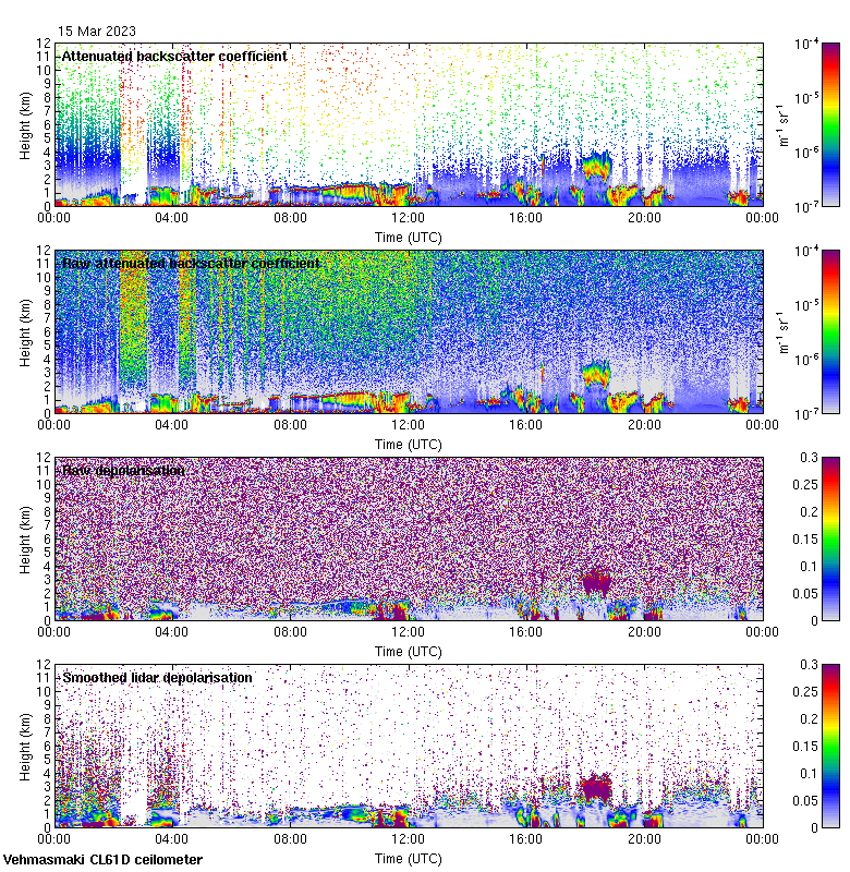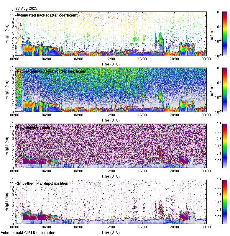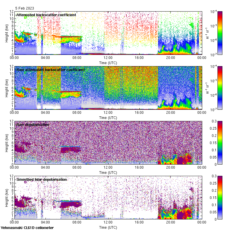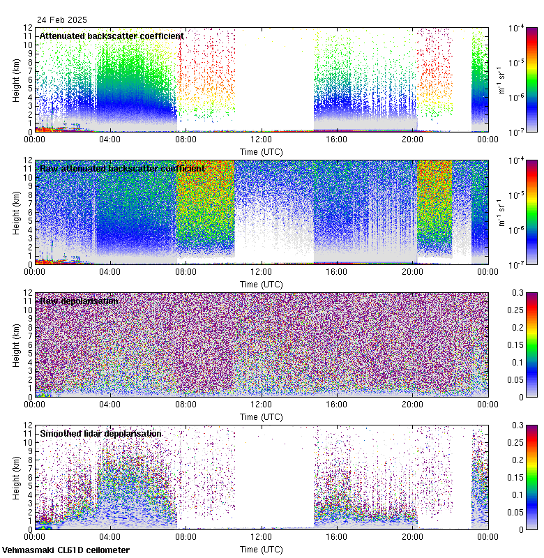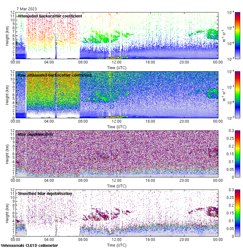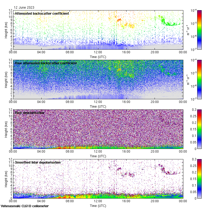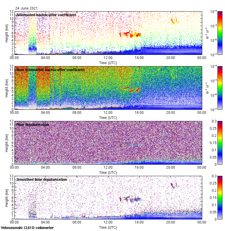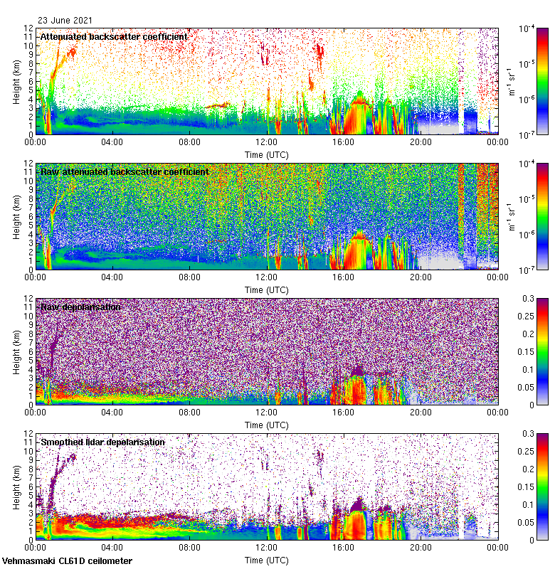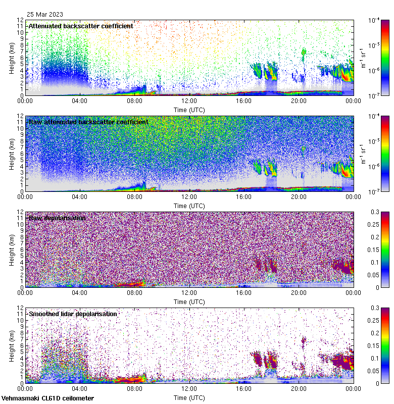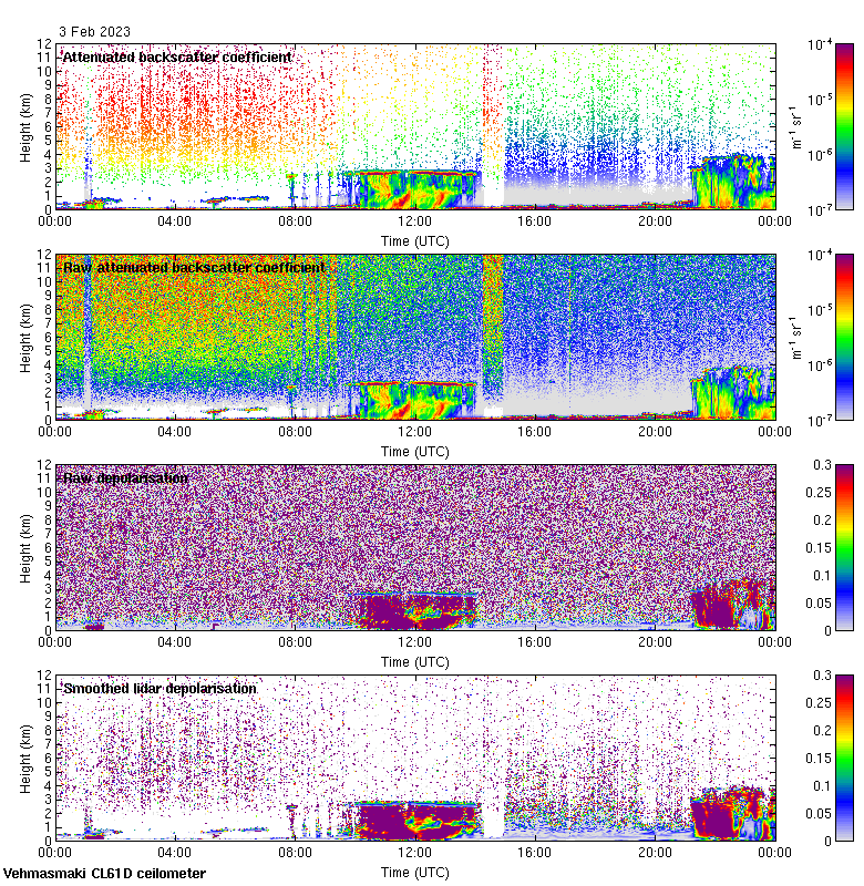 This page contains links to the daily Vehmasmaki Vaisala CL61D ceilometer images created at Kumpula.