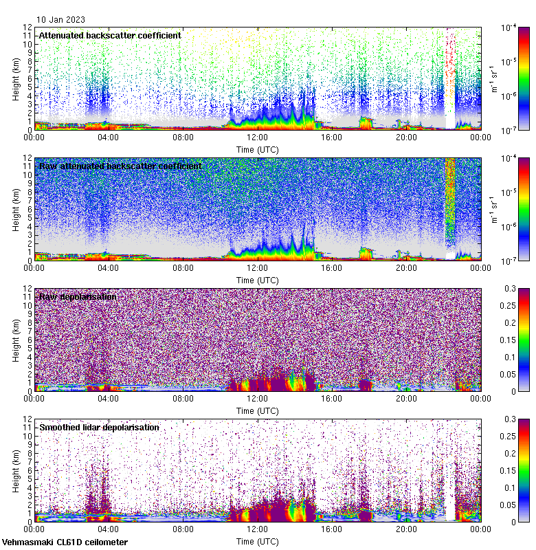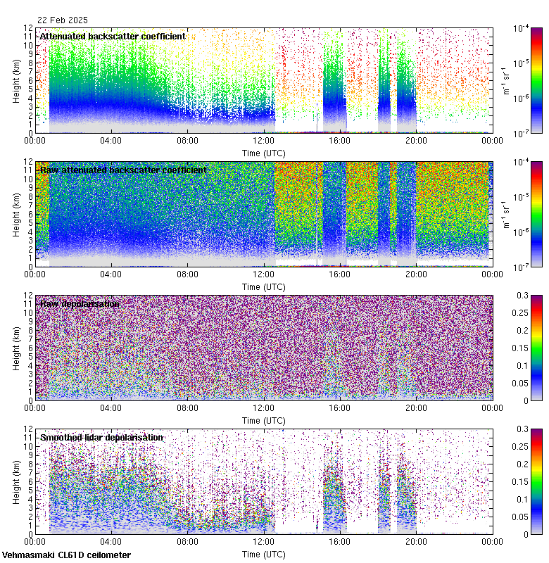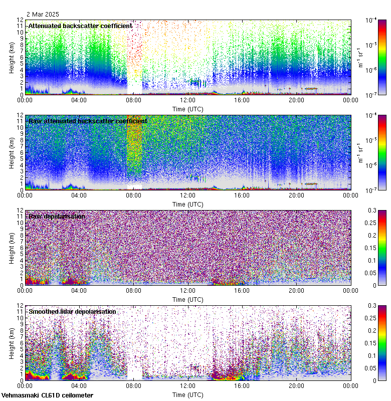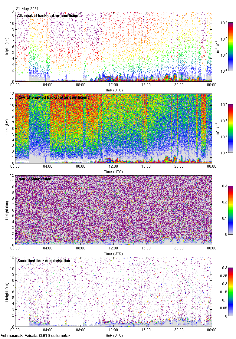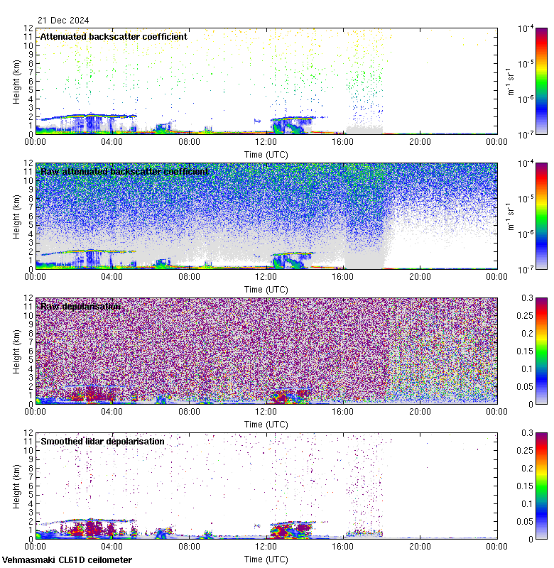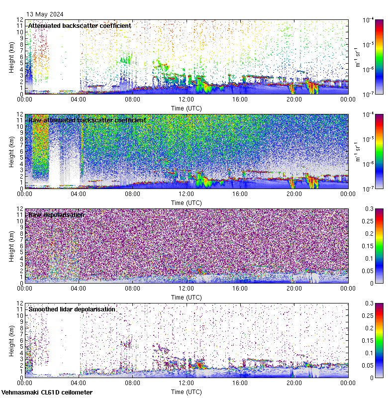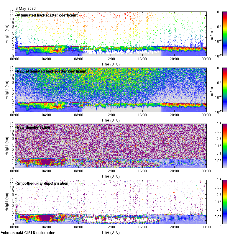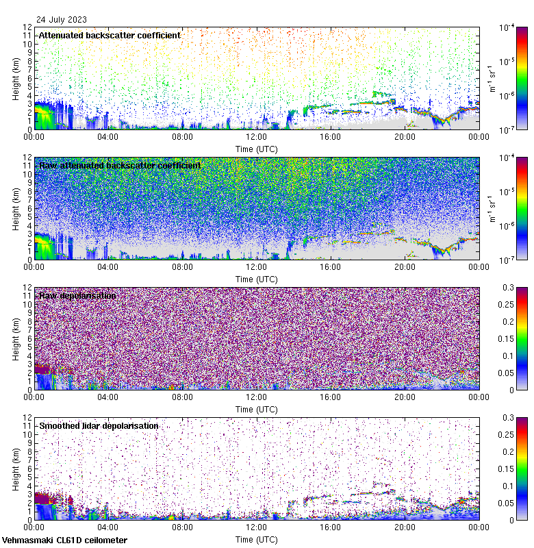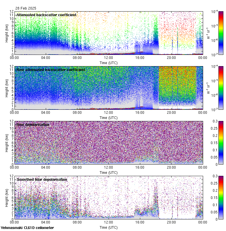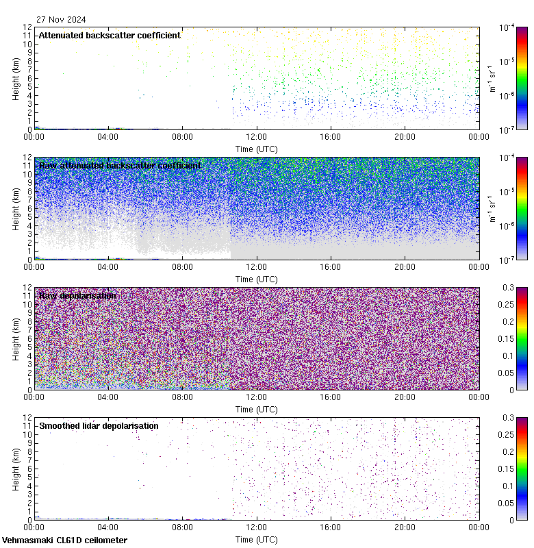This page contains links to the daily Vehmasmaki Vaisala CL61D ceilometer images created at Kumpula.
