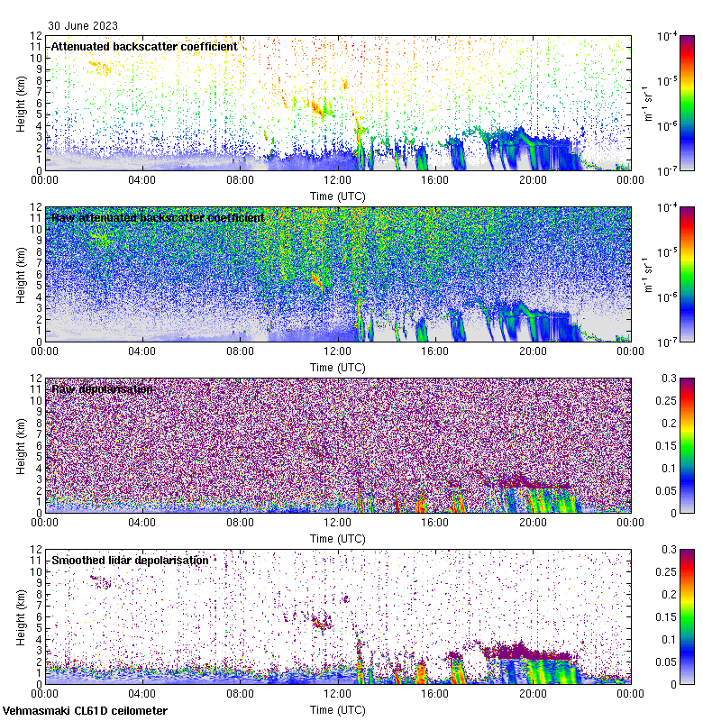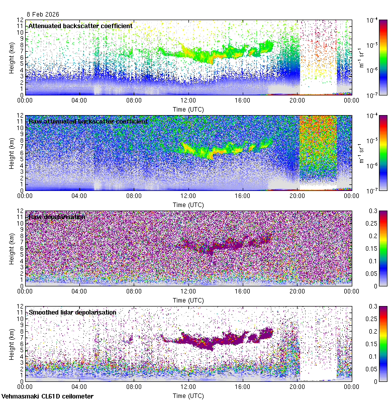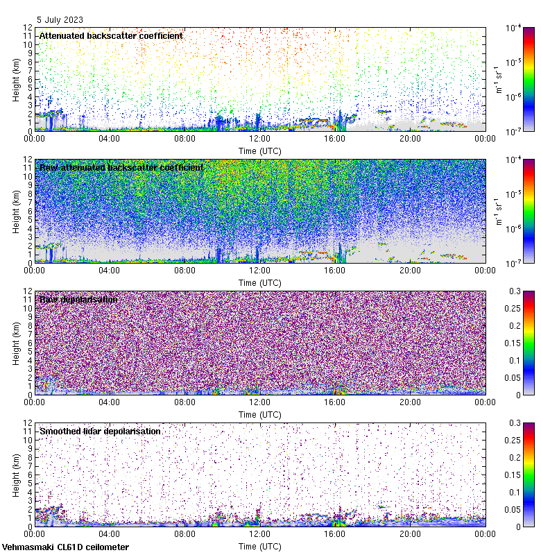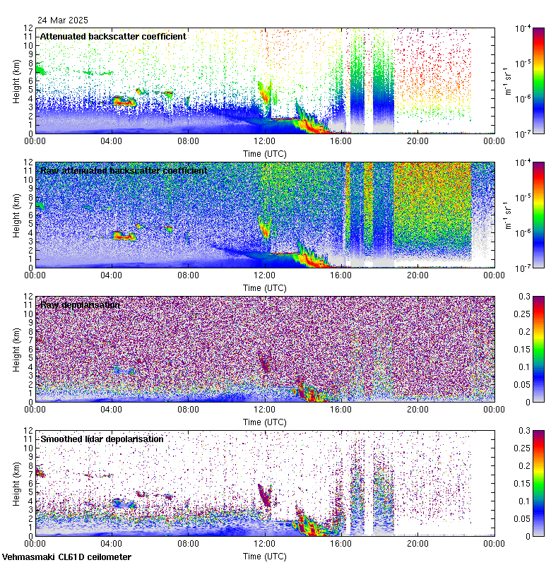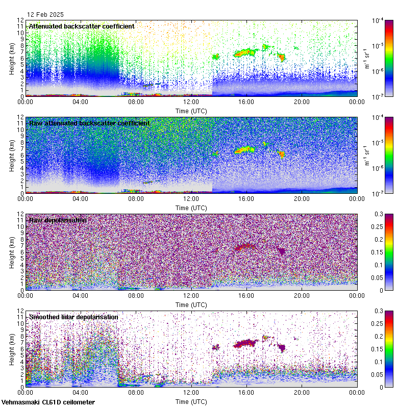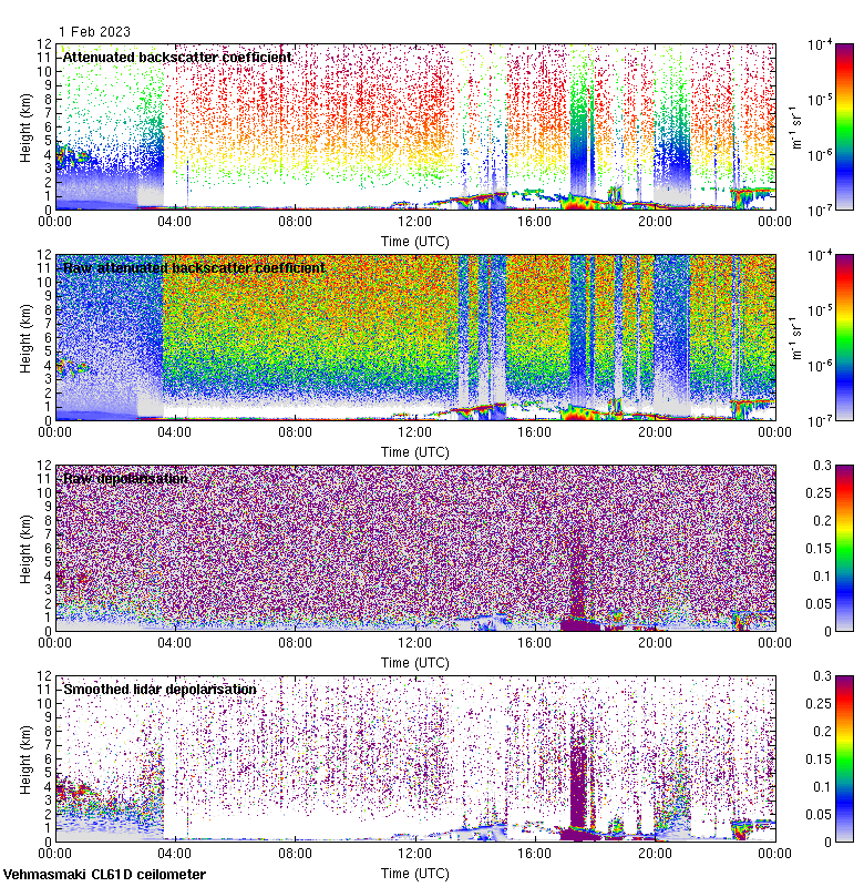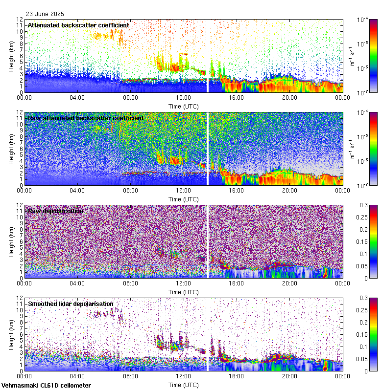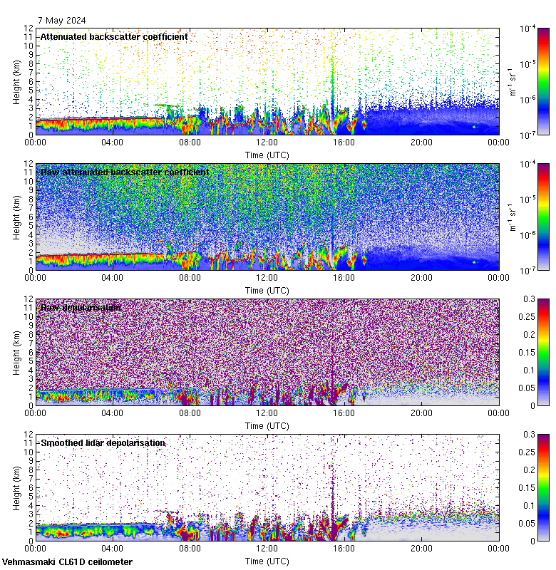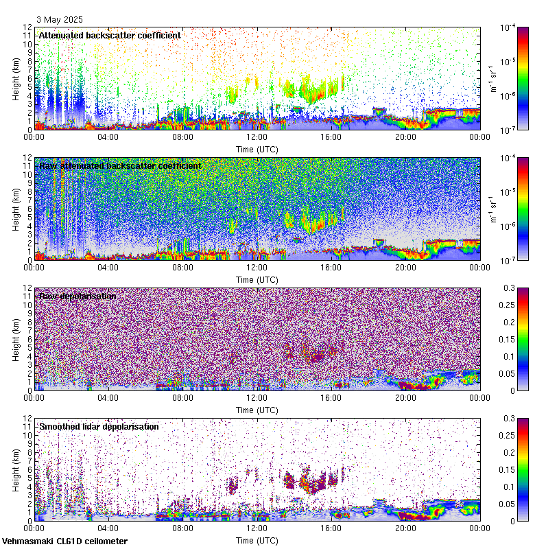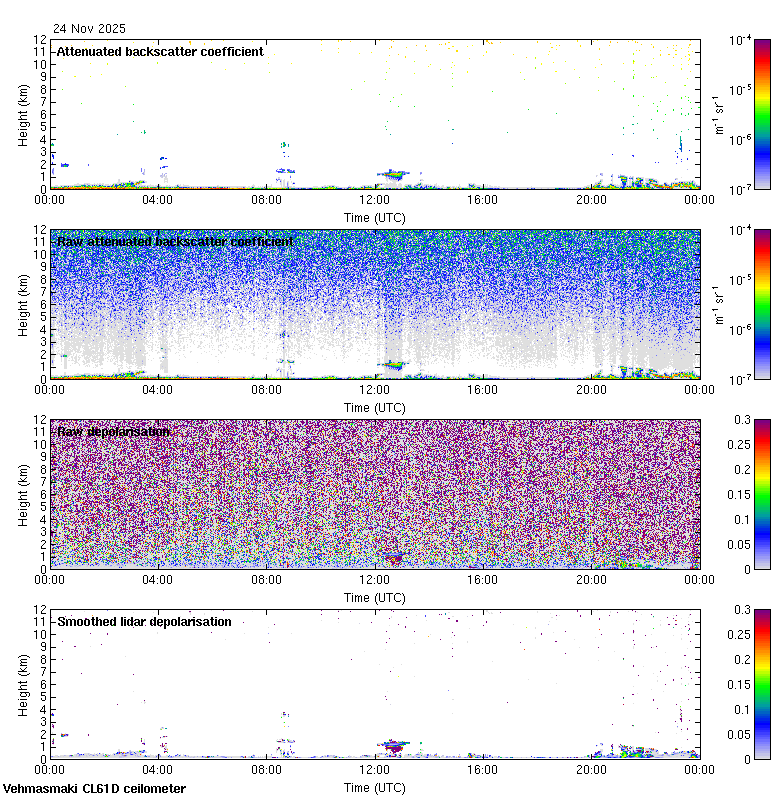 This page contains links to the daily Vehmasmaki Vaisala CL61D ceilometer images created at Kumpula.