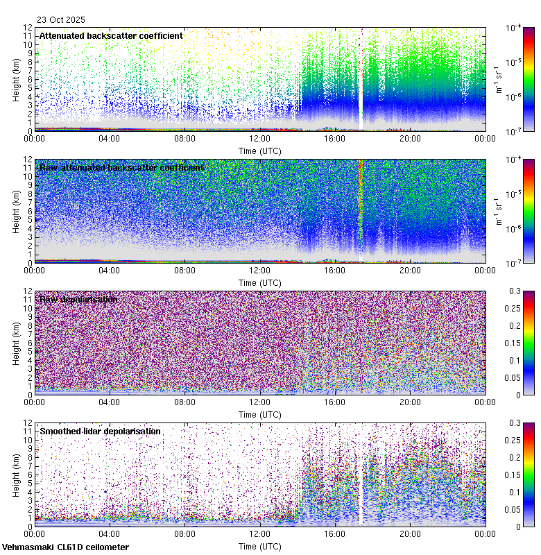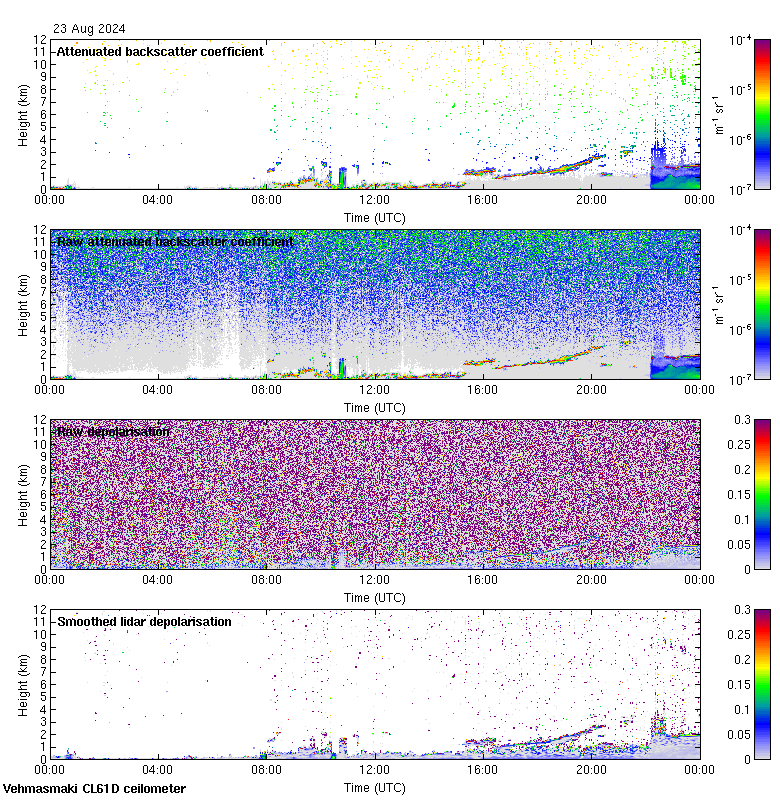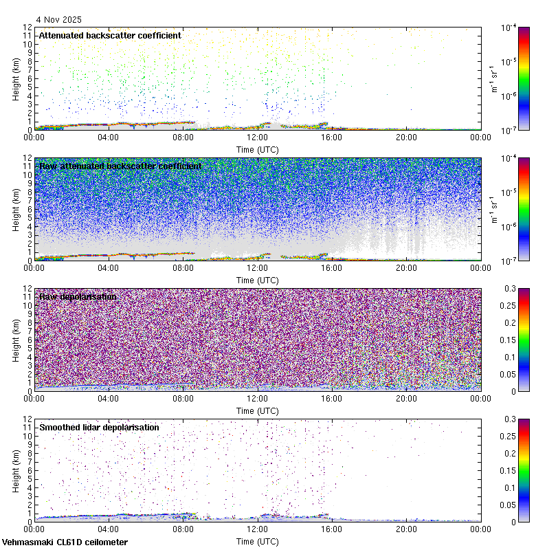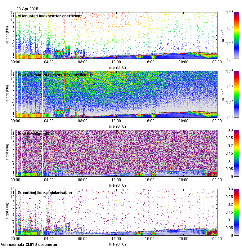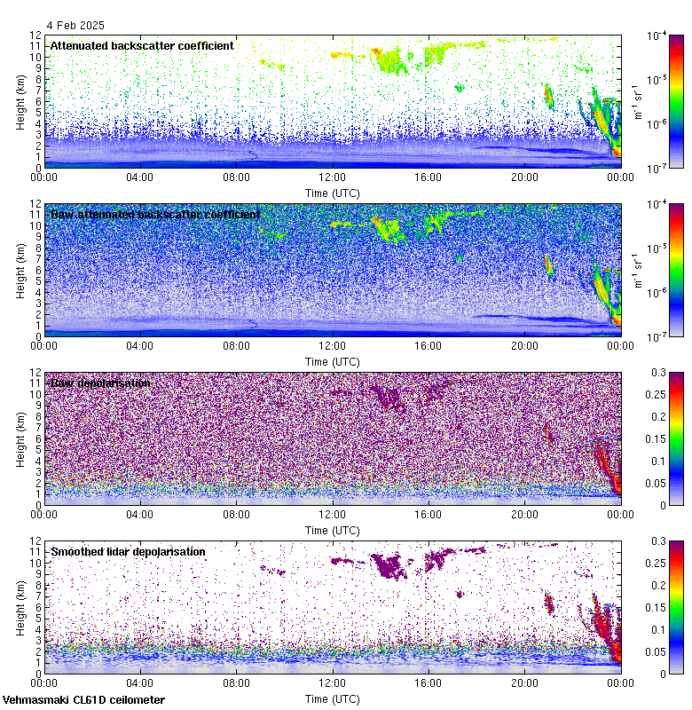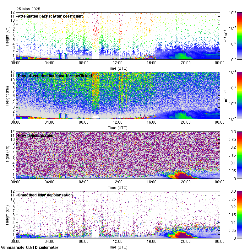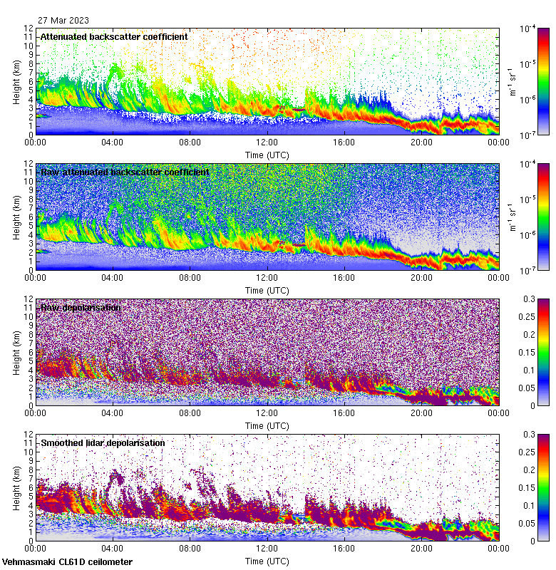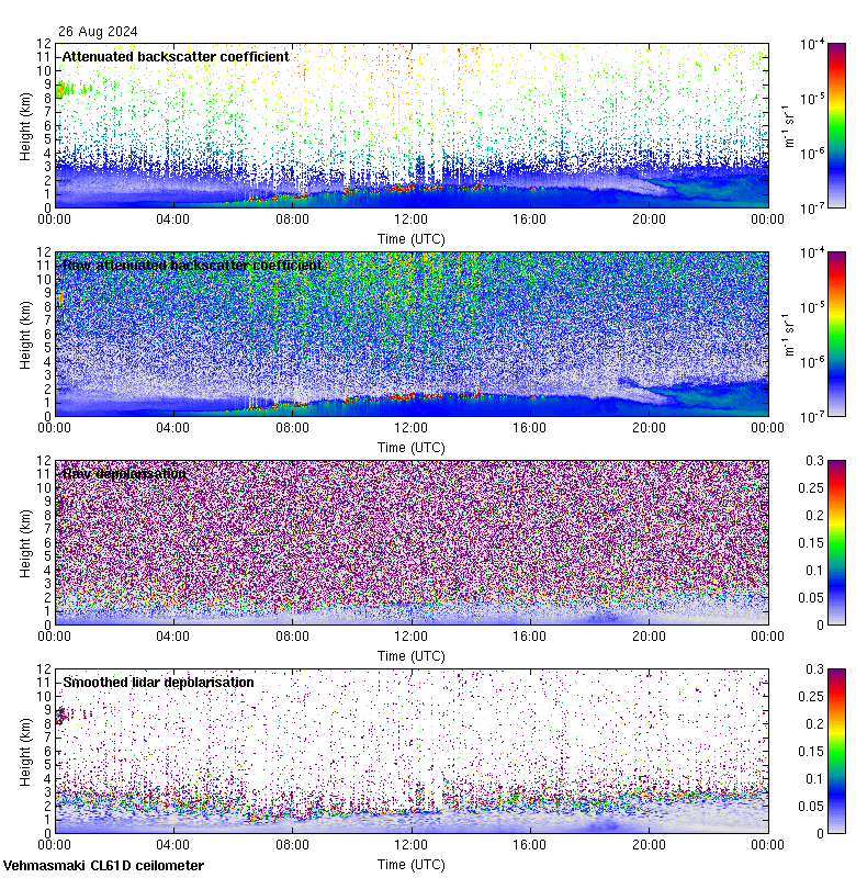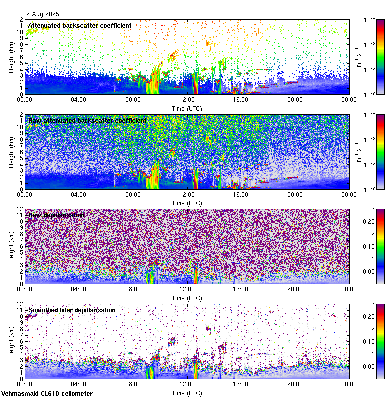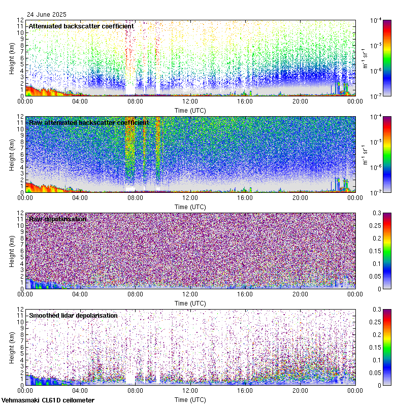 This page contains links to the daily Vehmasmaki Vaisala CL61D ceilometer images created at Kumpula.