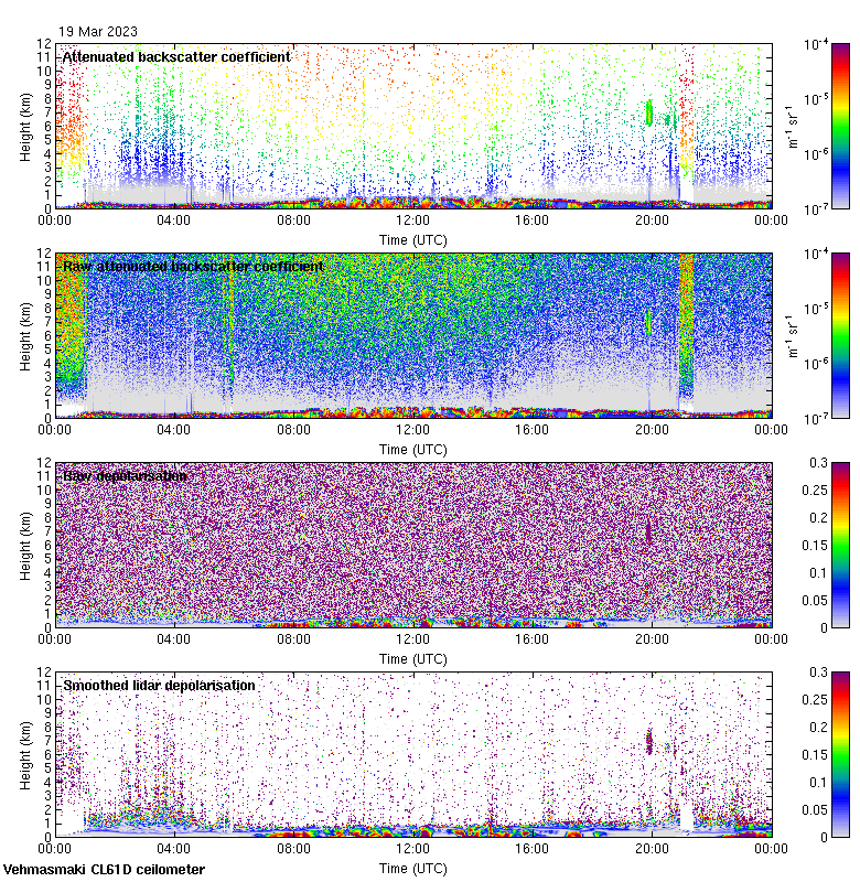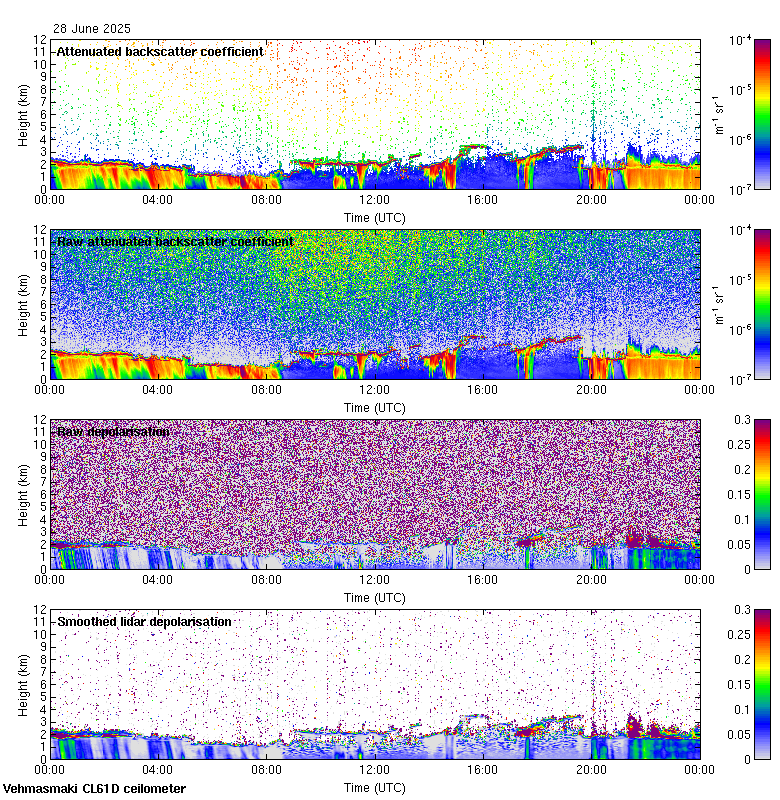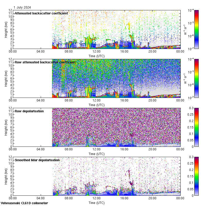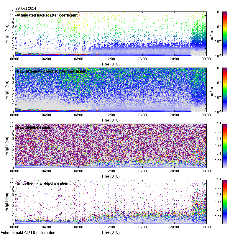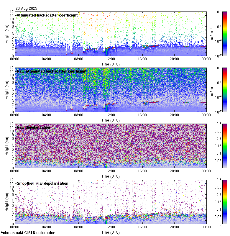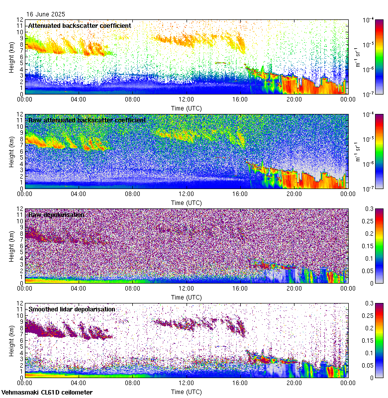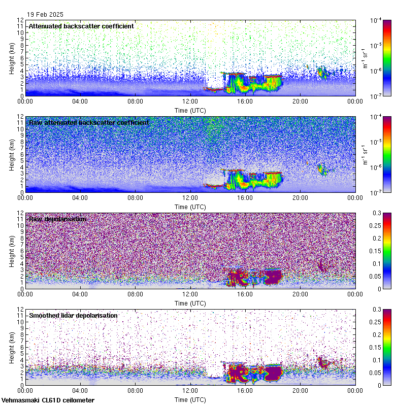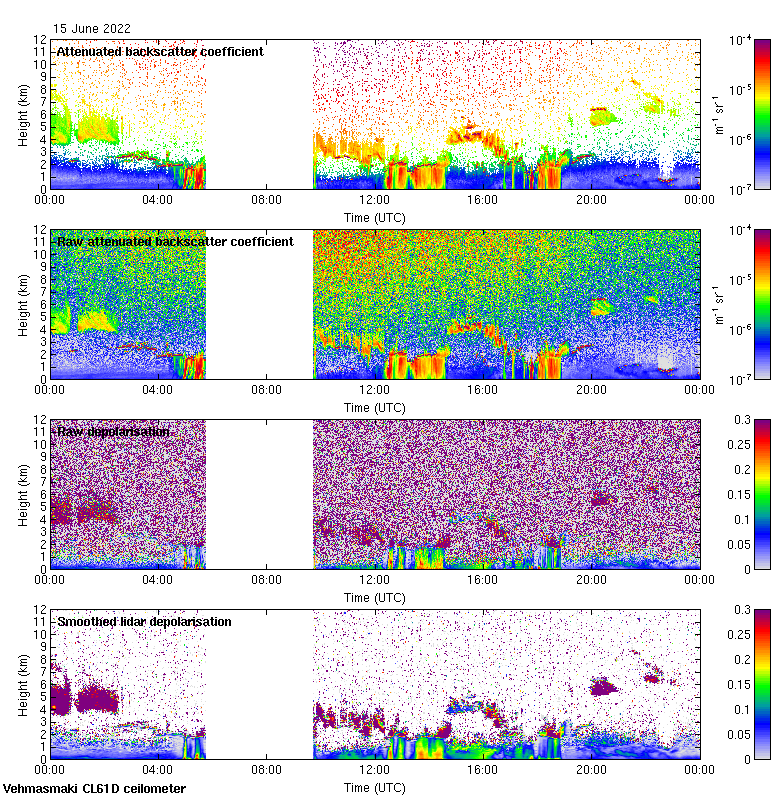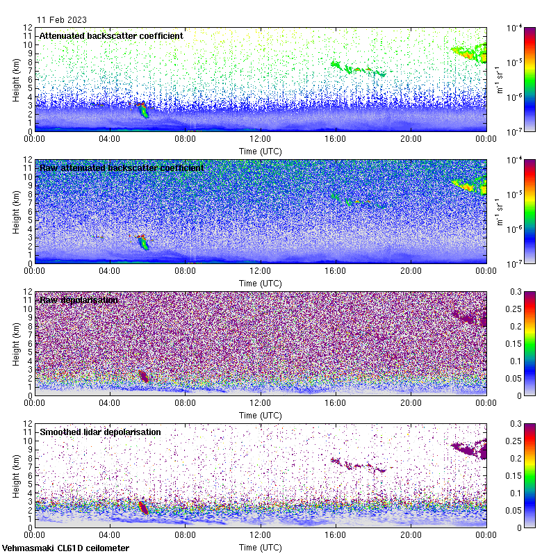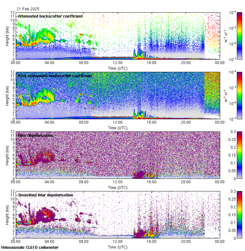 This page contains links to the daily Vehmasmaki Vaisala CL61D ceilometer images created at Kumpula.