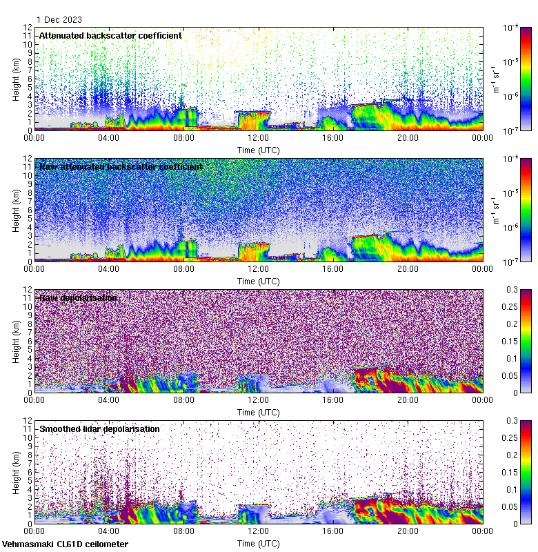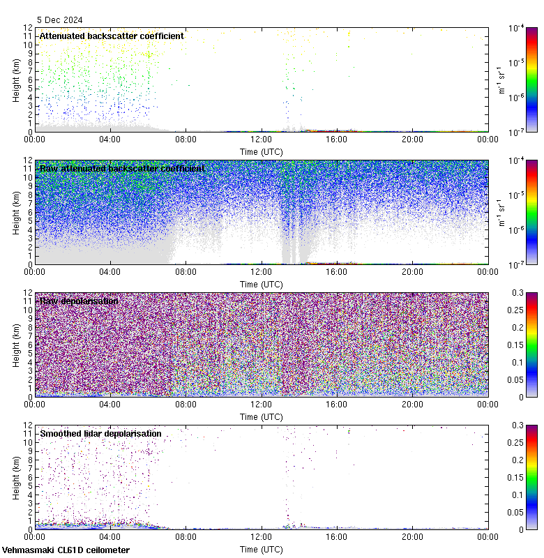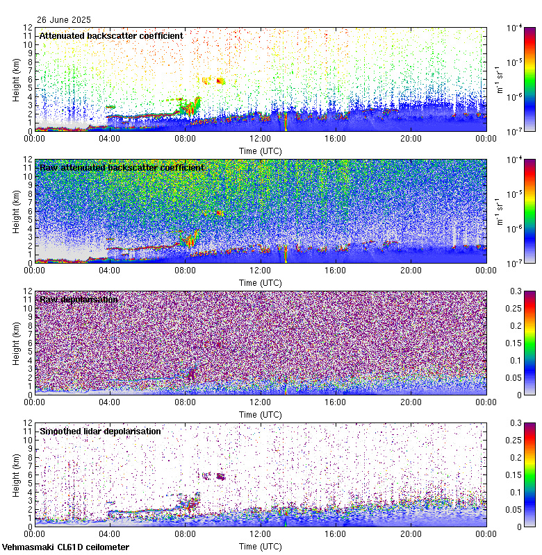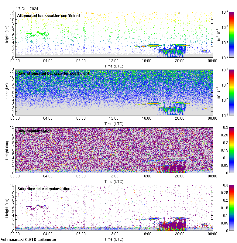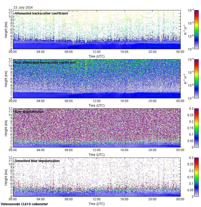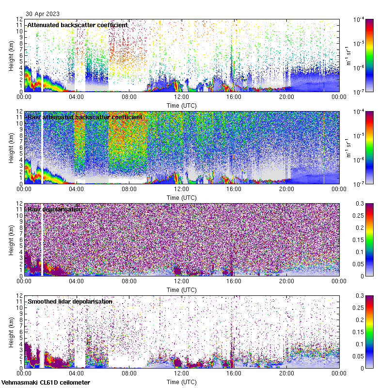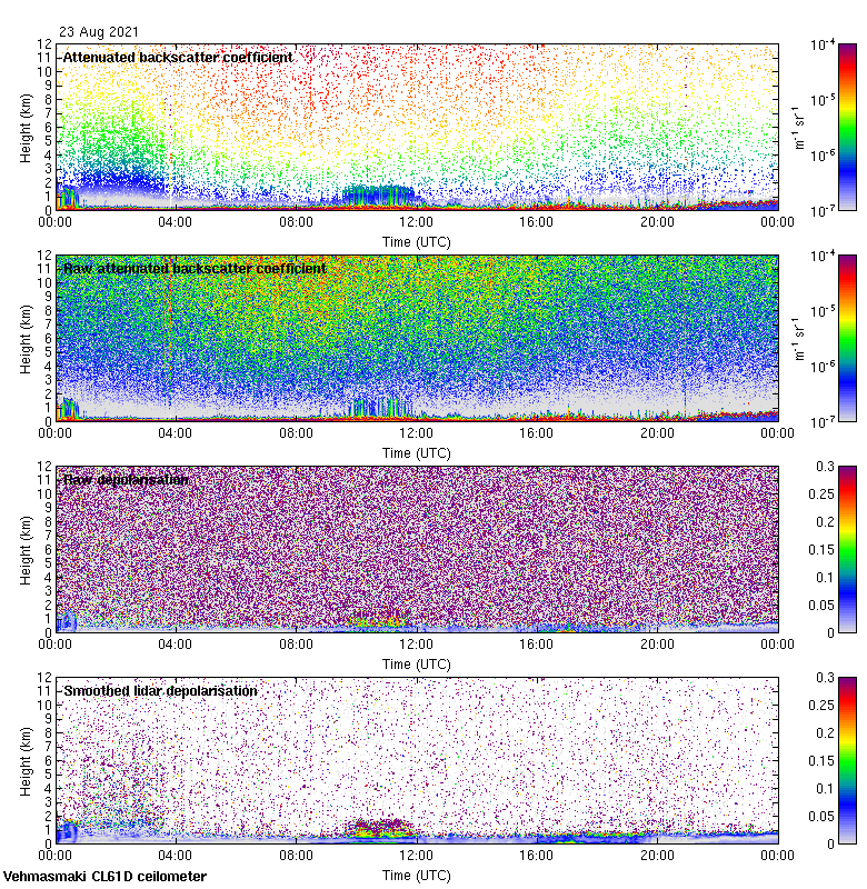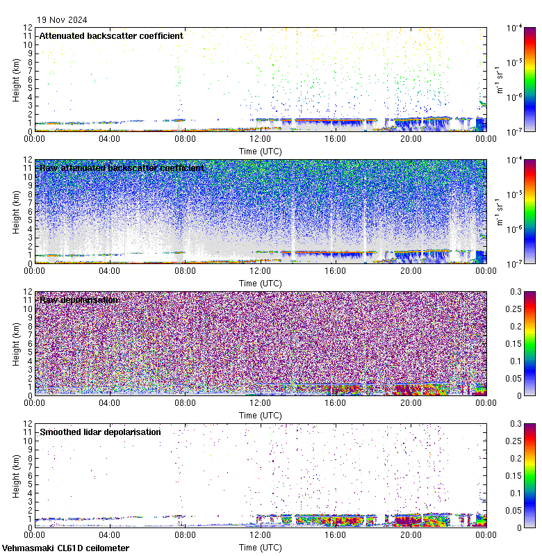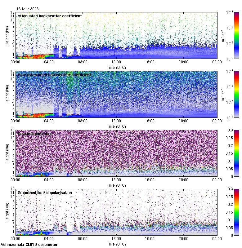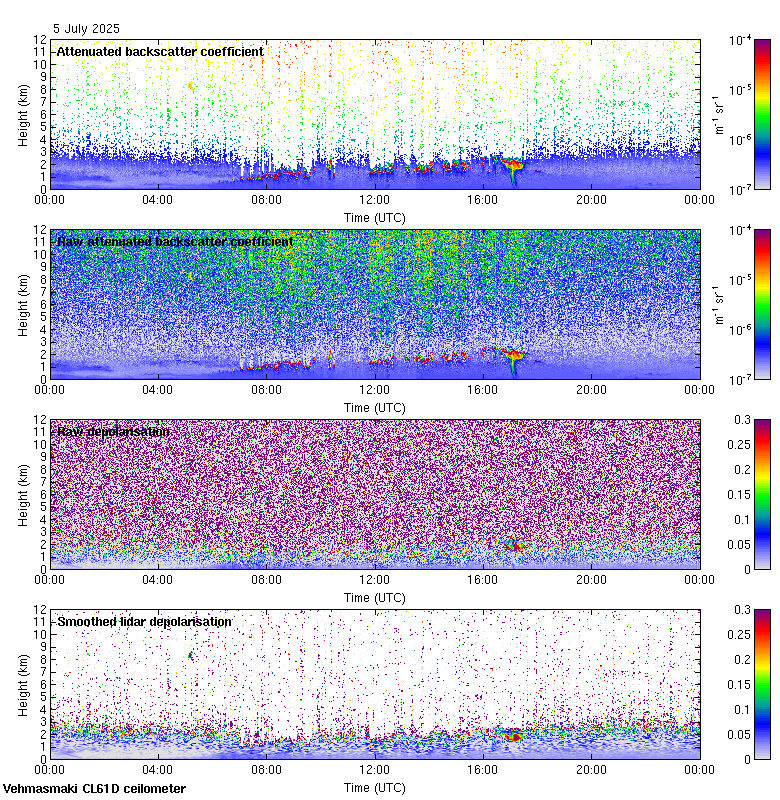 This page contains links to the daily Vehmasmaki Vaisala CL61D ceilometer images created at Kumpula.