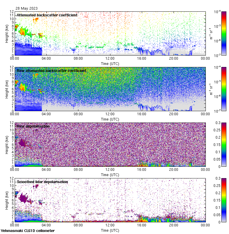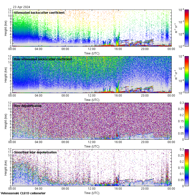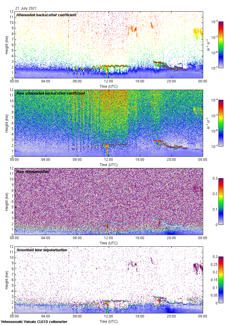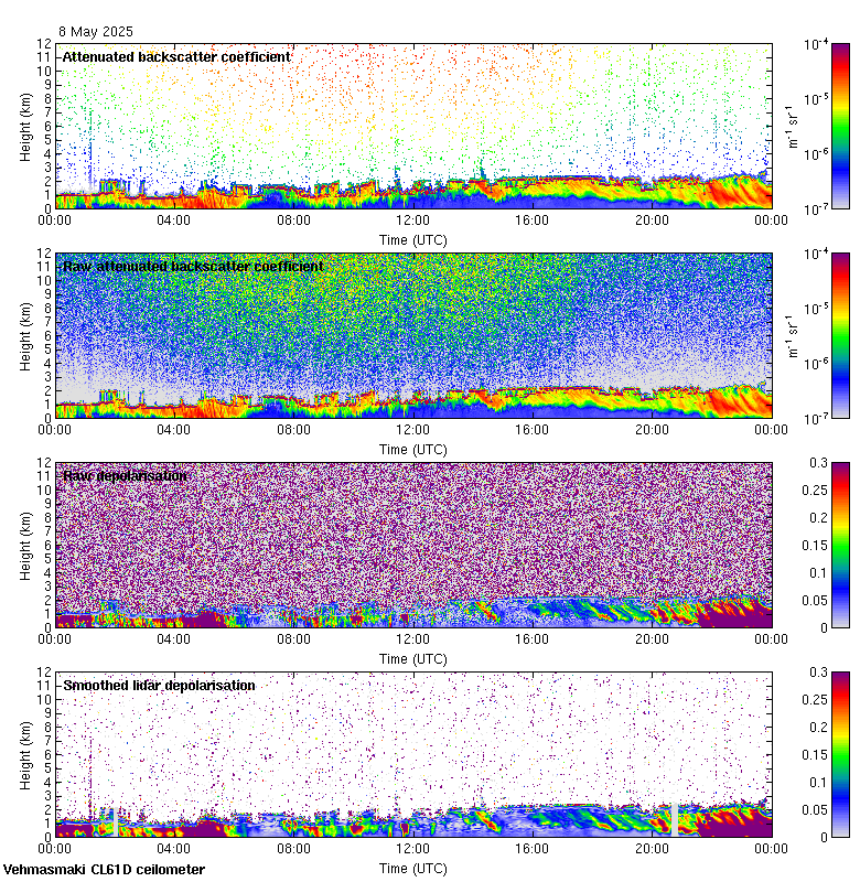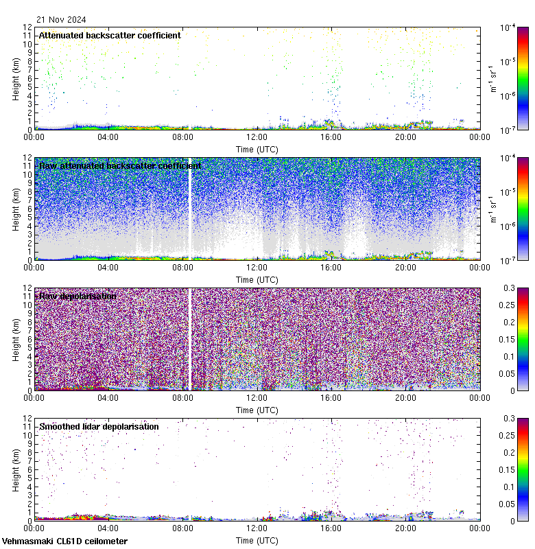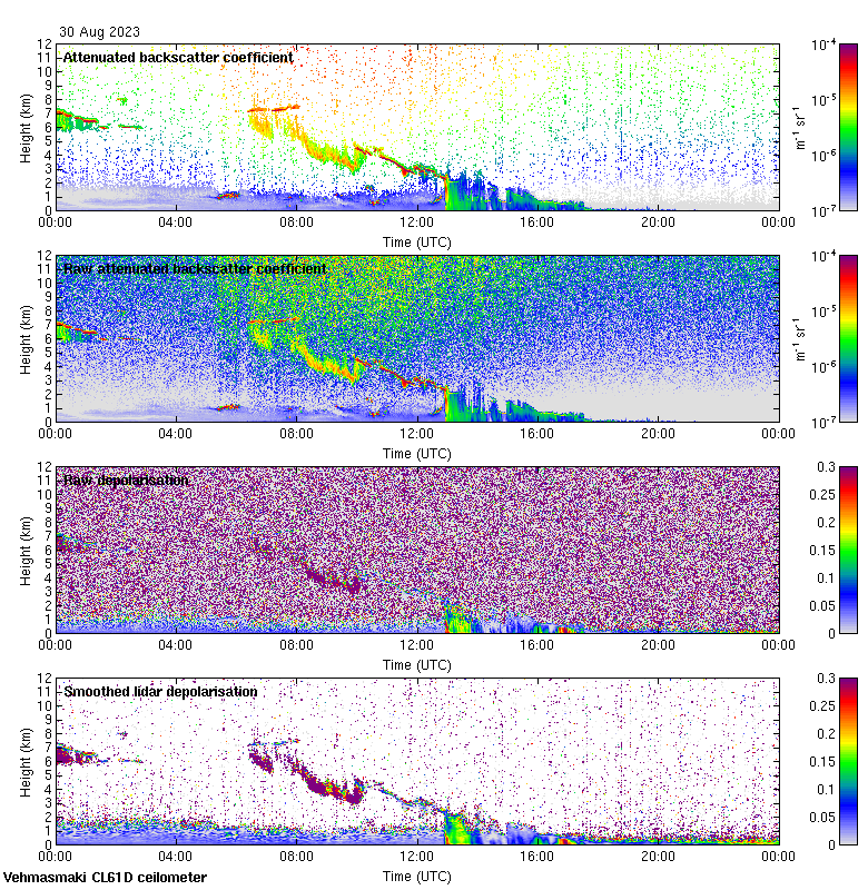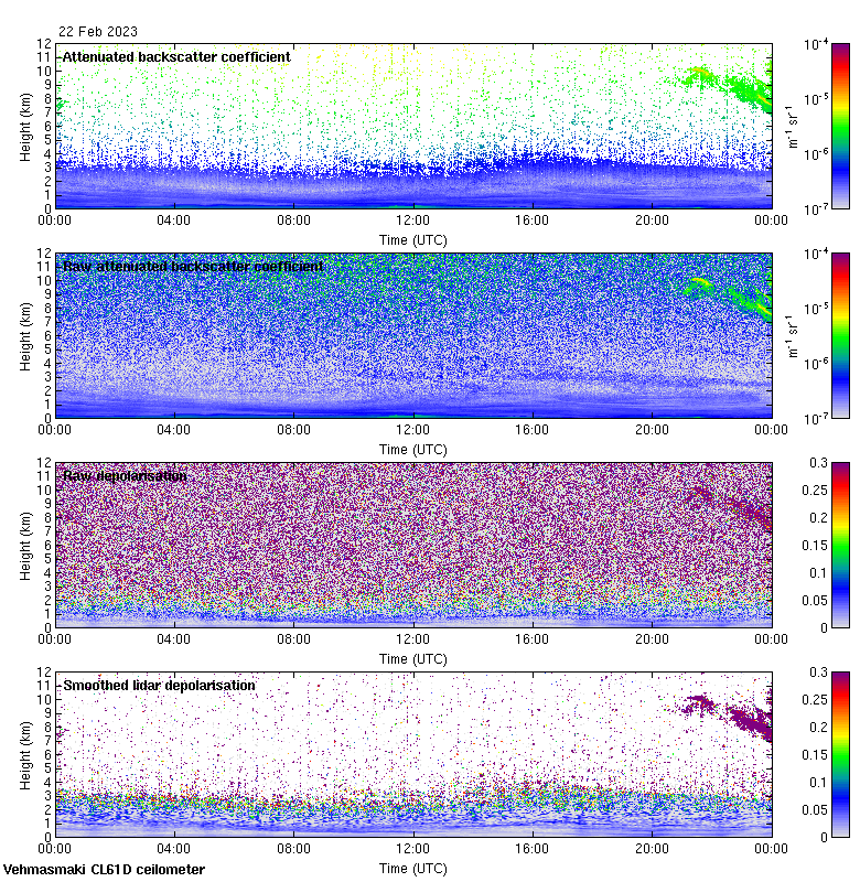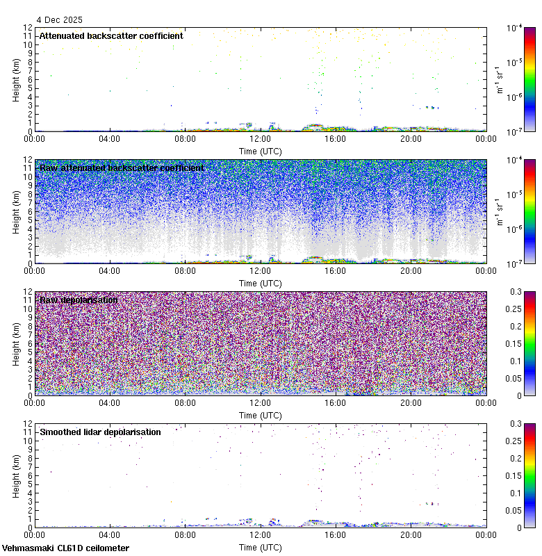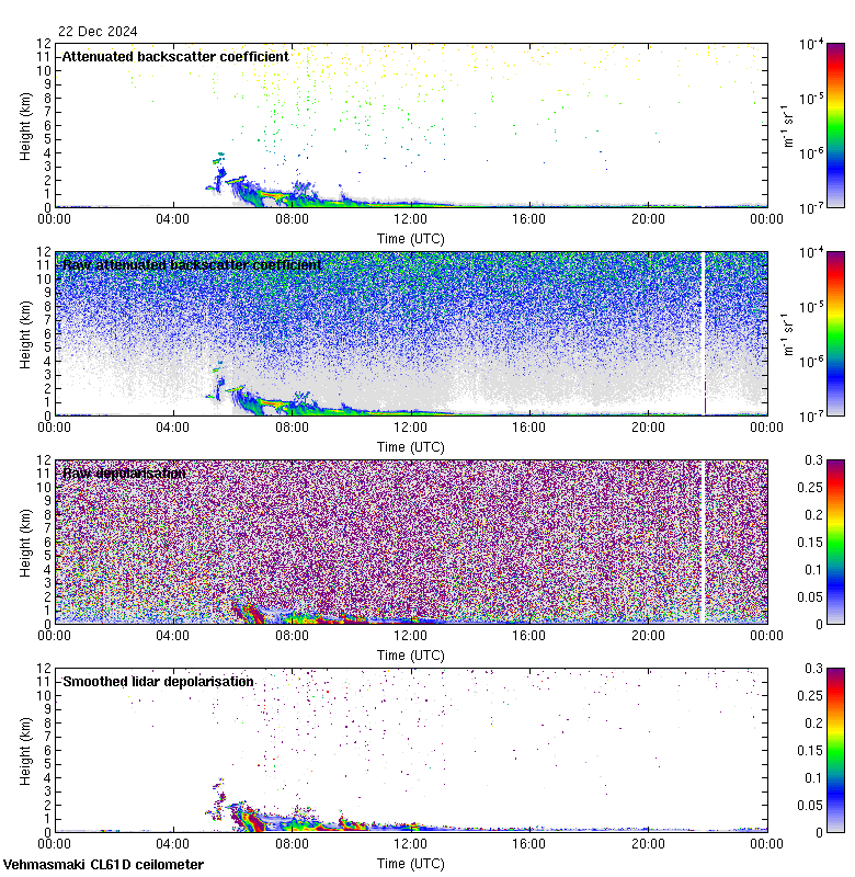 This page contains links to the daily Vehmasmaki Vaisala CL61D ceilometer images created at Kumpula.