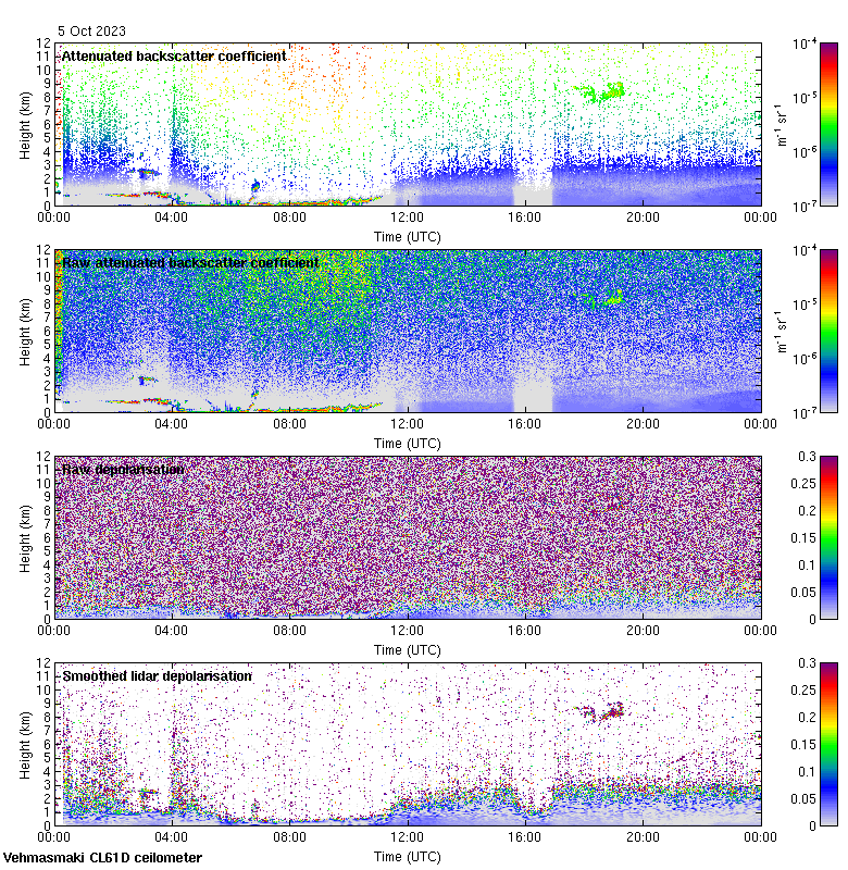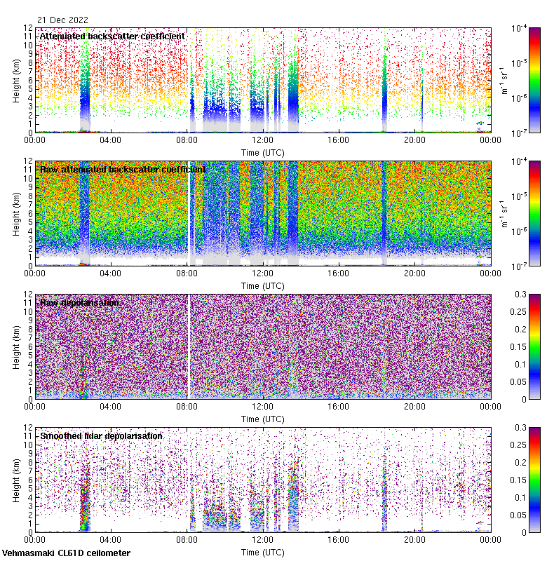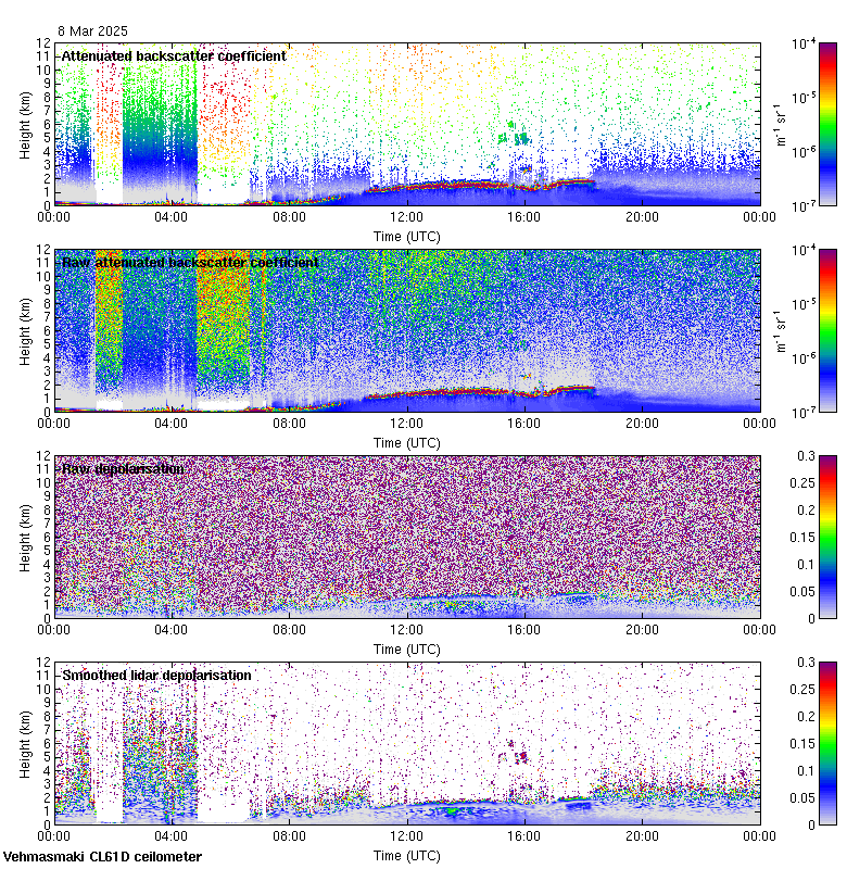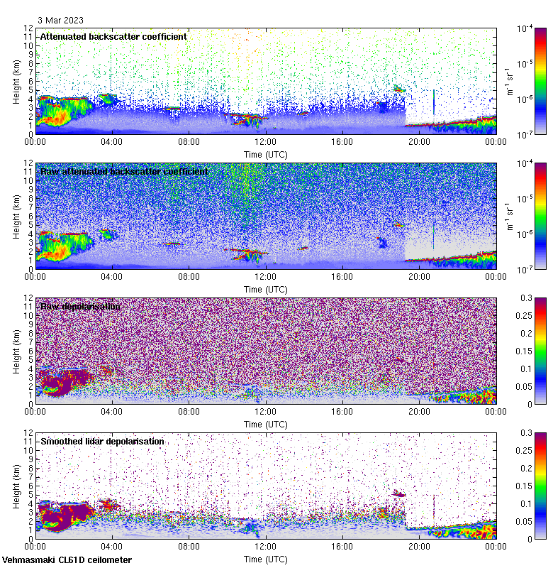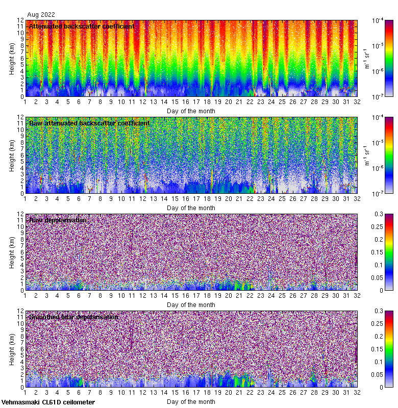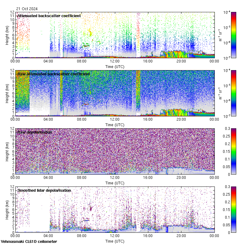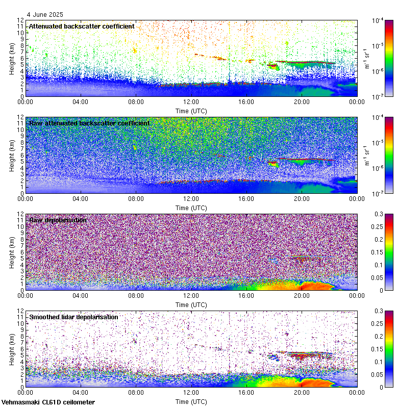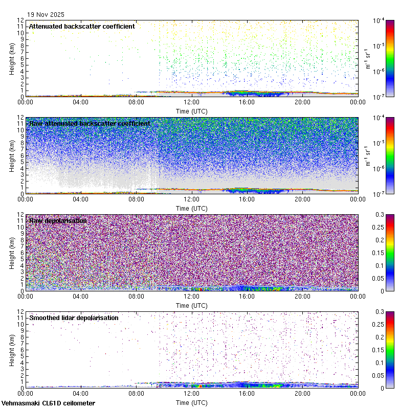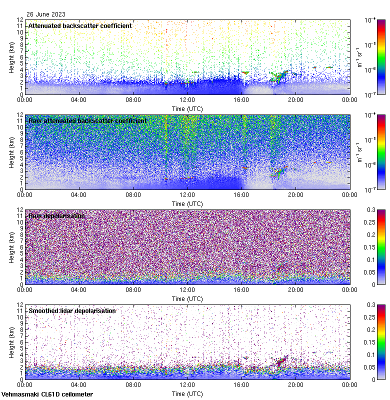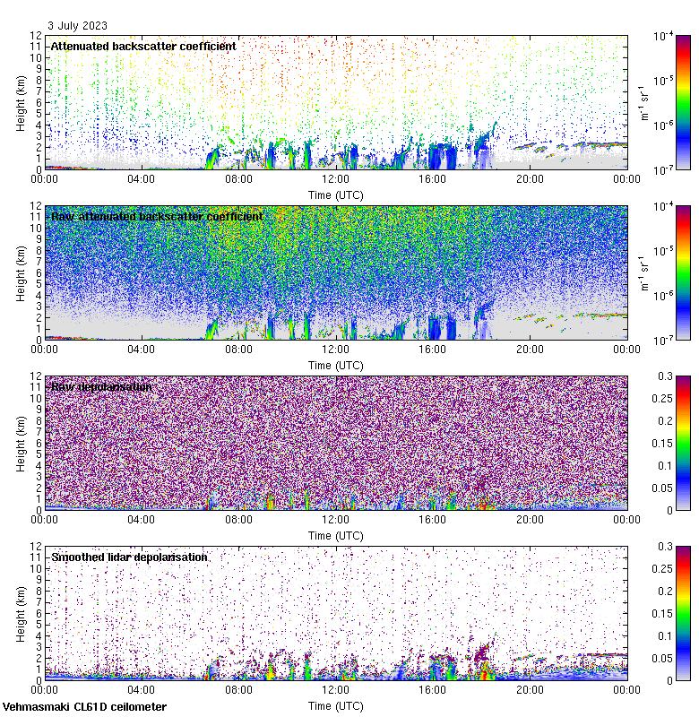 This page contains links to the daily Vehmasmaki Vaisala CL61D ceilometer images created at Kumpula.