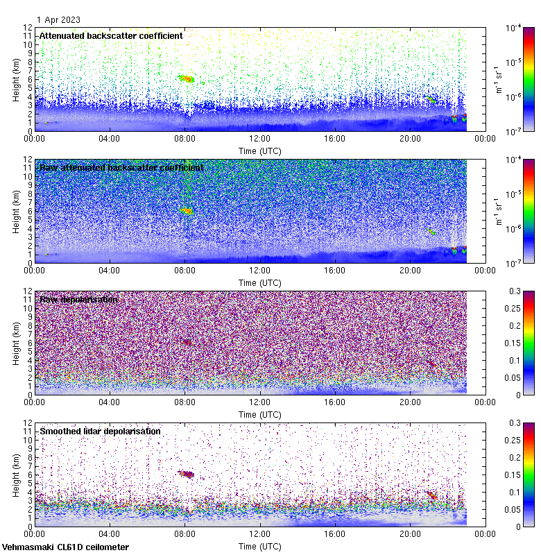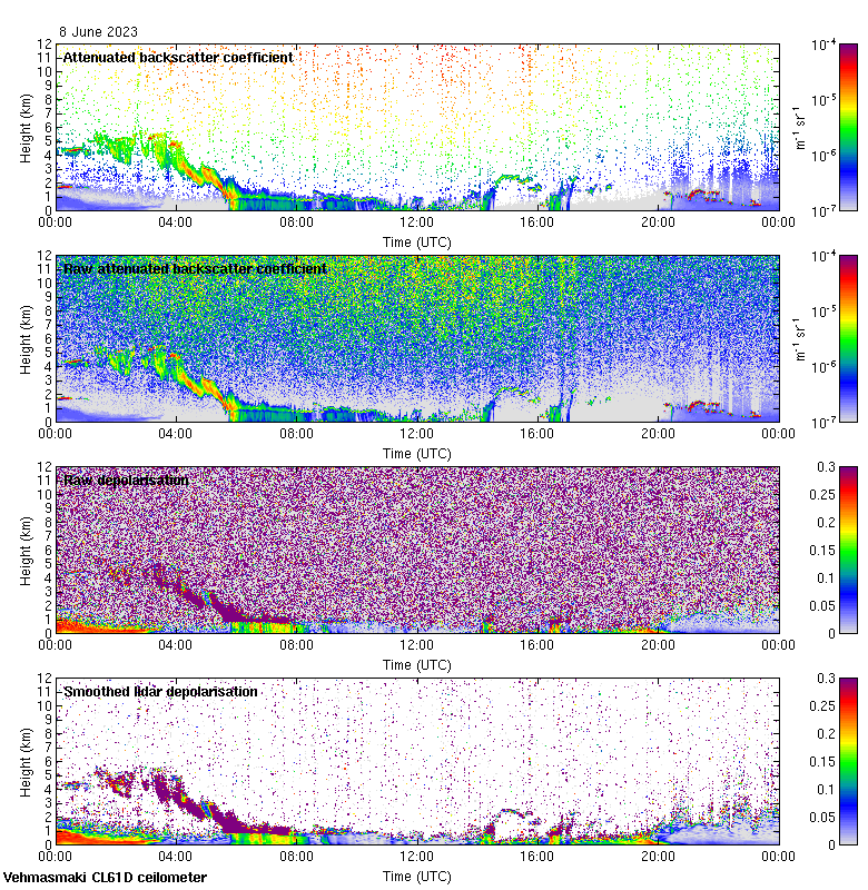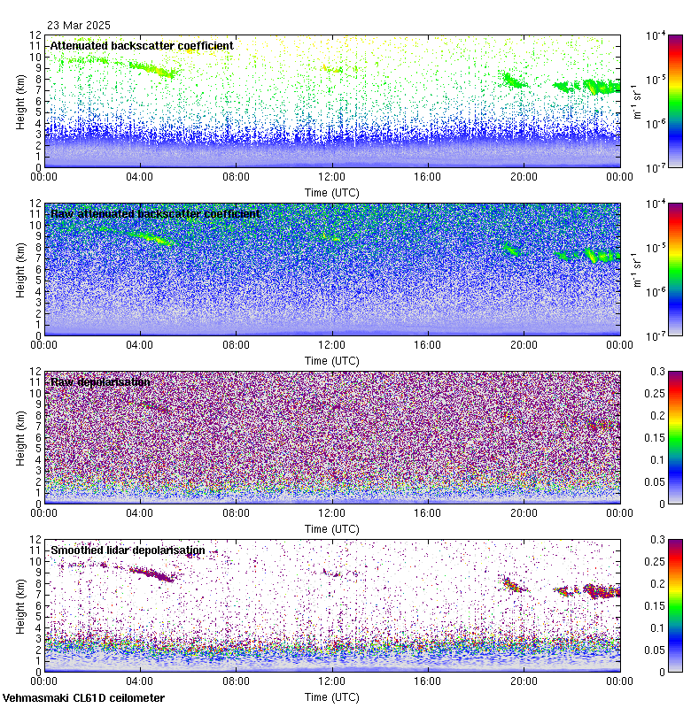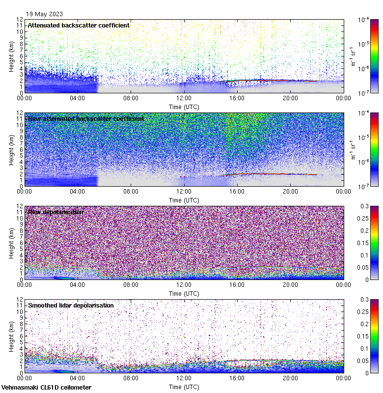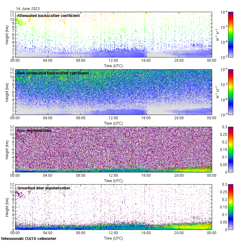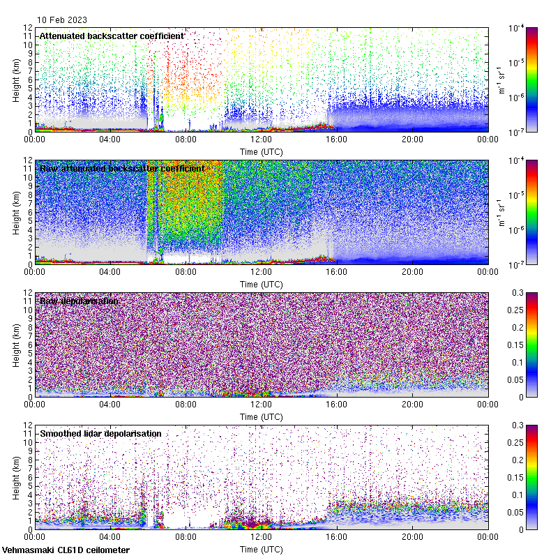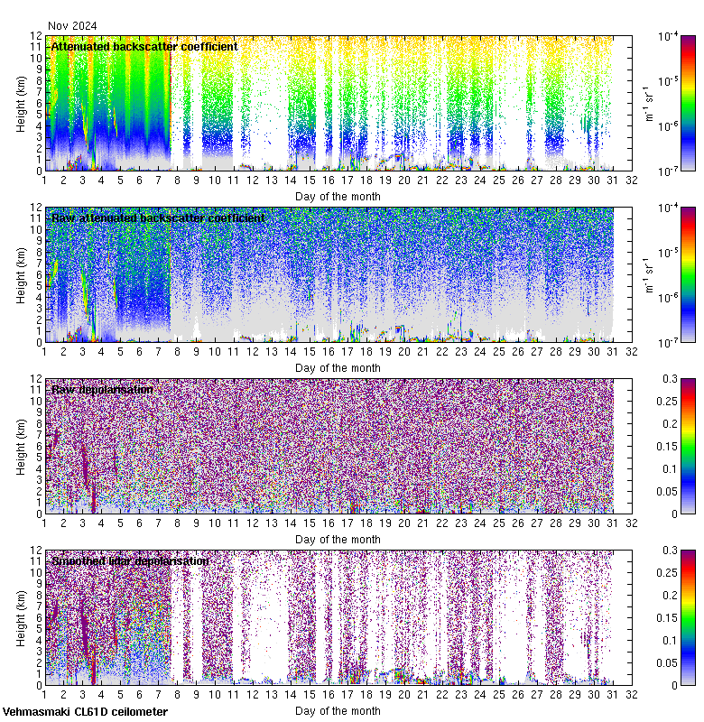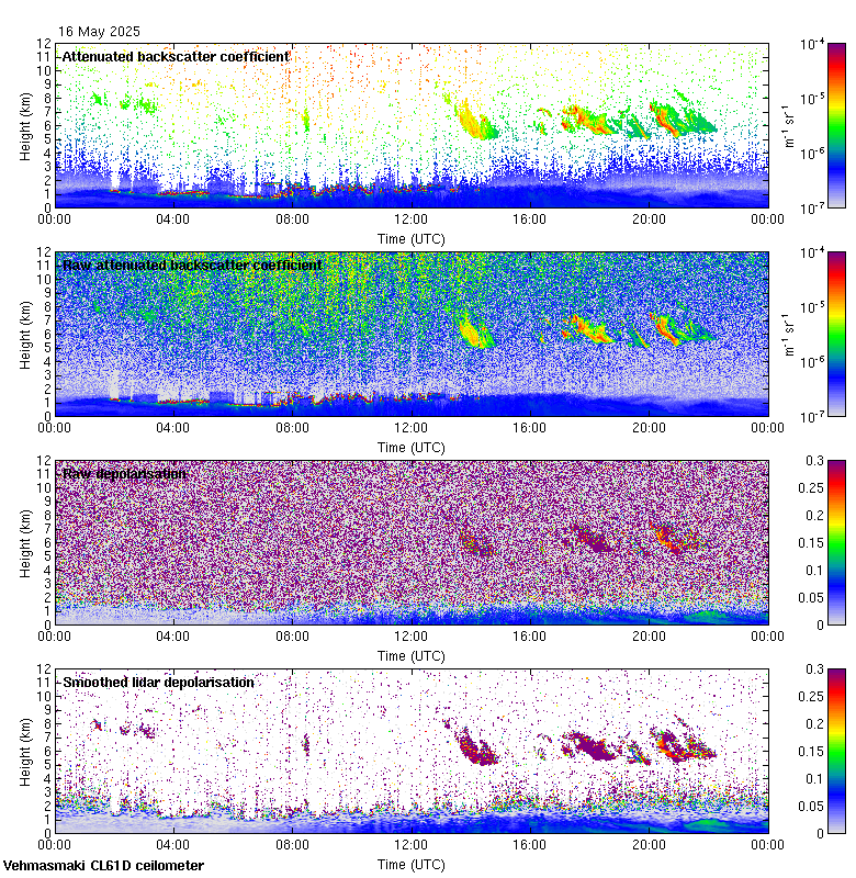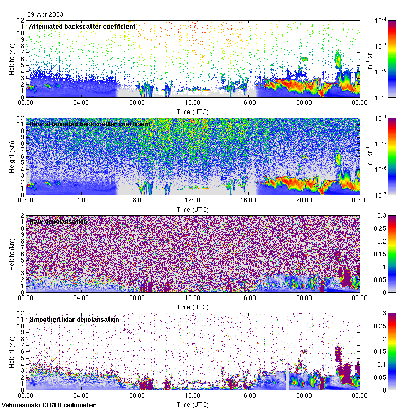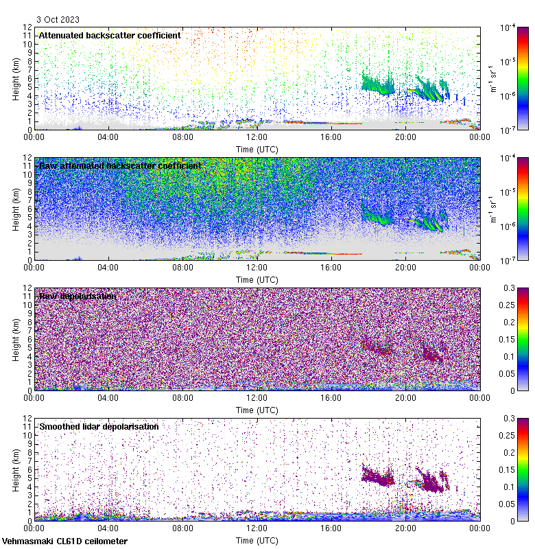 This page contains links to the daily Vehmasmaki Vaisala CL61D ceilometer images created at Kumpula.