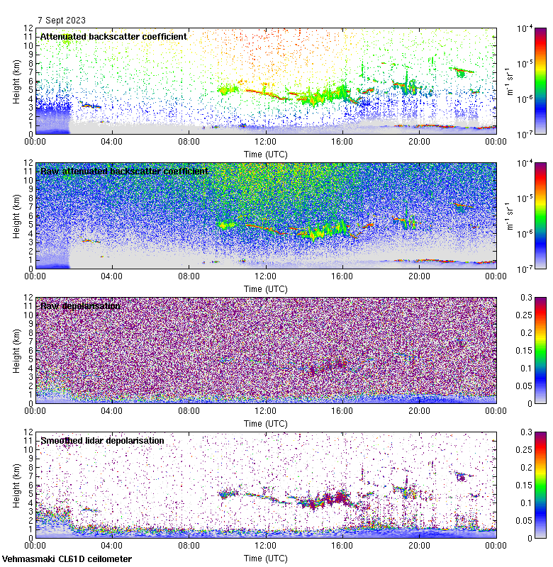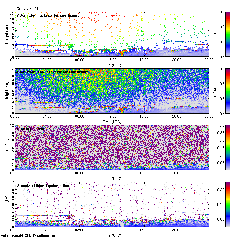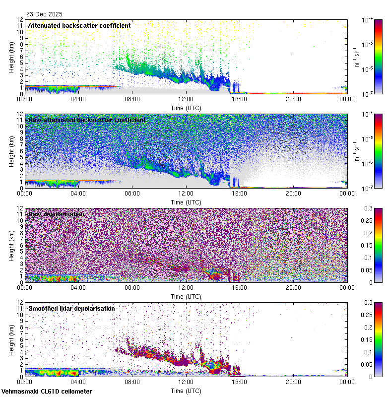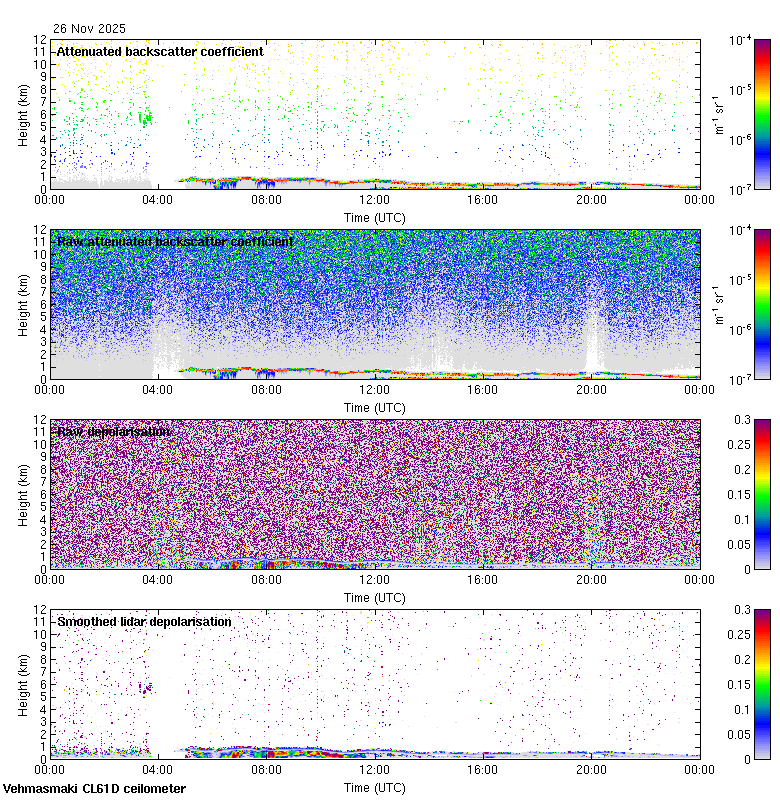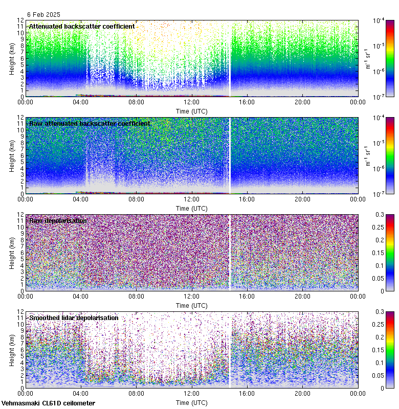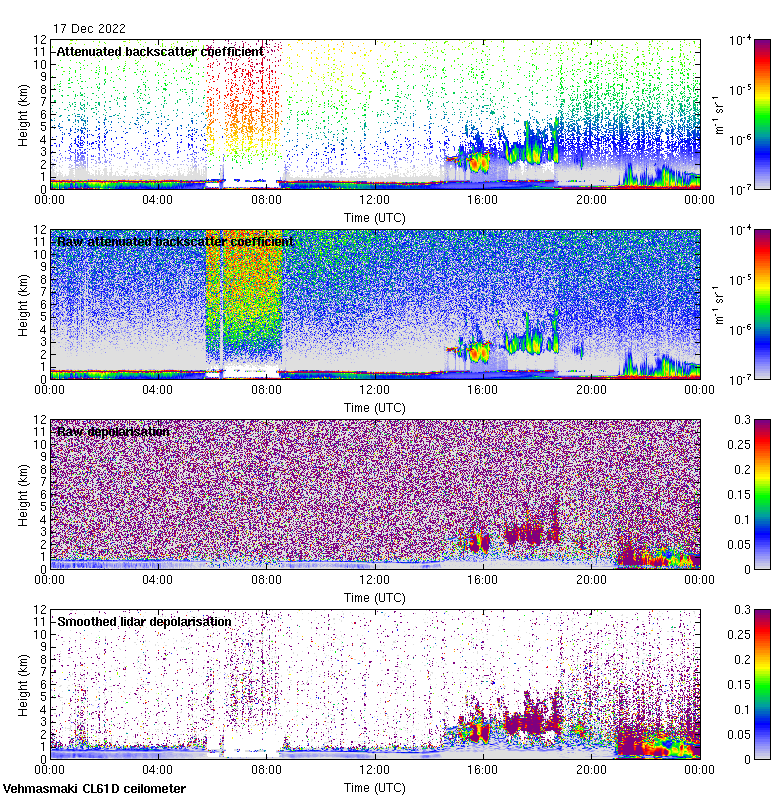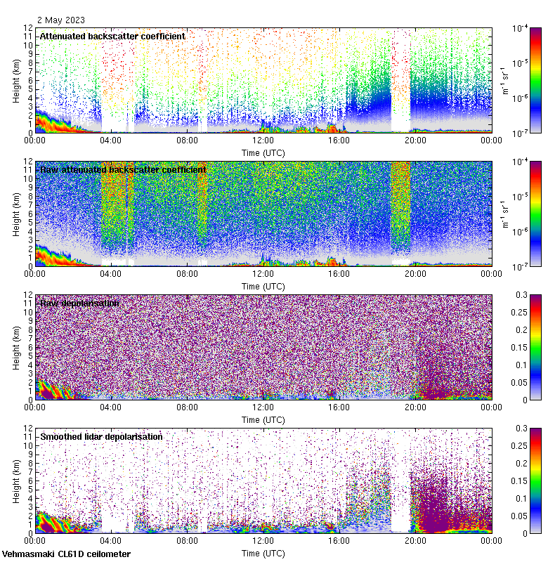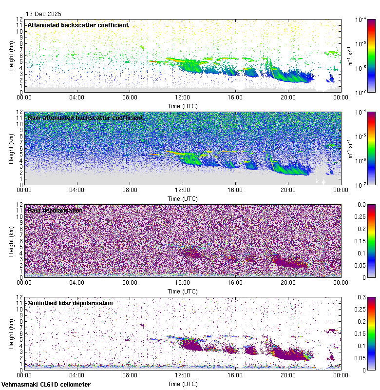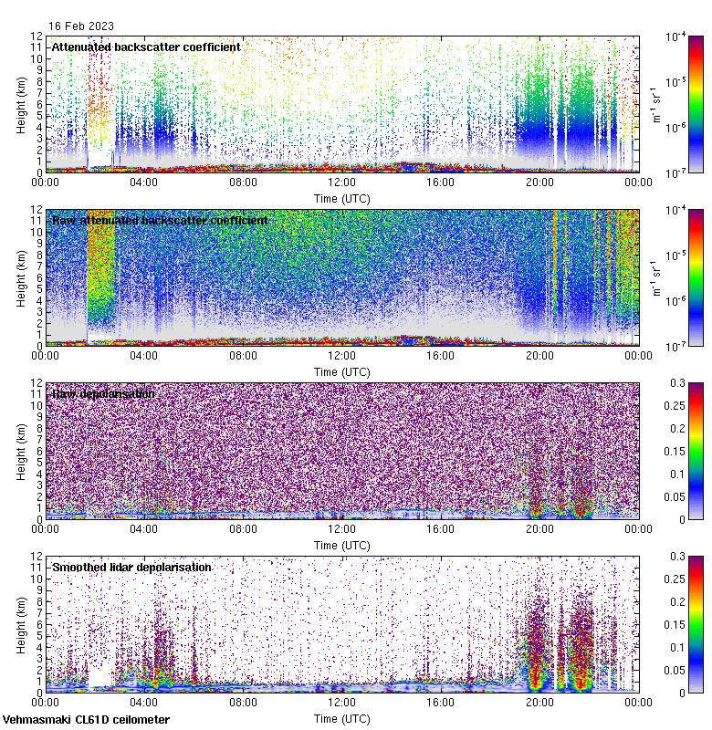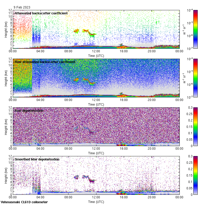 This page contains links to the daily Vehmasmaki Vaisala CL61D ceilometer images created at Kumpula.