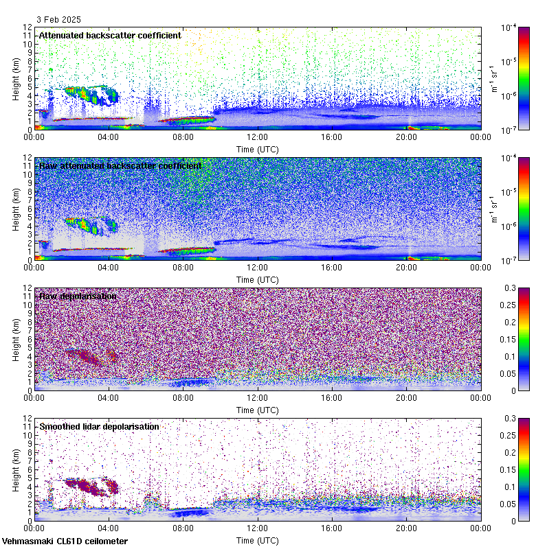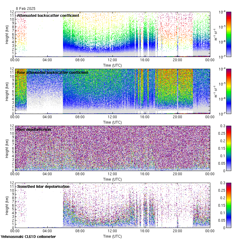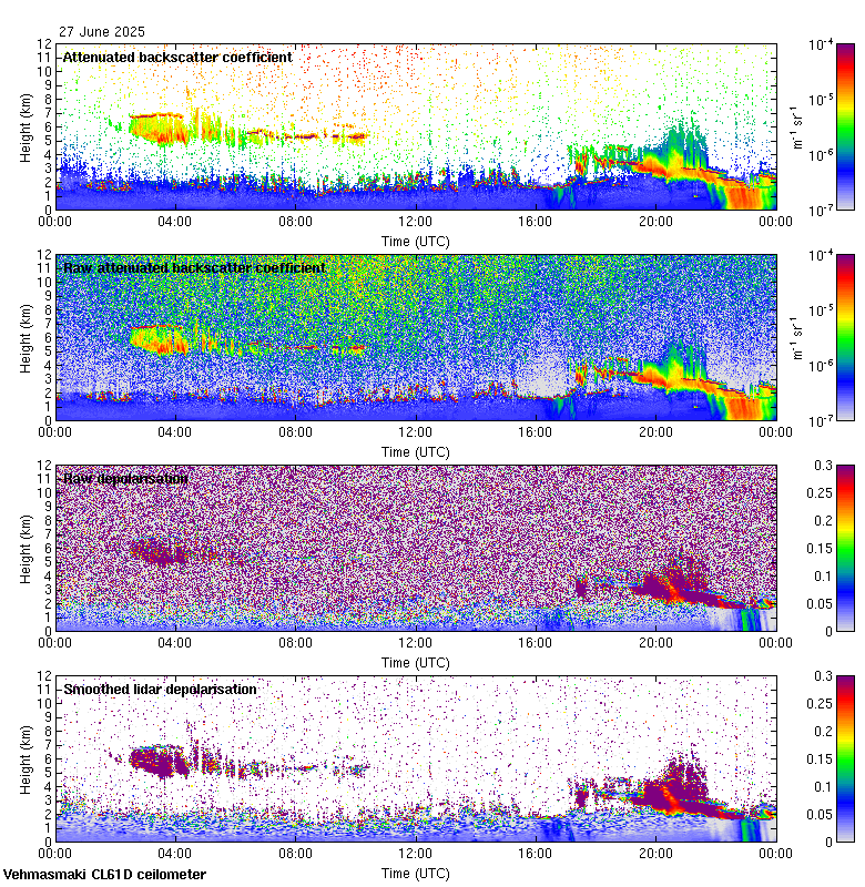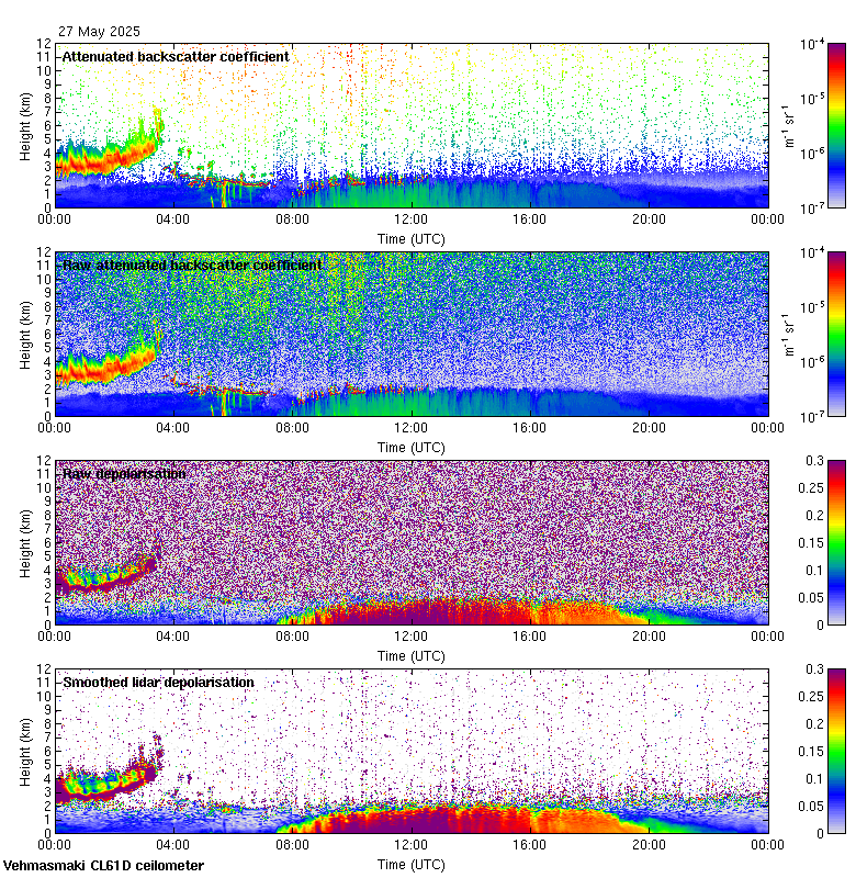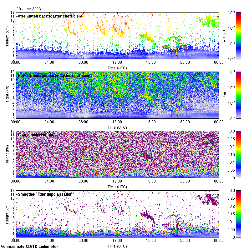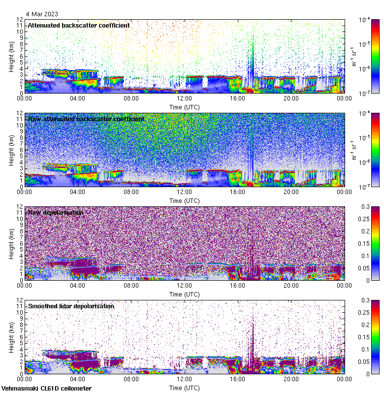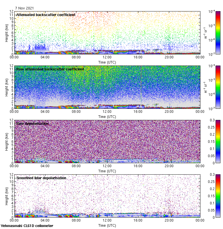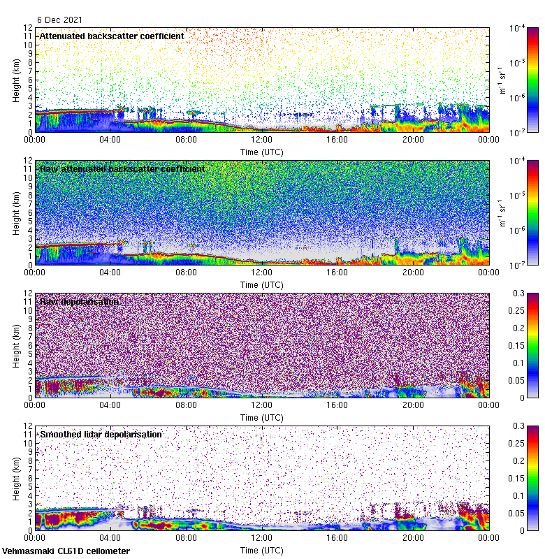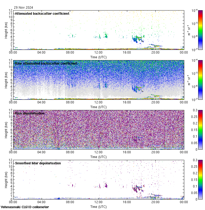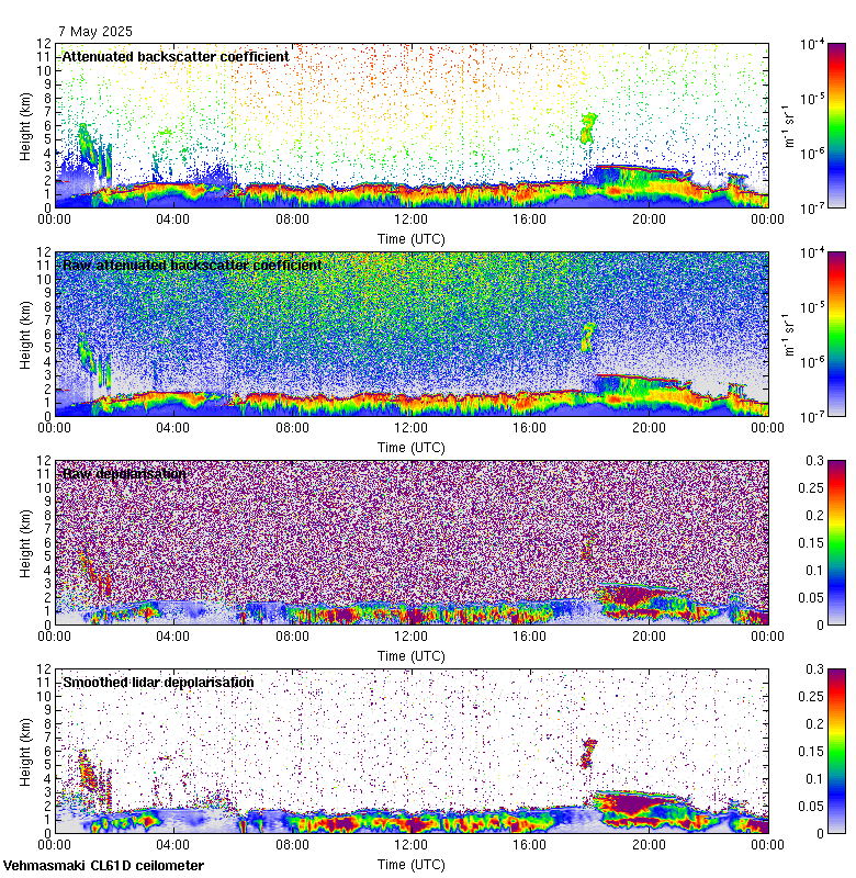 This page contains links to the daily Vehmasmaki Vaisala CL61D ceilometer images created at Kumpula.