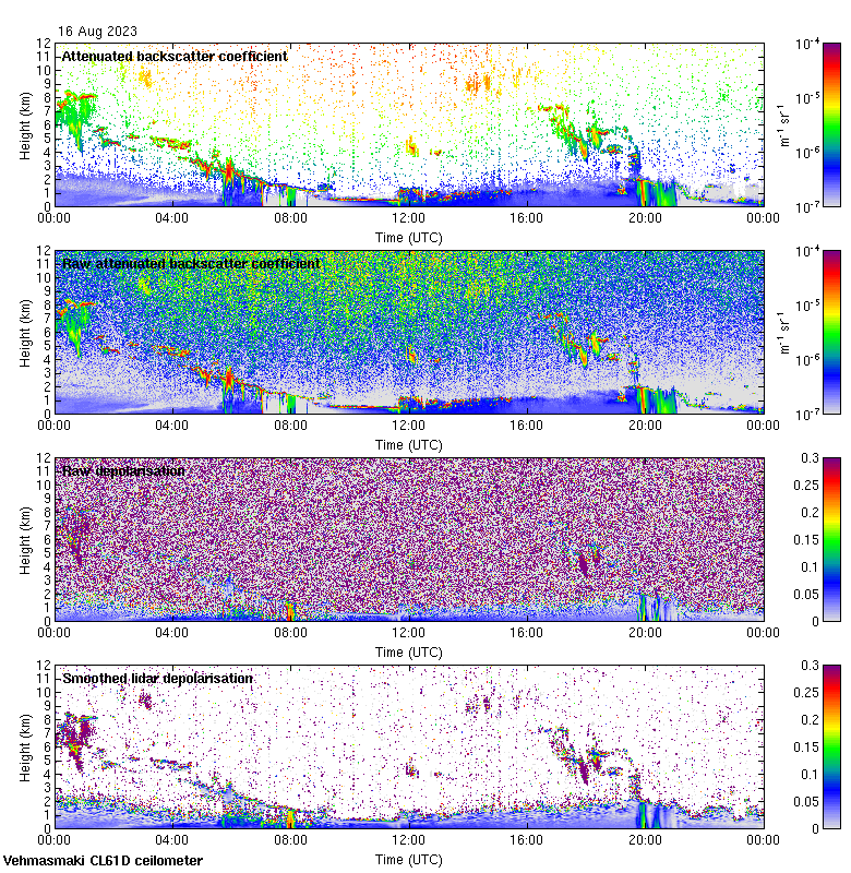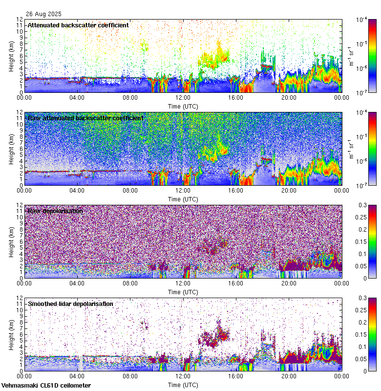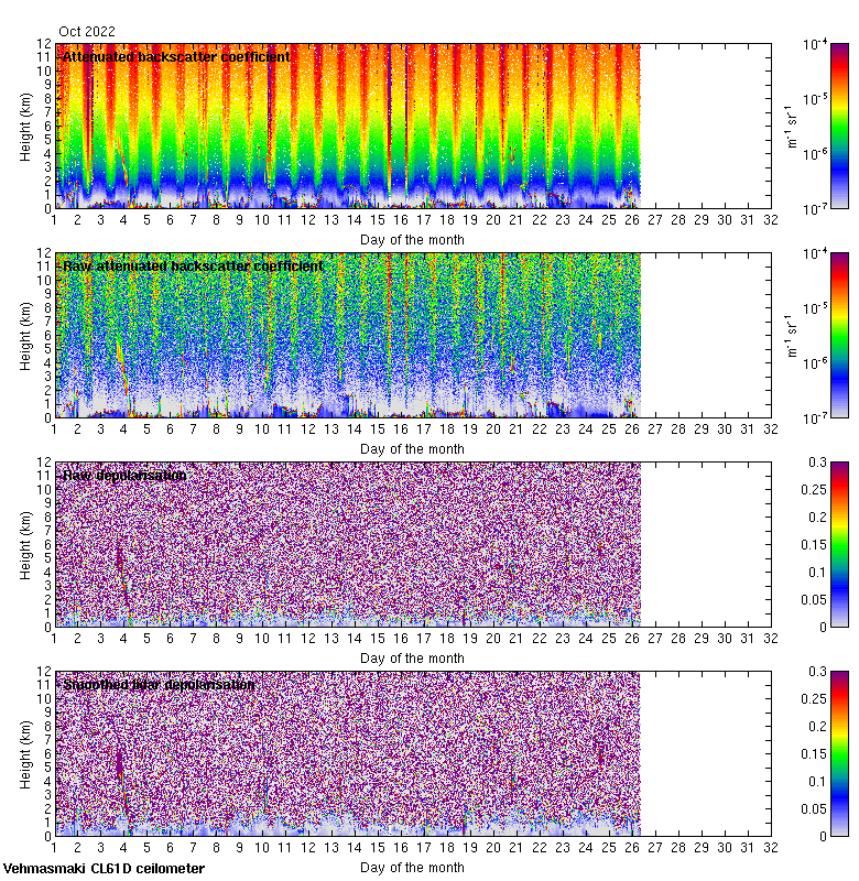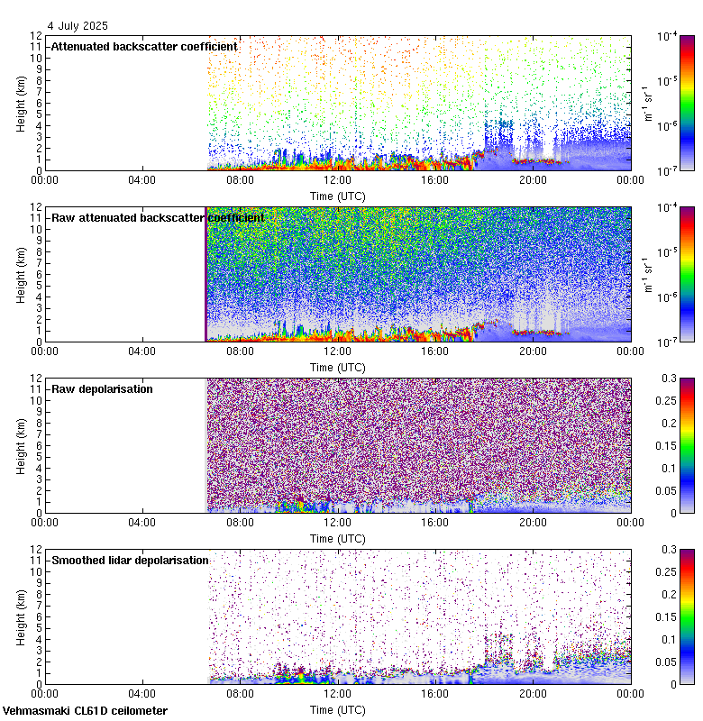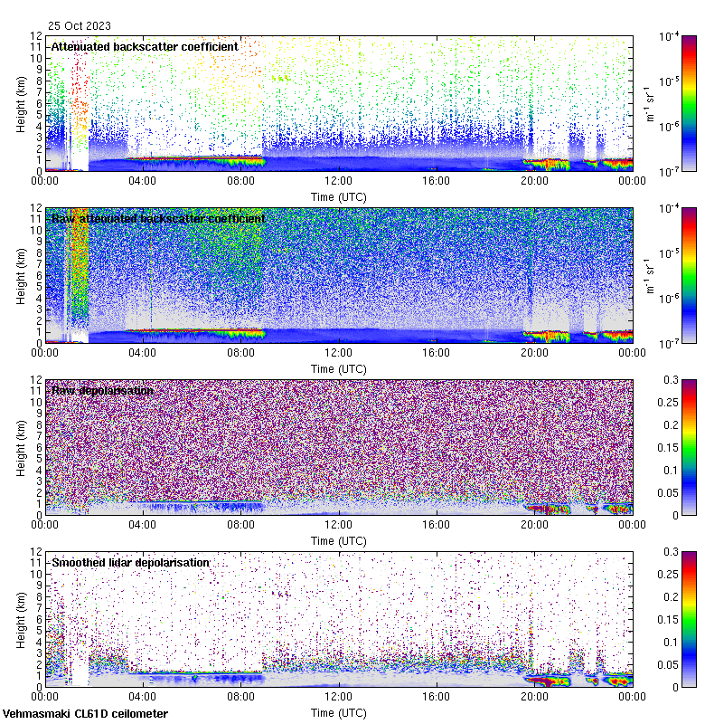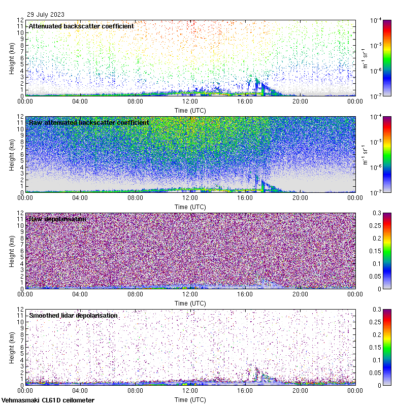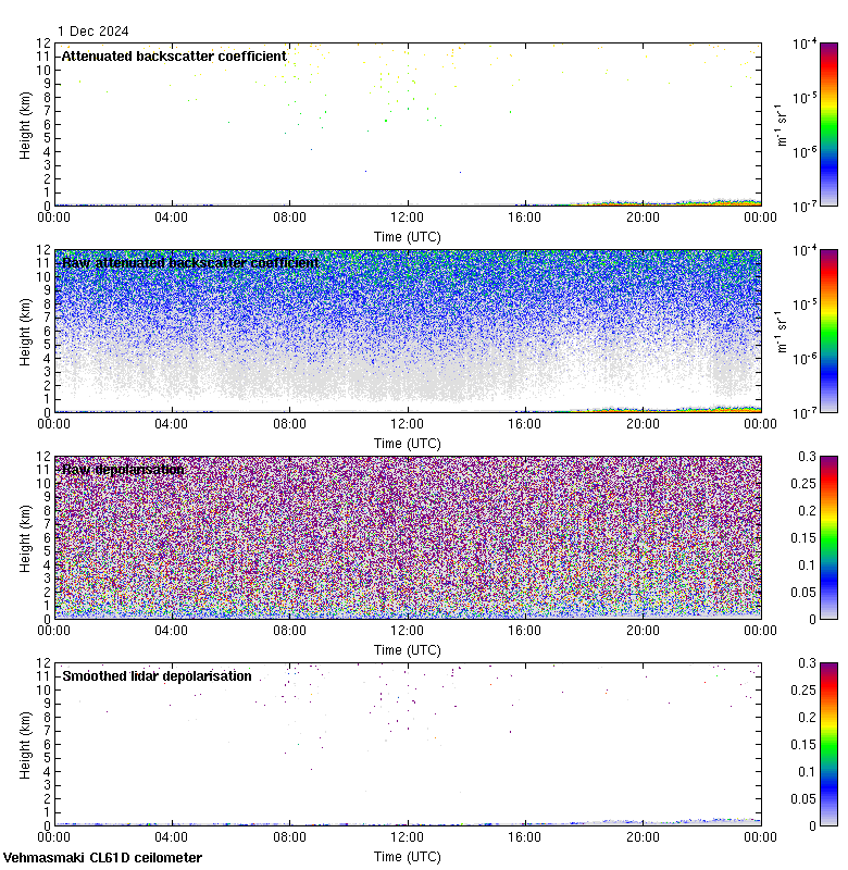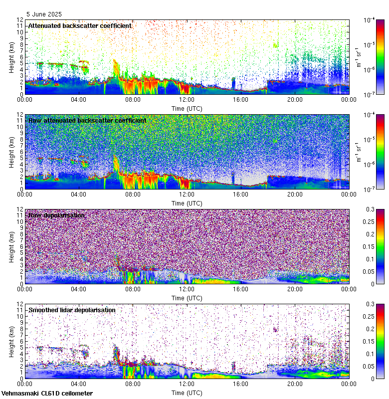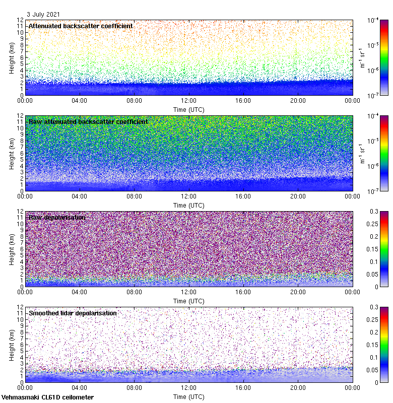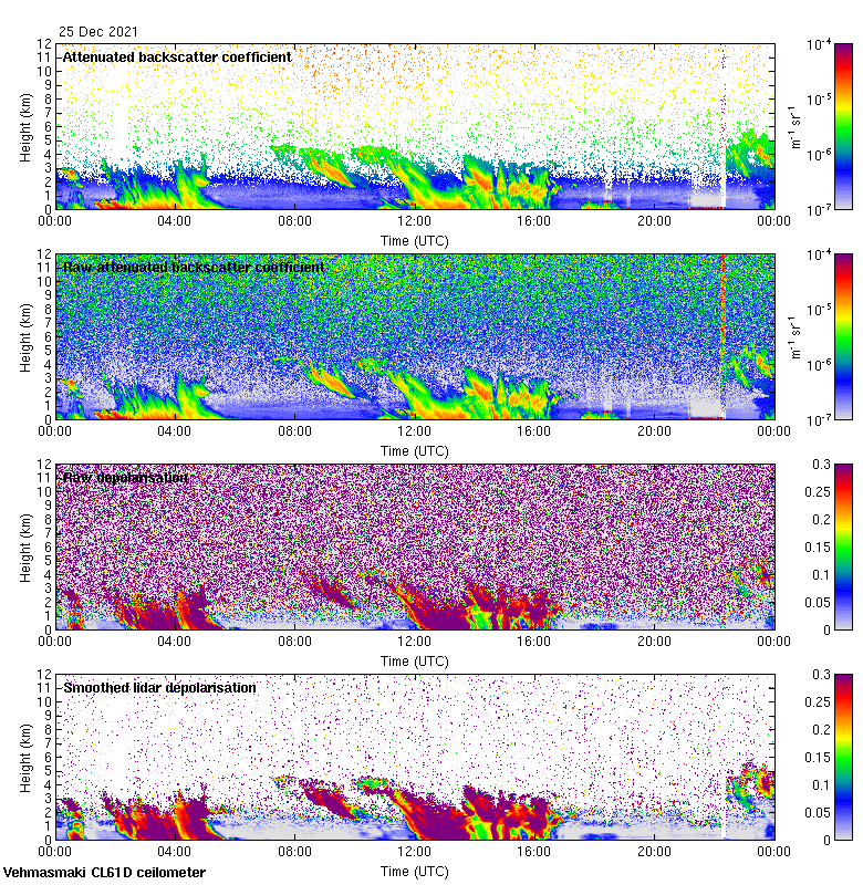 This page contains links to the daily Vehmasmaki Vaisala CL61D ceilometer images created at Kumpula.