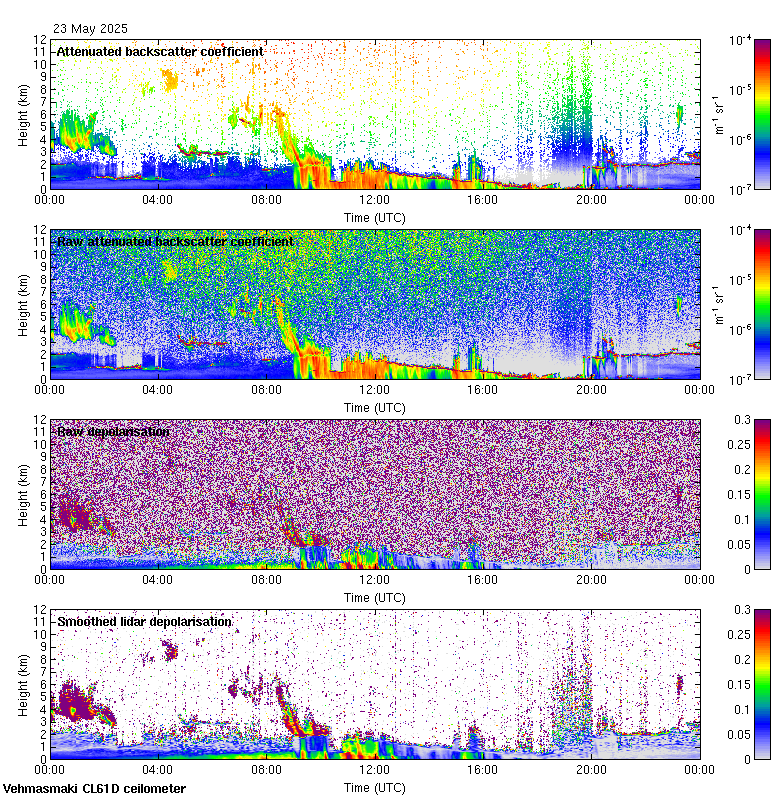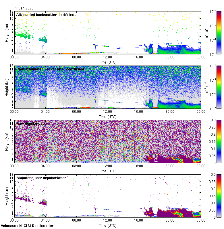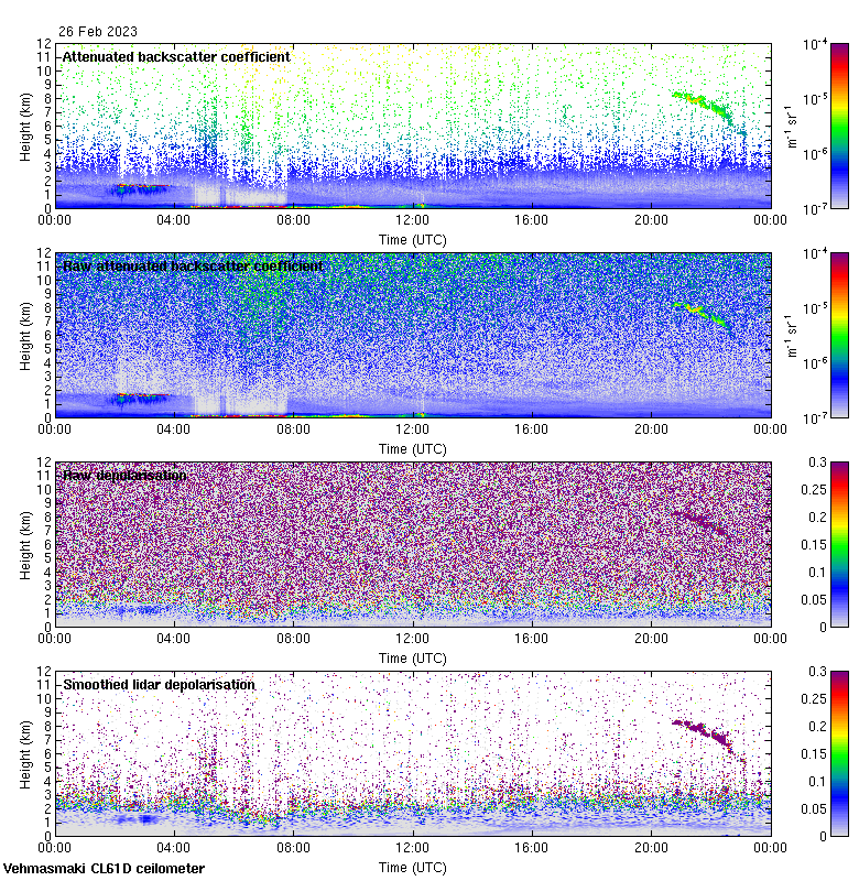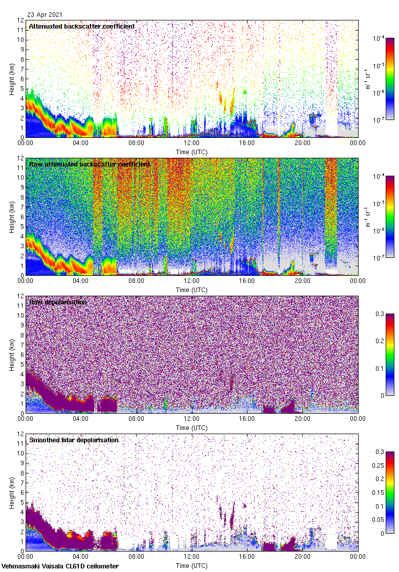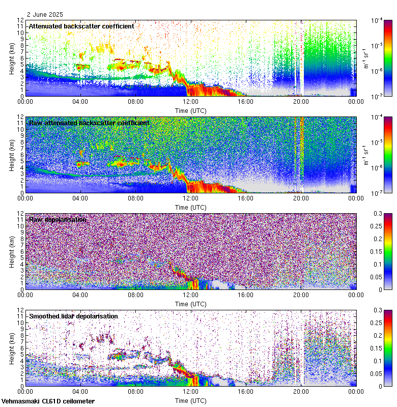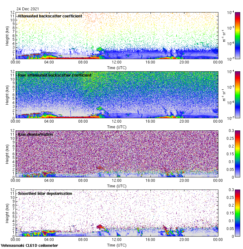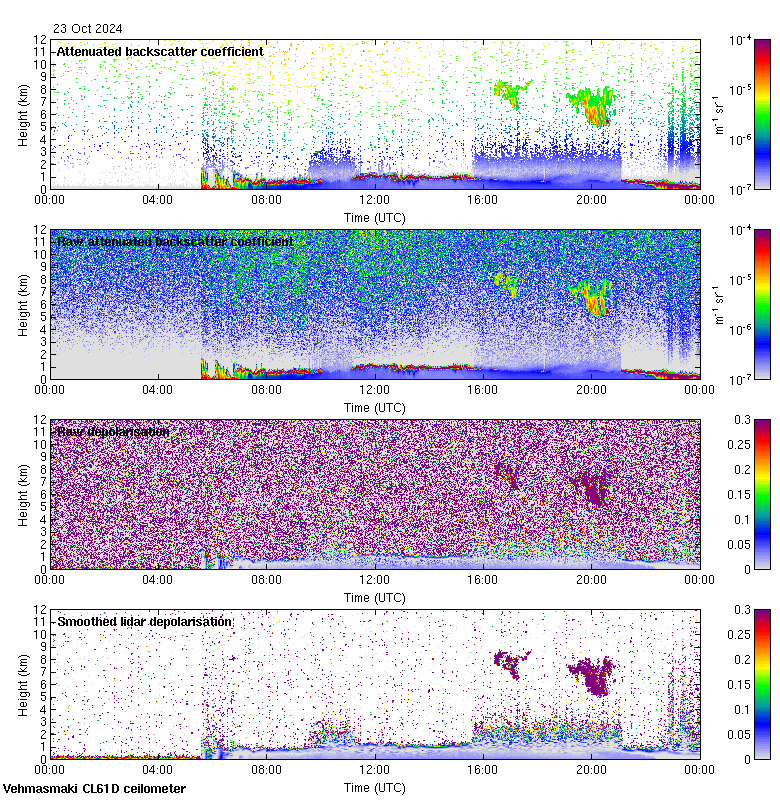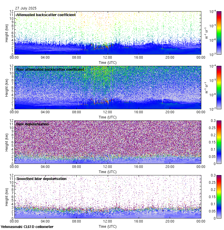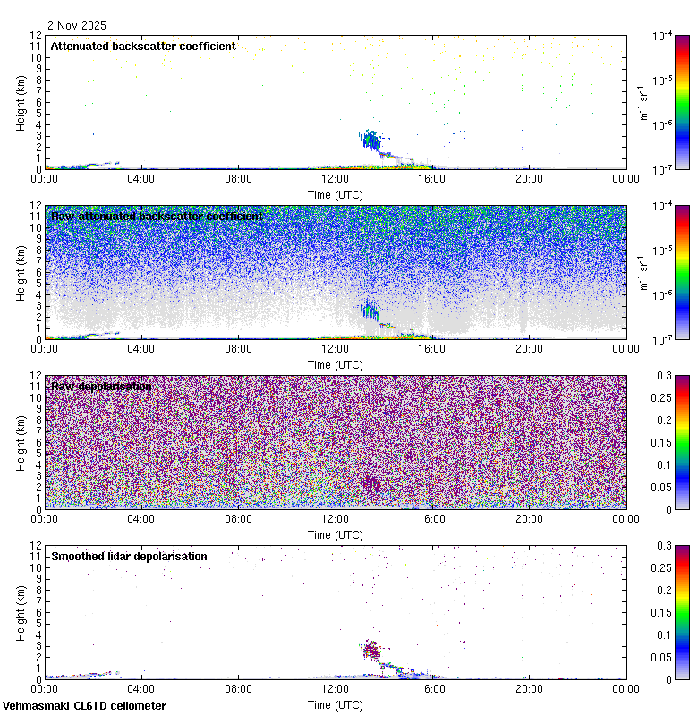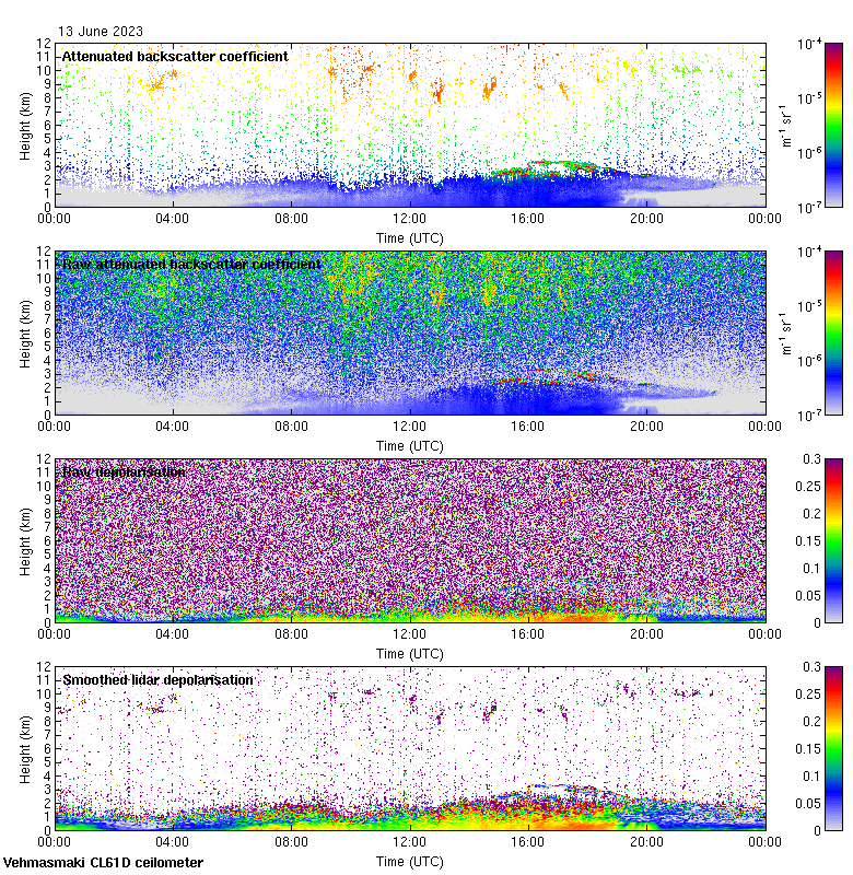 This page contains links to the daily Vehmasmaki Vaisala CL61D ceilometer images created at Kumpula.