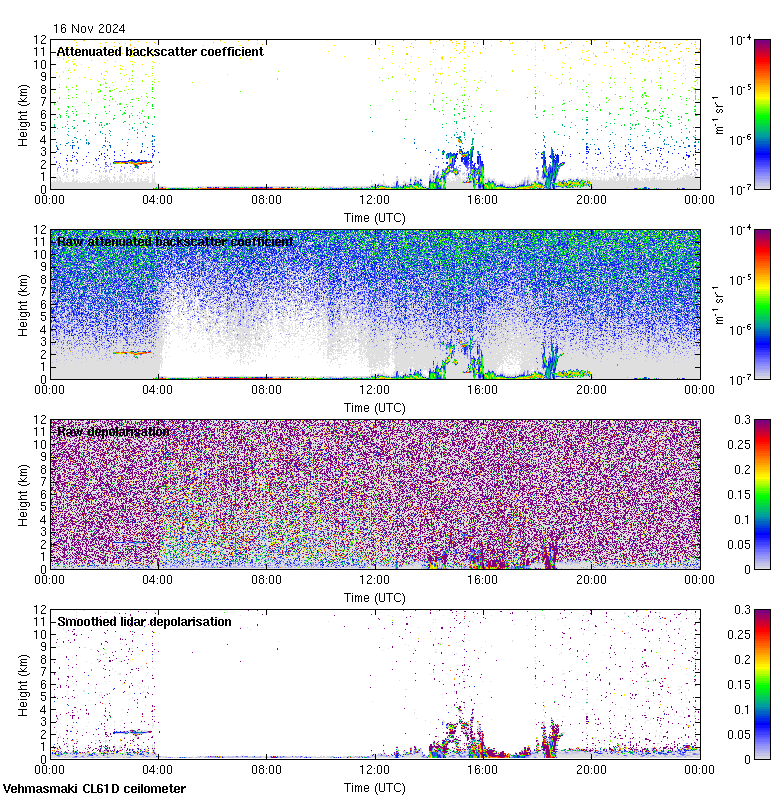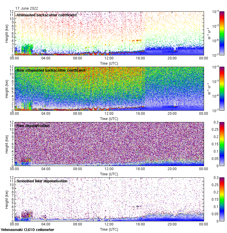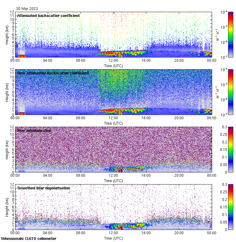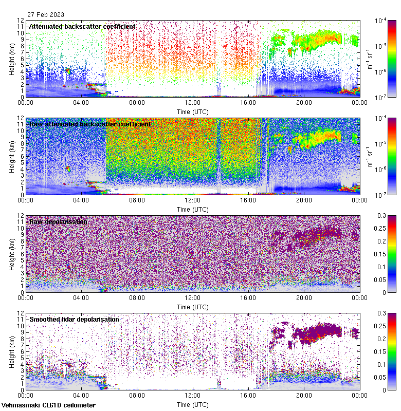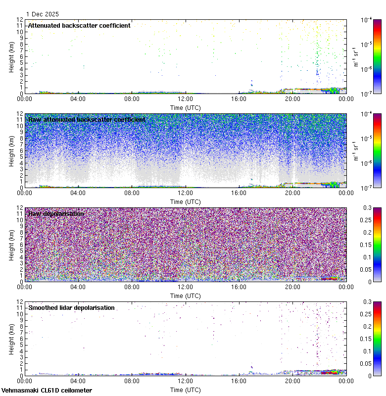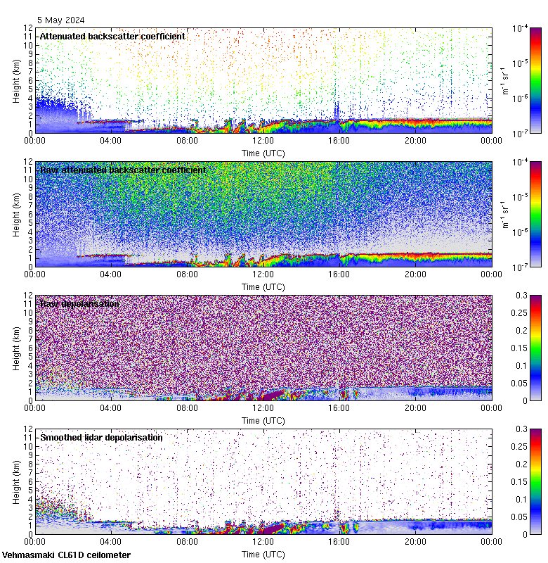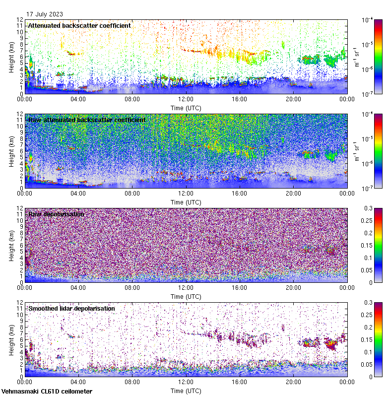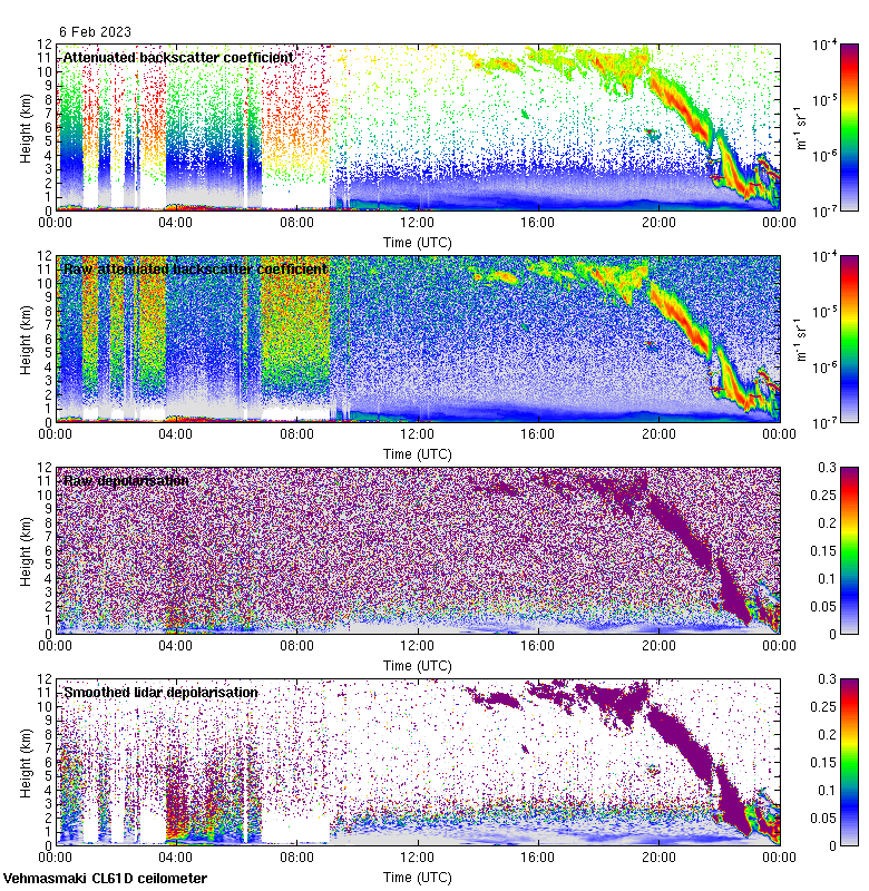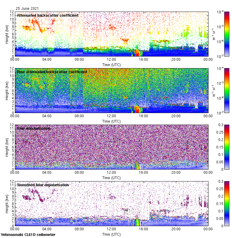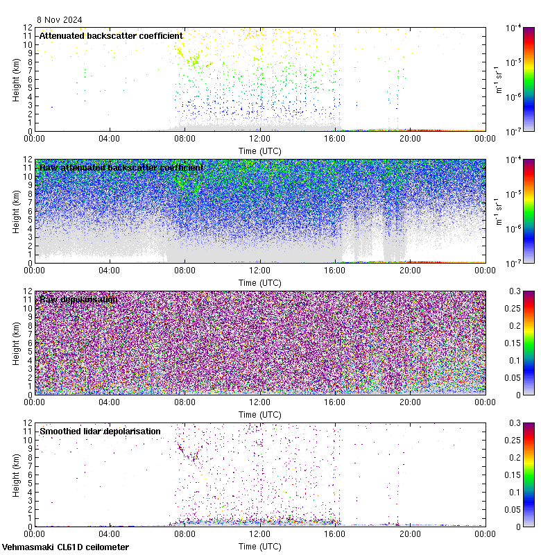 This page contains links to the daily Vehmasmaki Vaisala CL61D ceilometer images created at Kumpula.