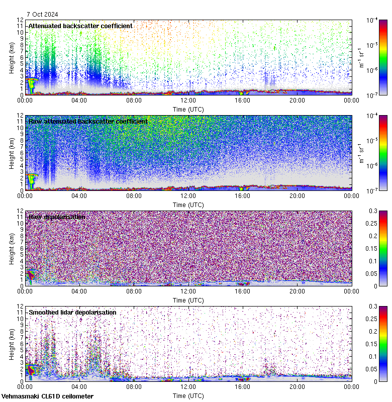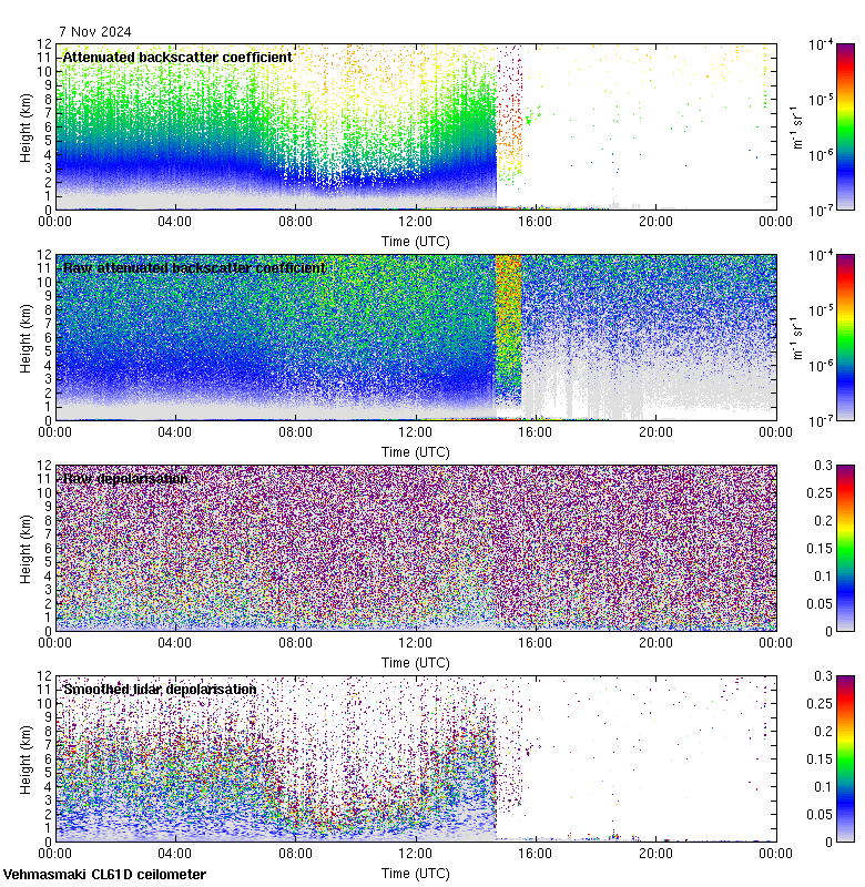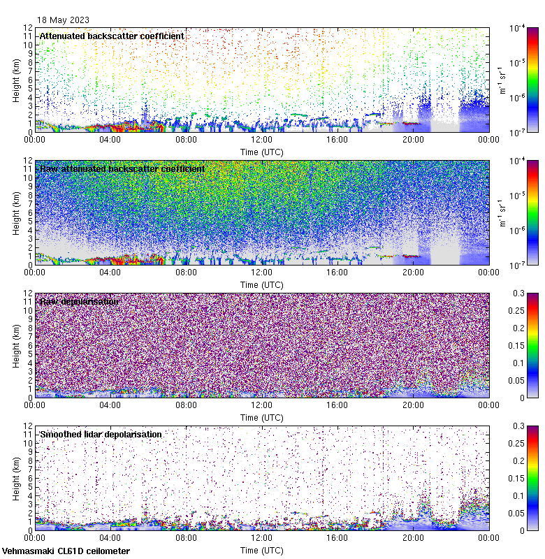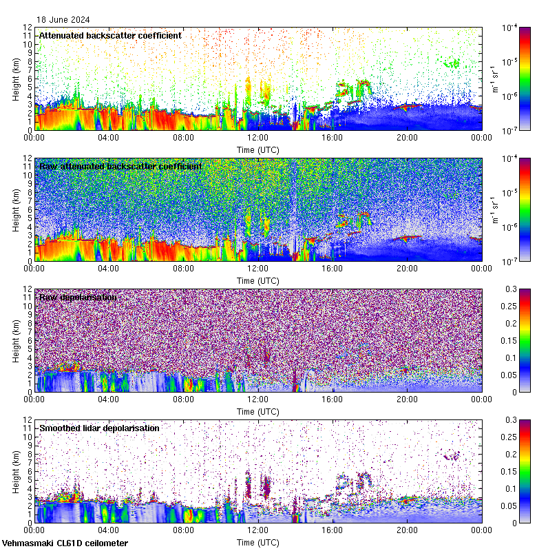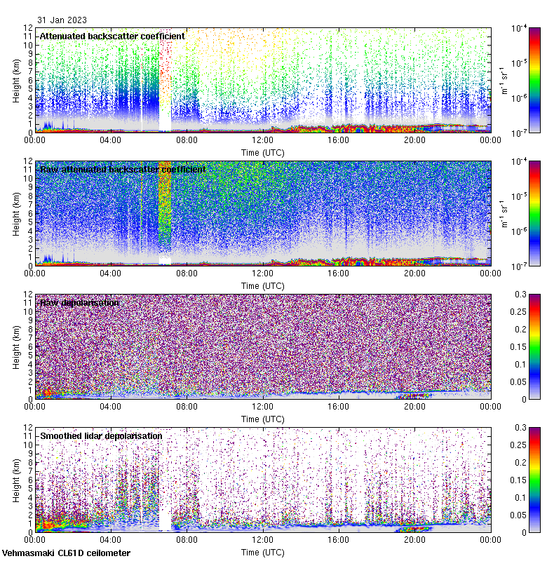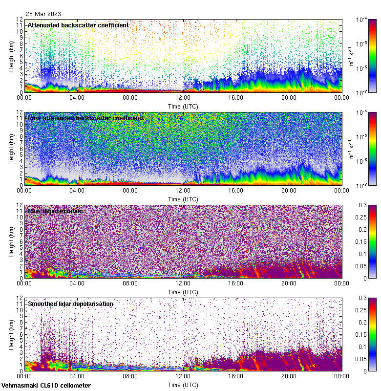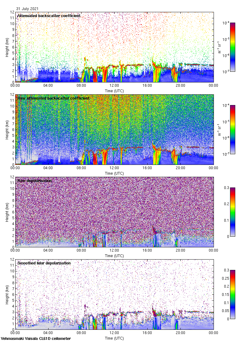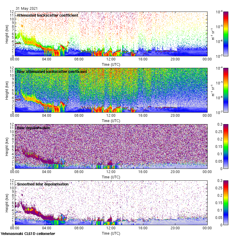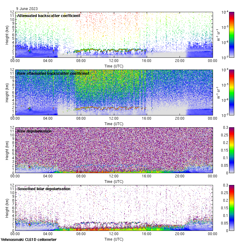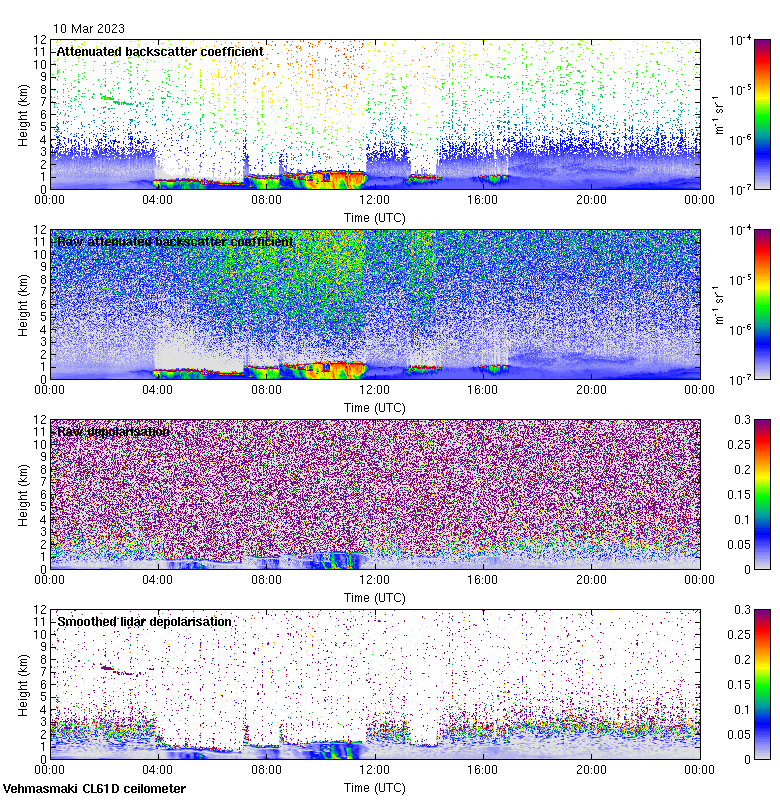 This page contains links to the daily Vehmasmaki Vaisala CL61D ceilometer images created at Kumpula.