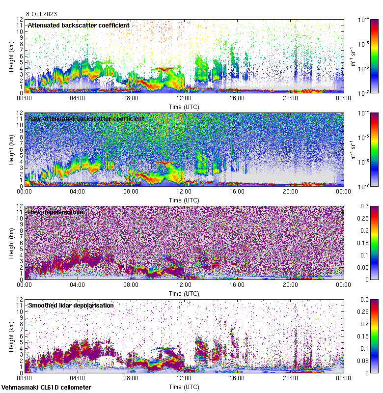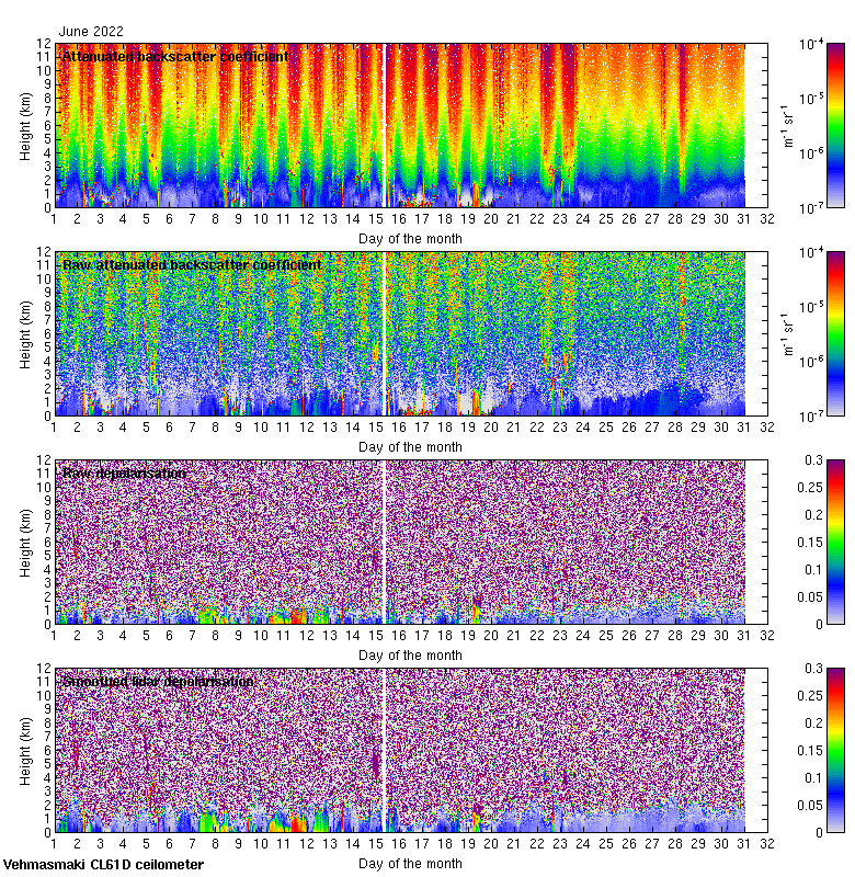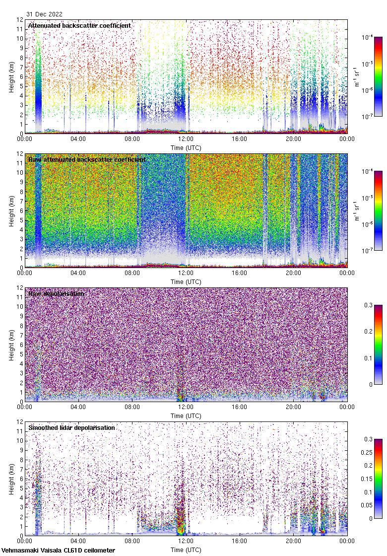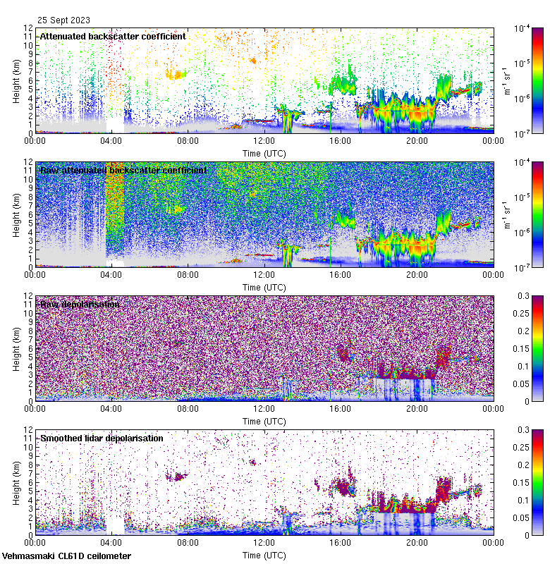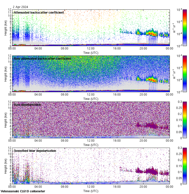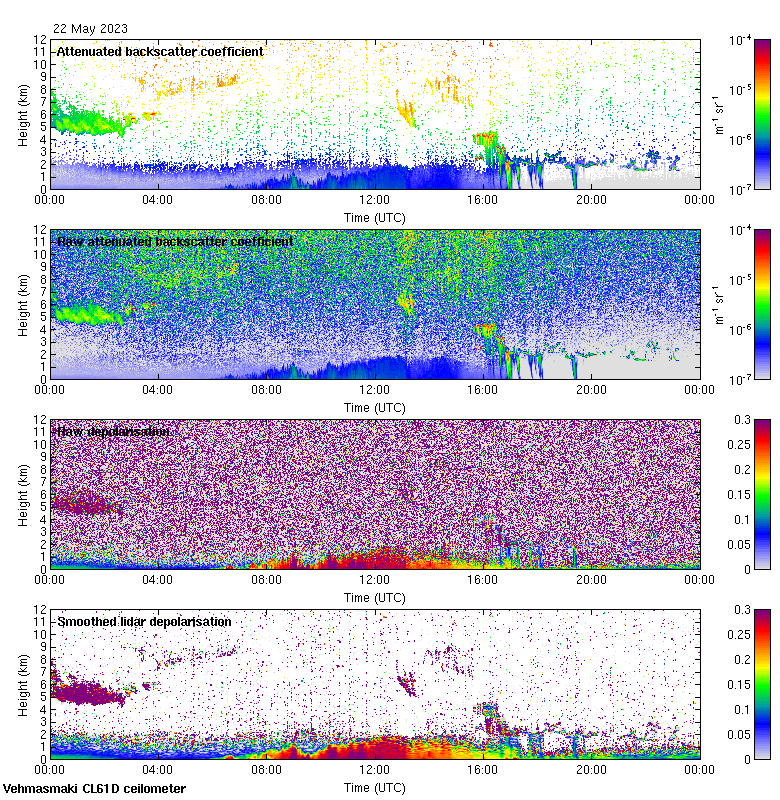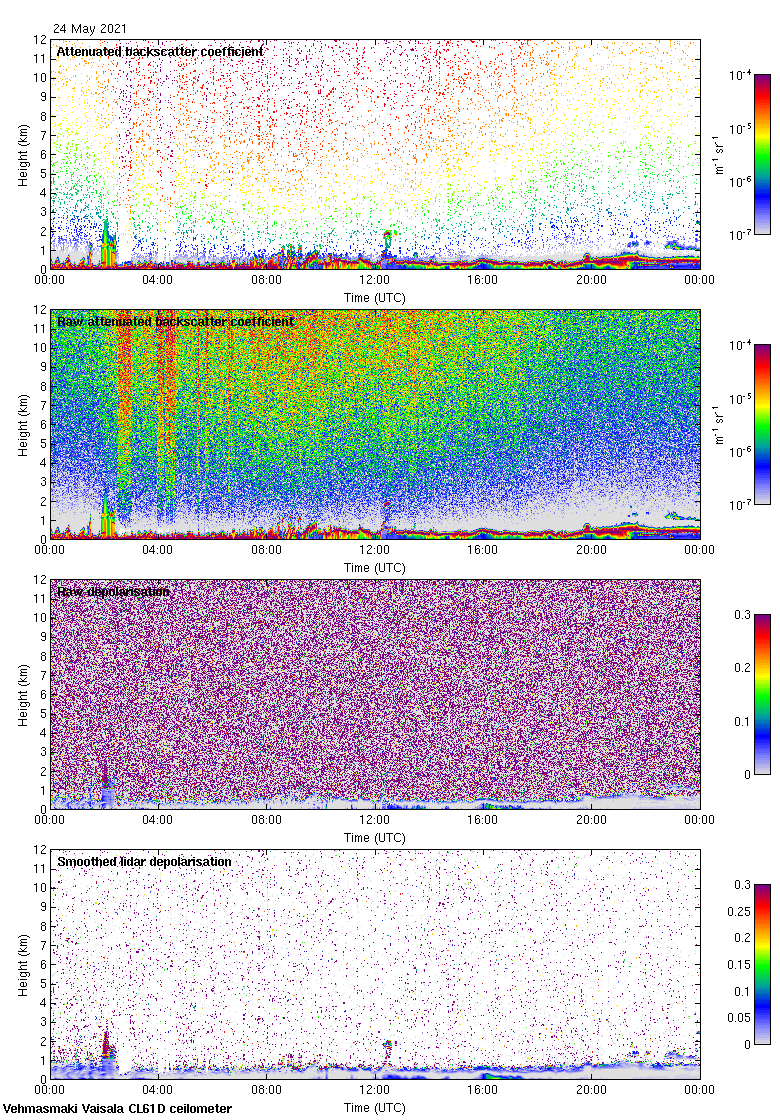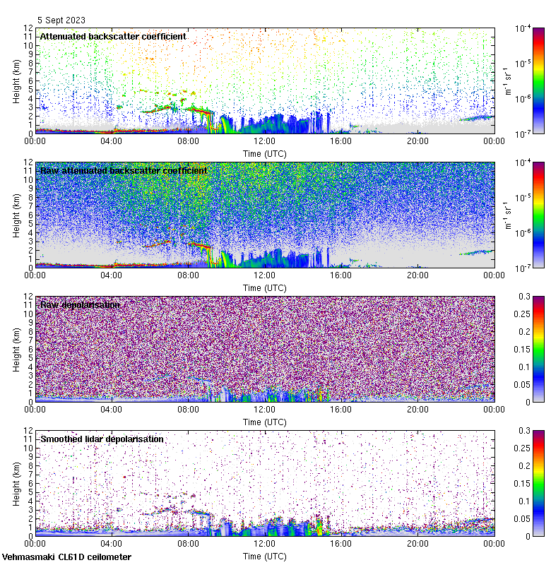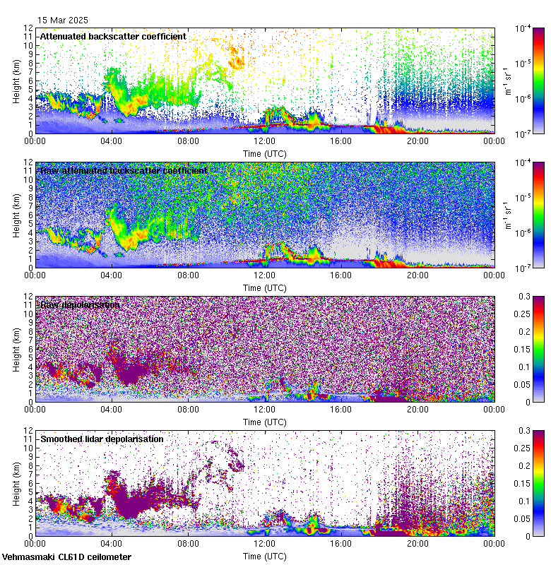 This page contains links to the daily Vehmasmaki Vaisala CL61D ceilometer images created at Kumpula.