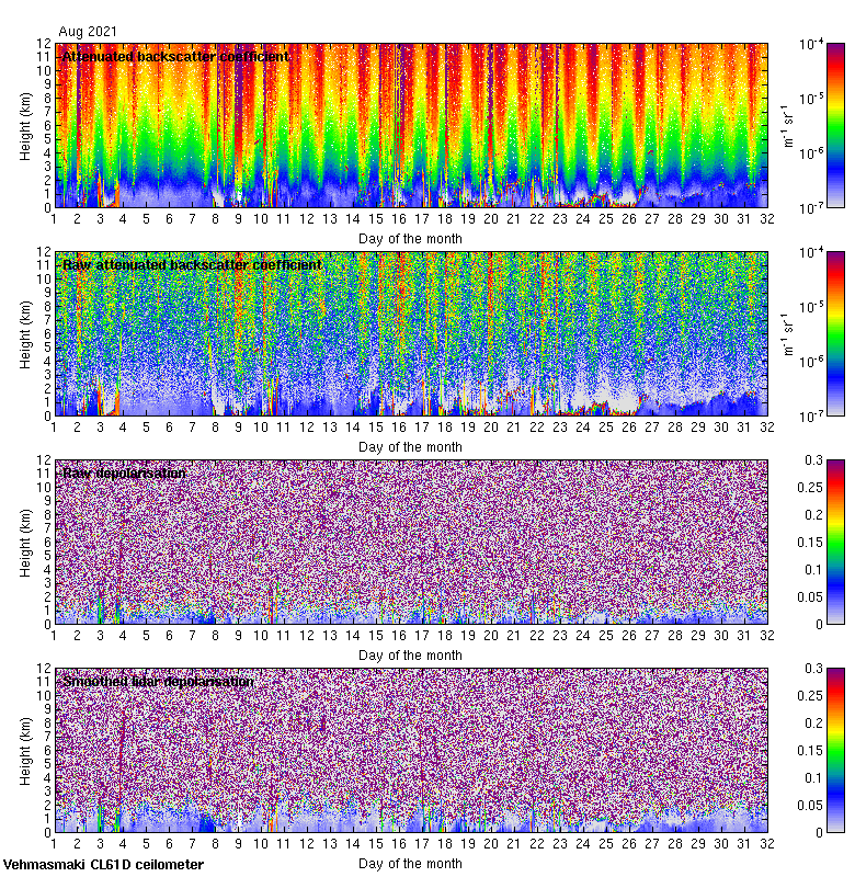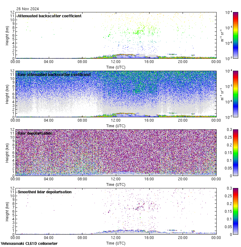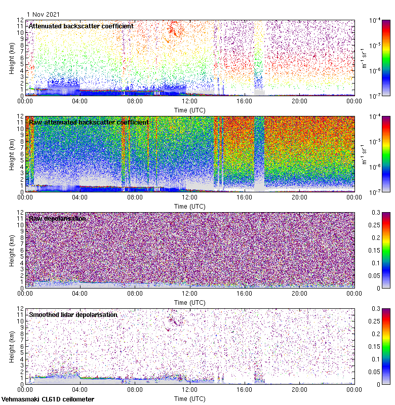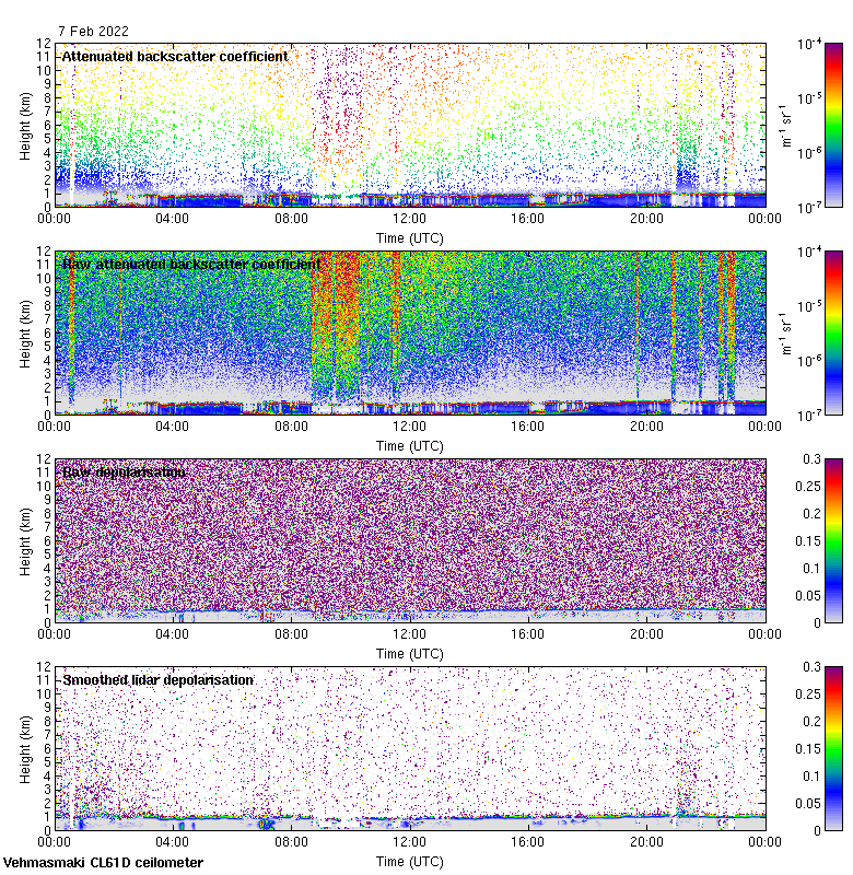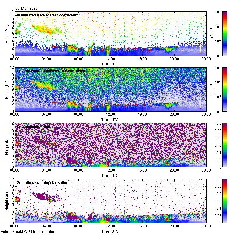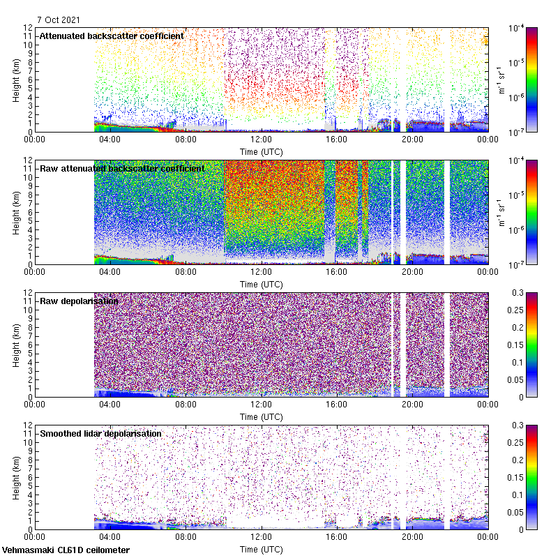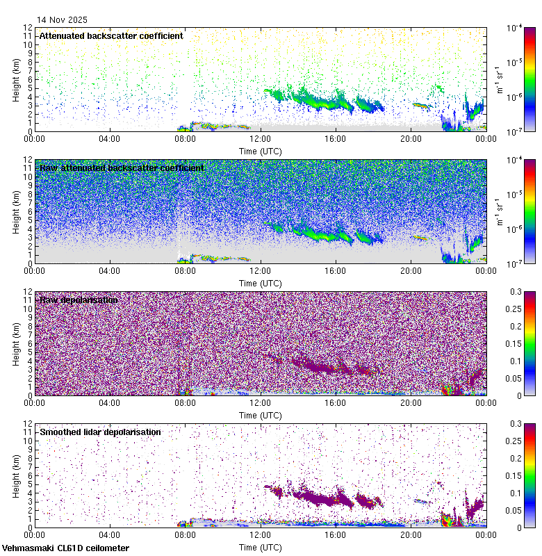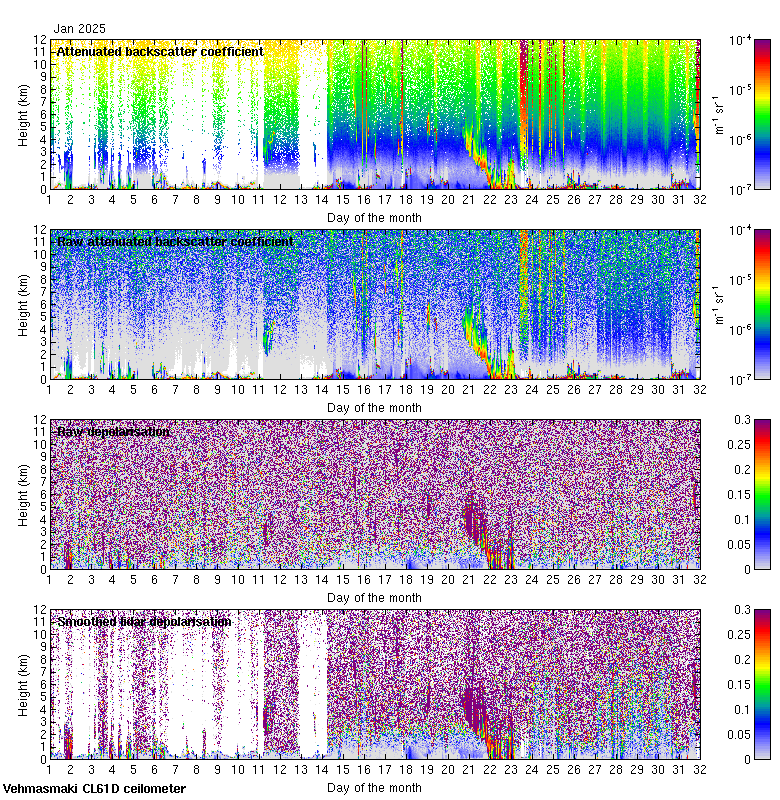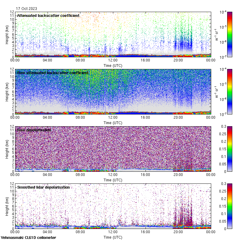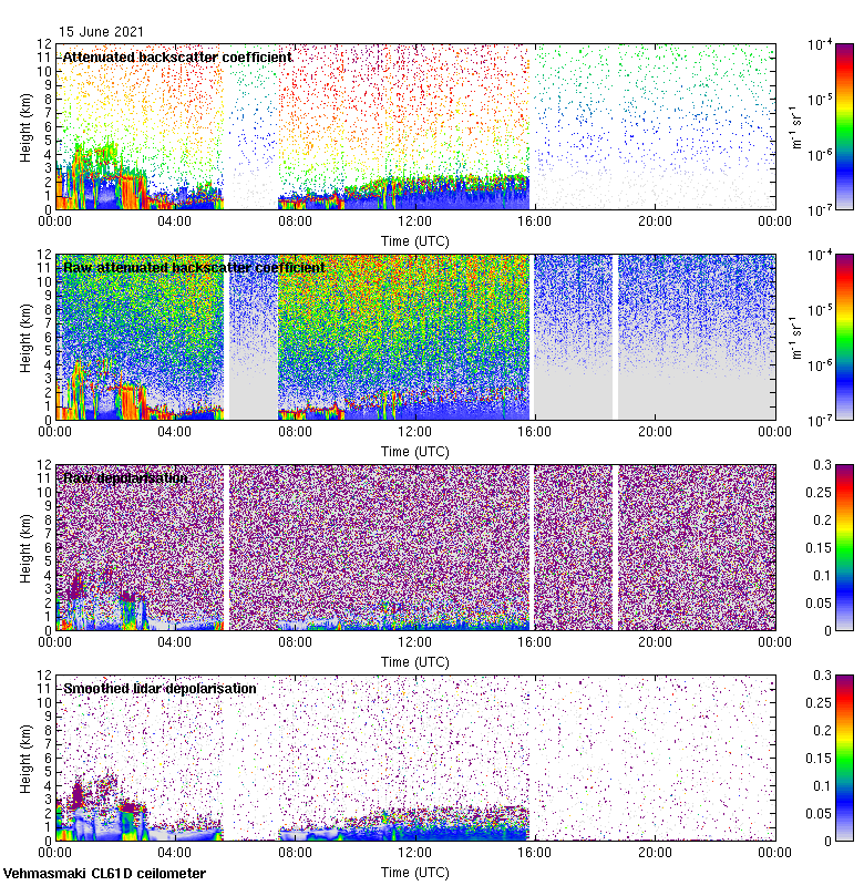 This page contains links to the daily Vehmasmaki Vaisala CL61D ceilometer images created at Kumpula.