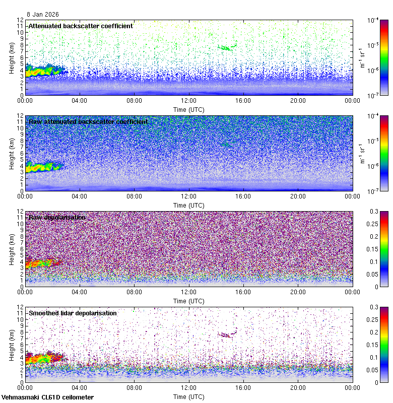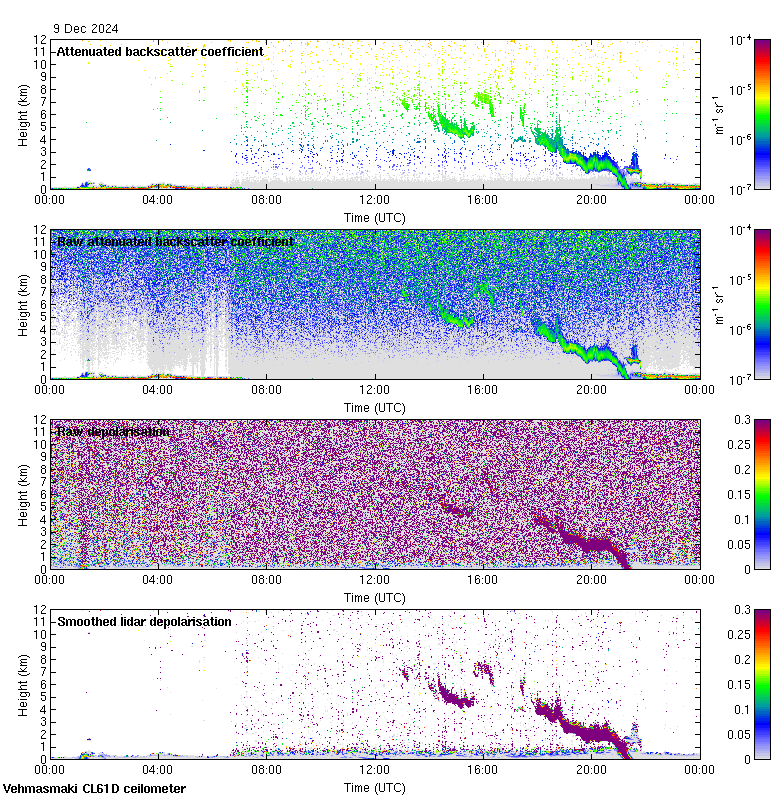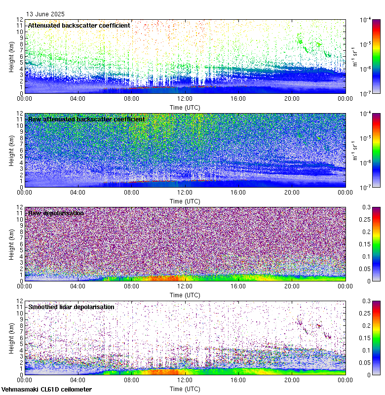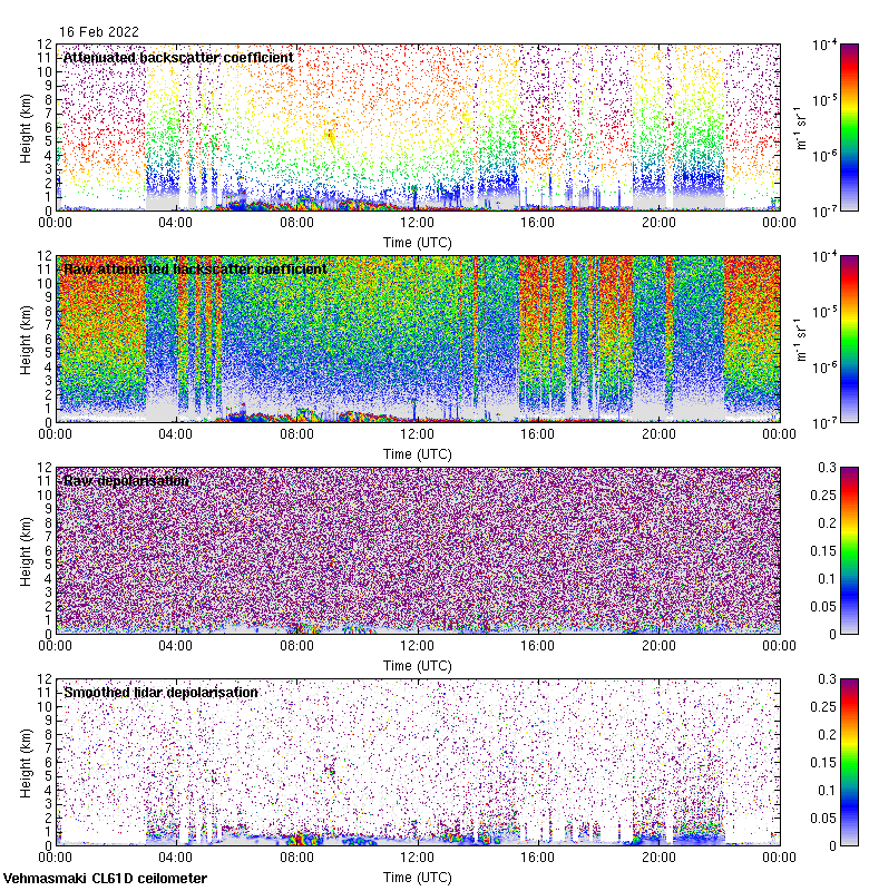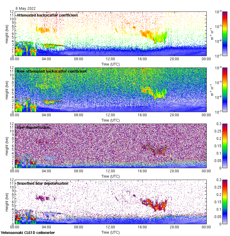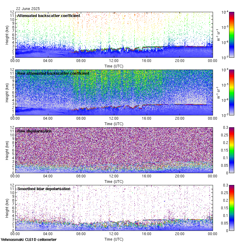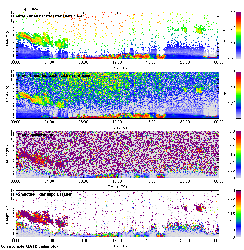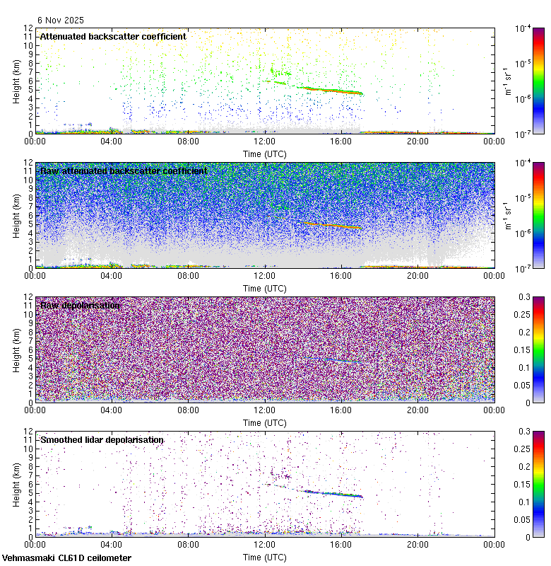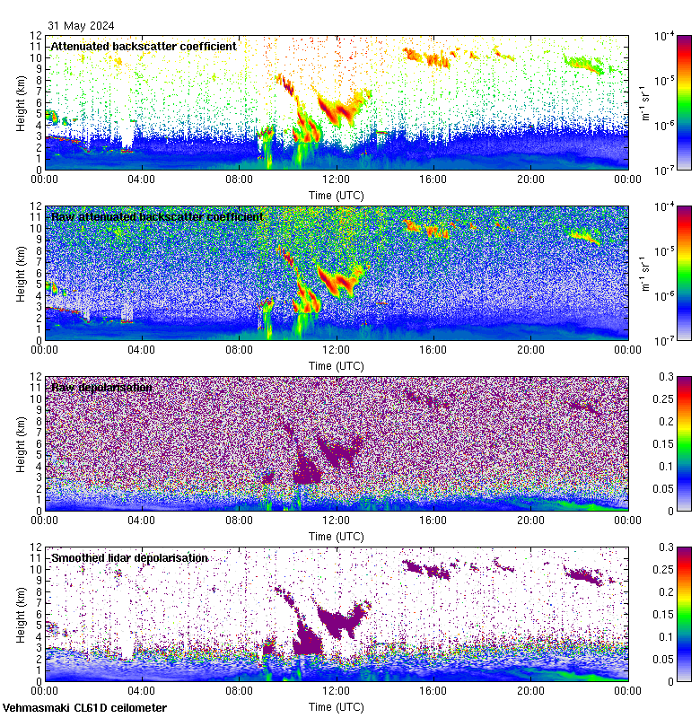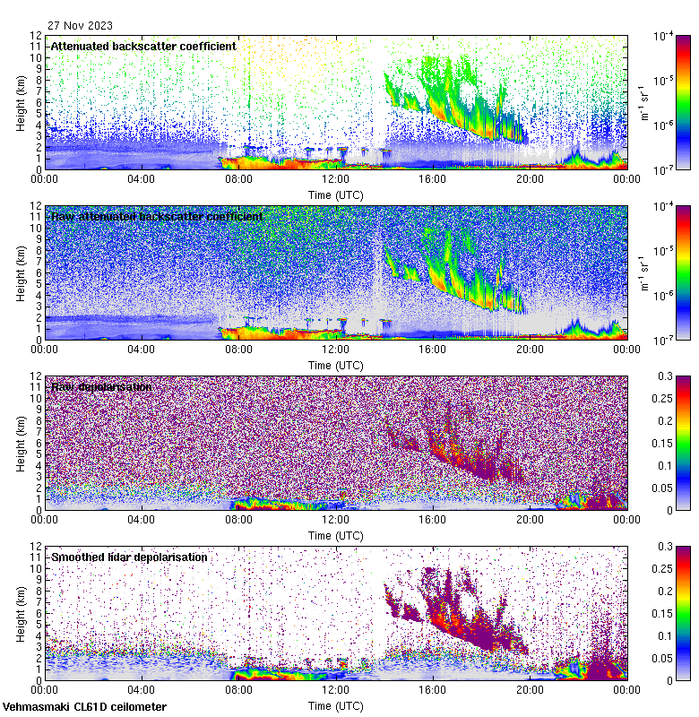 This page contains links to the daily Vehmasmaki Vaisala CL61D ceilometer images created at Kumpula.
