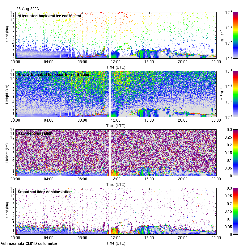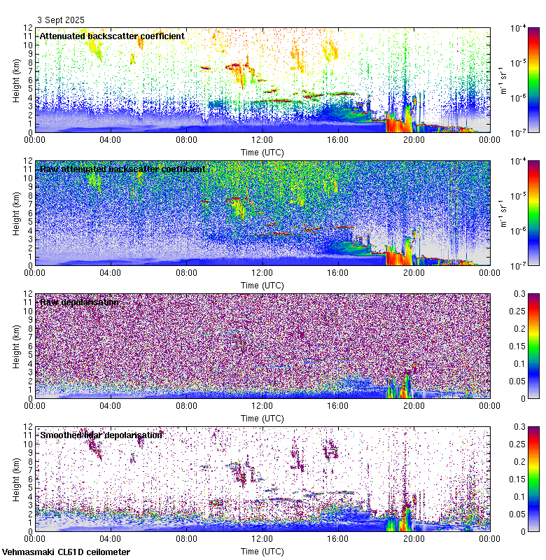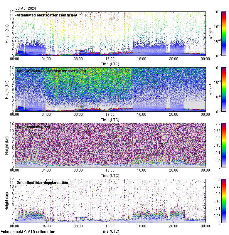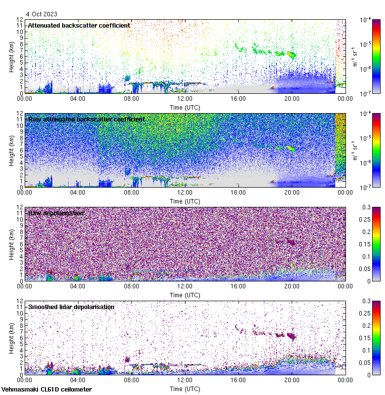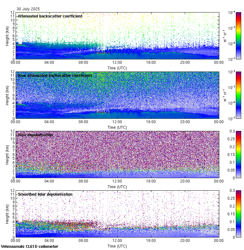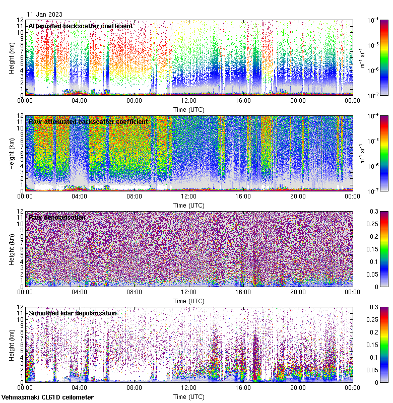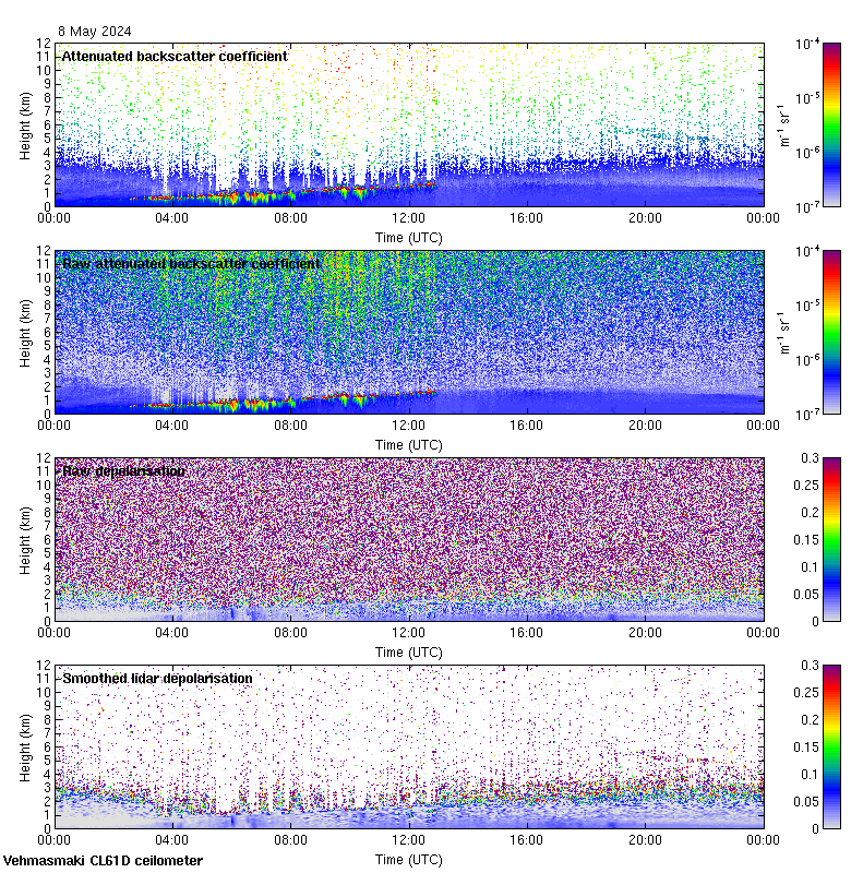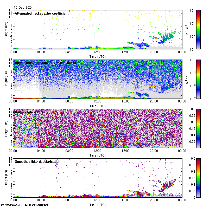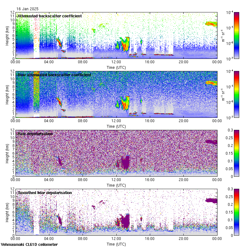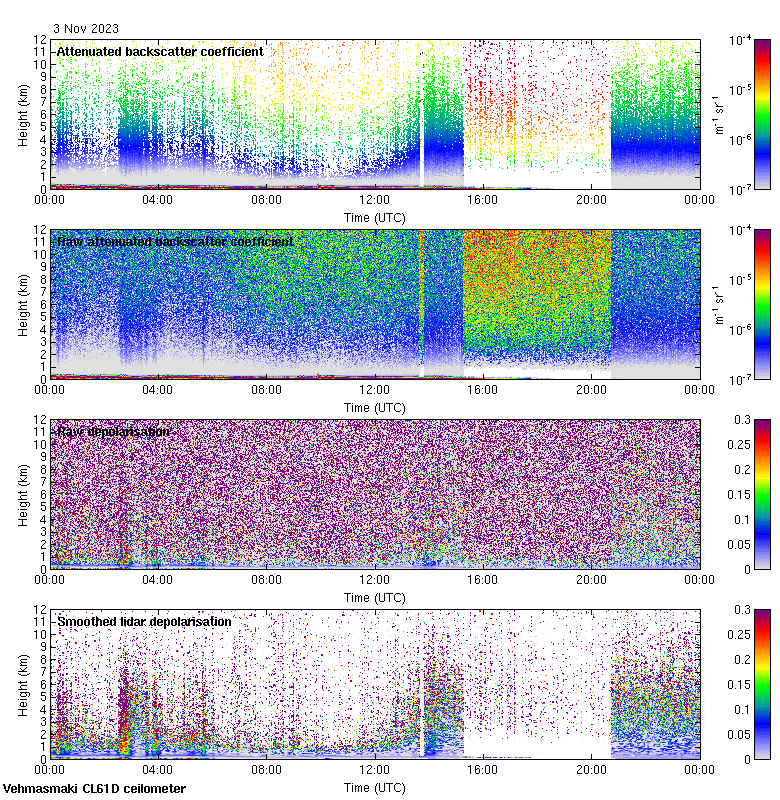 This page contains links to the daily Vehmasmaki Vaisala CL61D ceilometer images created at Kumpula.