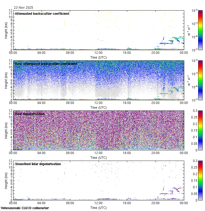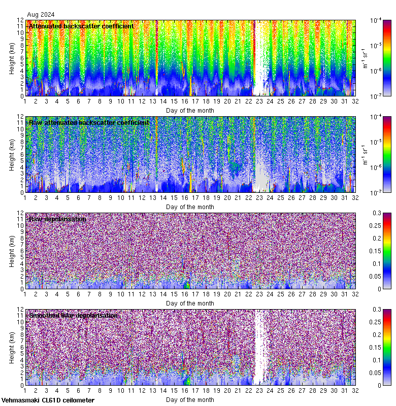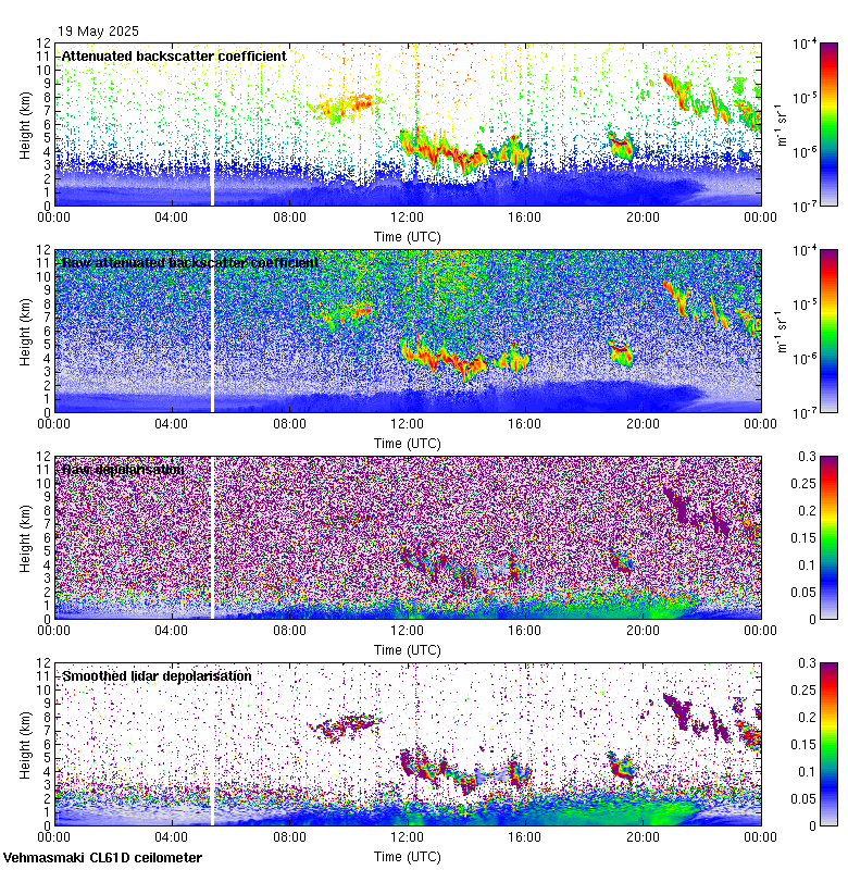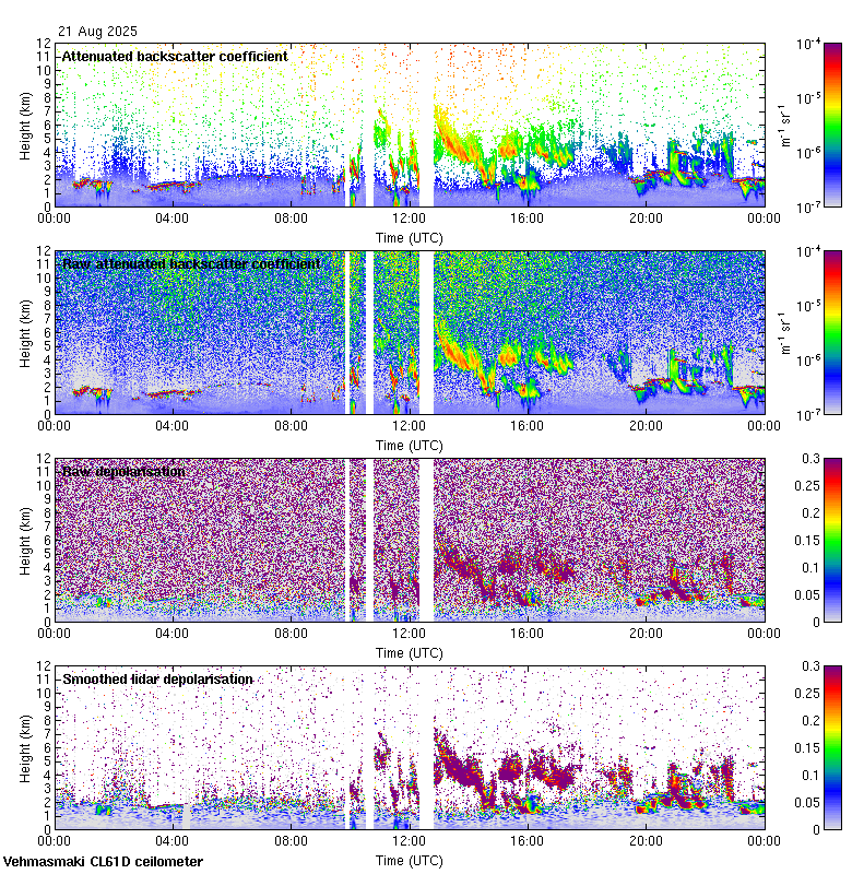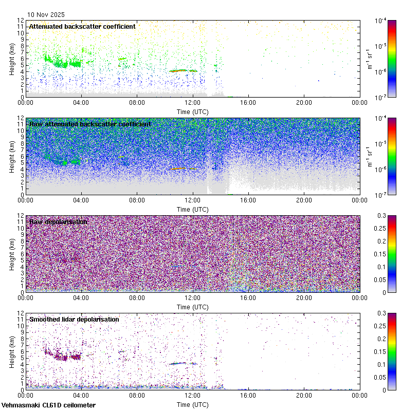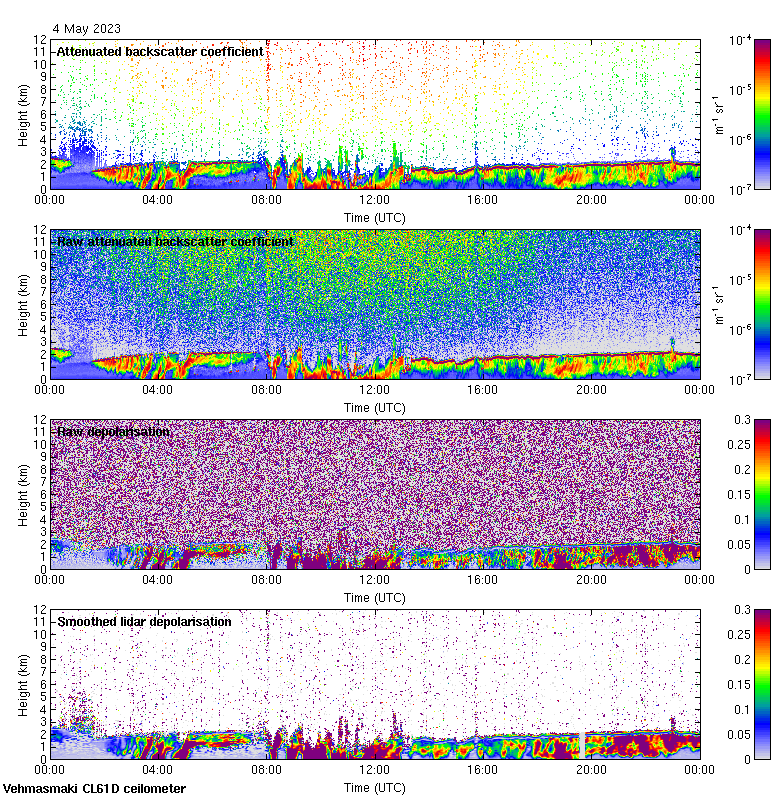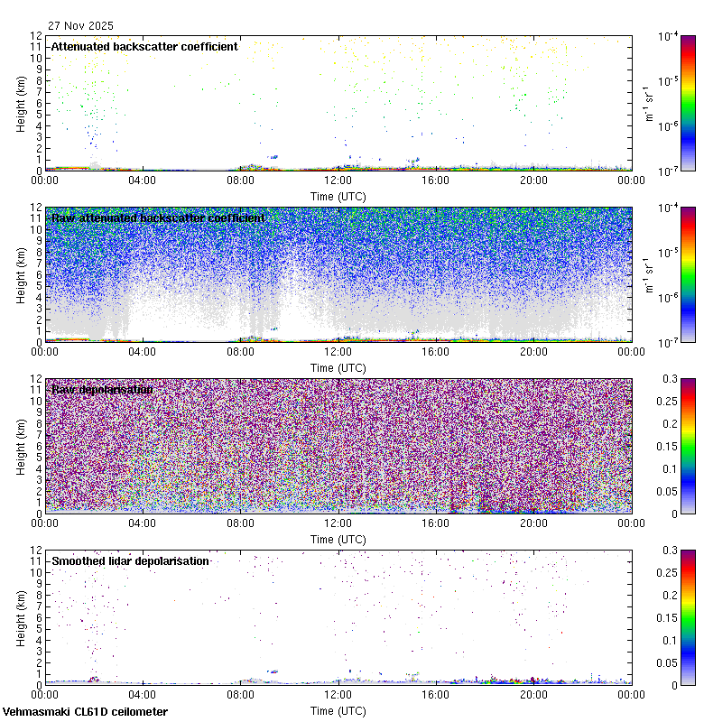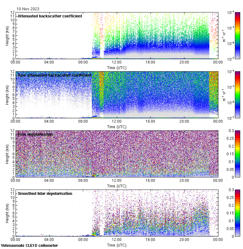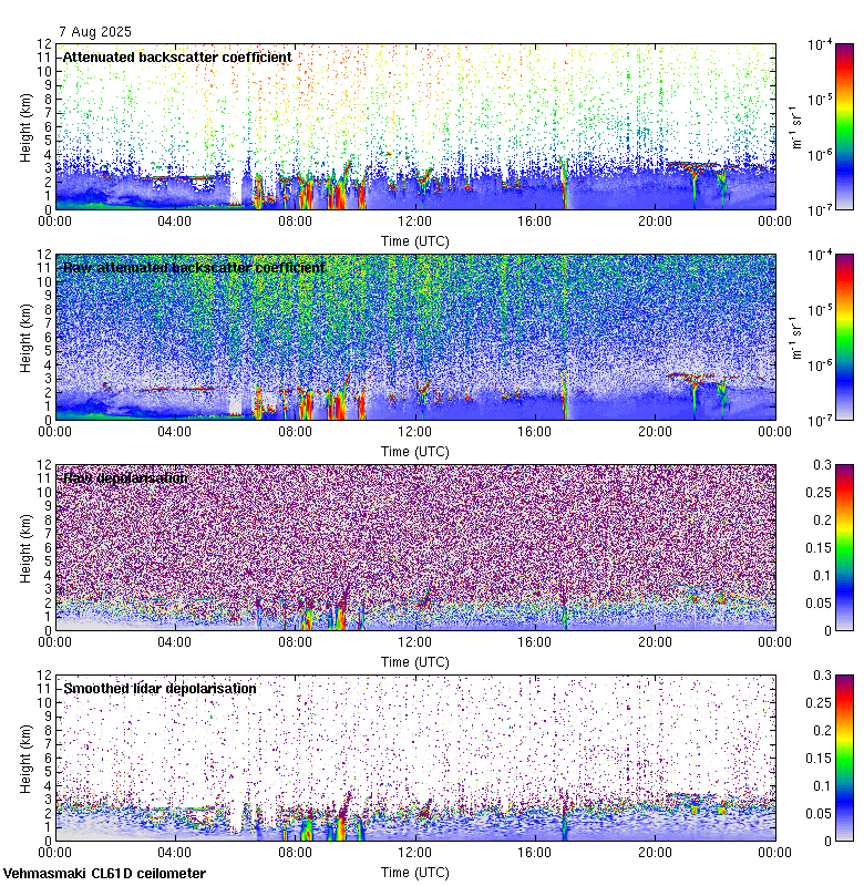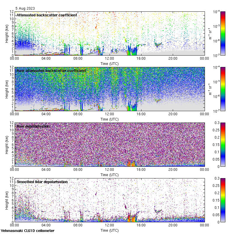 This page contains links to the daily Vehmasmaki Vaisala CL61D ceilometer images created at Kumpula.