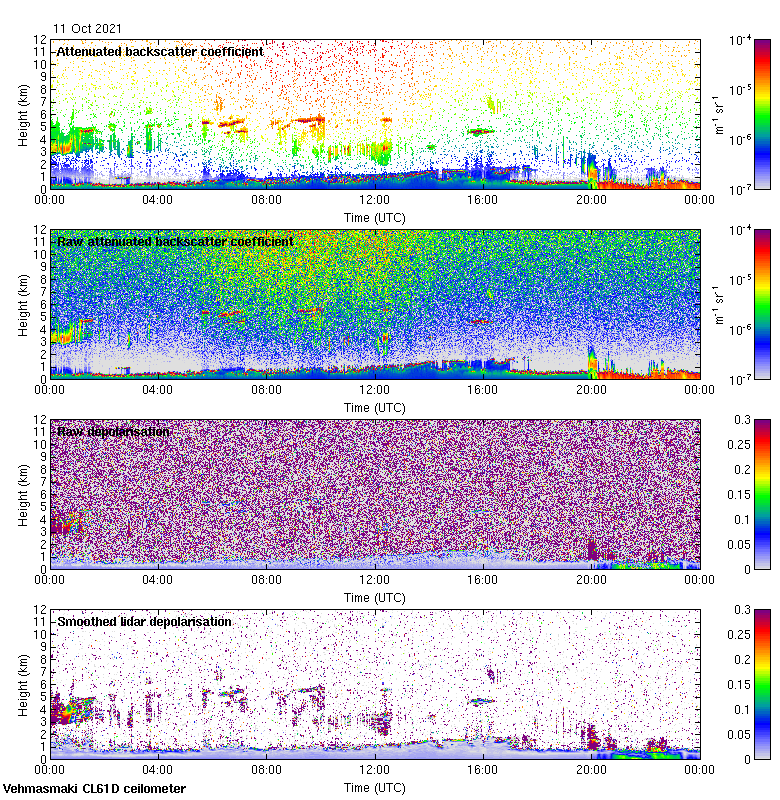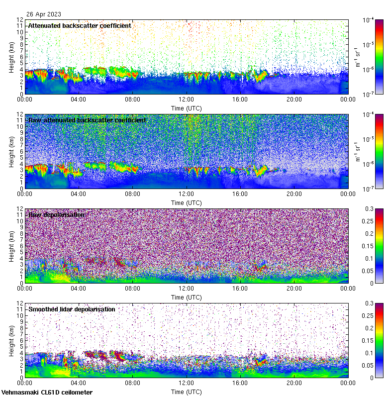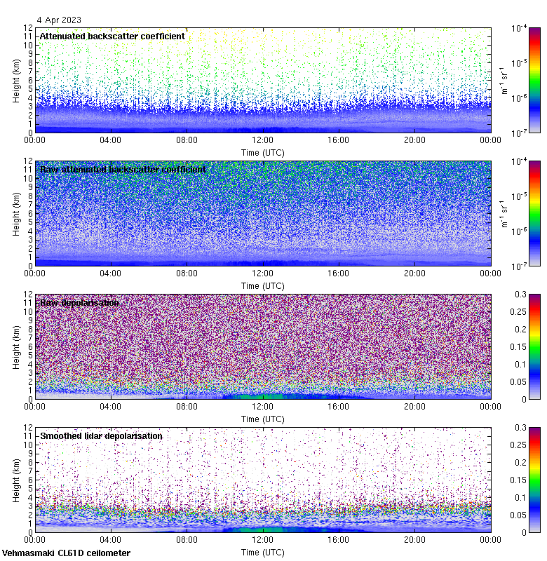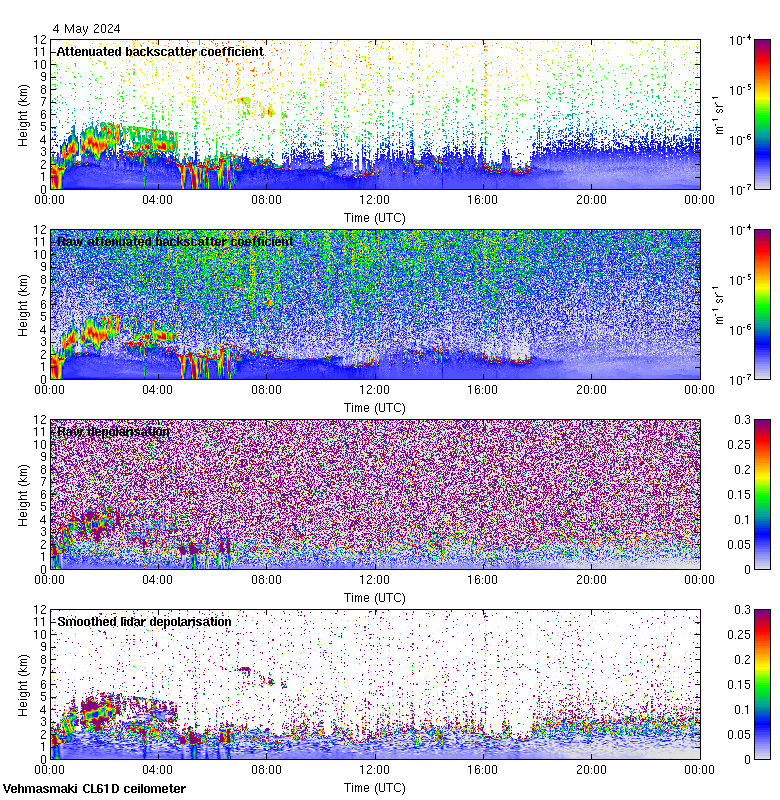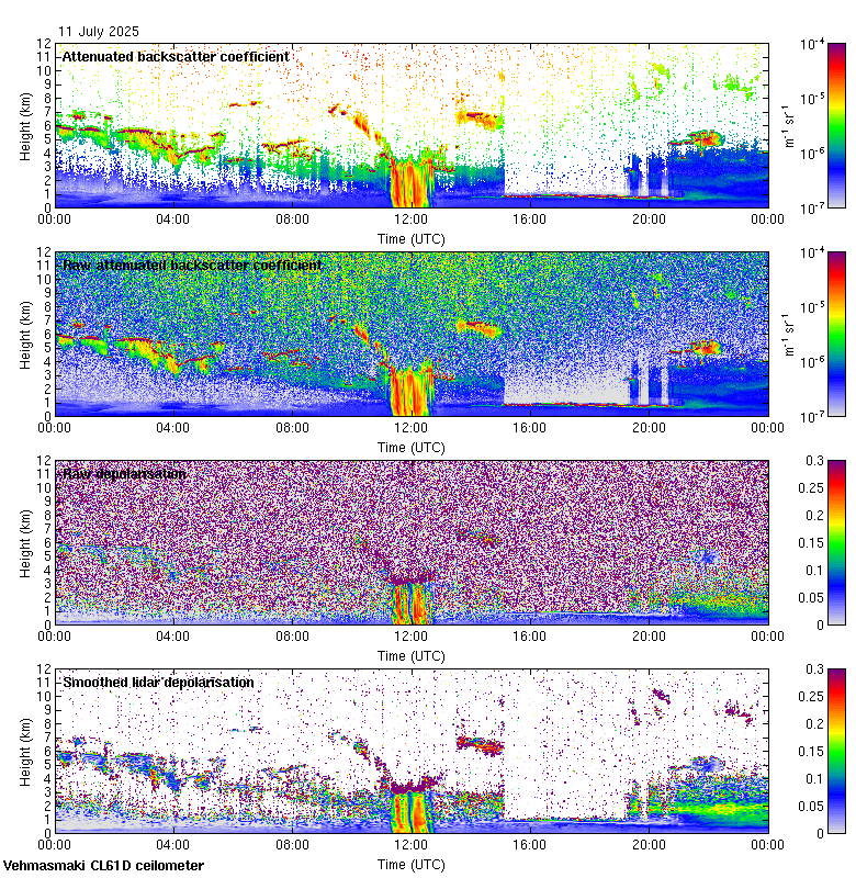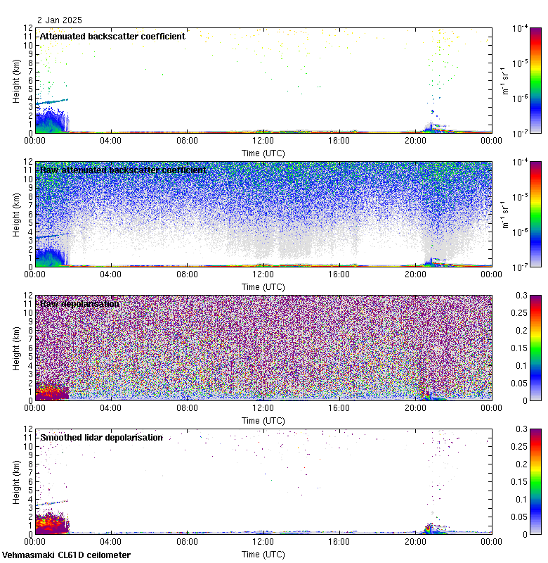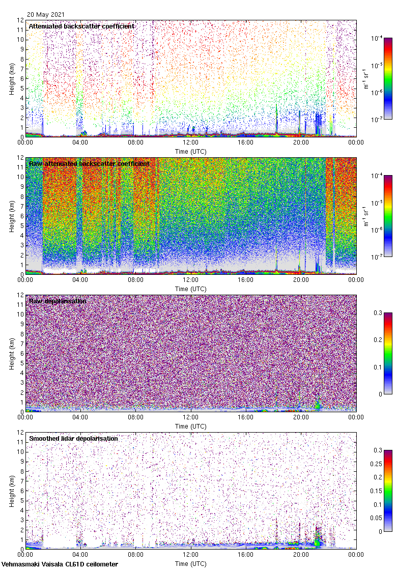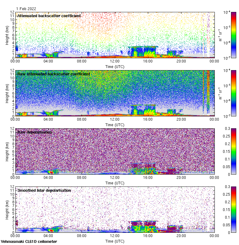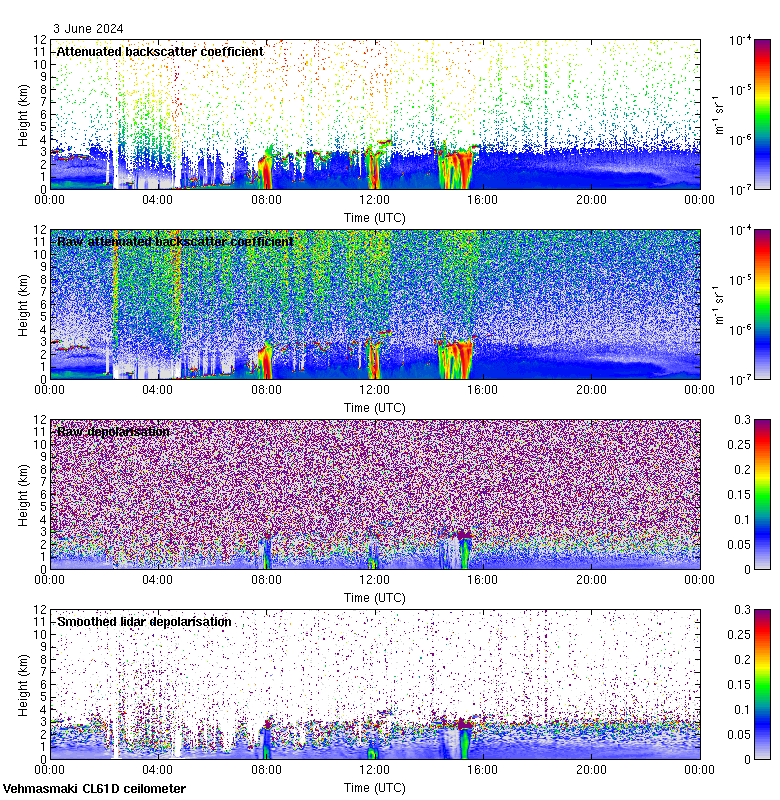 This page contains links to the daily Vehmasmaki Vaisala CL61D ceilometer images created at Kumpula.