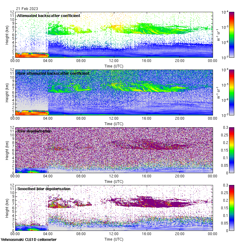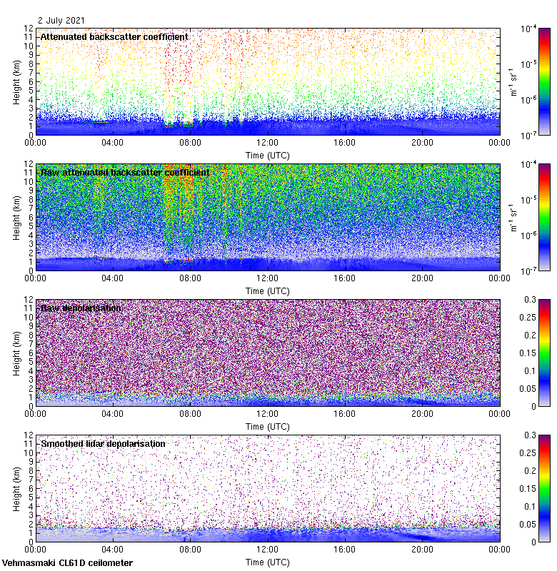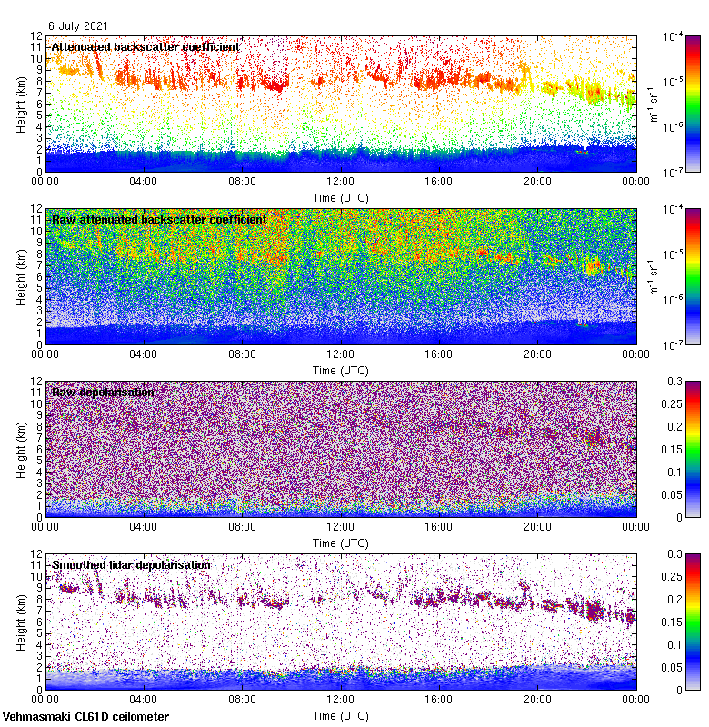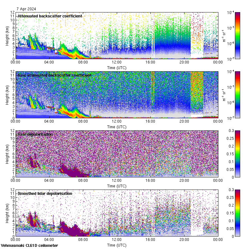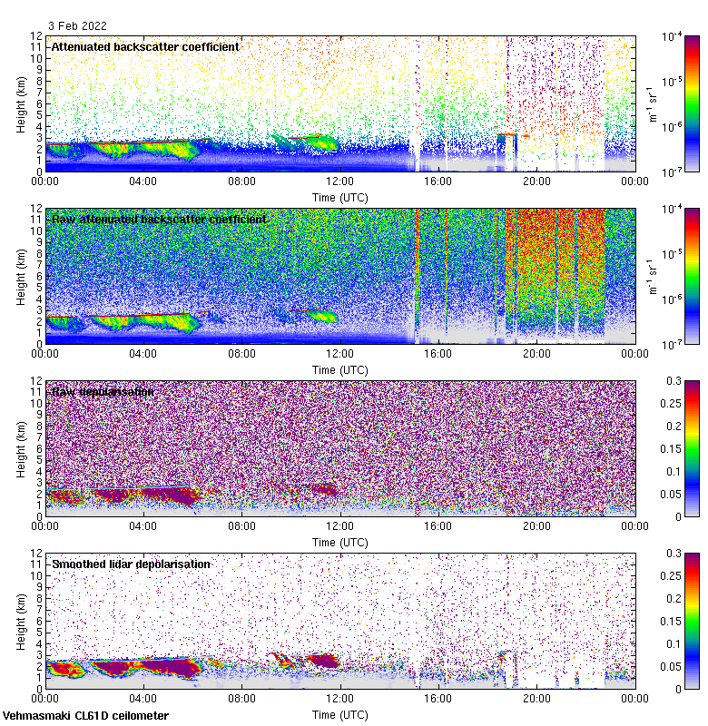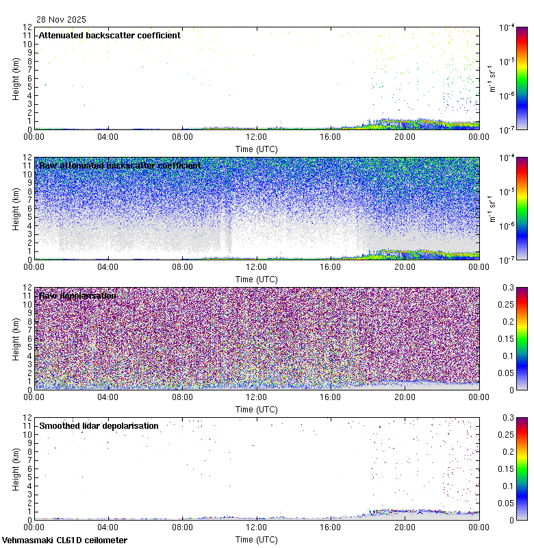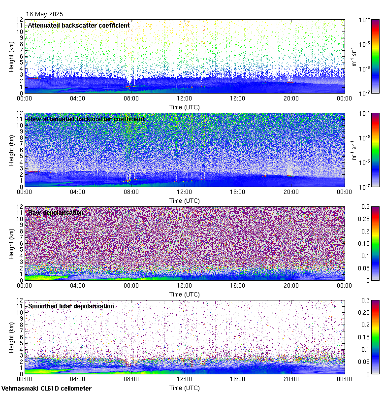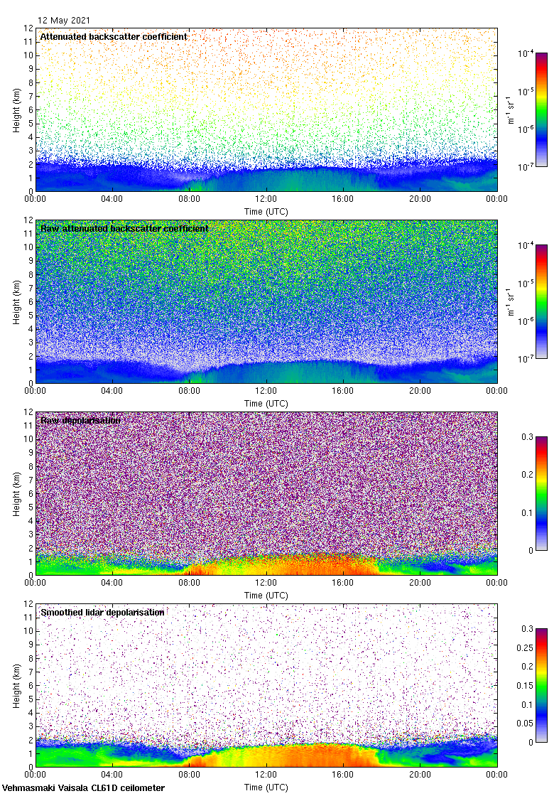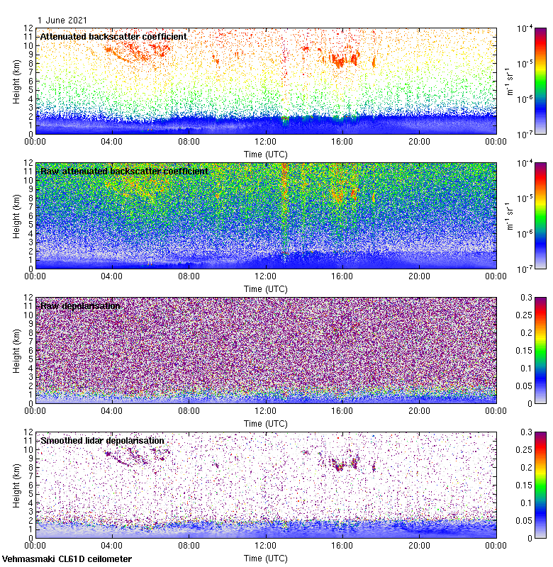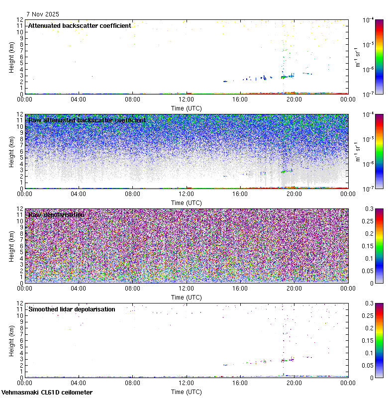 This page contains links to the daily Vehmasmaki Vaisala CL61D ceilometer images created at Kumpula.