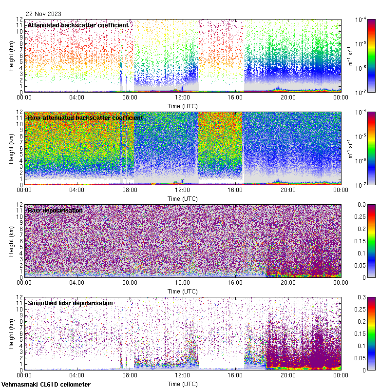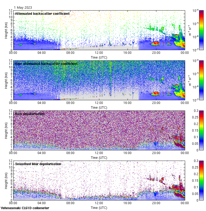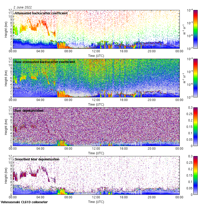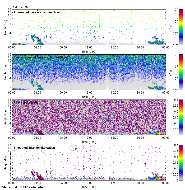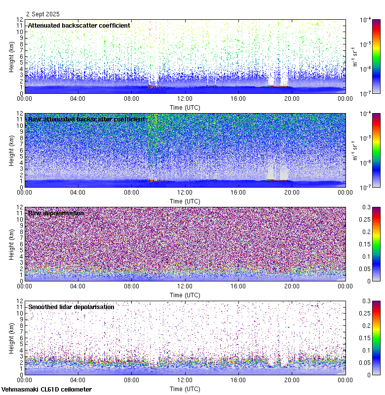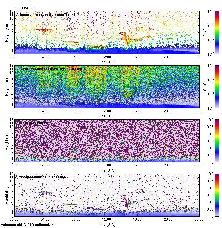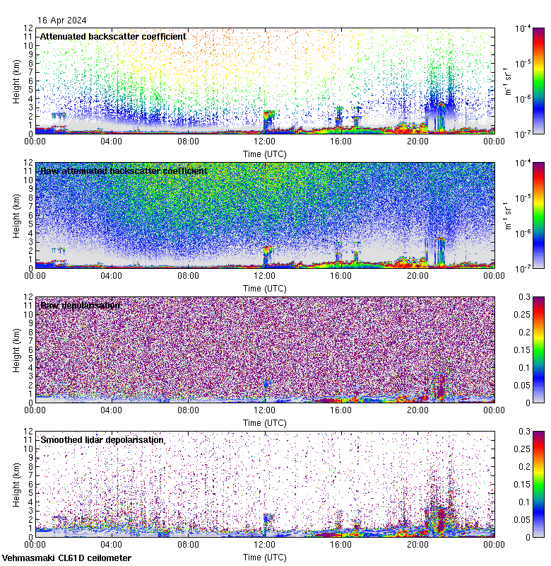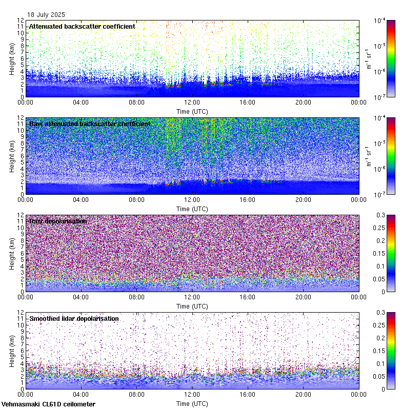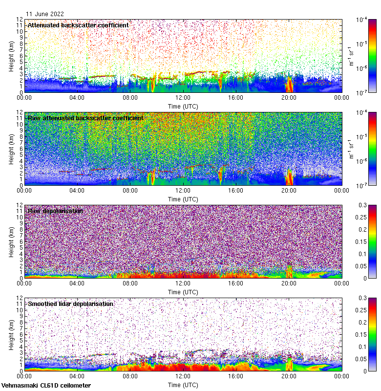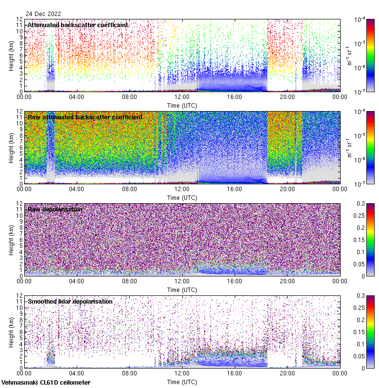 This page contains links to the daily Vehmasmaki Vaisala CL61D ceilometer images created at Kumpula.