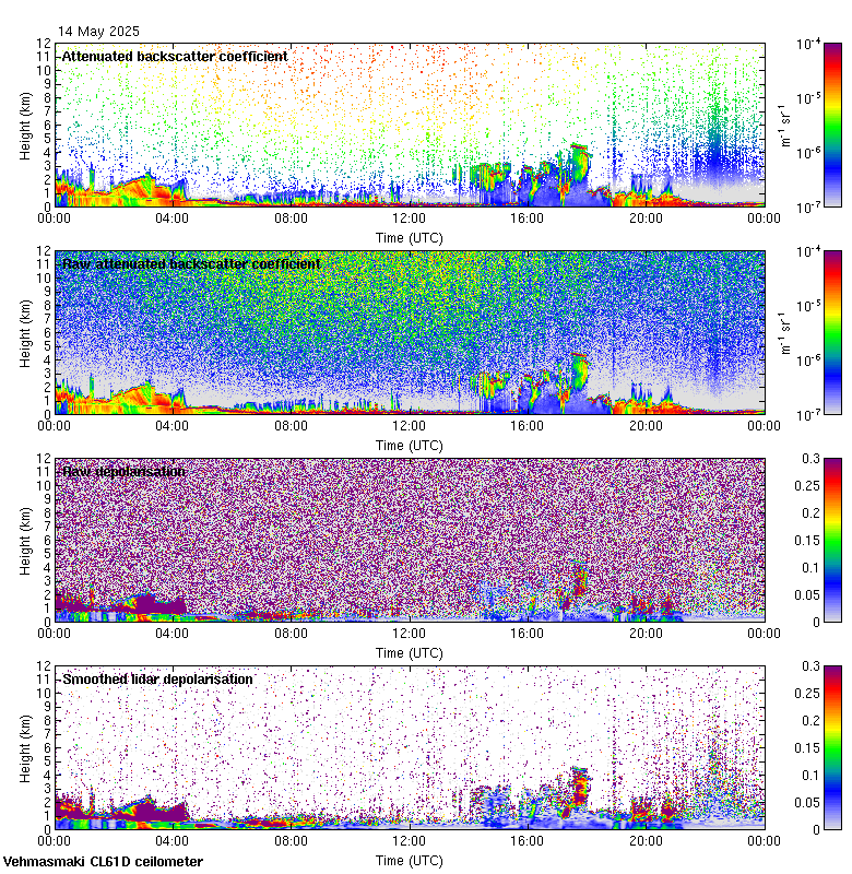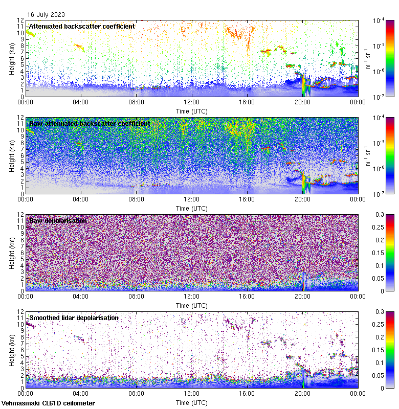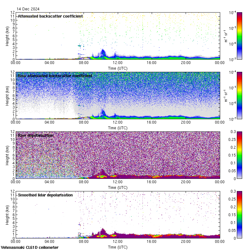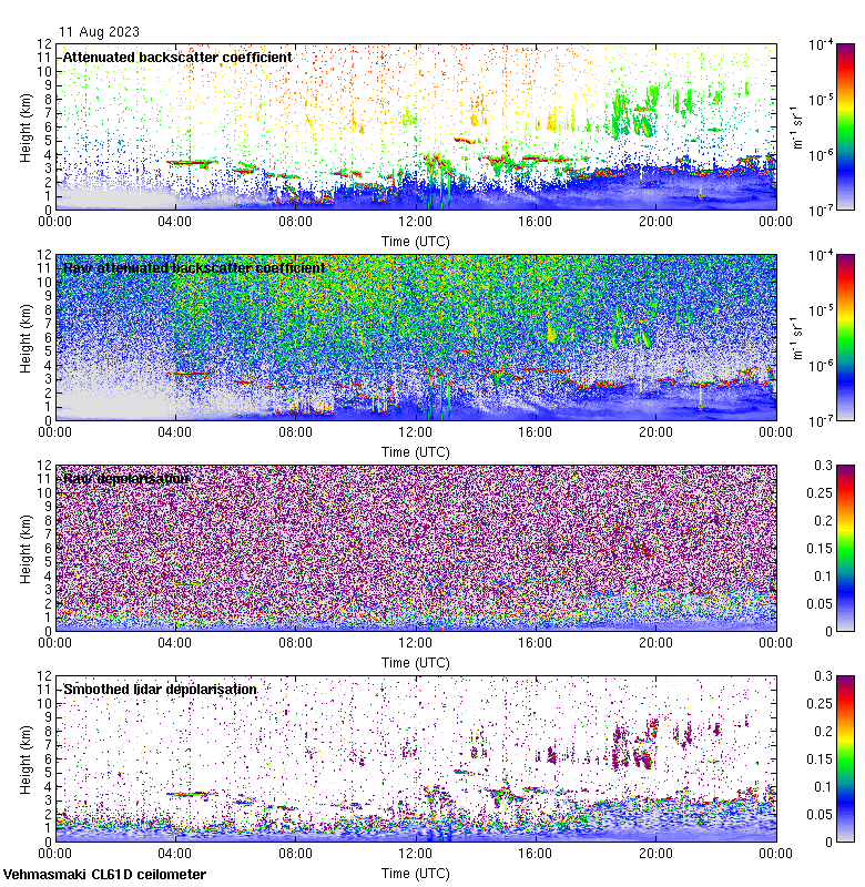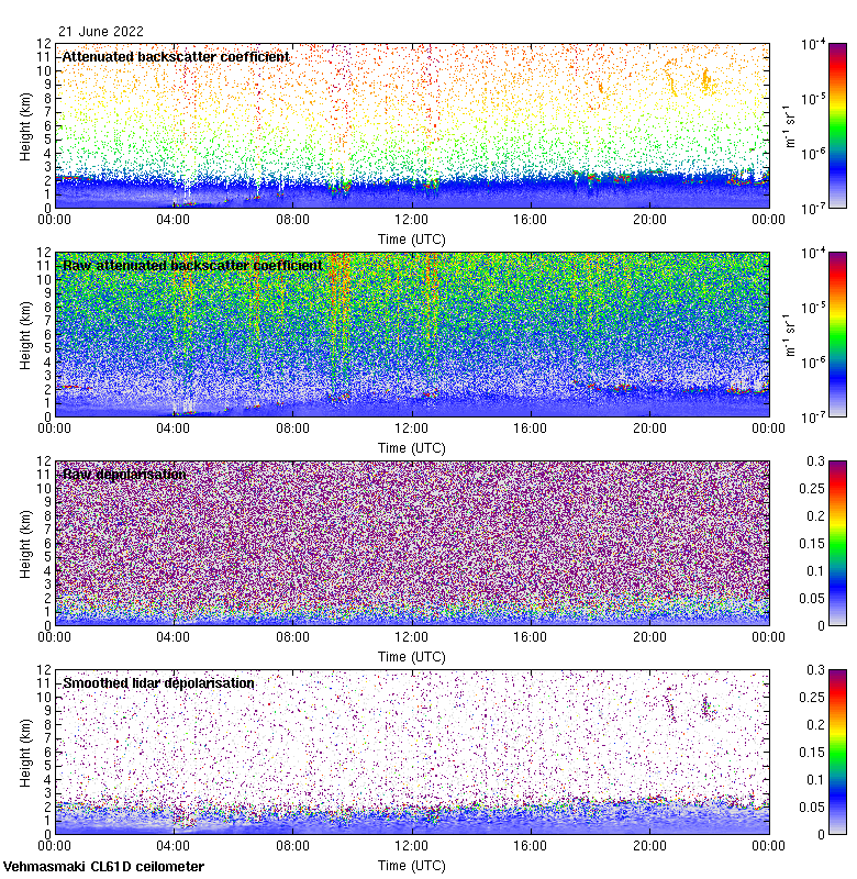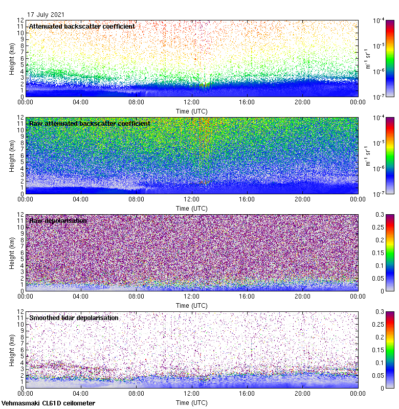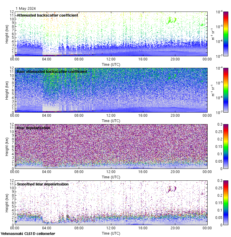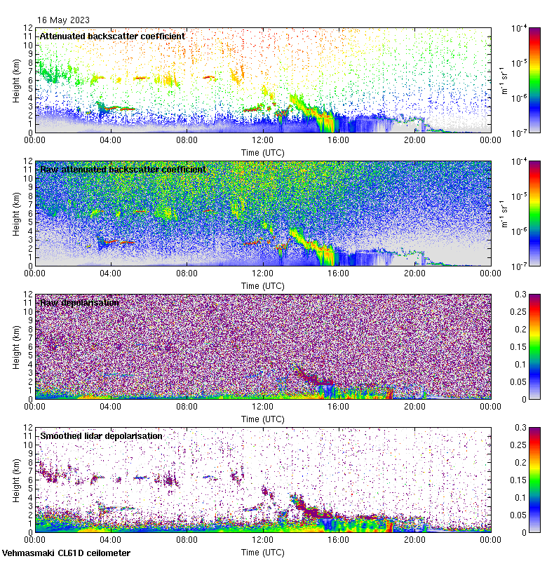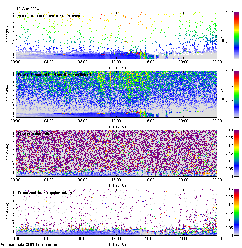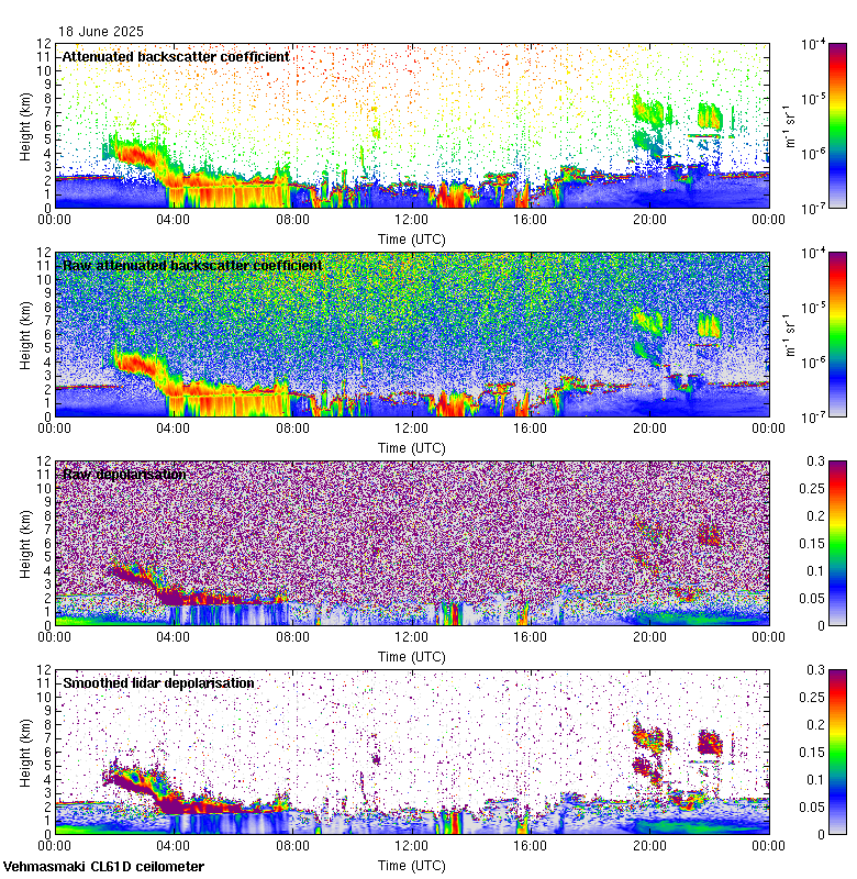 This page contains links to the daily Vehmasmaki Vaisala CL61D ceilometer images created at Kumpula.