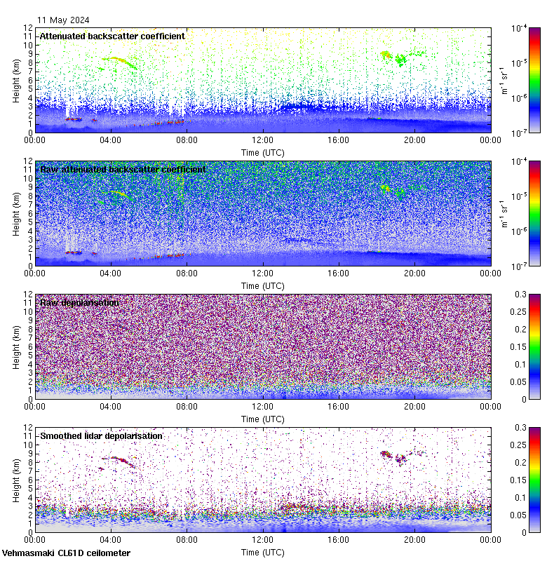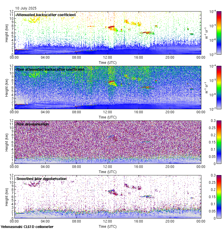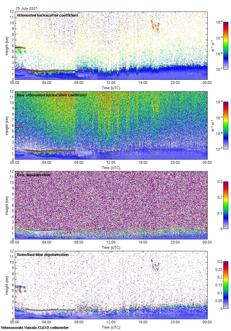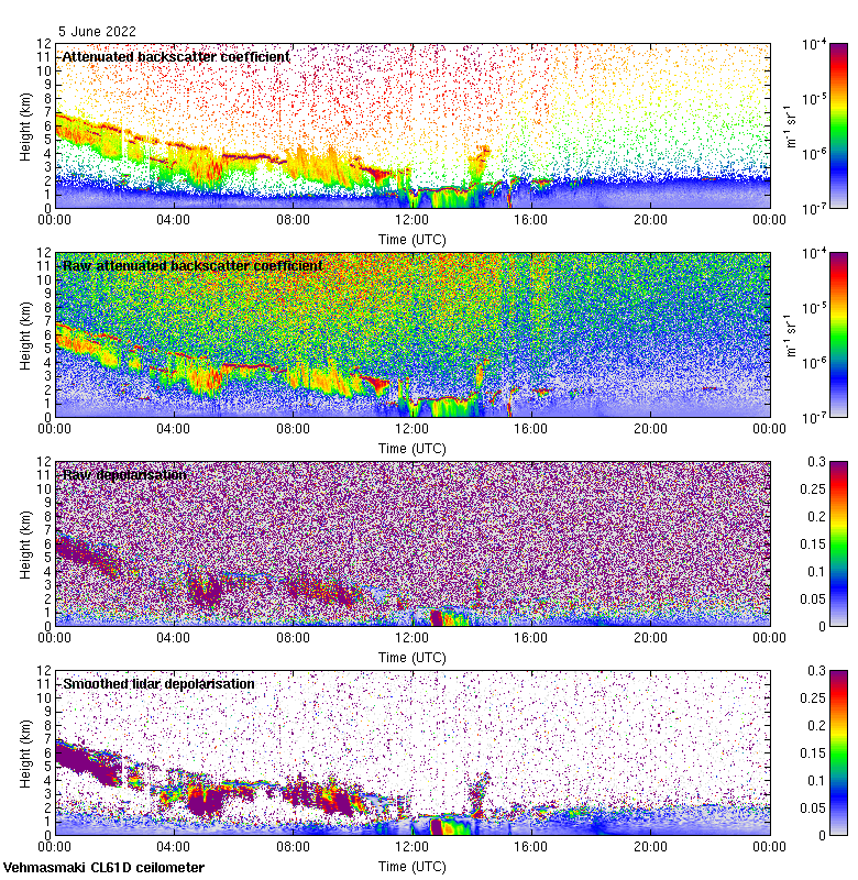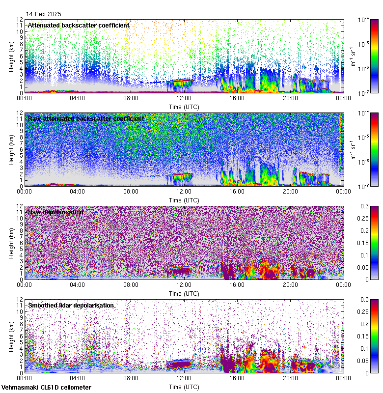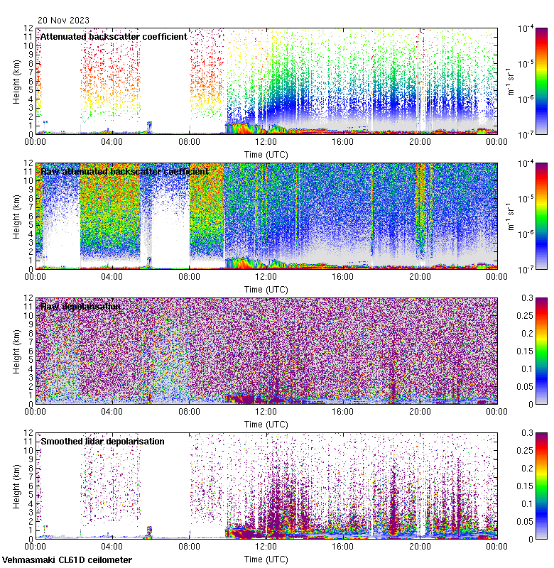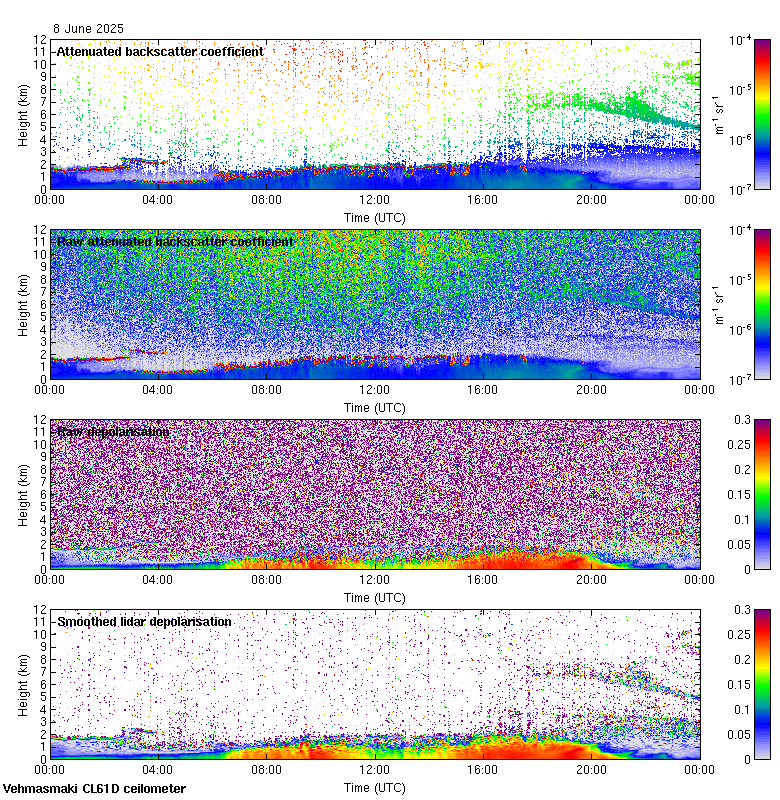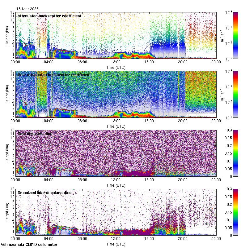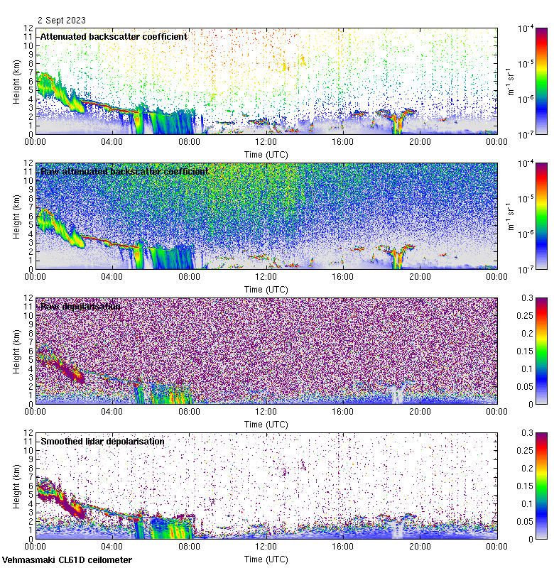 This page contains links to the daily Vehmasmaki Vaisala CL61D ceilometer images created at Kumpula.