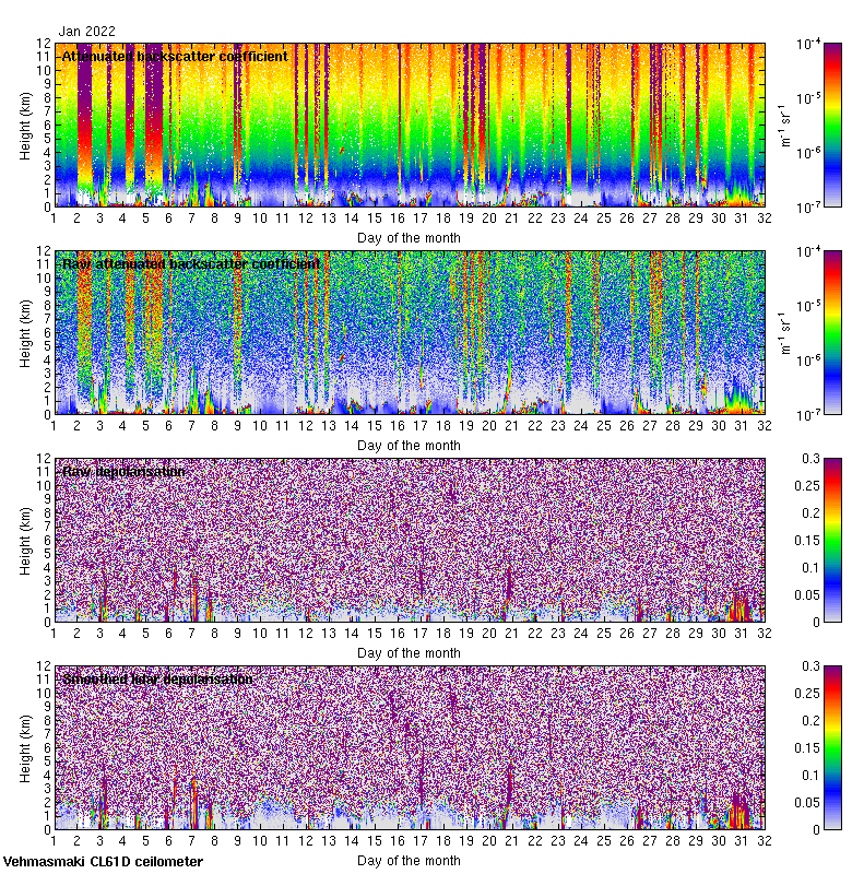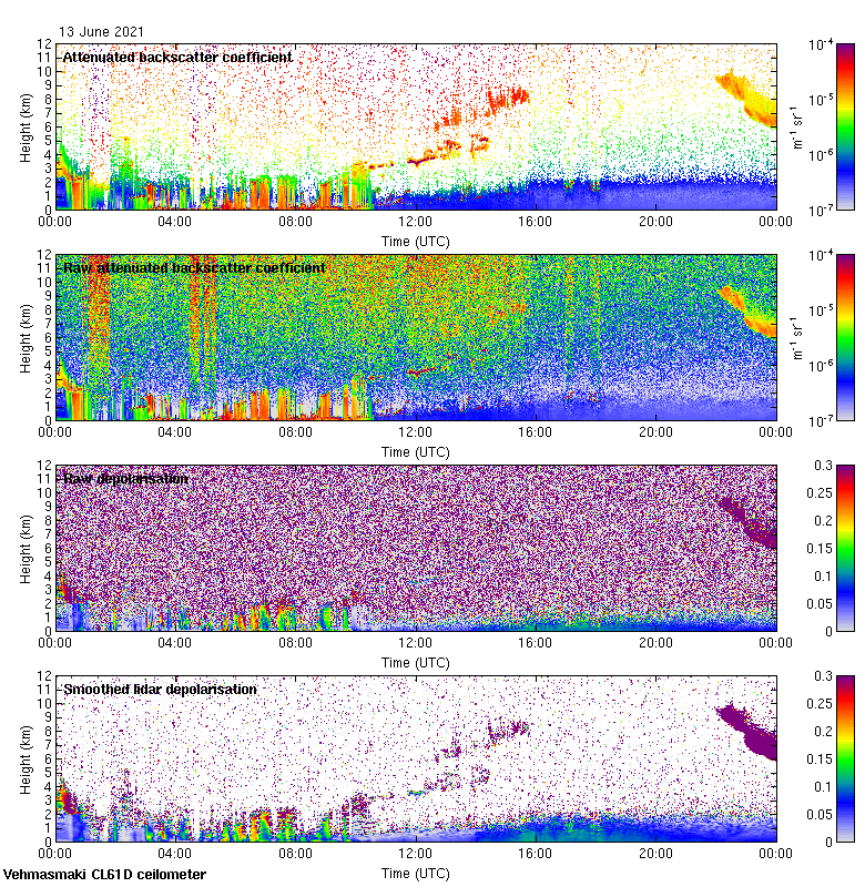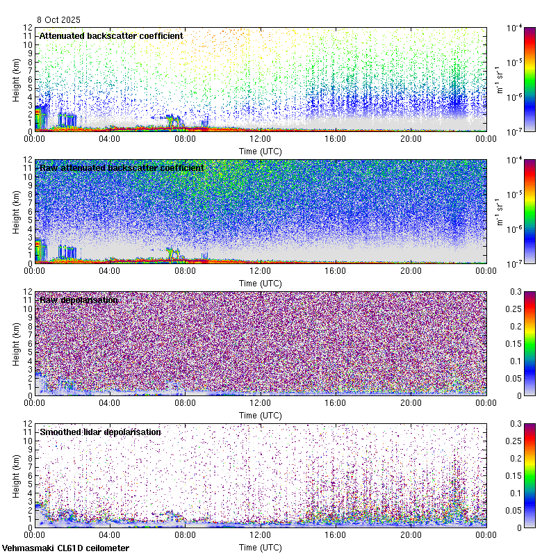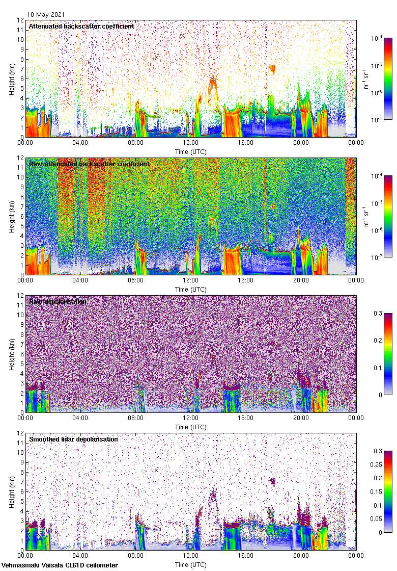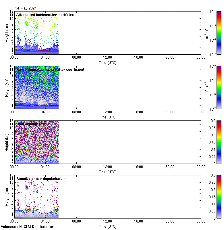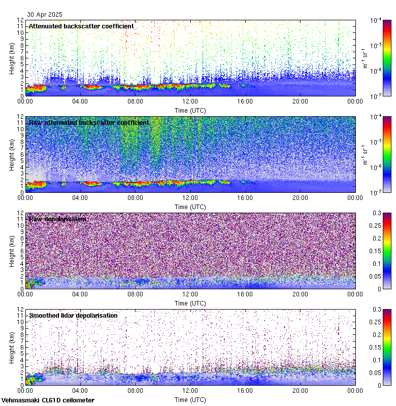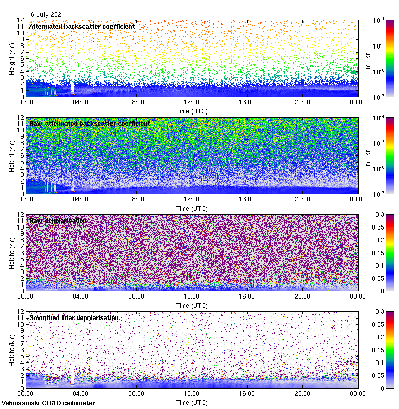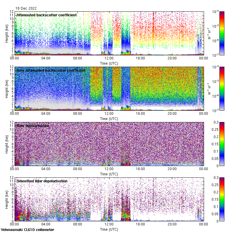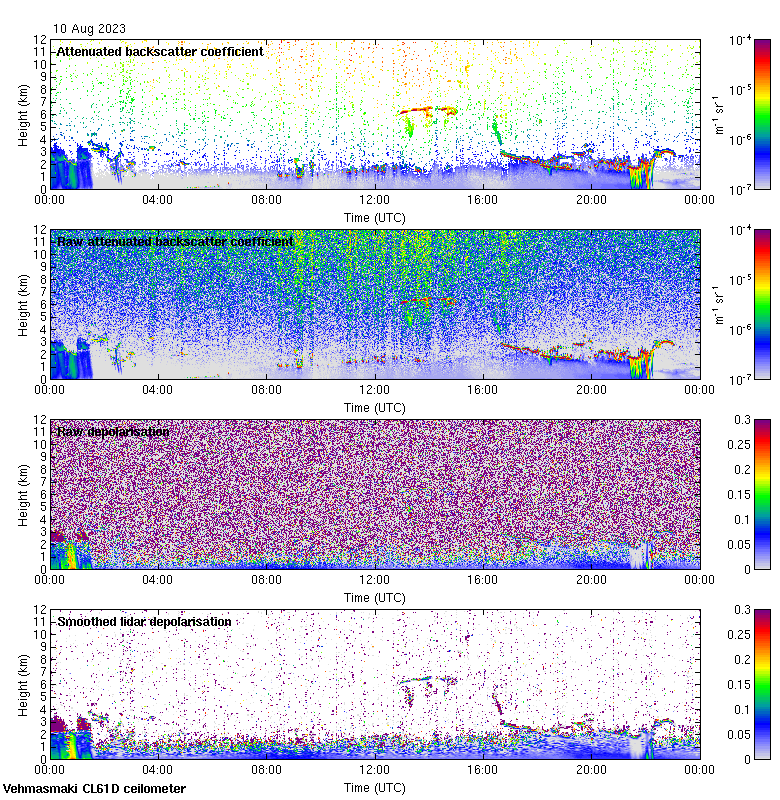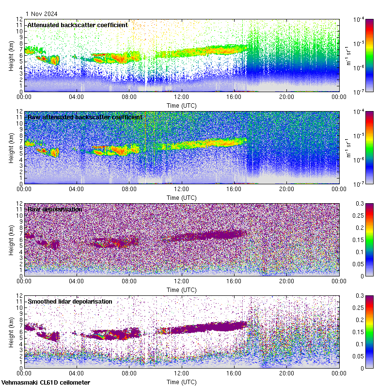 This page contains links to the daily Vehmasmaki Vaisala CL61D ceilometer images created at Kumpula.