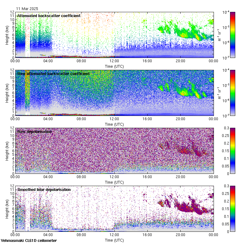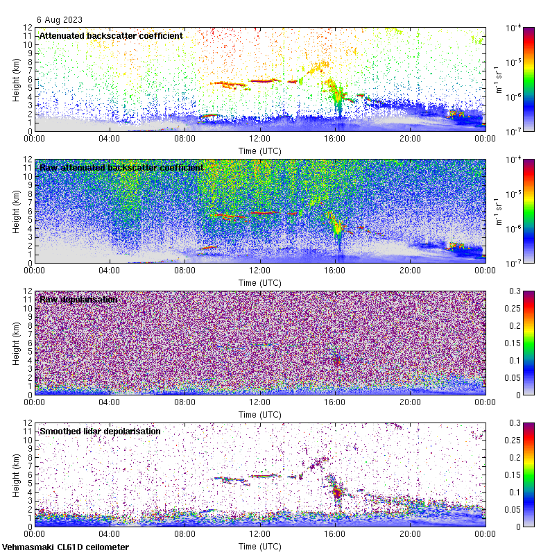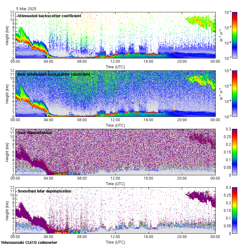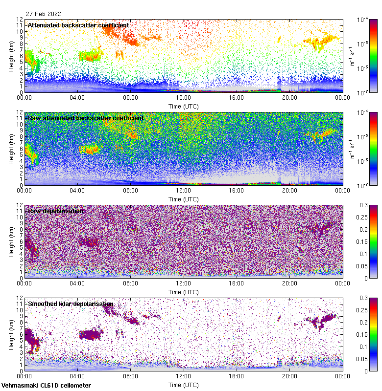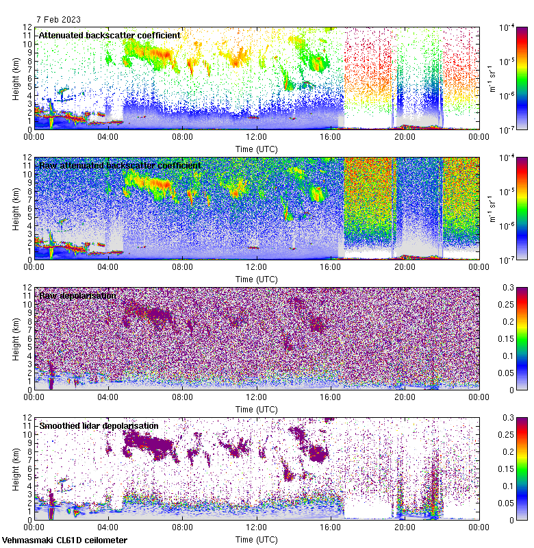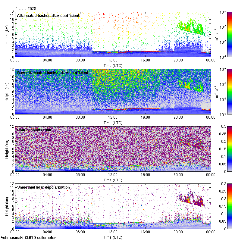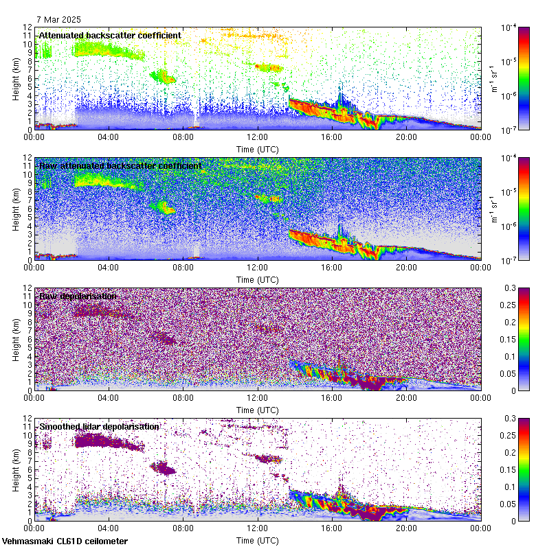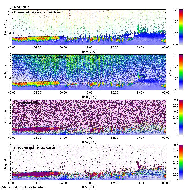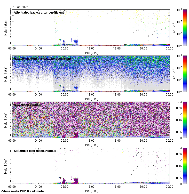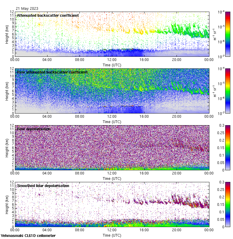 This page contains links to the daily Vehmasmaki Vaisala CL61D ceilometer images created at Kumpula.