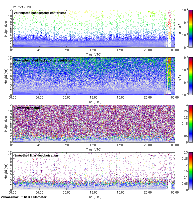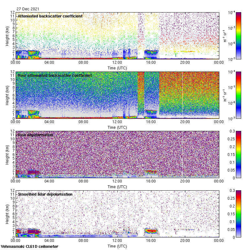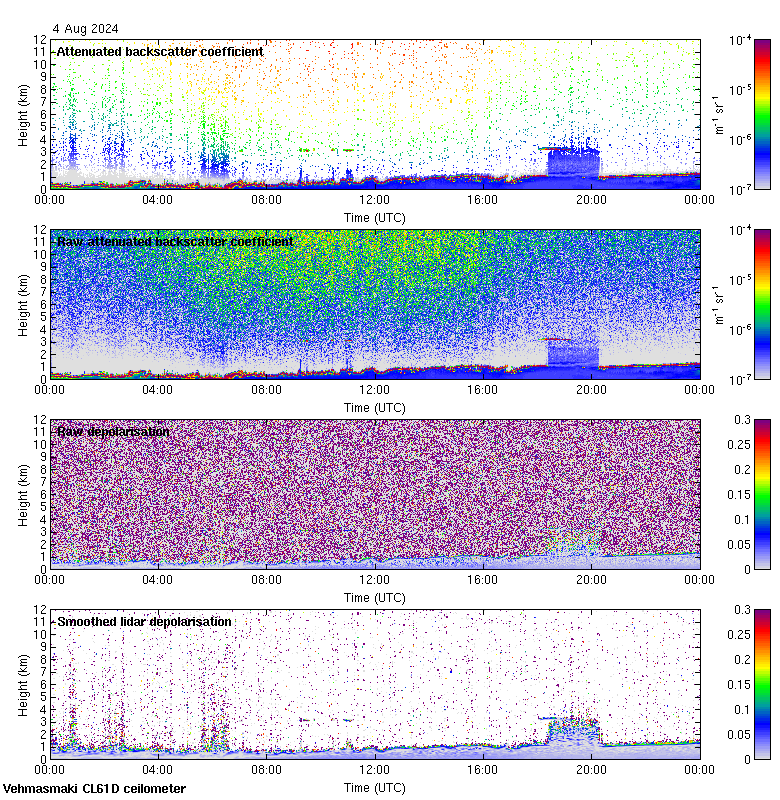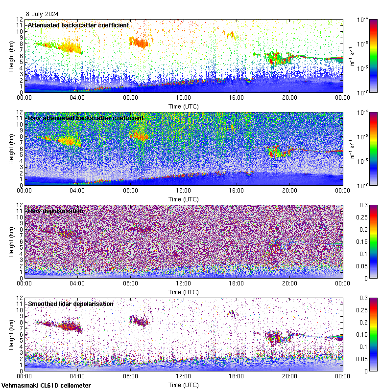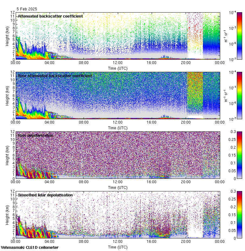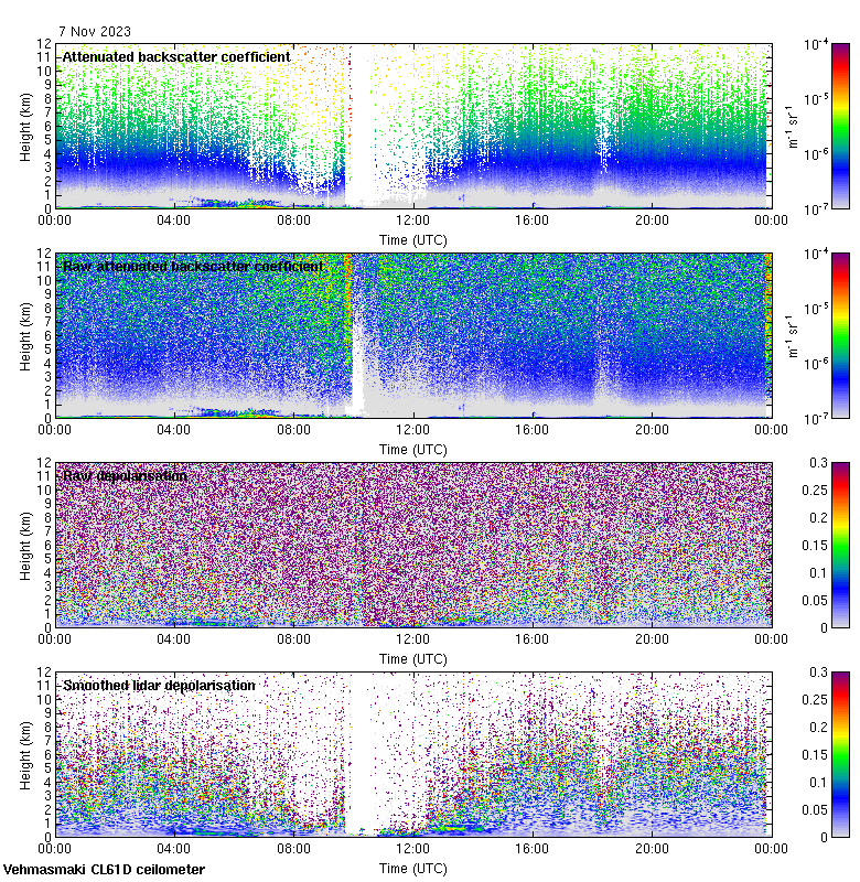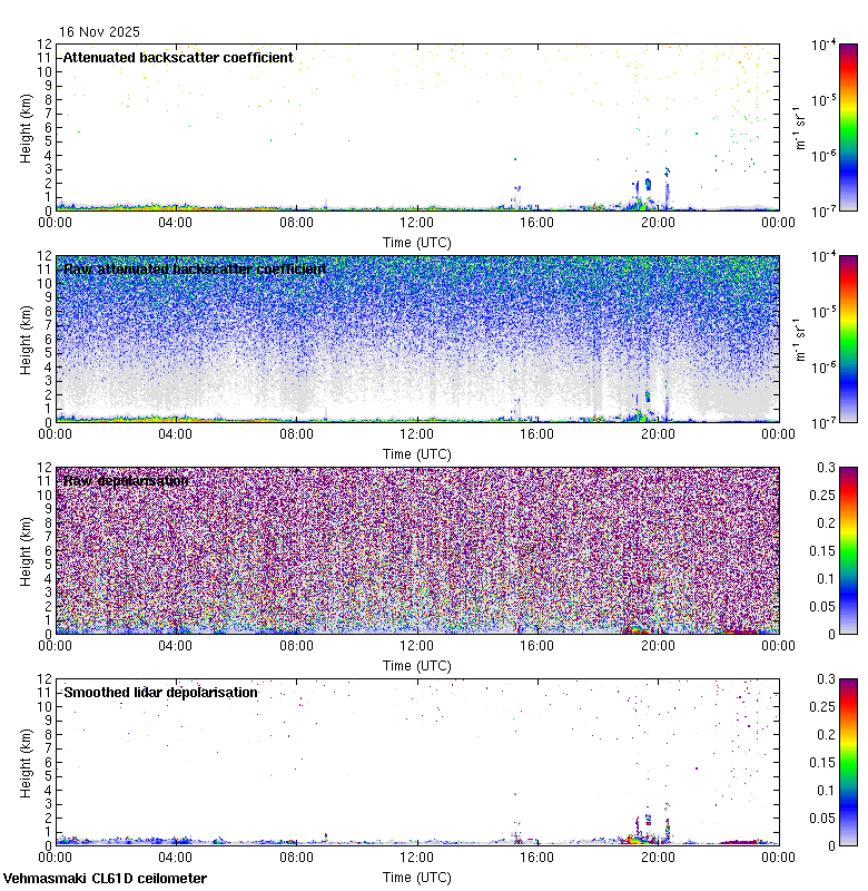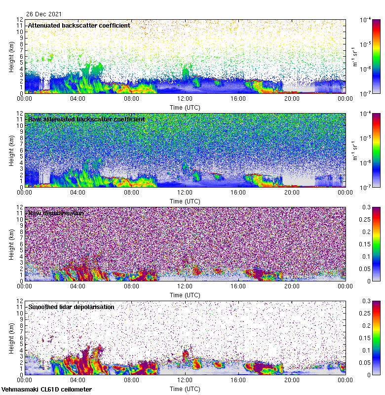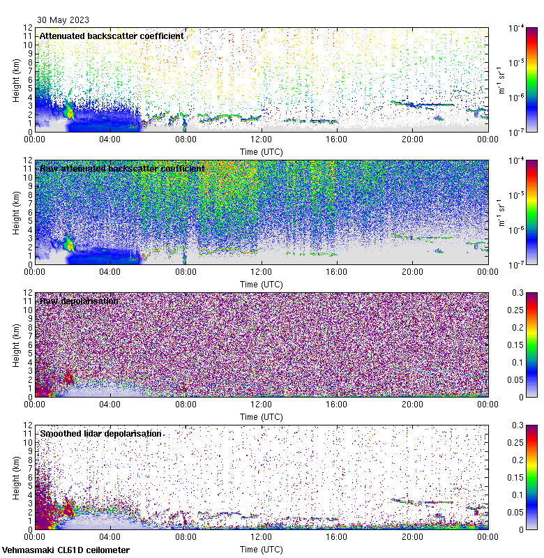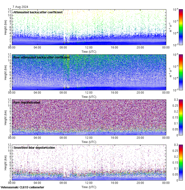 This page contains links to the daily Vehmasmaki Vaisala CL61D ceilometer images created at Kumpula.
