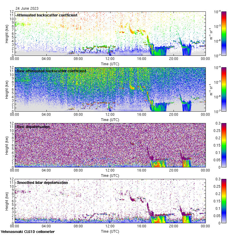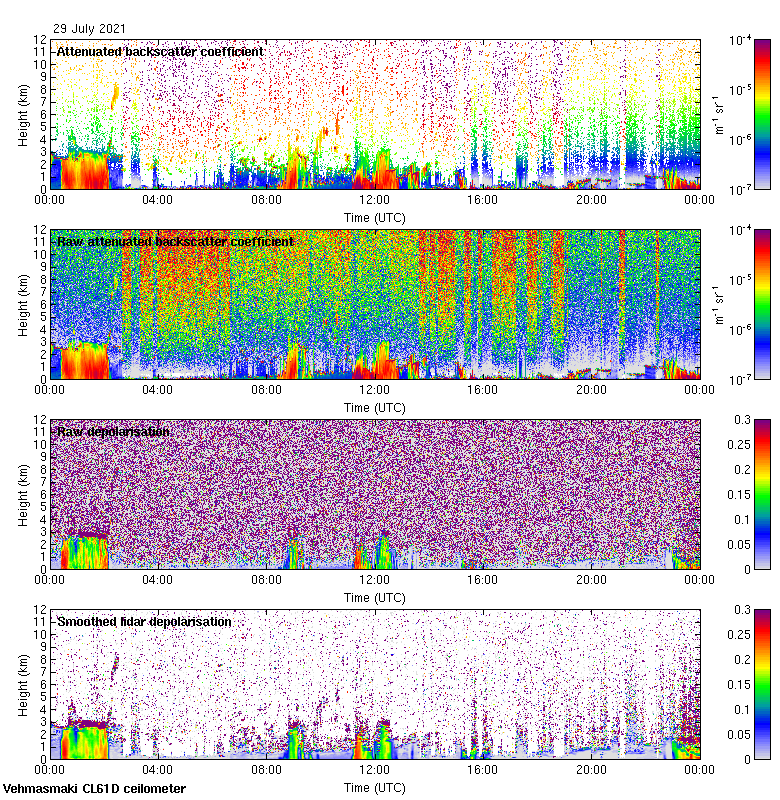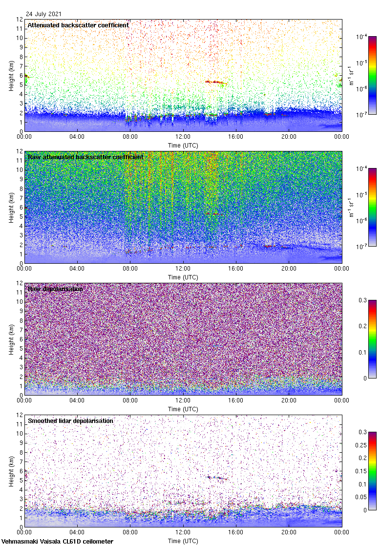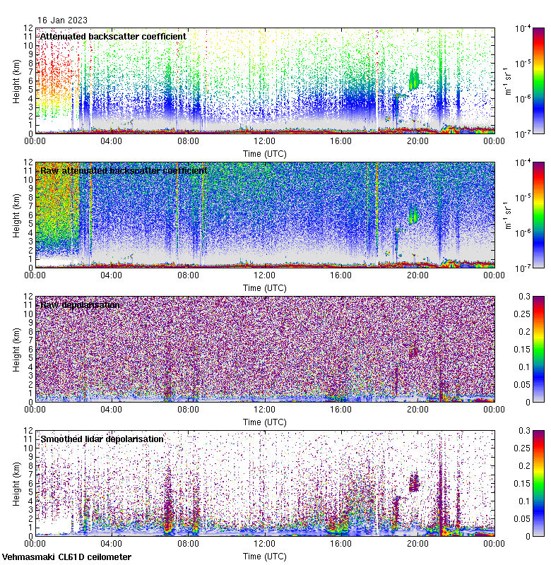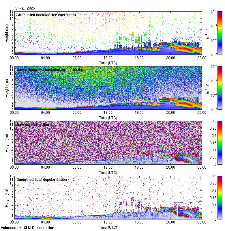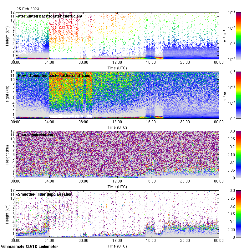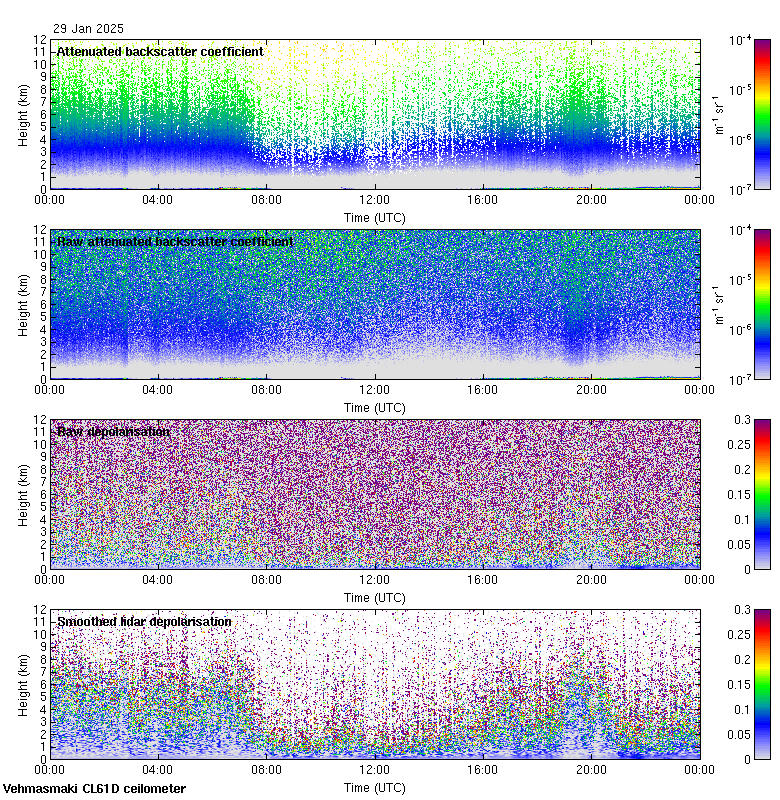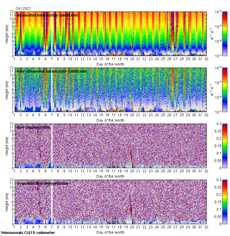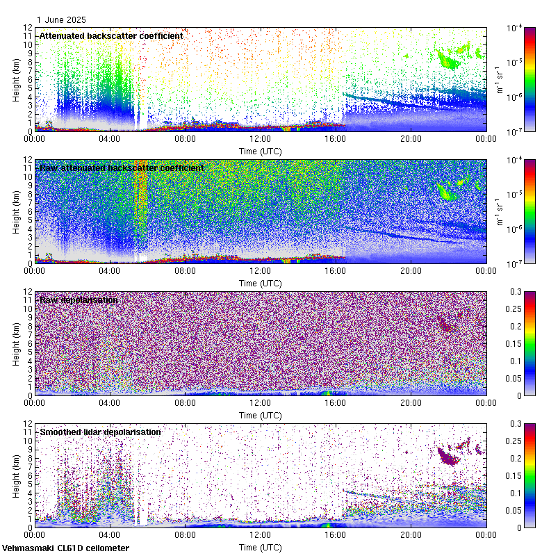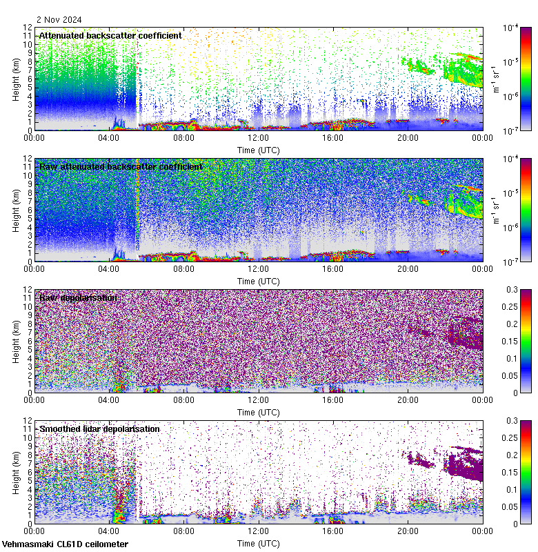 This page contains links to the daily Vehmasmaki Vaisala CL61D ceilometer images created at Kumpula.