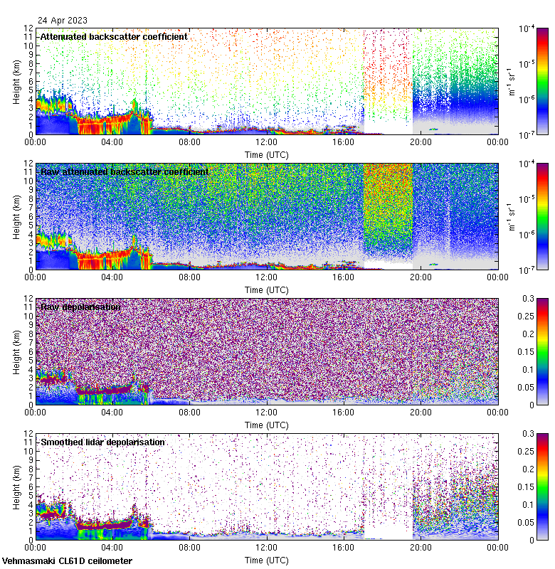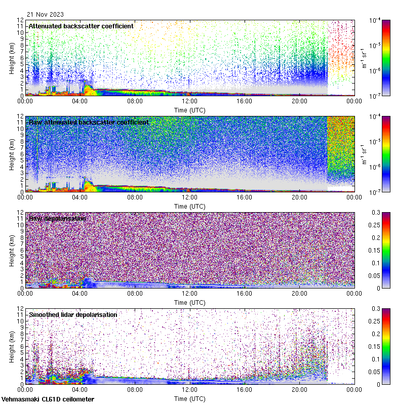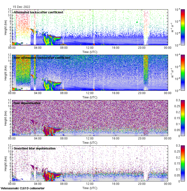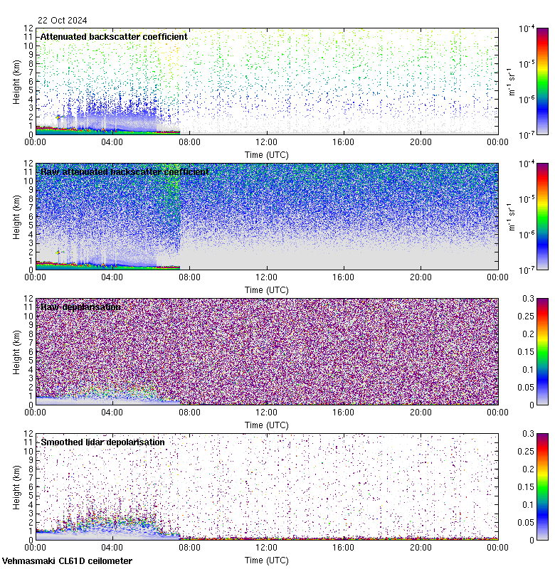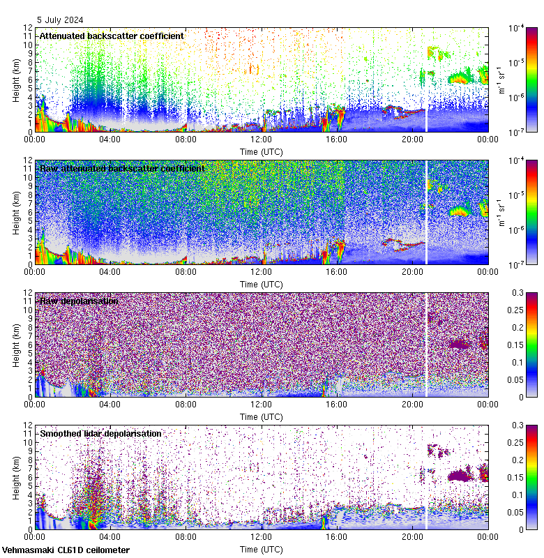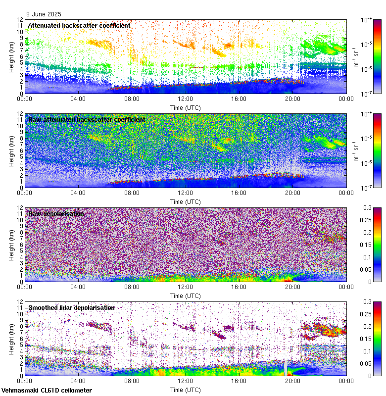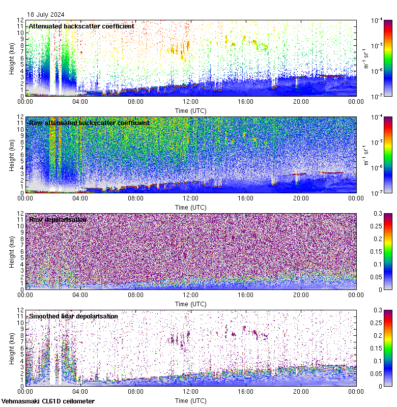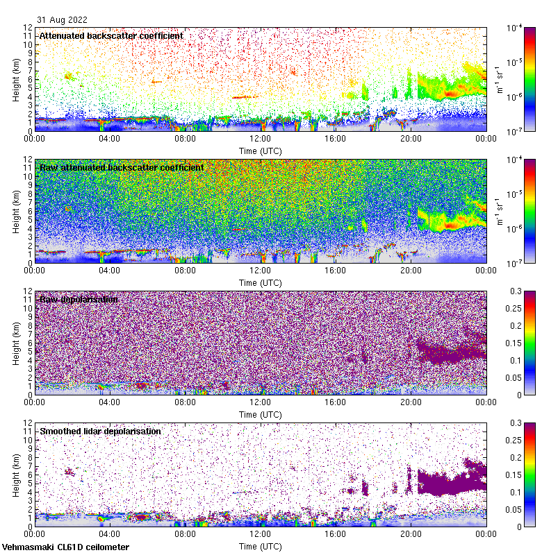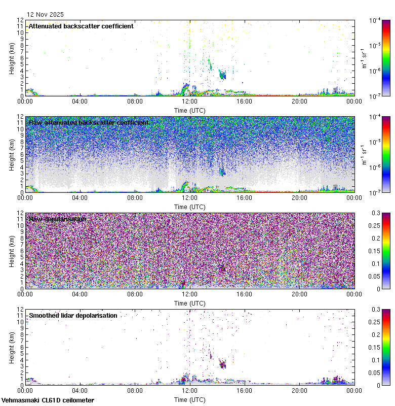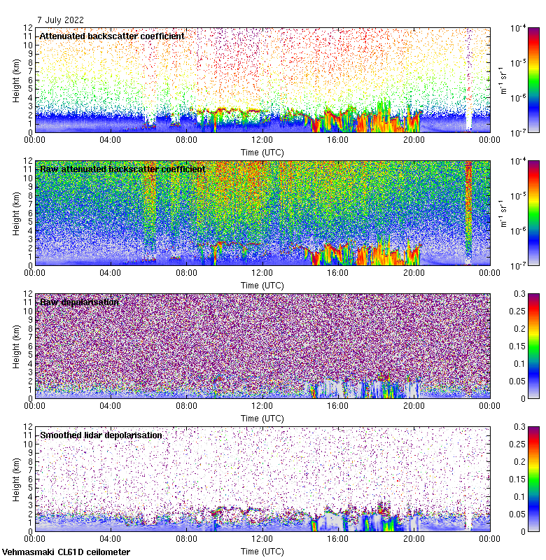 This page contains links to the daily Vehmasmaki Vaisala CL61D ceilometer images created at Kumpula.