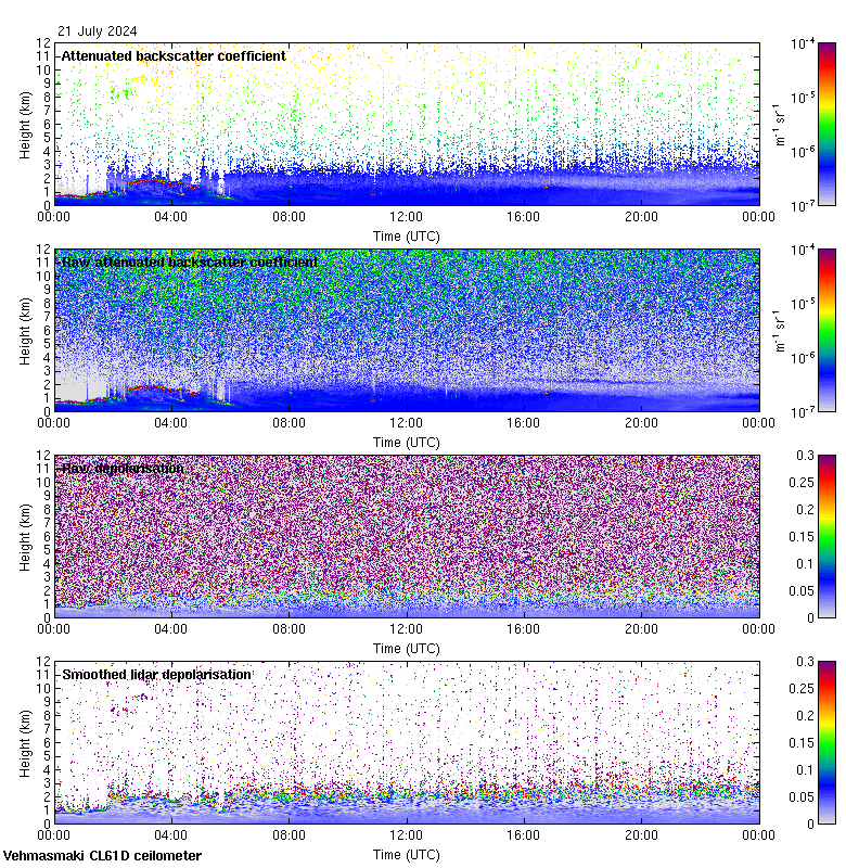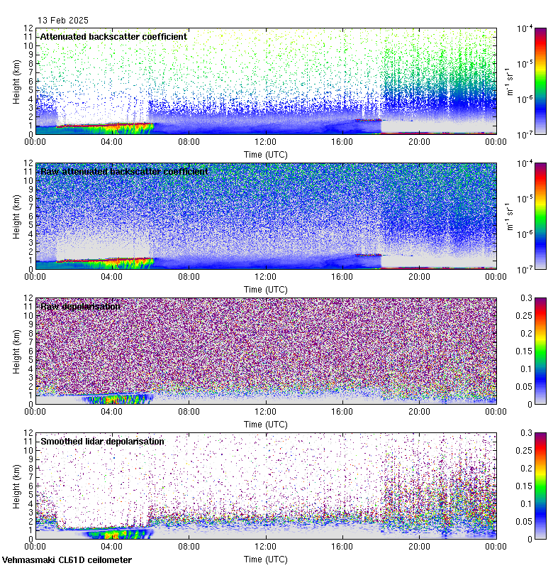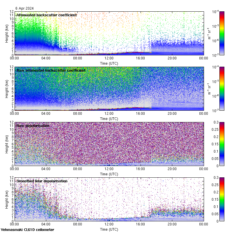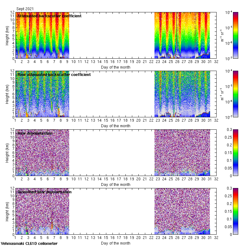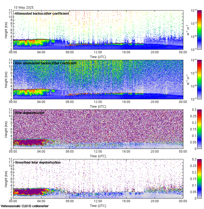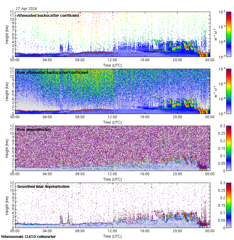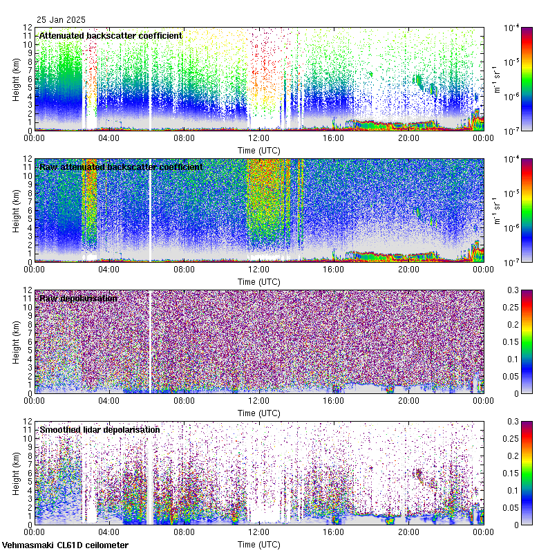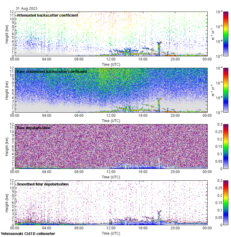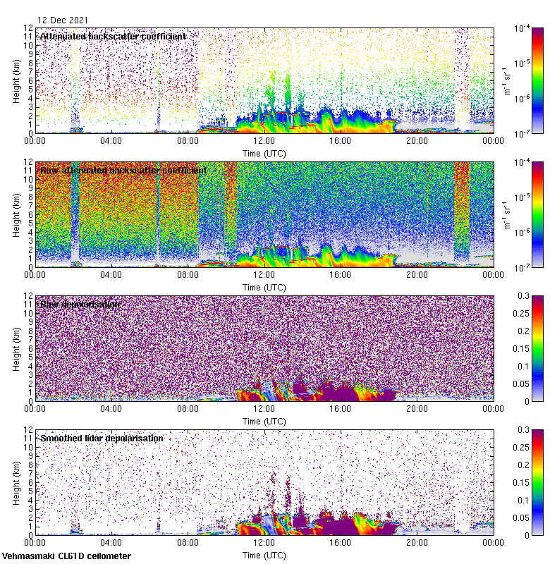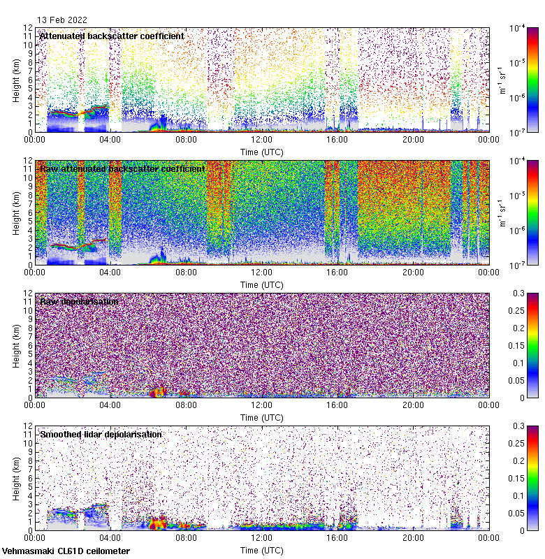 This page contains links to the daily Vehmasmaki Vaisala CL61D ceilometer images created at Kumpula.