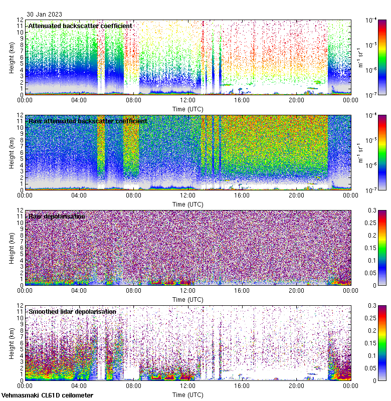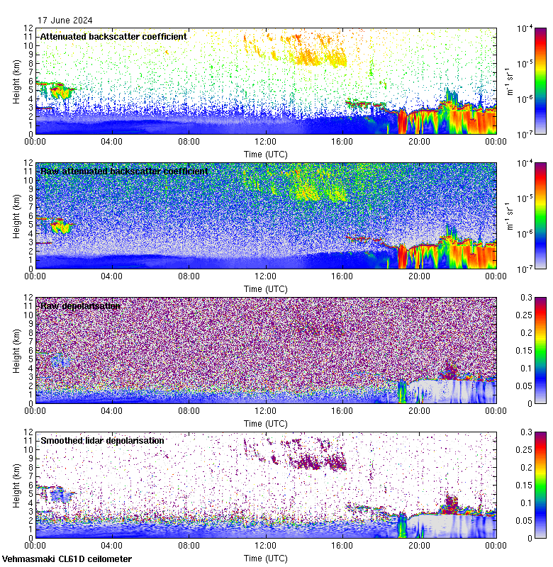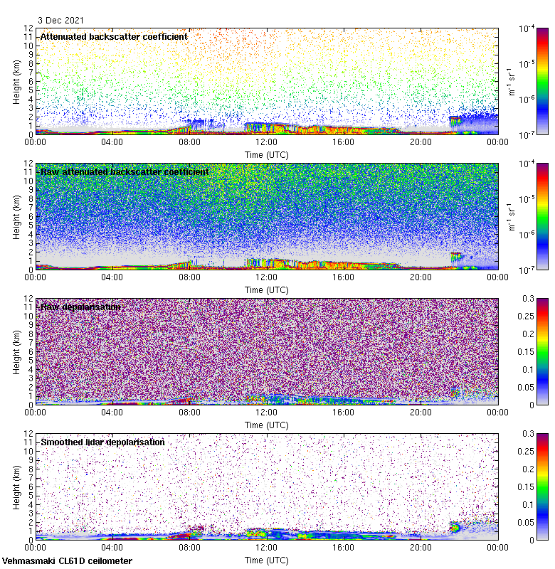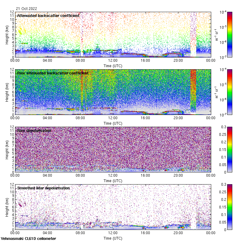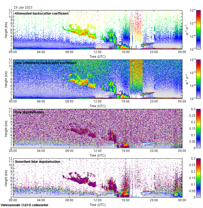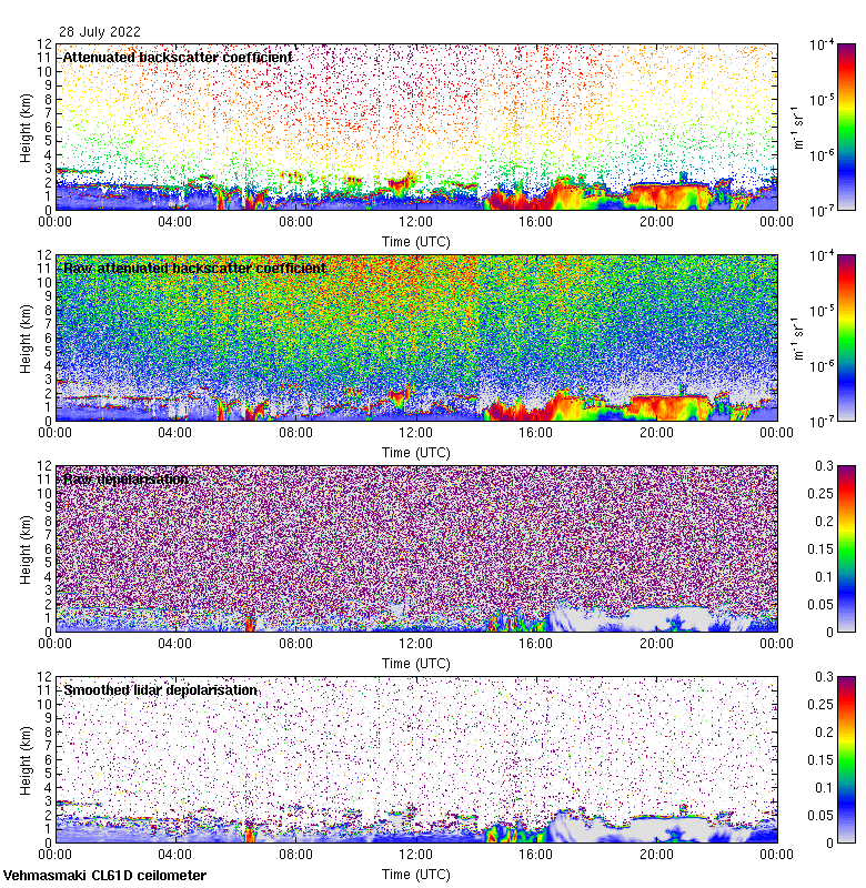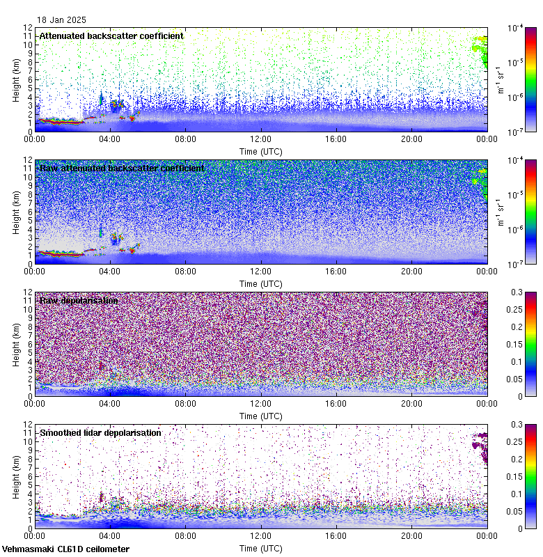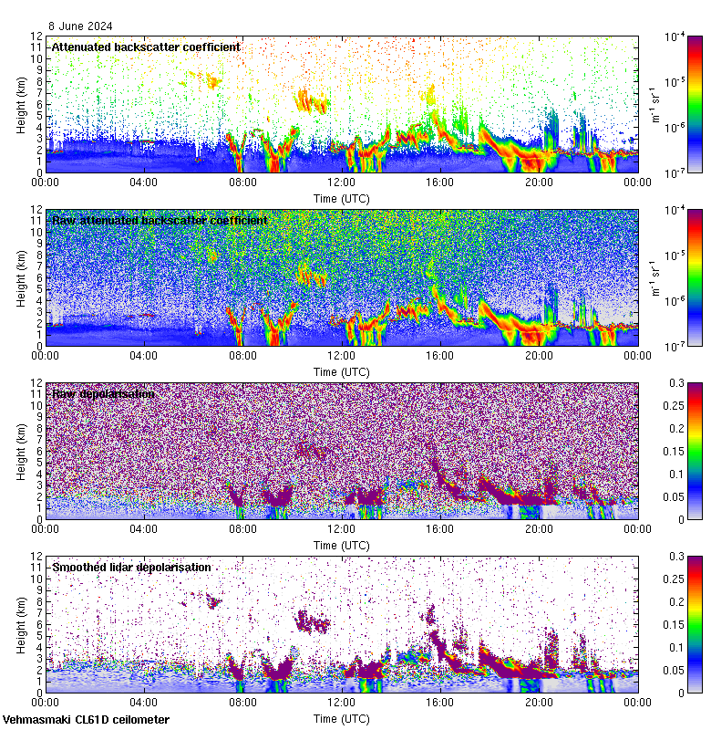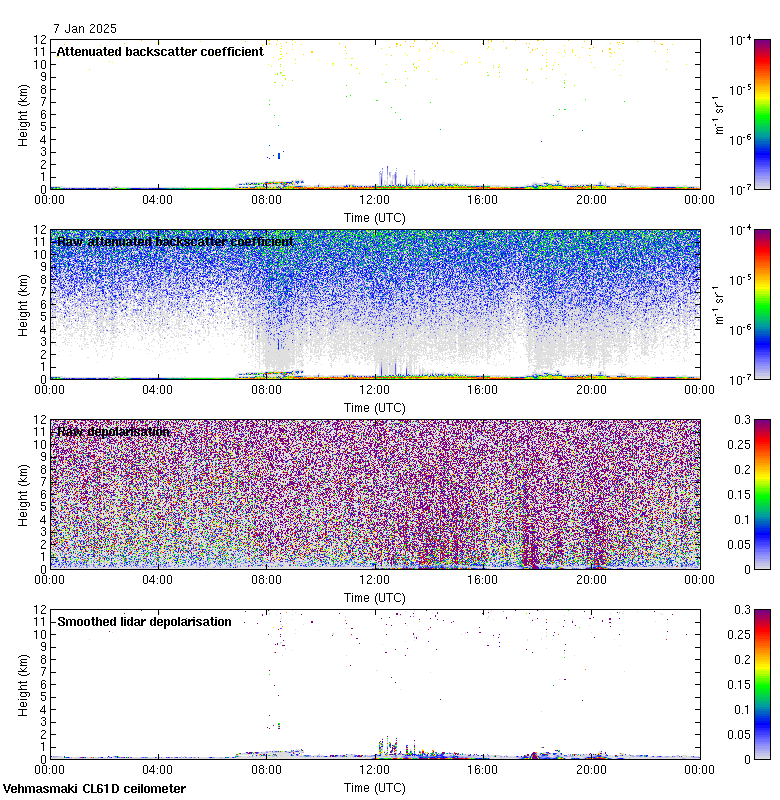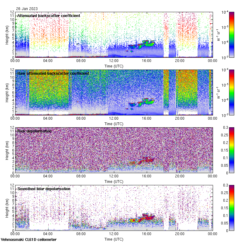 This page contains links to the daily Vehmasmaki Vaisala CL61D ceilometer images created at Kumpula.