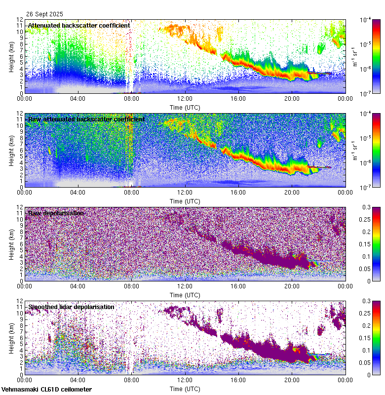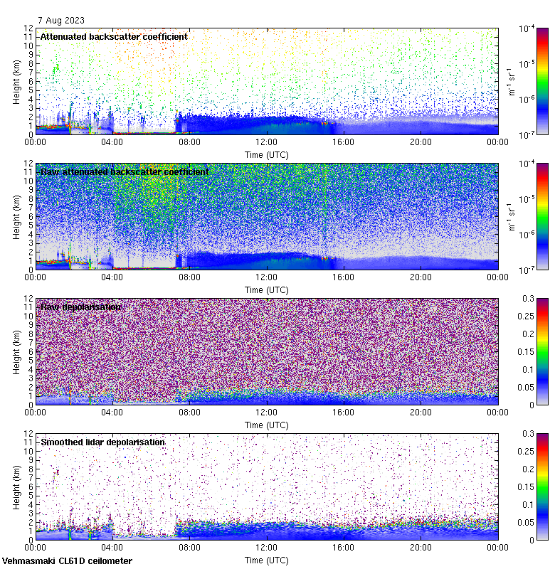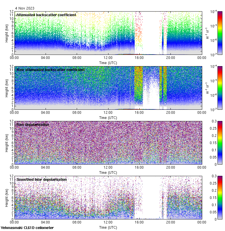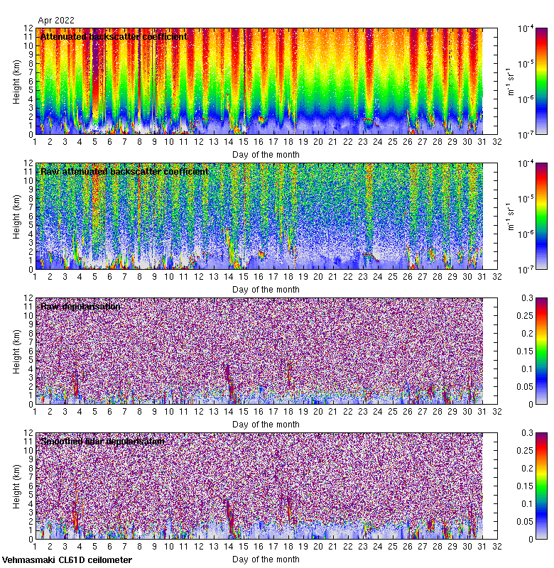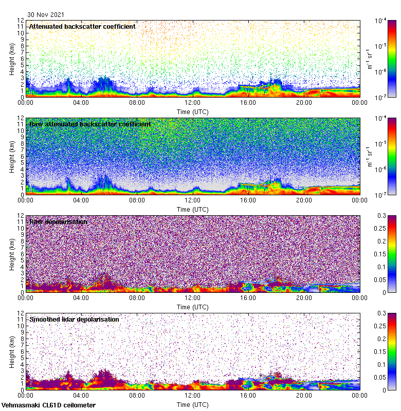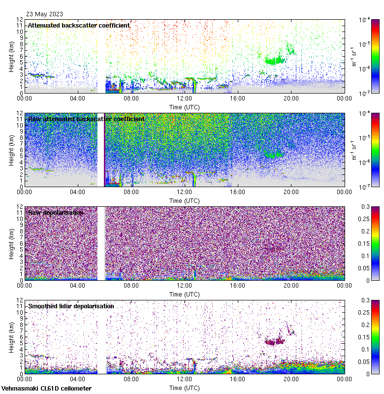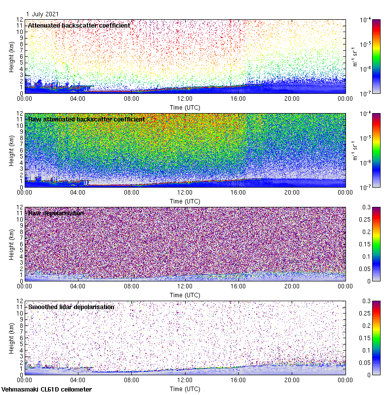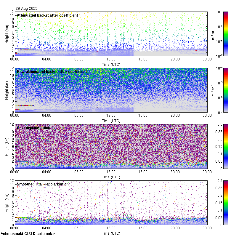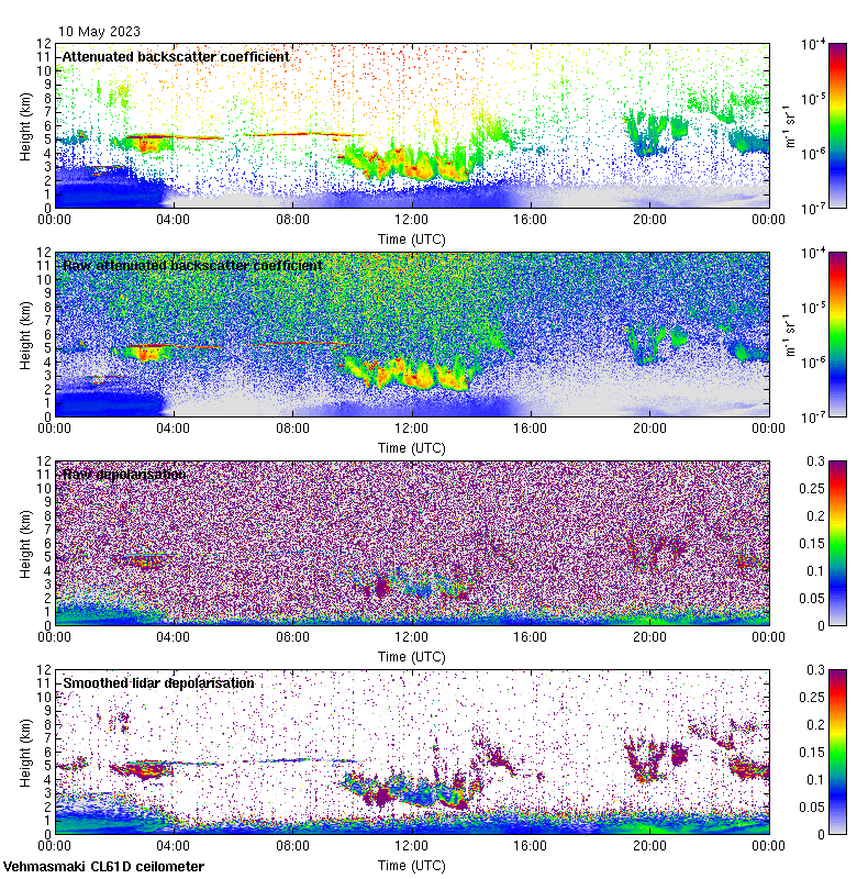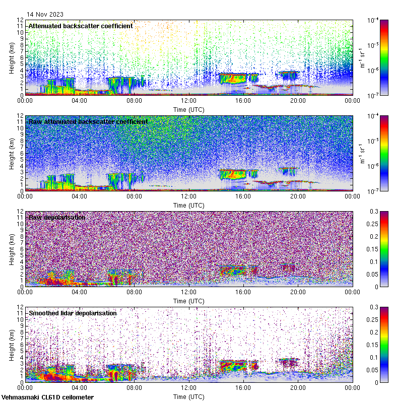 This page contains links to the daily Vehmasmaki Vaisala CL61D ceilometer images created at Kumpula.