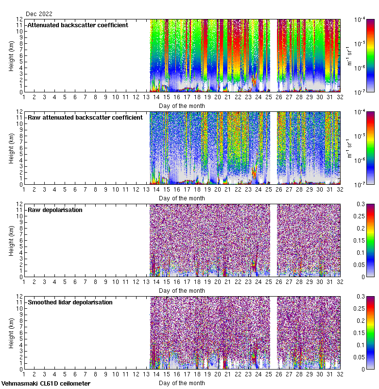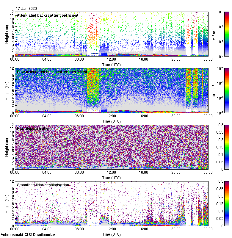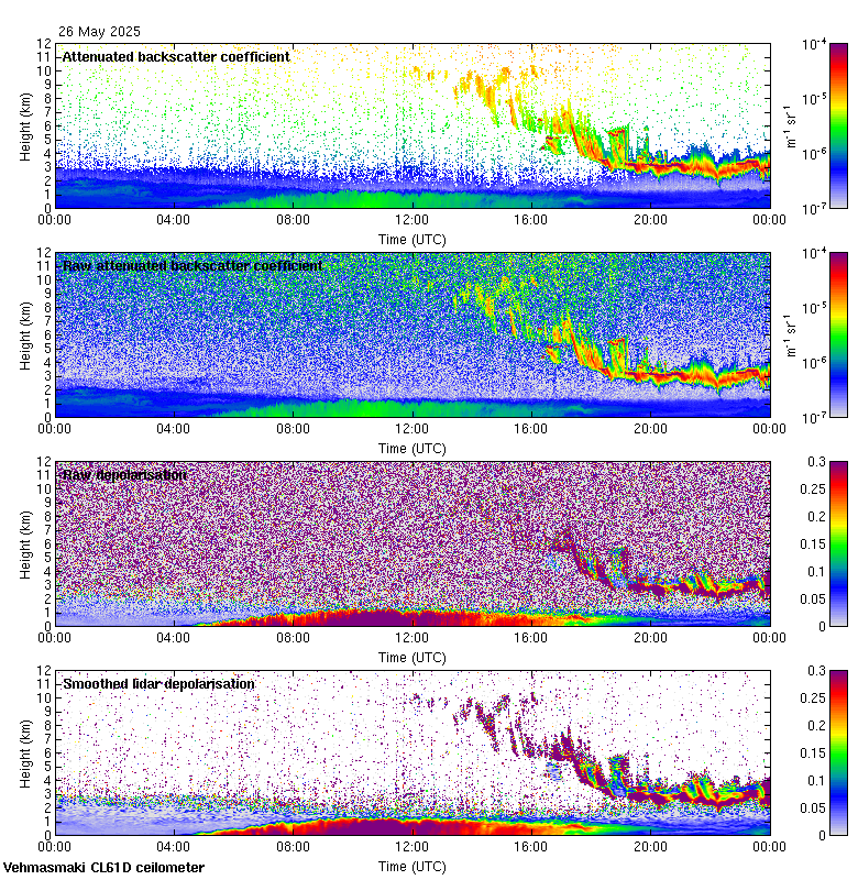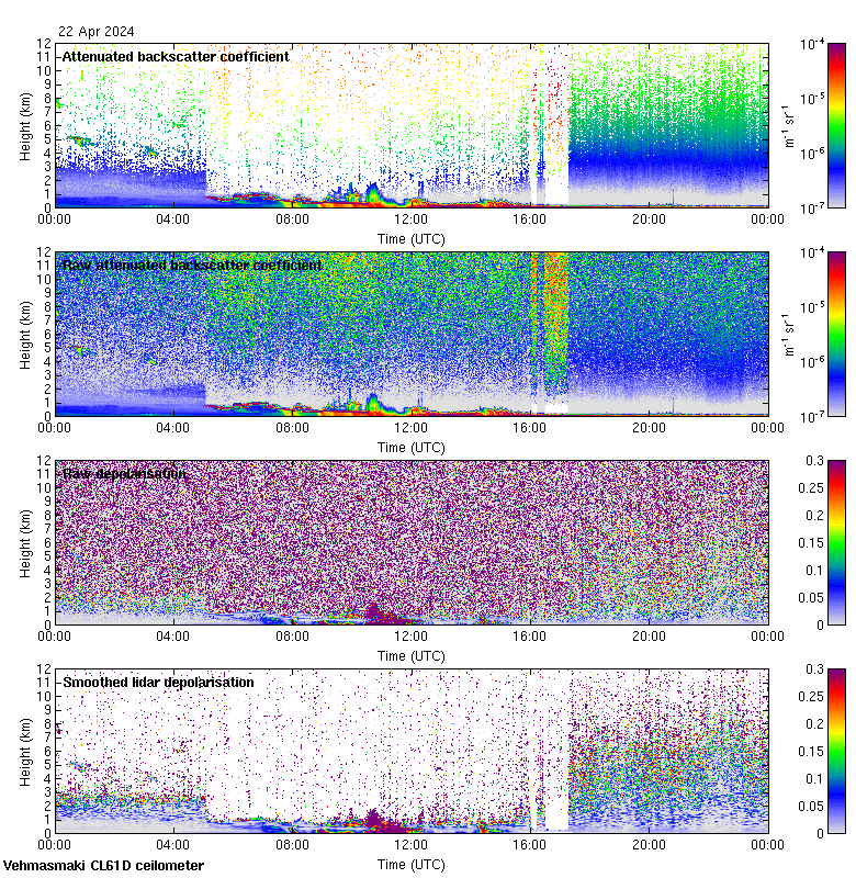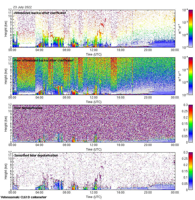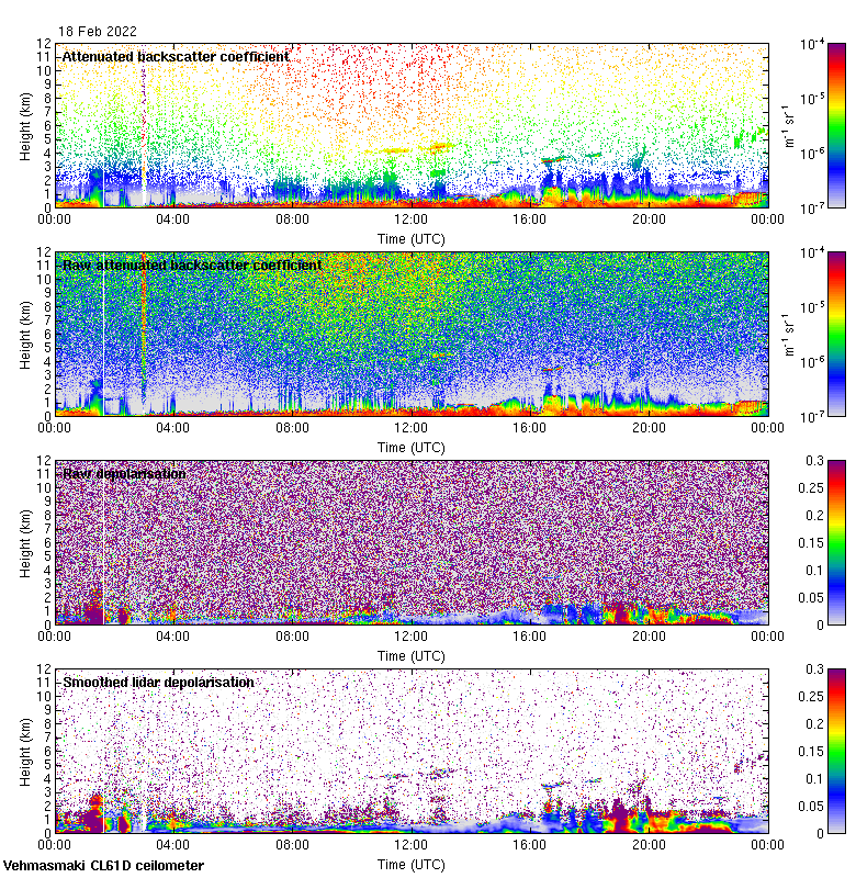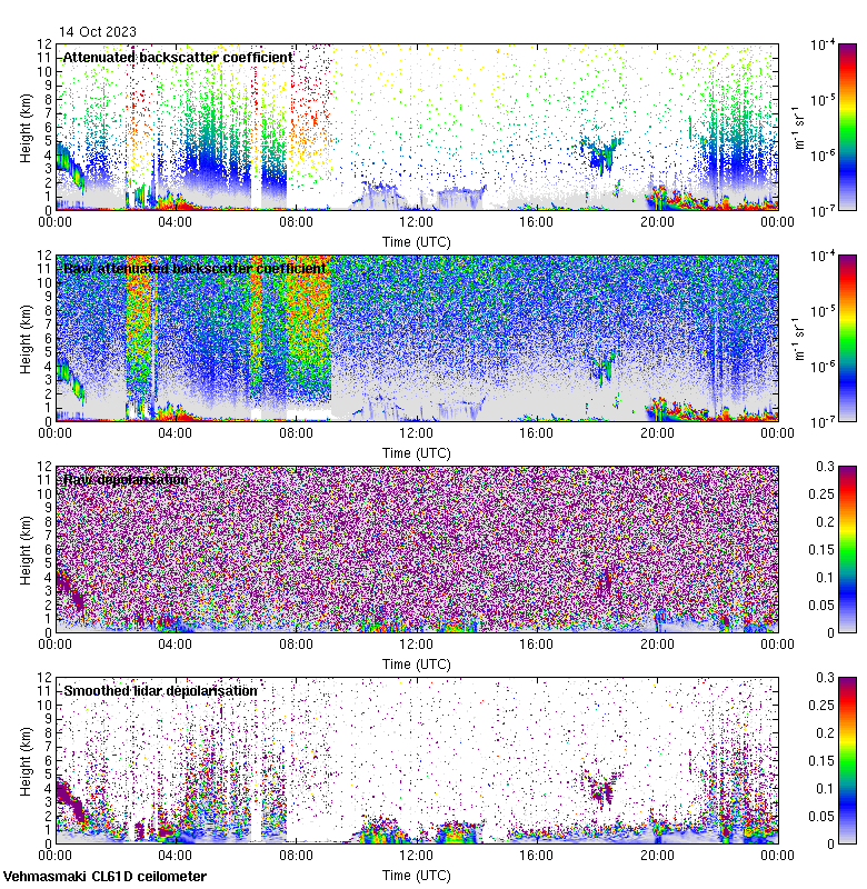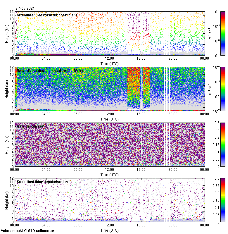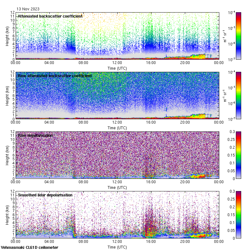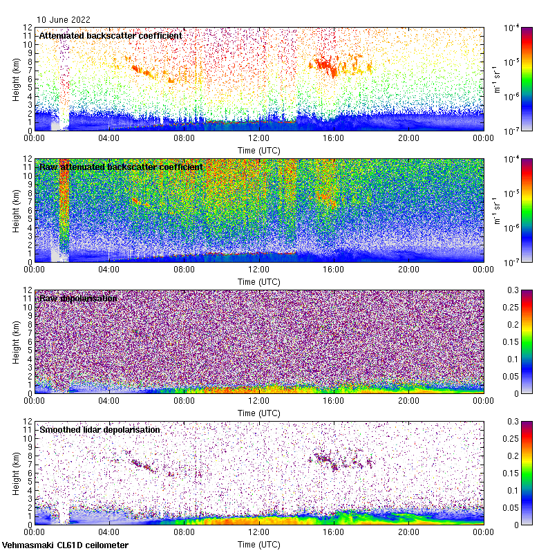 This page contains links to the daily Vehmasmaki Vaisala CL61D ceilometer images created at Kumpula.