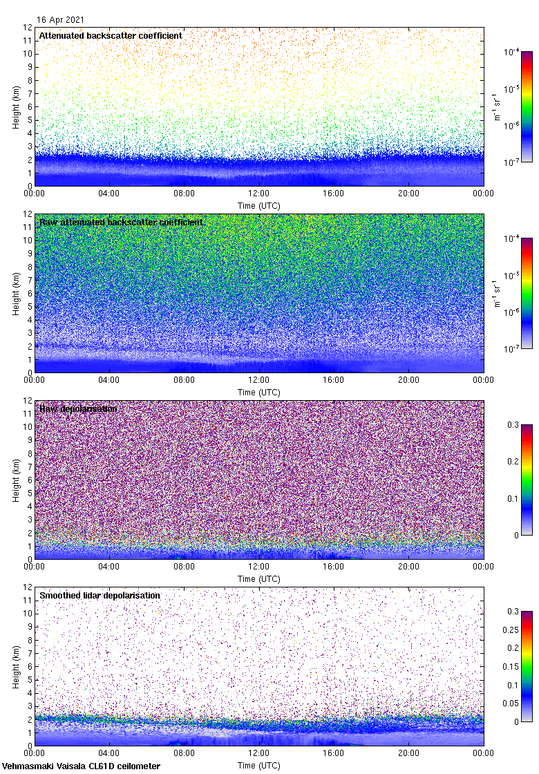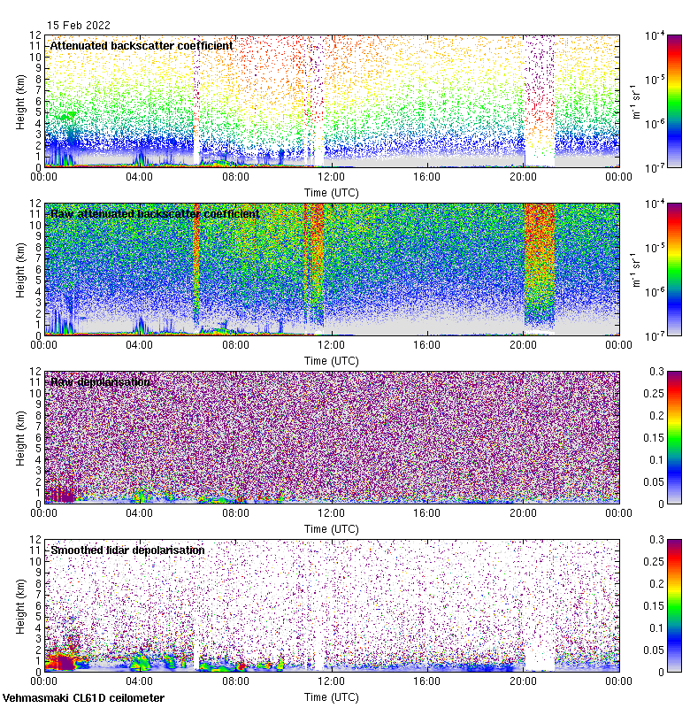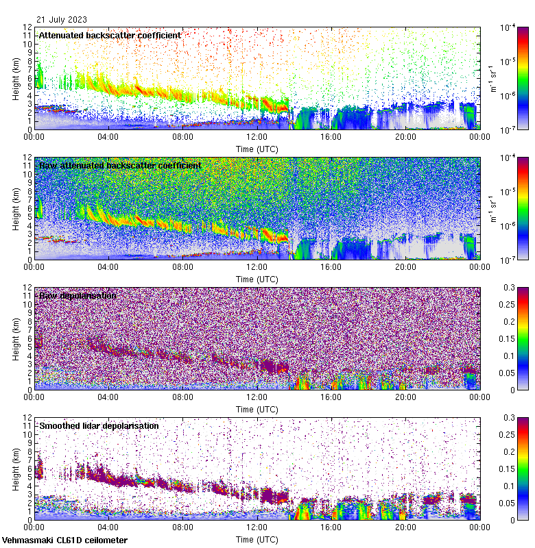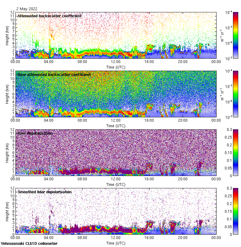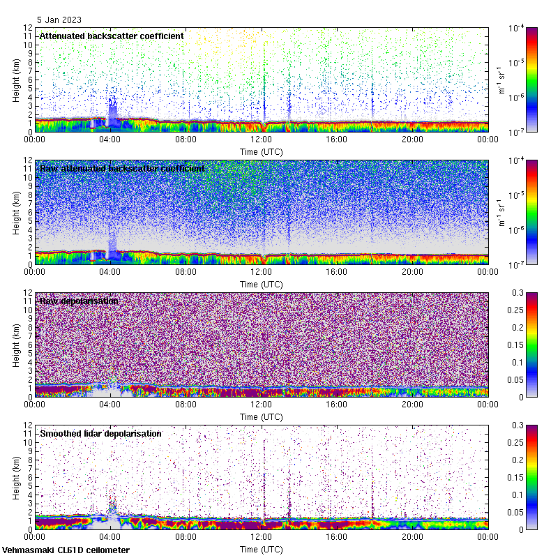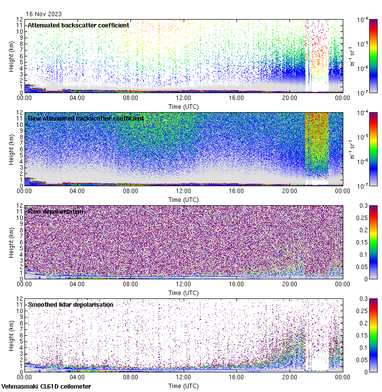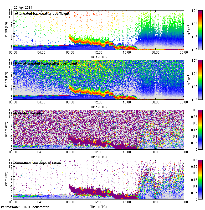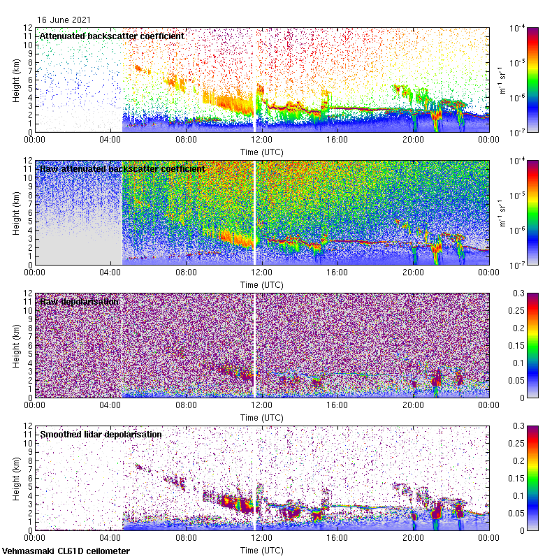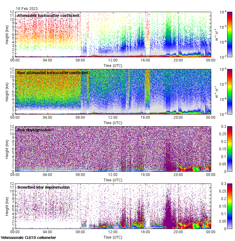 This page contains links to the daily Vehmasmaki Vaisala CL61D ceilometer images created at Kumpula.