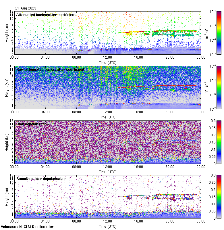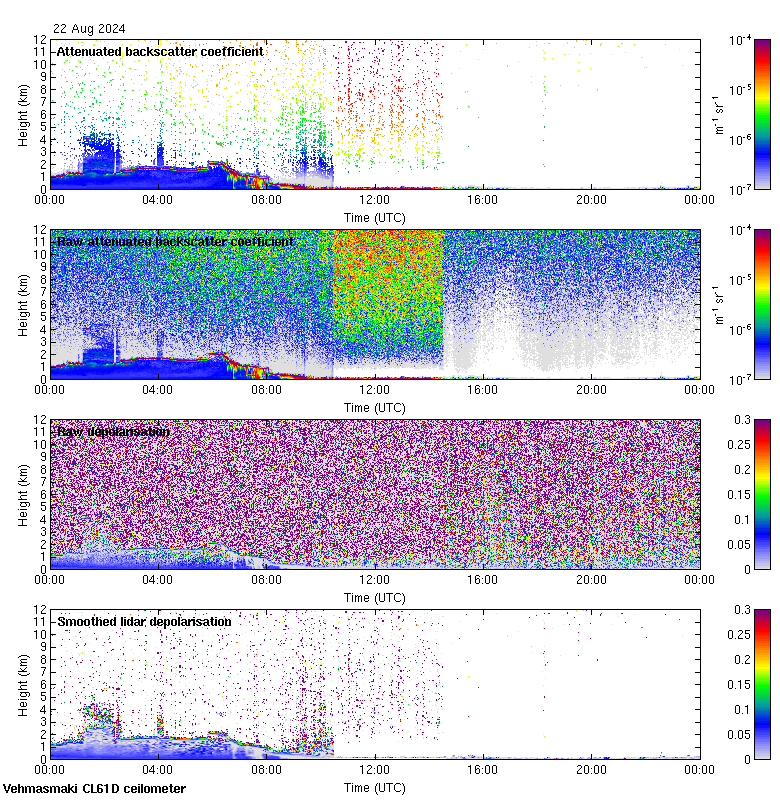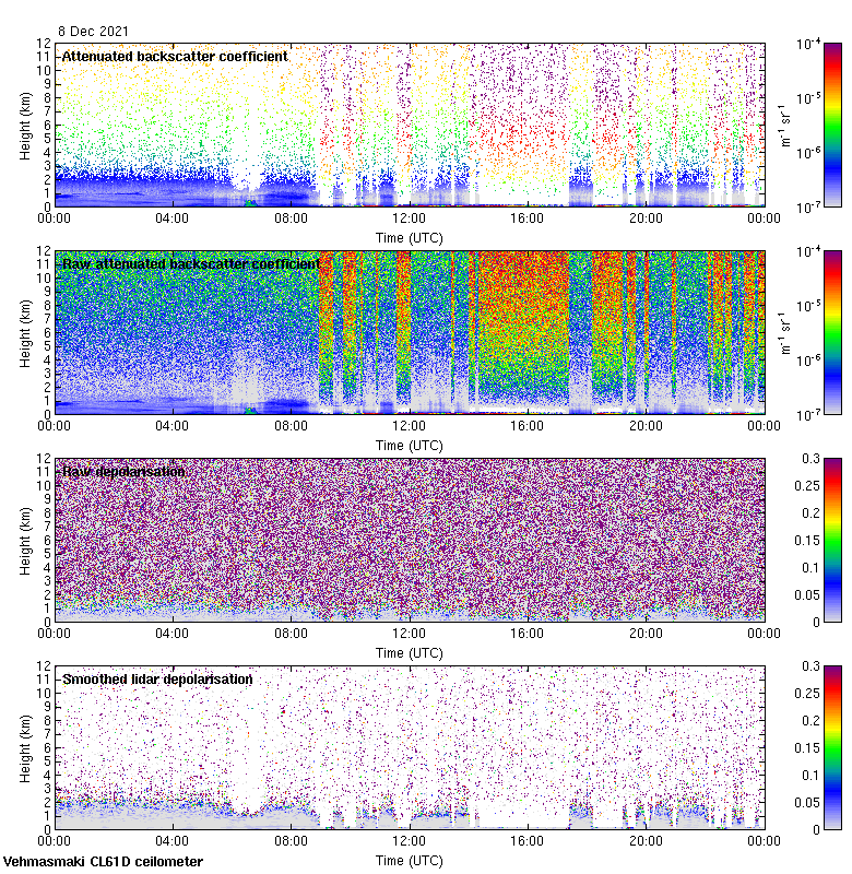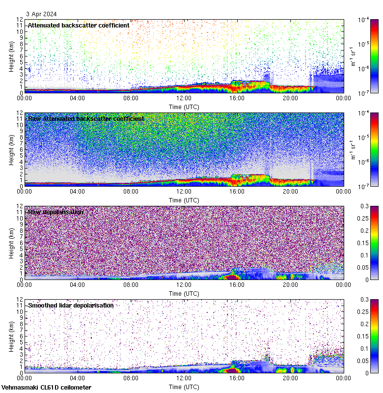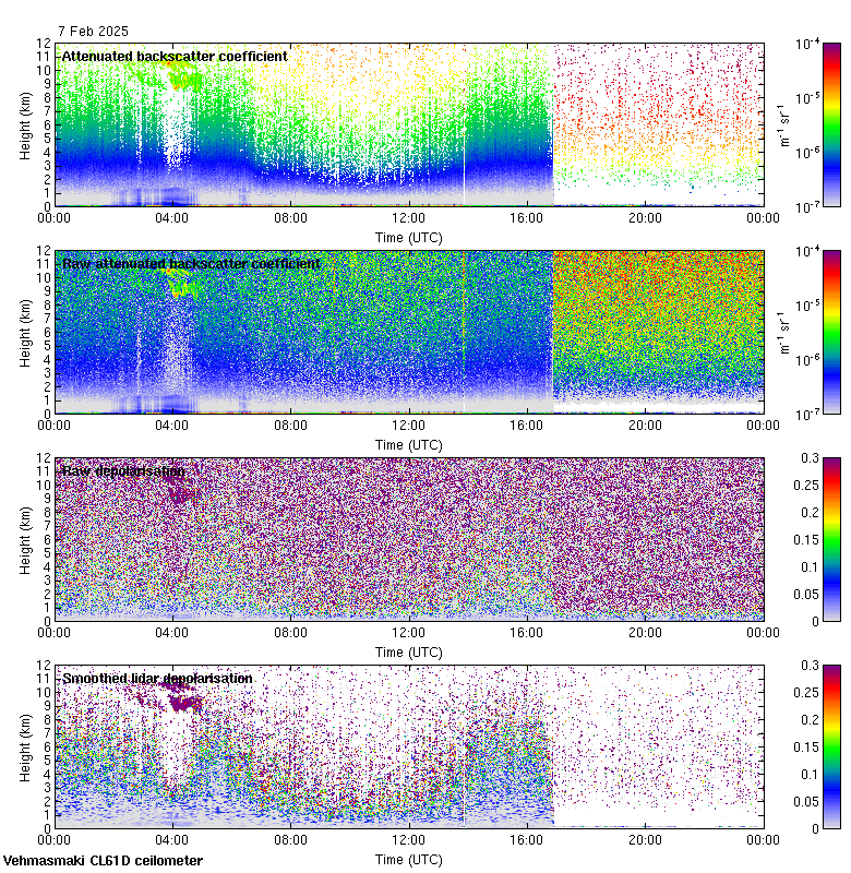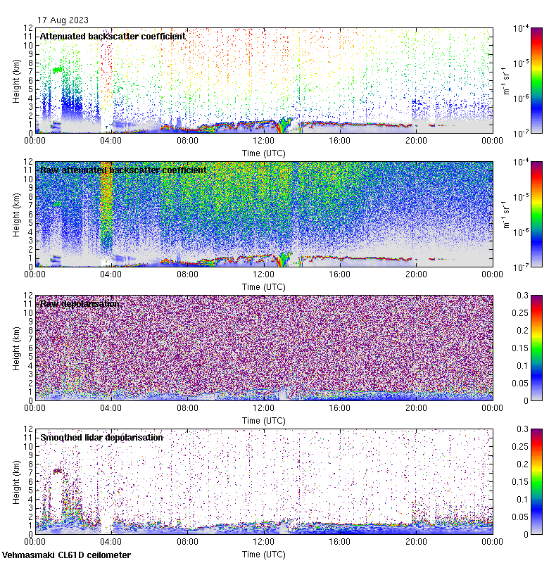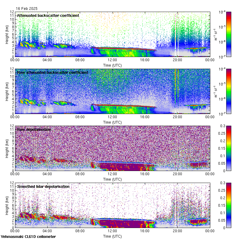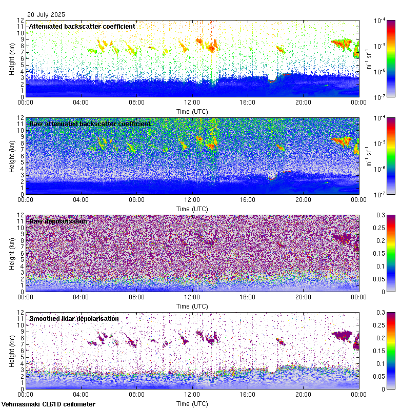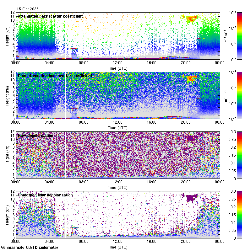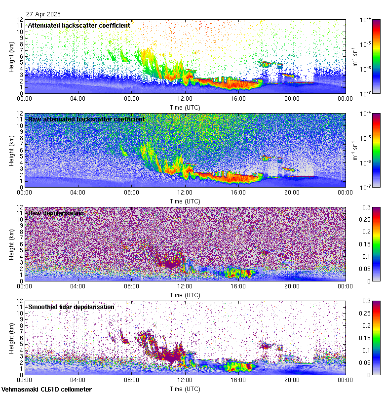This page contains links to the daily Vehmasmaki Vaisala CL61D ceilometer images created at Kumpula.