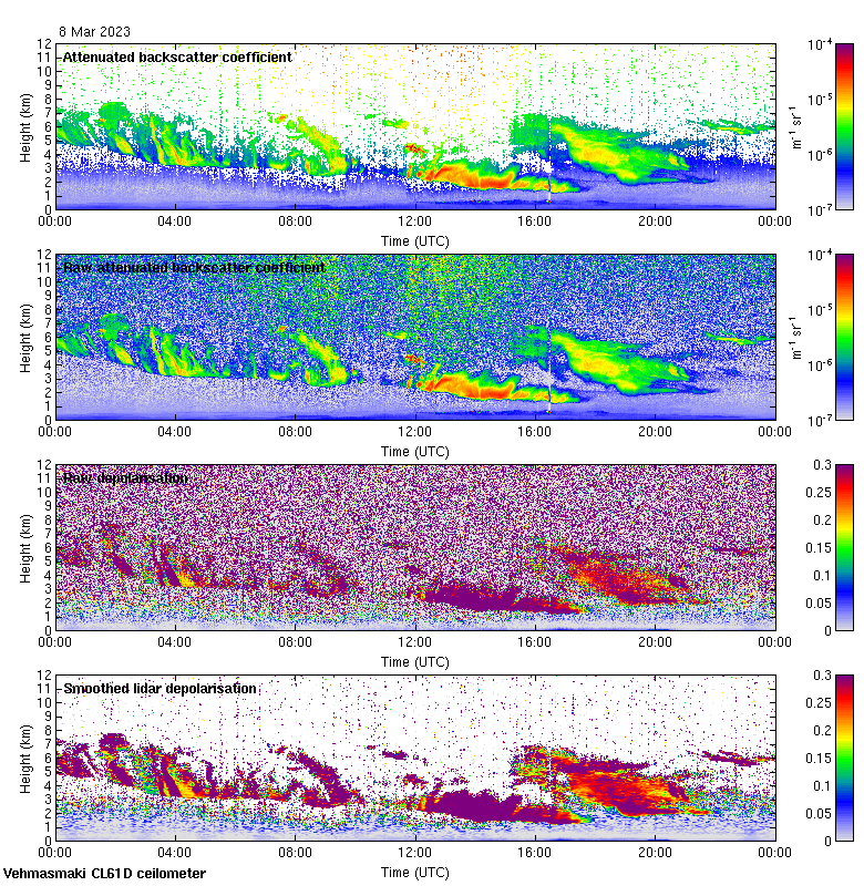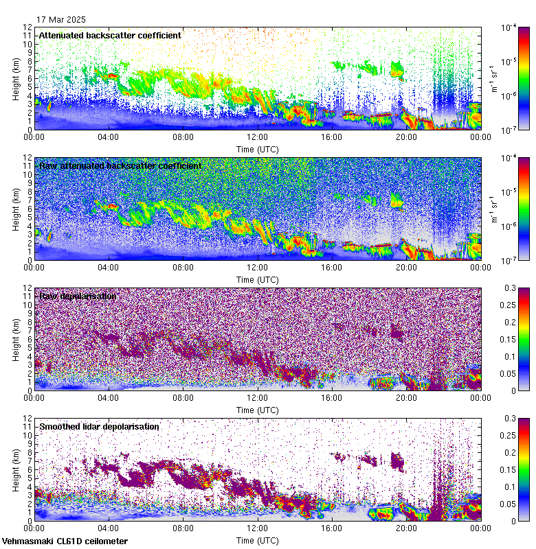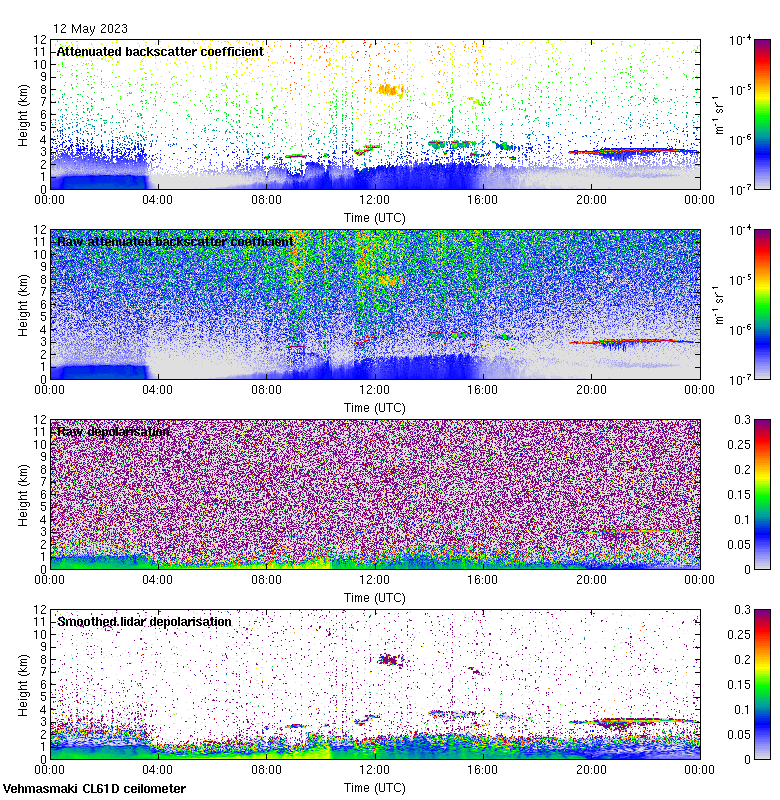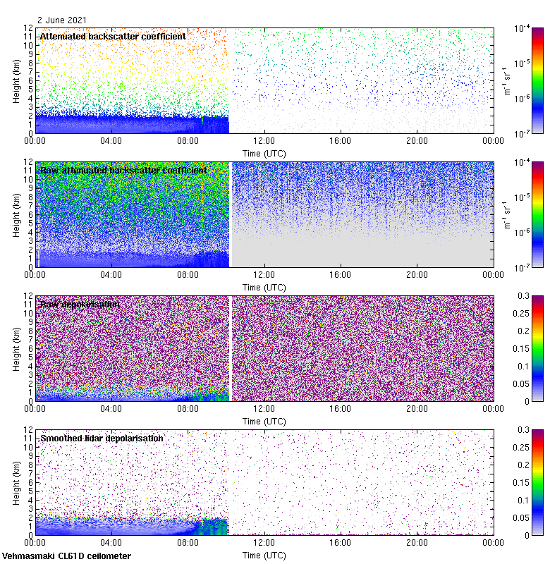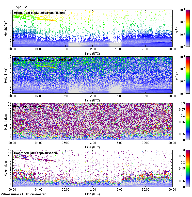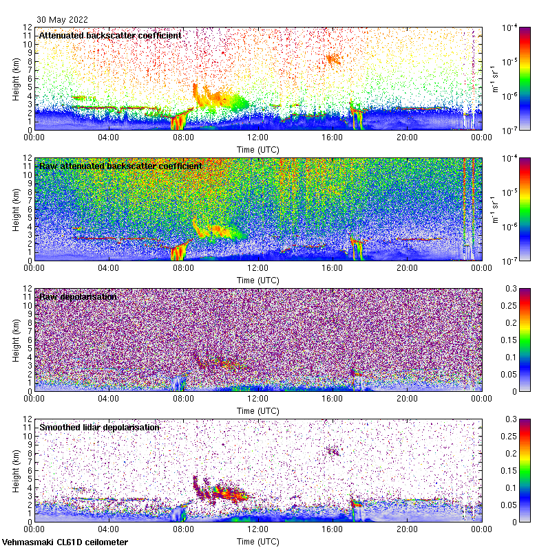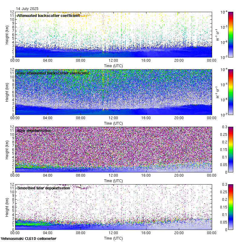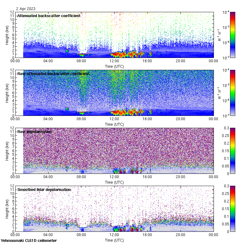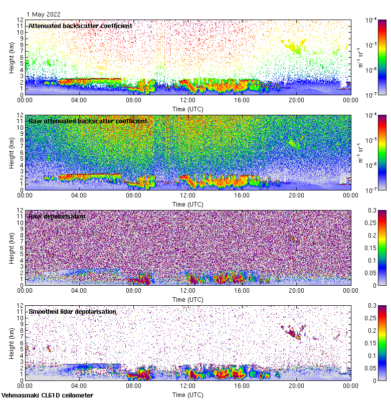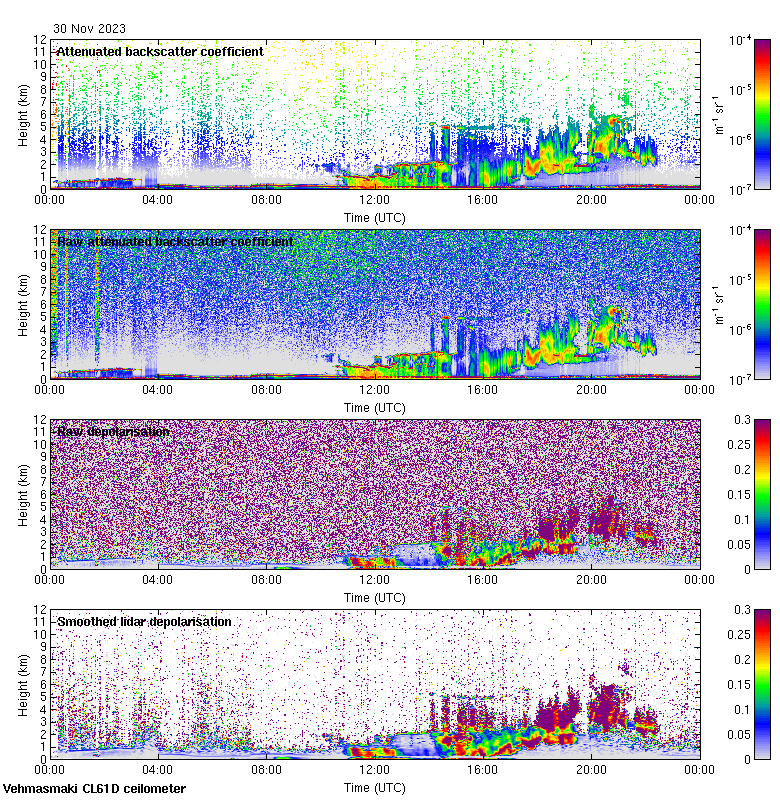 This page contains links to the daily Vehmasmaki Vaisala CL61D ceilometer images created at Kumpula.