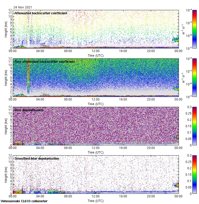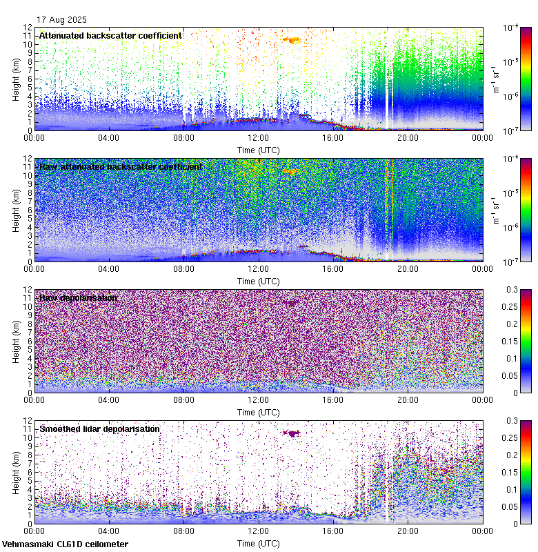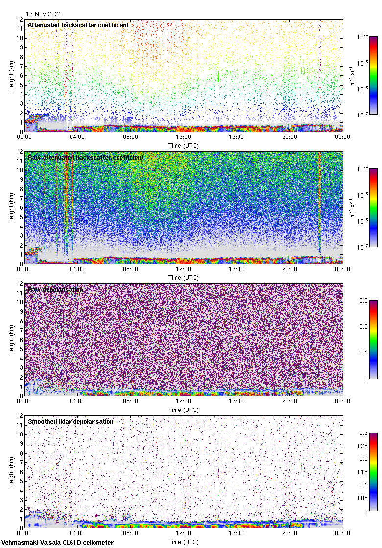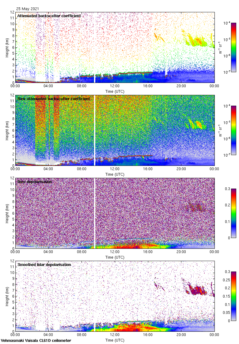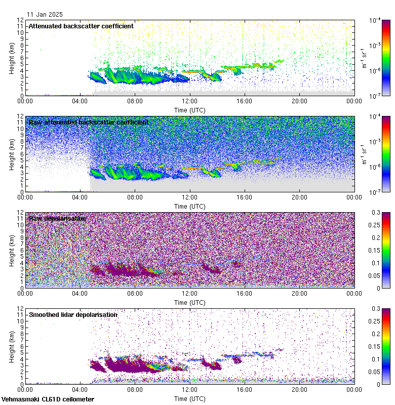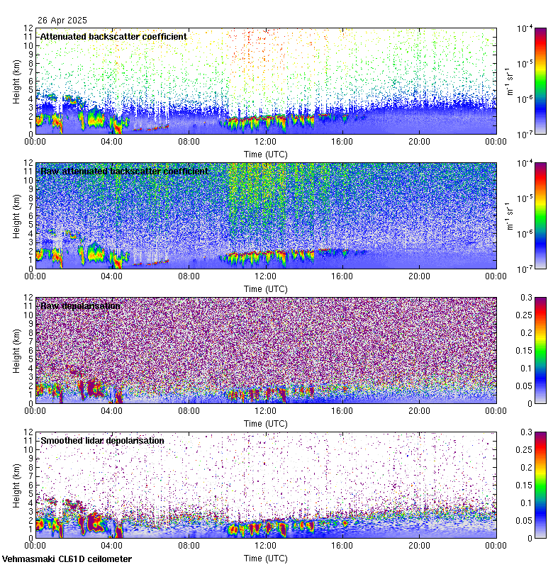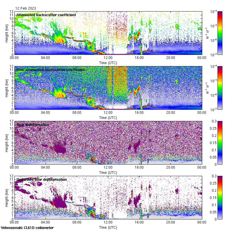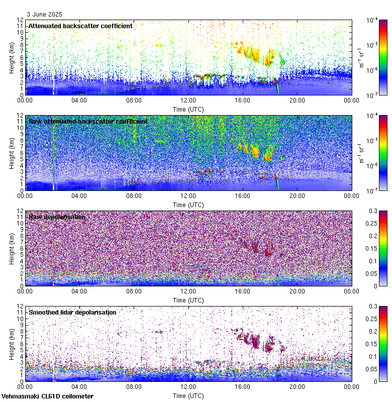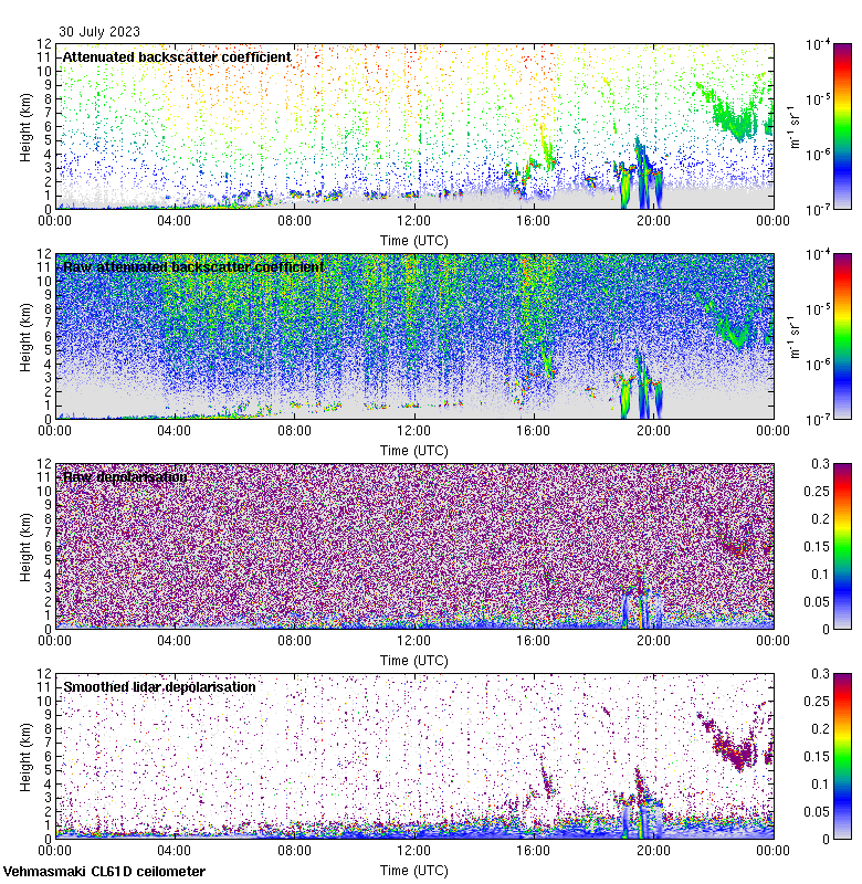 This page contains links to the daily Vehmasmaki Vaisala CL61D ceilometer images created at Kumpula.