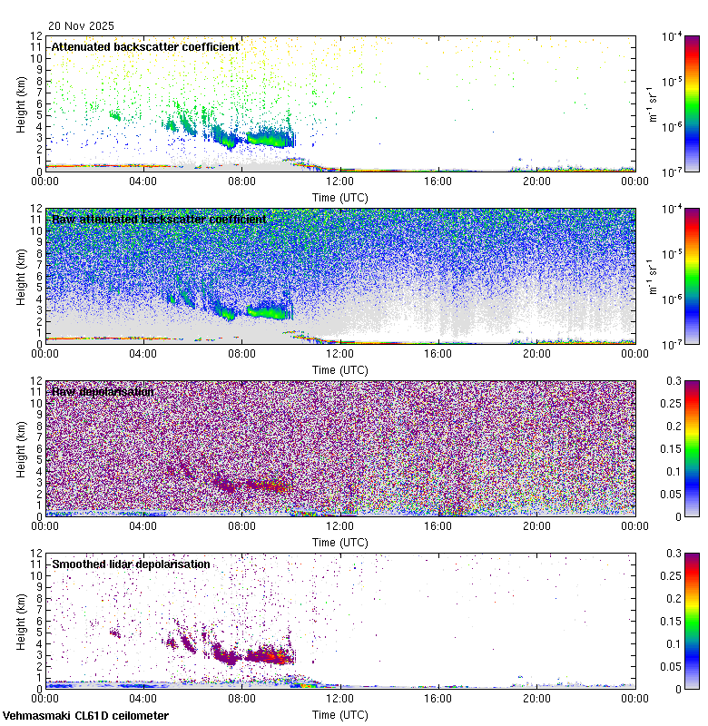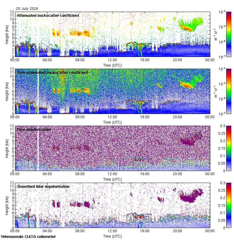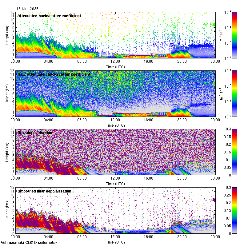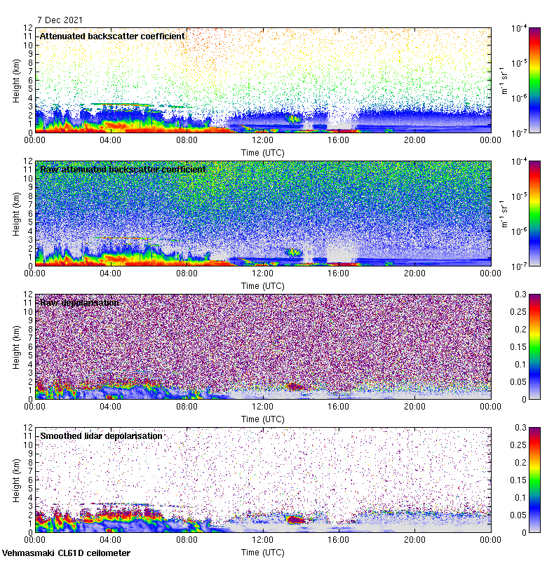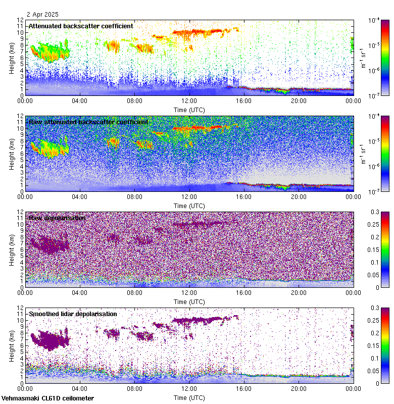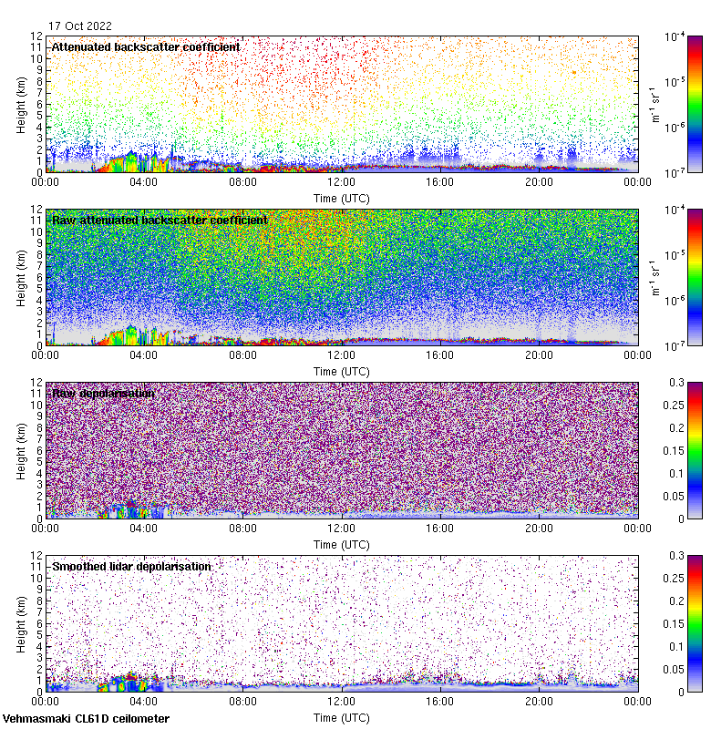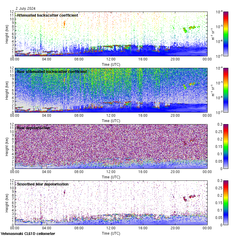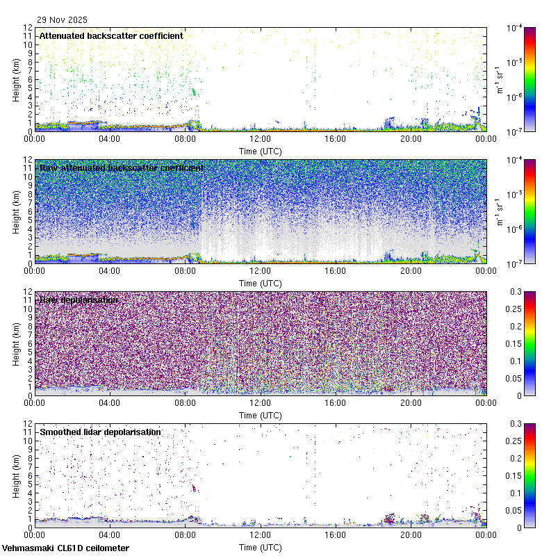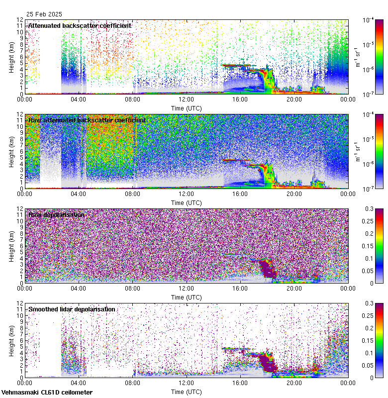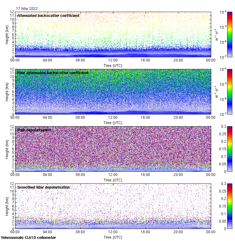 This page contains links to the daily Vehmasmaki Vaisala CL61D ceilometer images created at Kumpula.