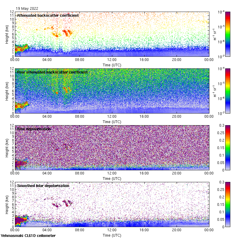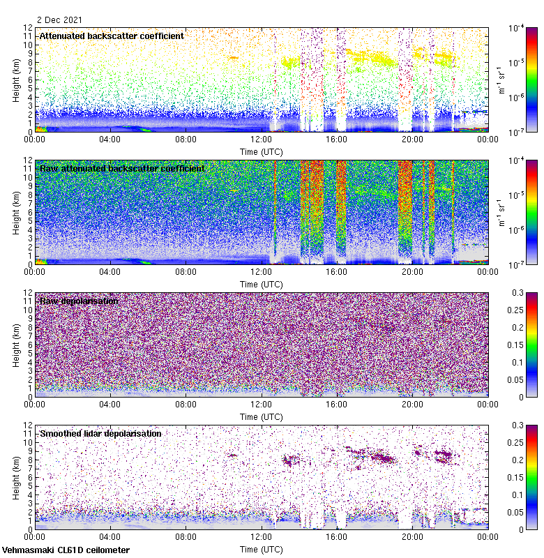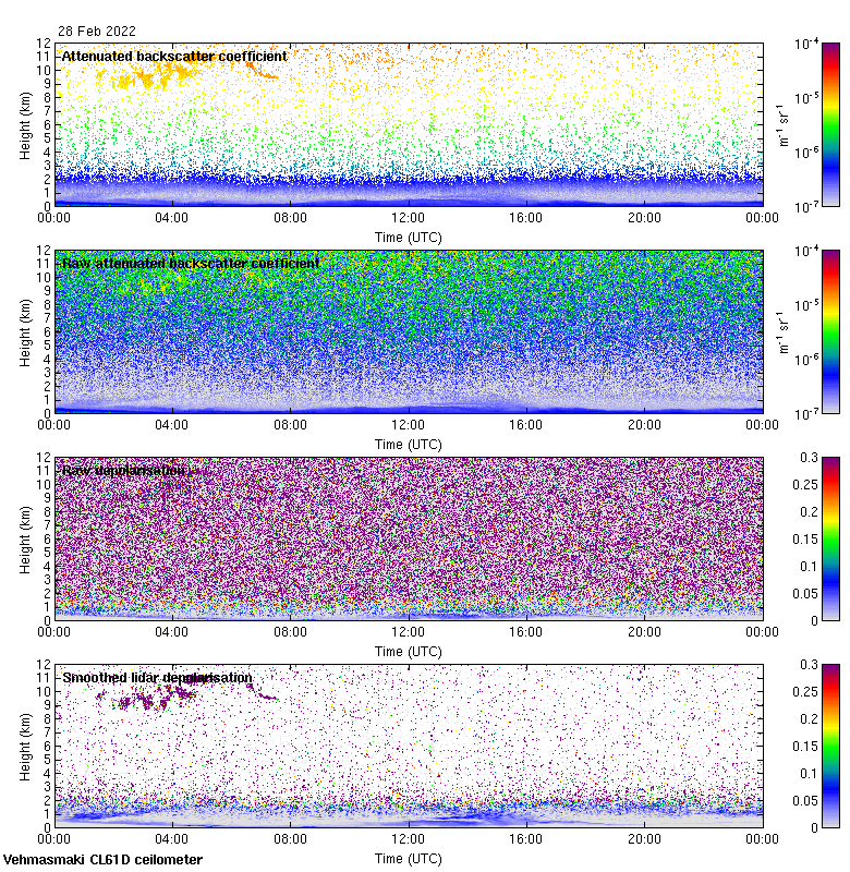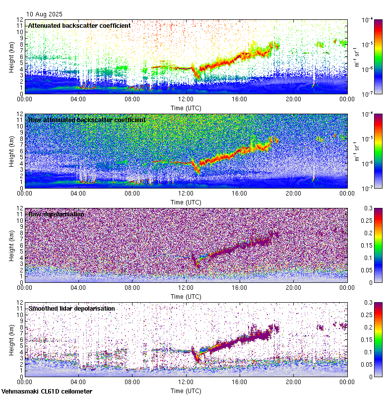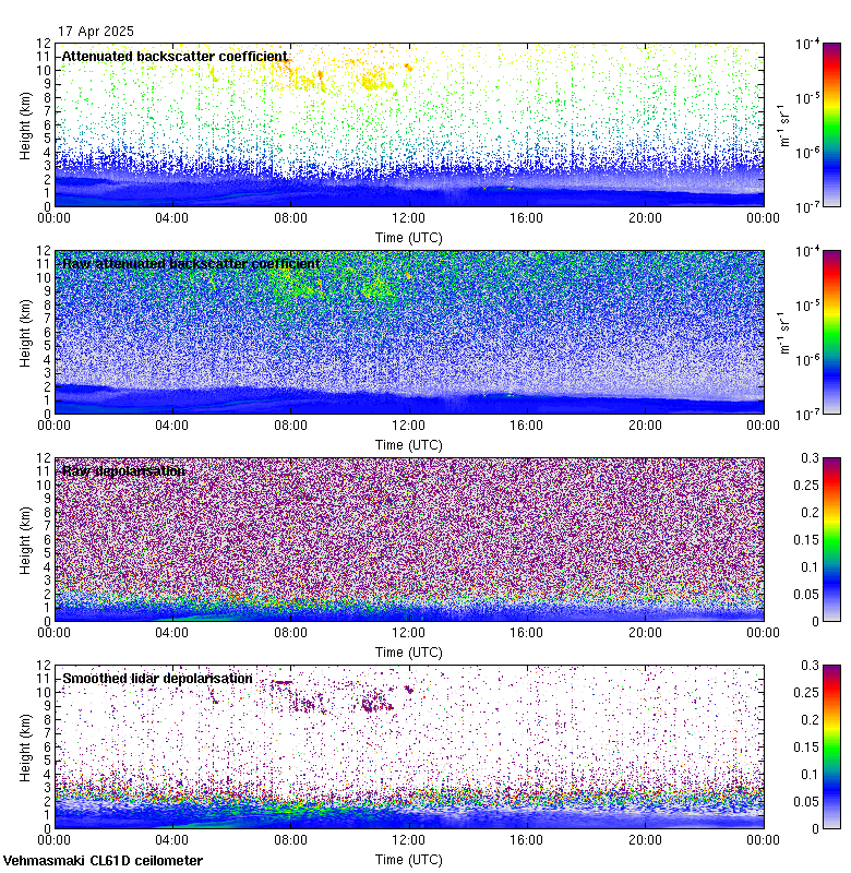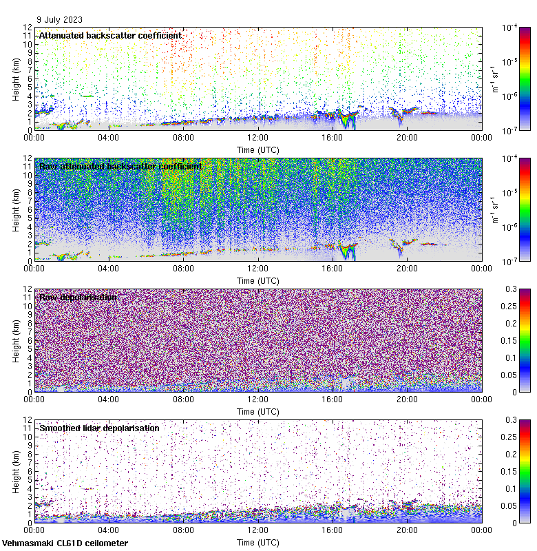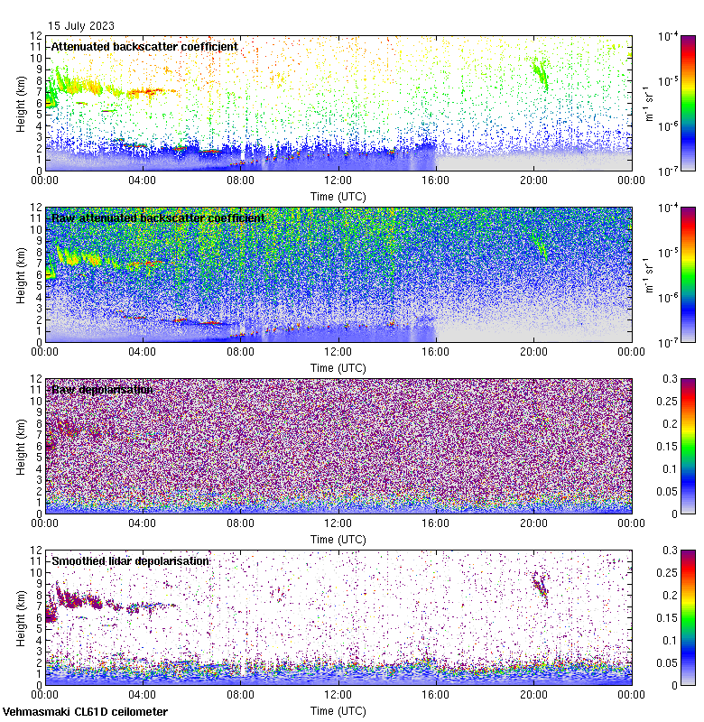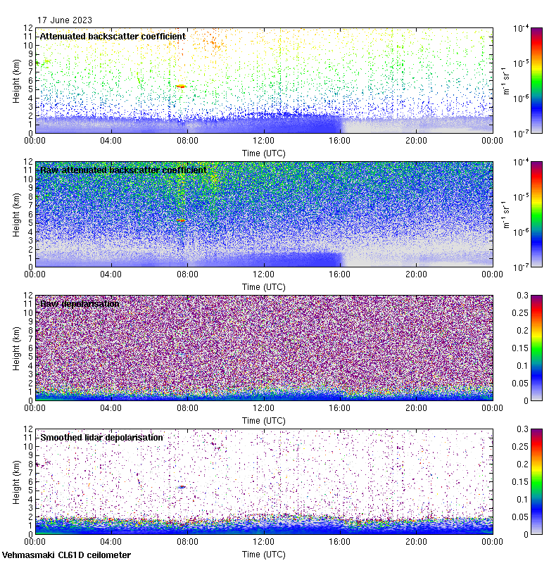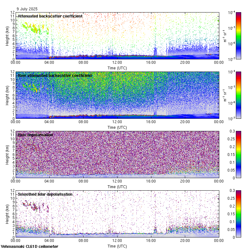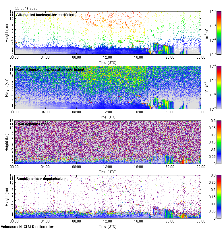 This page contains links to the daily Vehmasmaki Vaisala CL61D ceilometer images created at Kumpula.