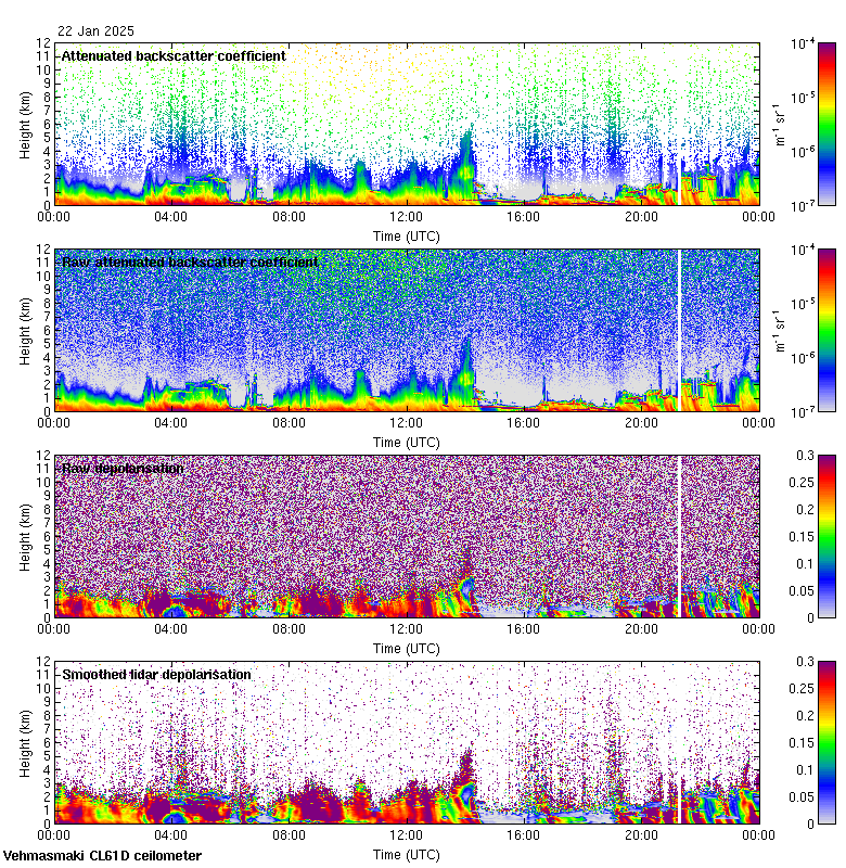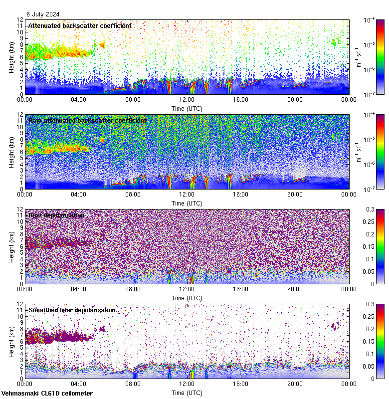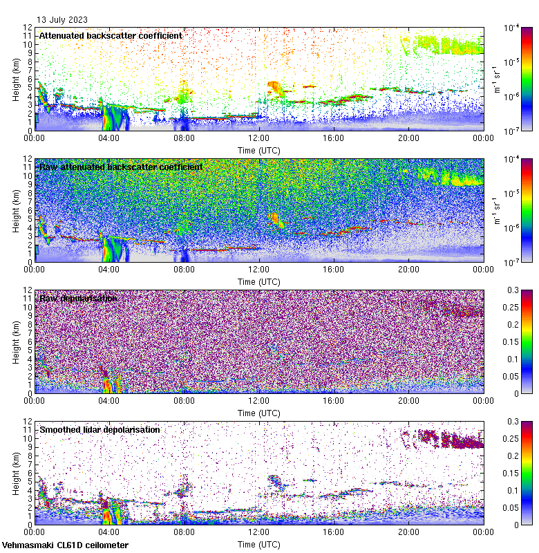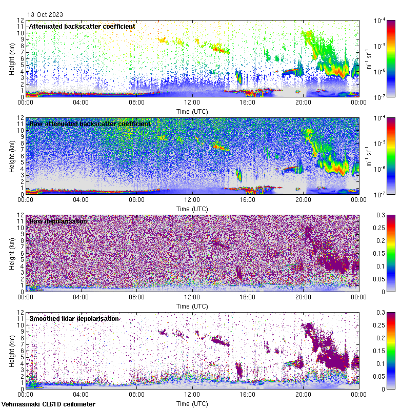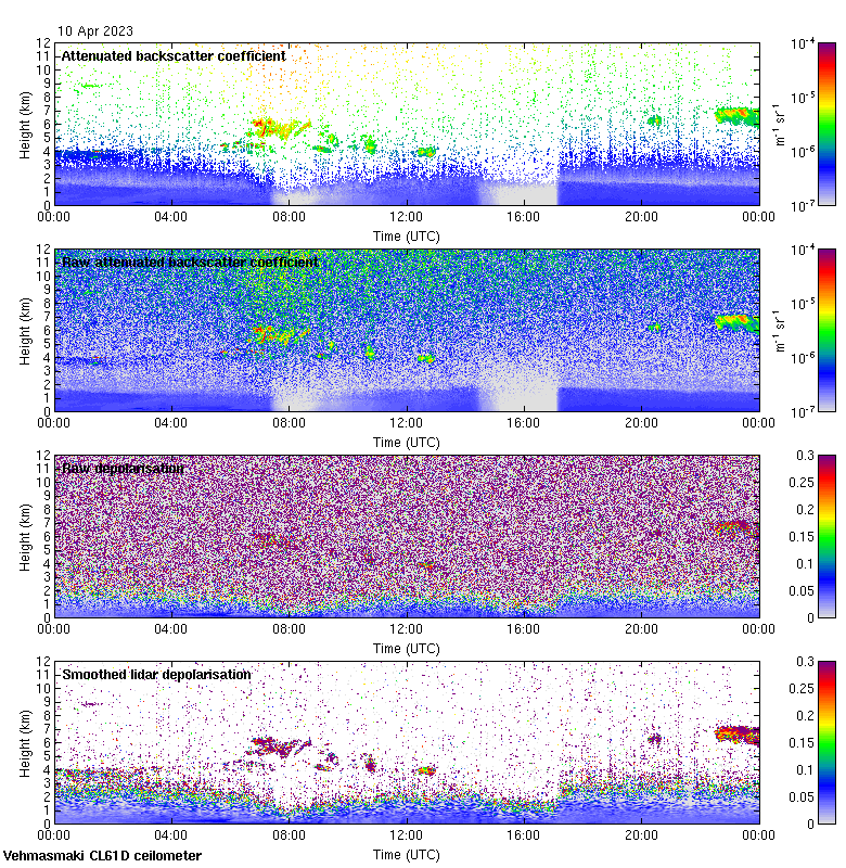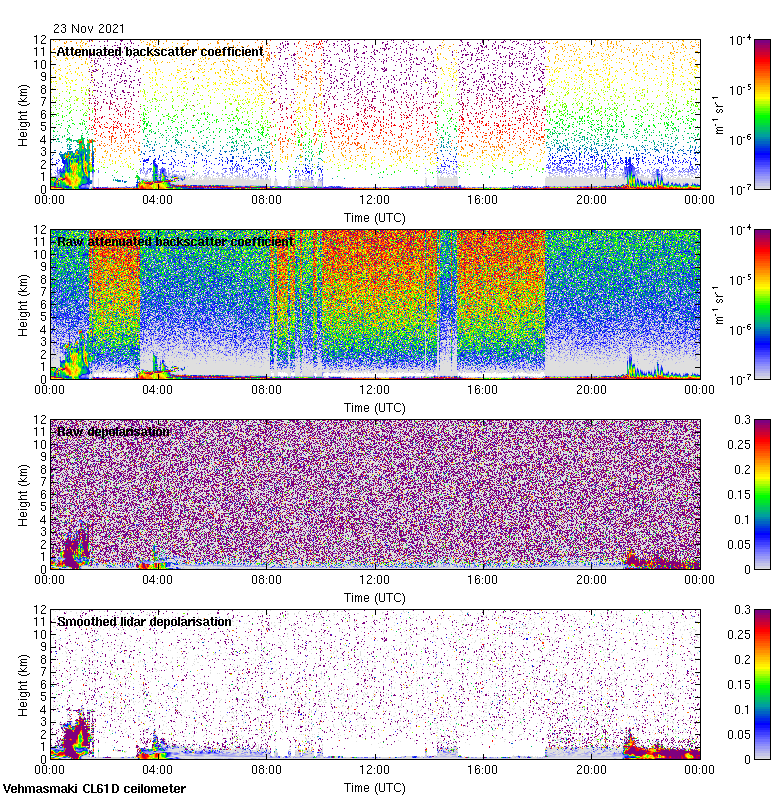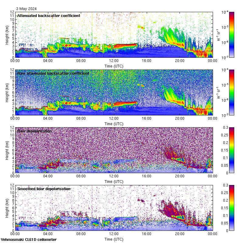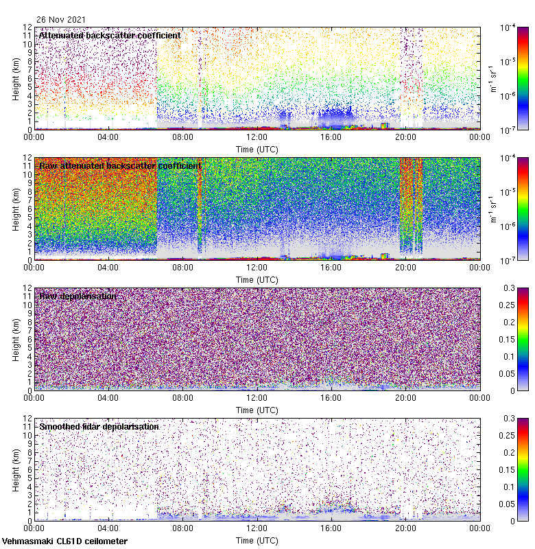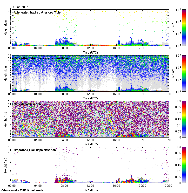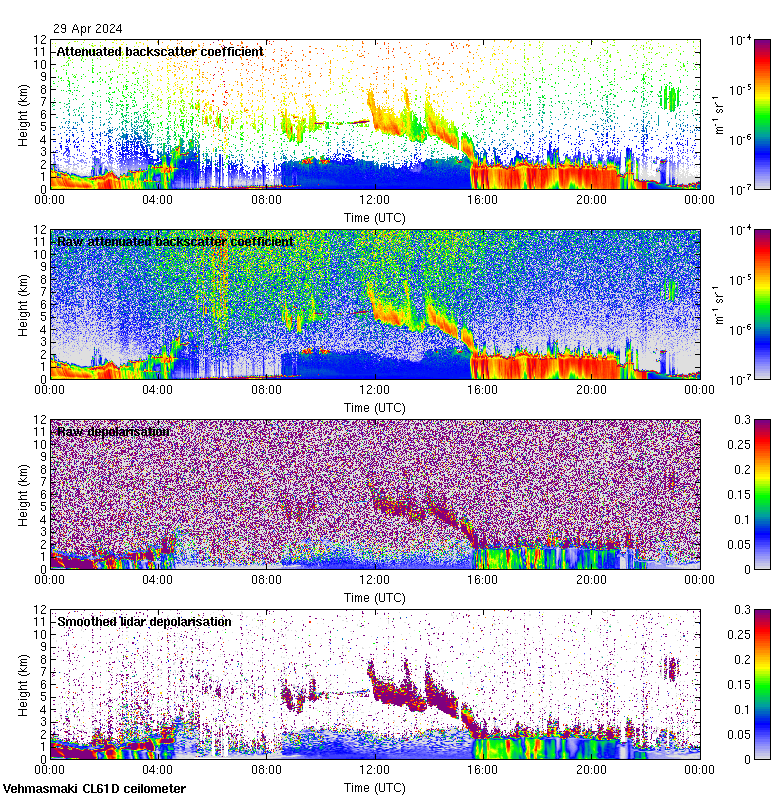 This page contains links to the daily Vehmasmaki Vaisala CL61D ceilometer images created at Kumpula.