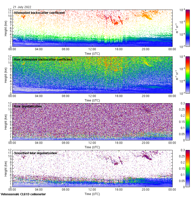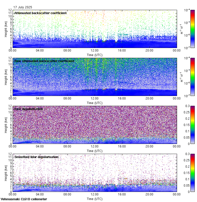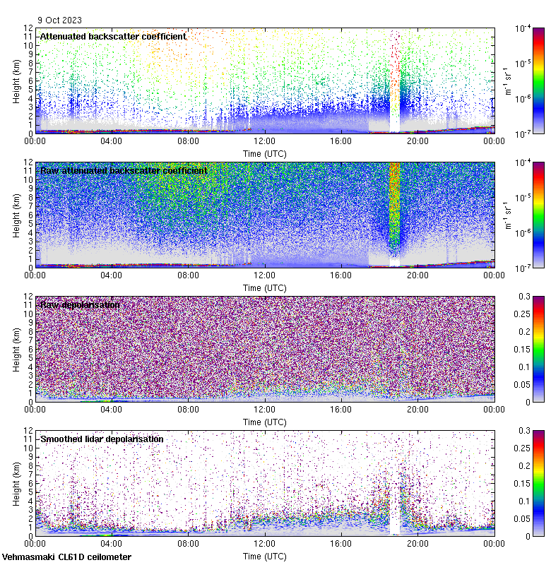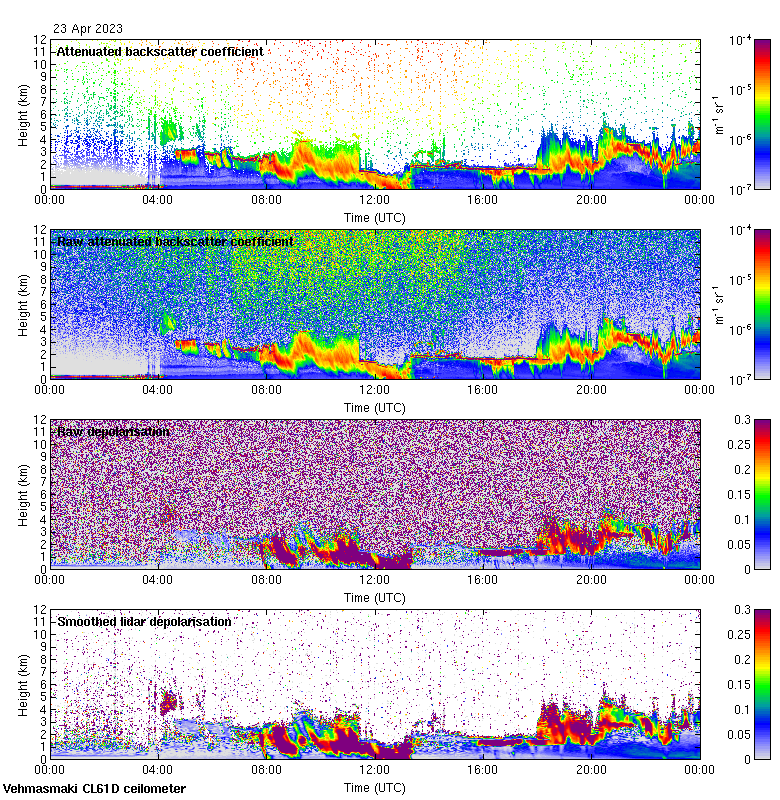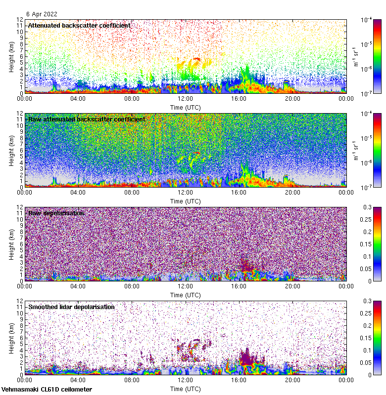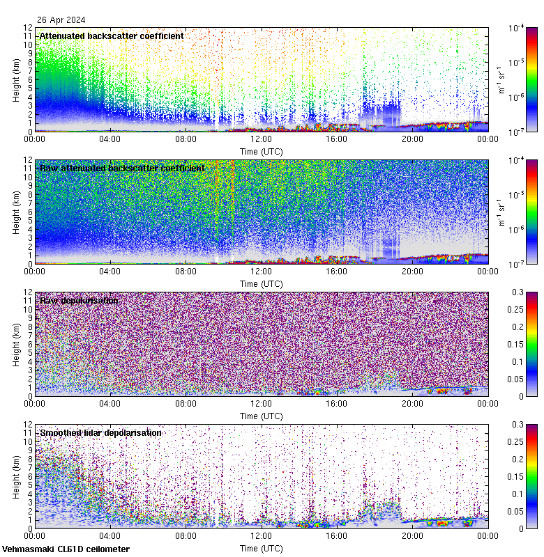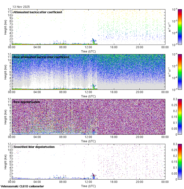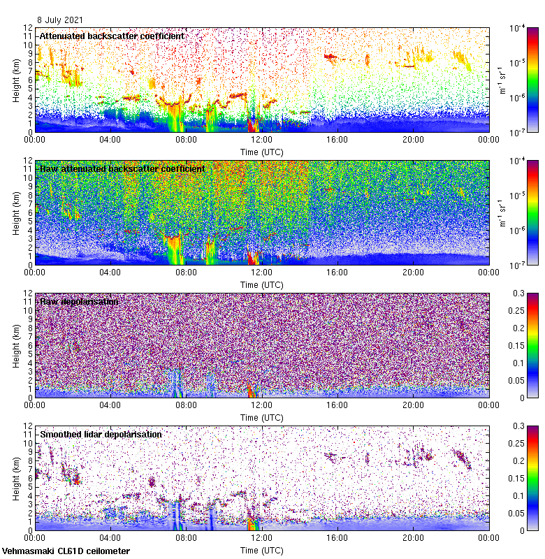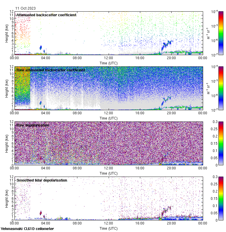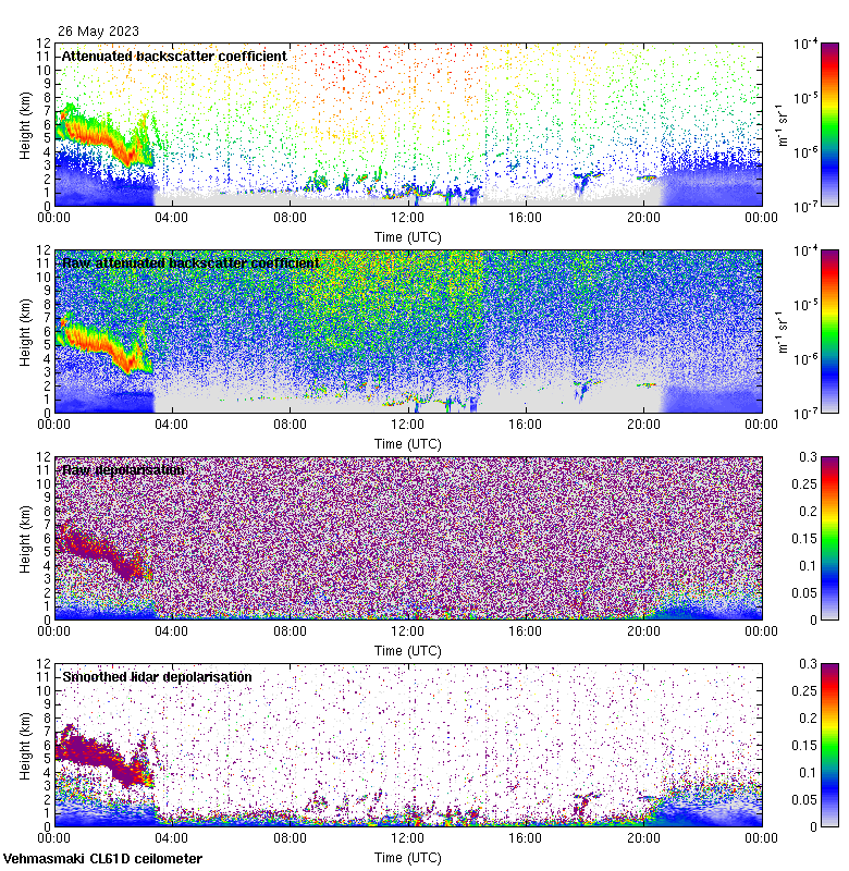 This page contains links to the daily Vehmasmaki Vaisala CL61D ceilometer images created at Kumpula.
