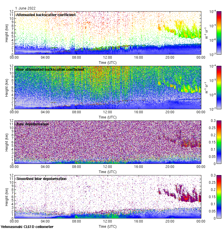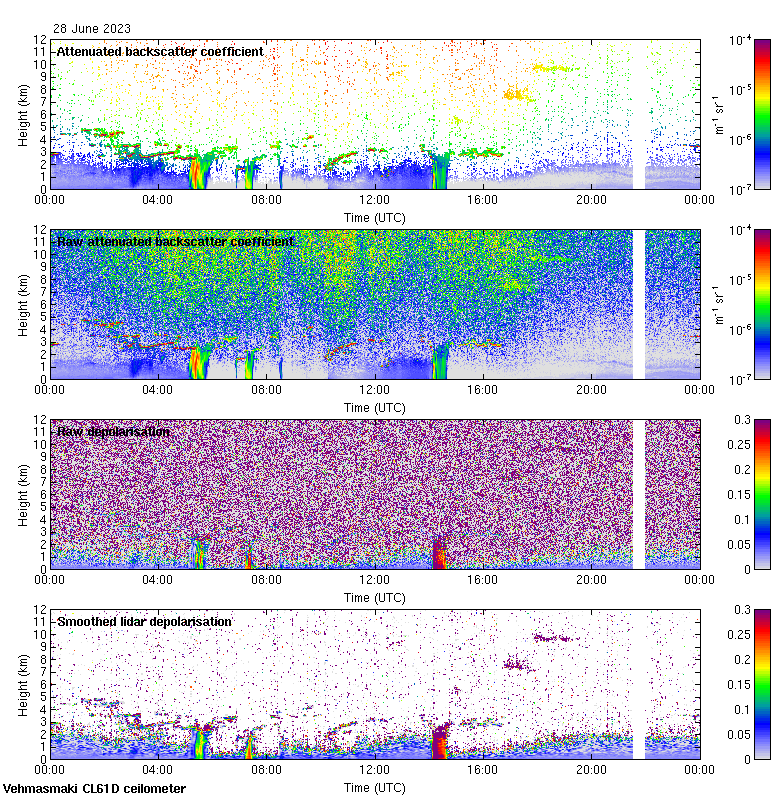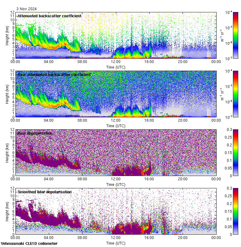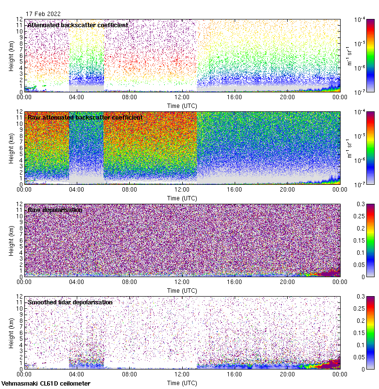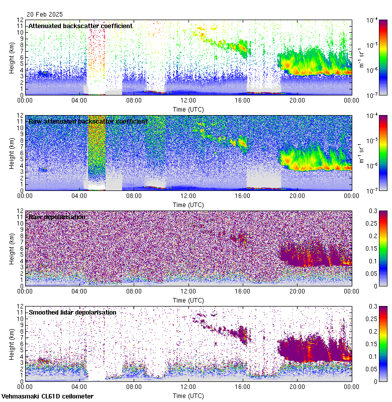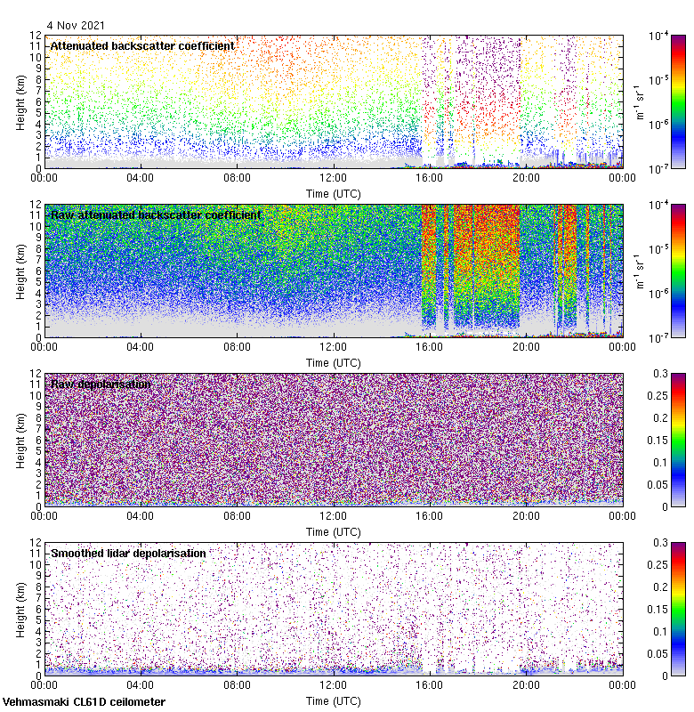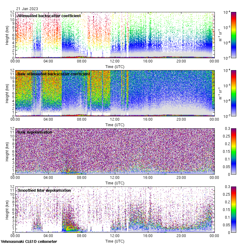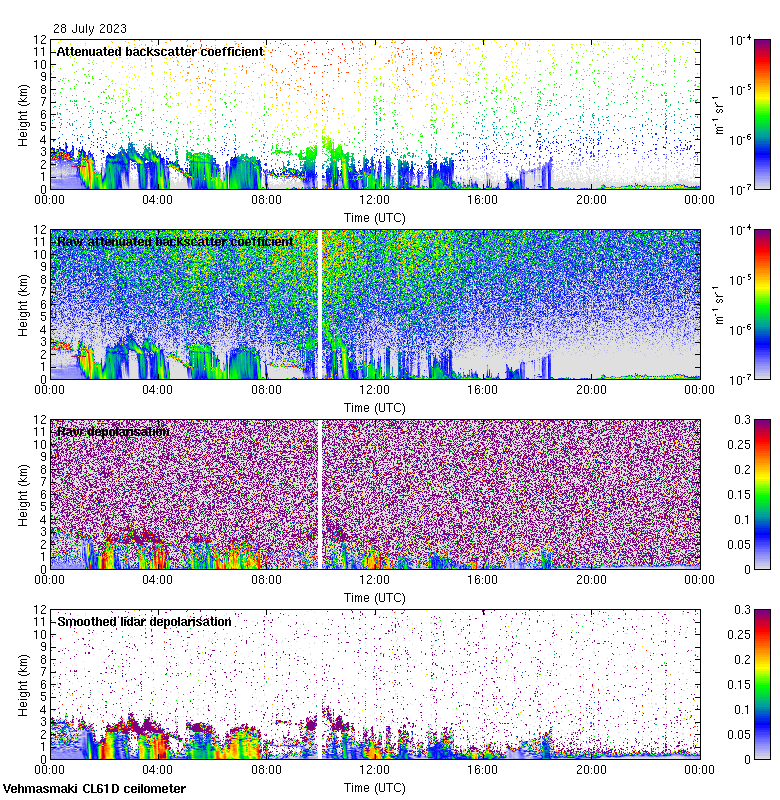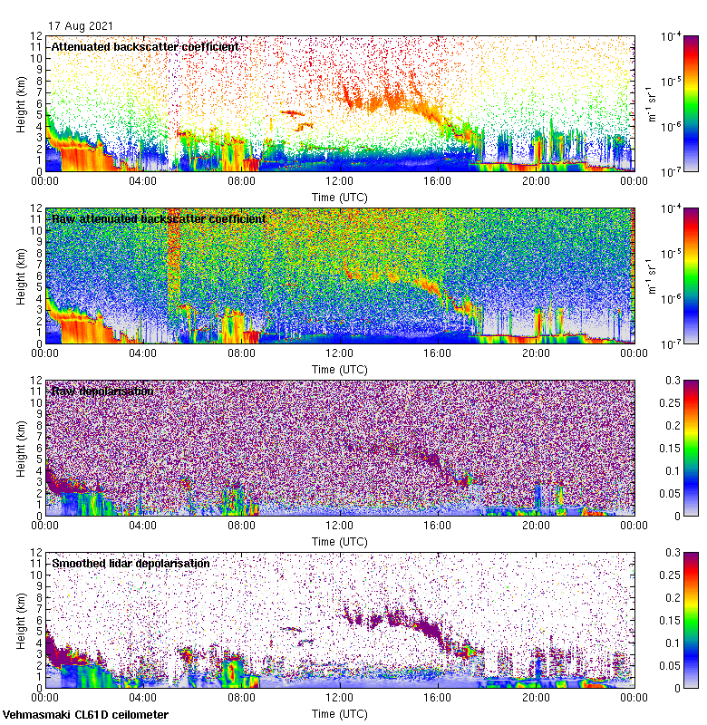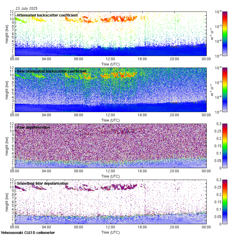 This page contains links to the daily Vehmasmaki Vaisala CL61D ceilometer images created at Kumpula.