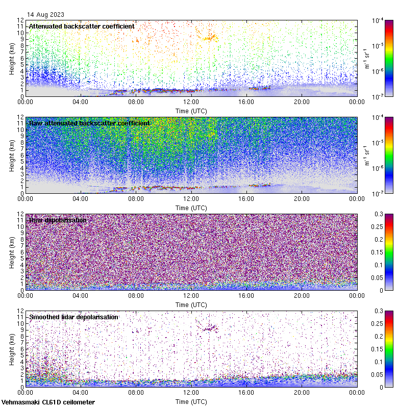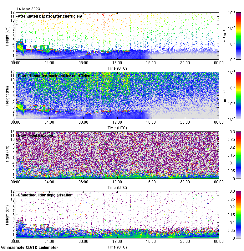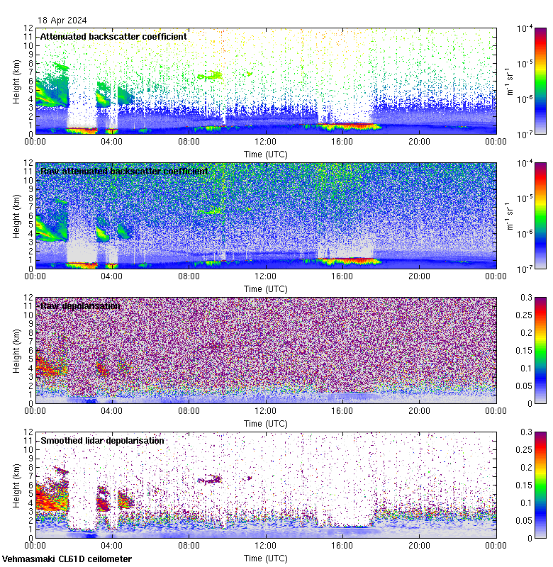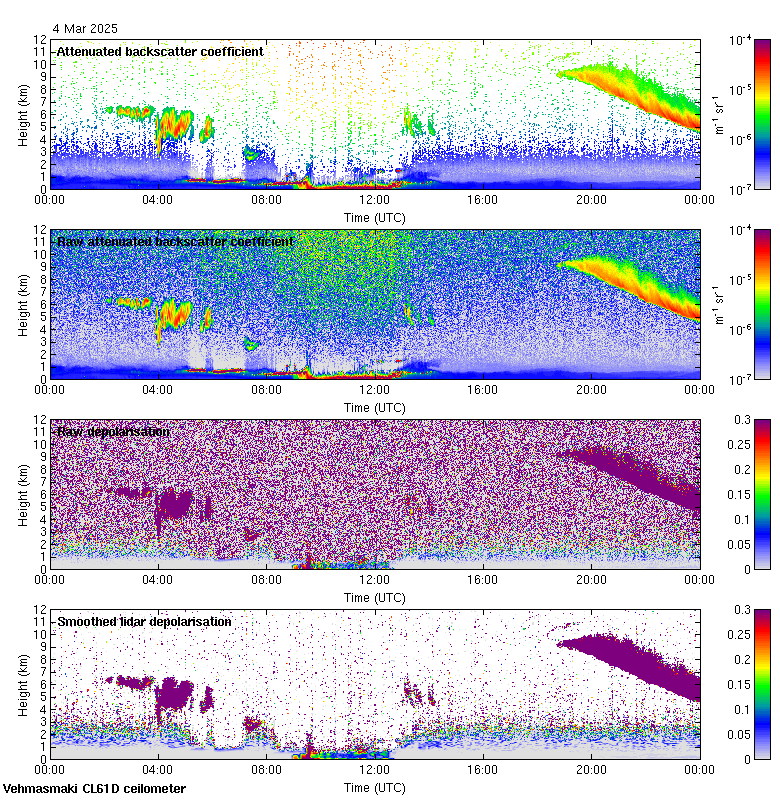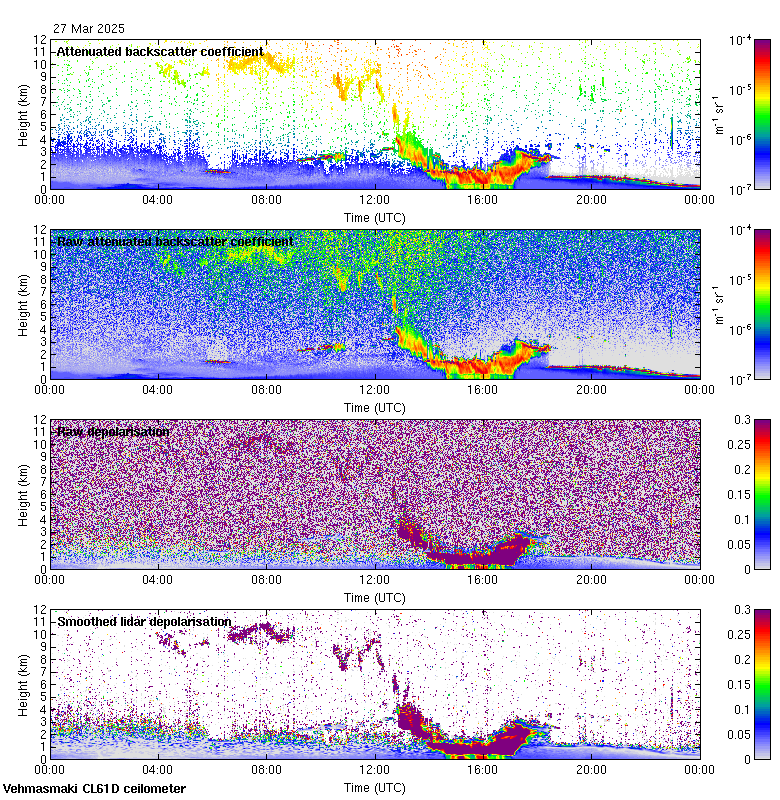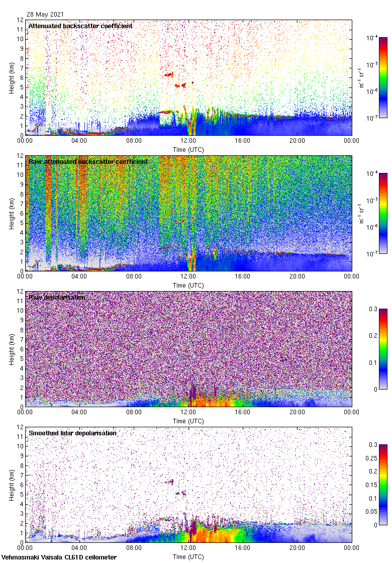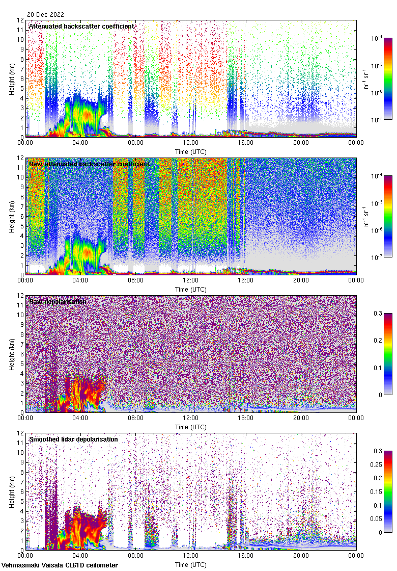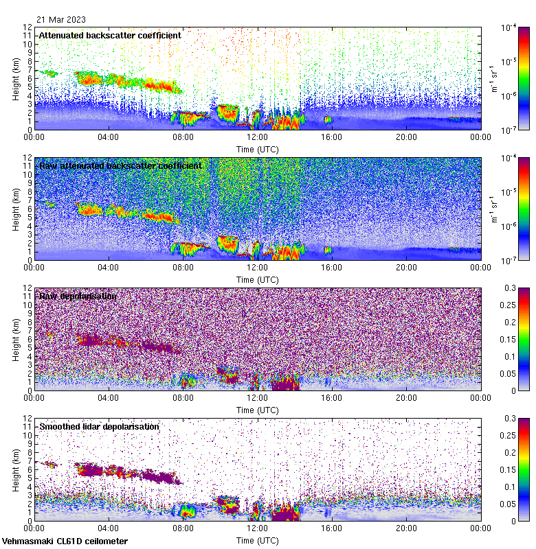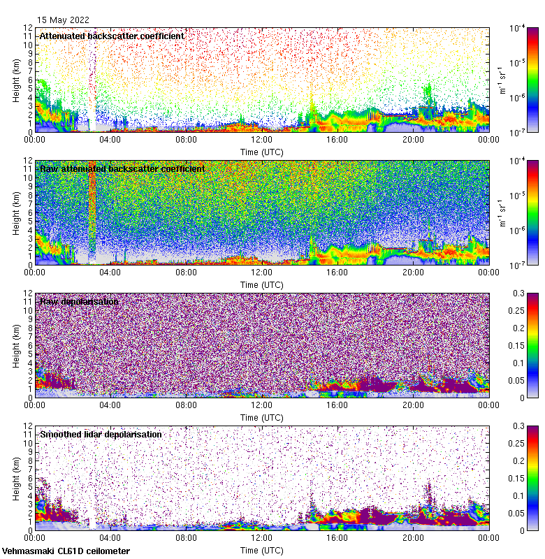 This page contains links to the daily Vehmasmaki Vaisala CL61D ceilometer images created at Kumpula.