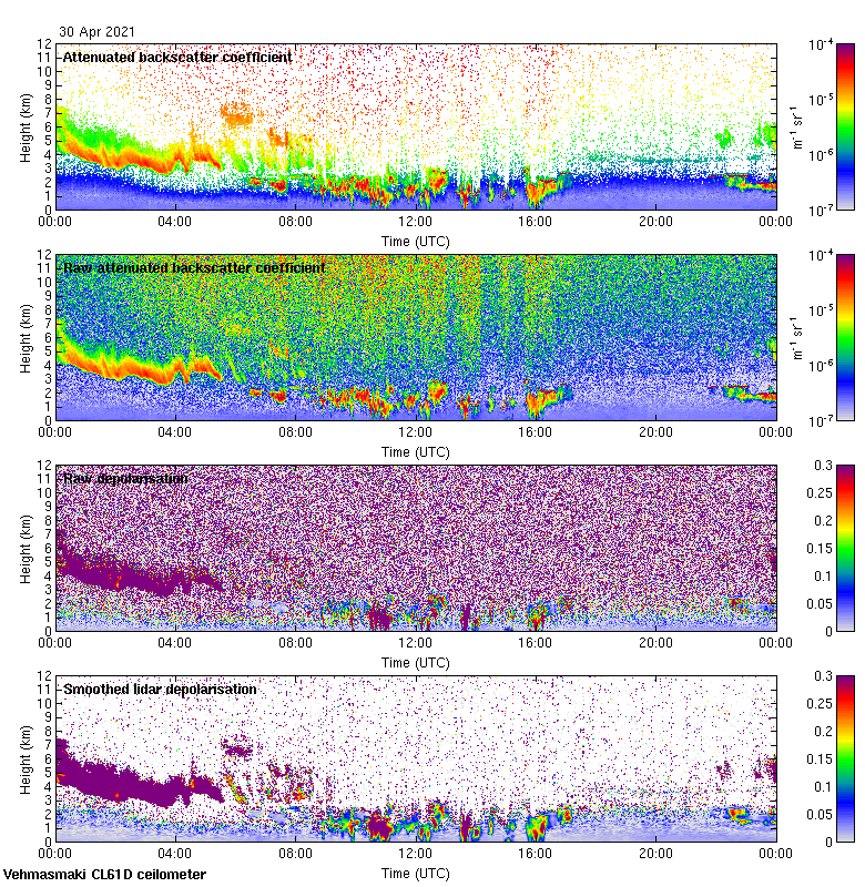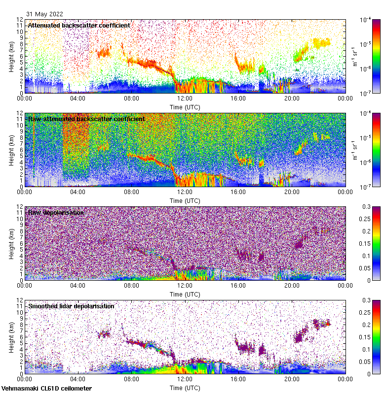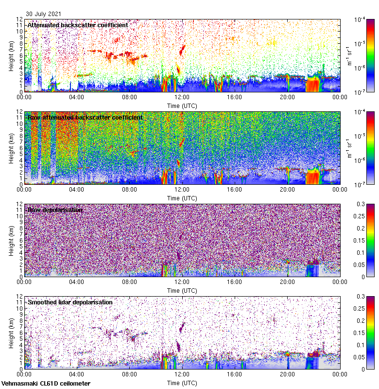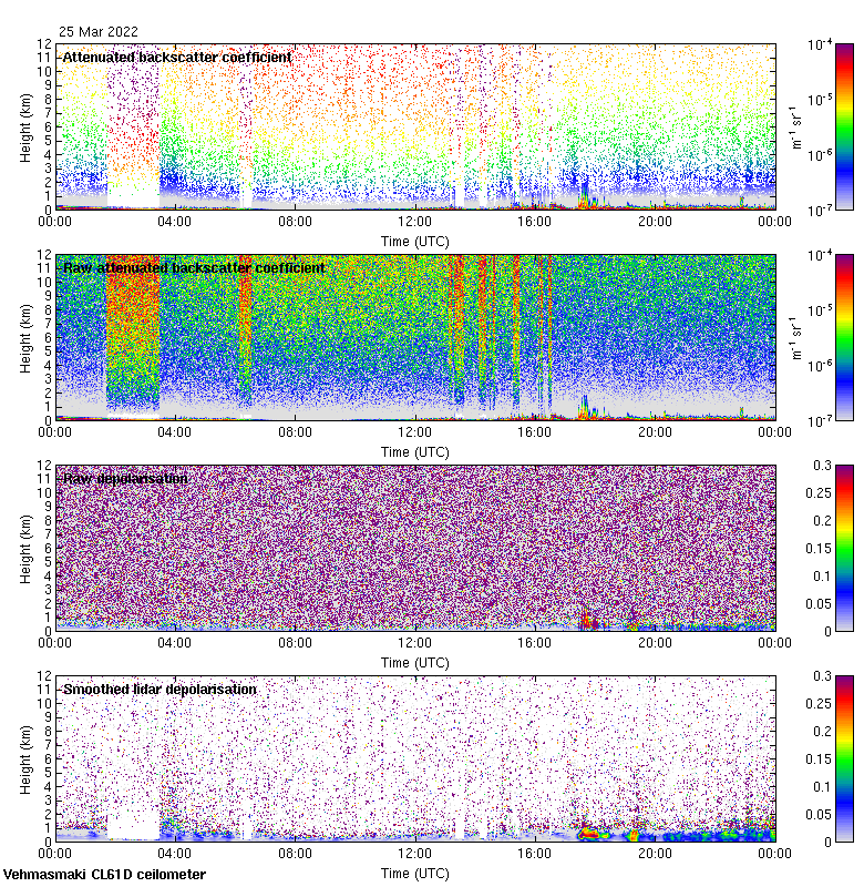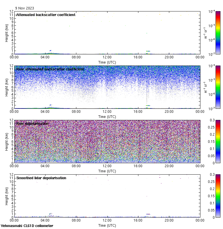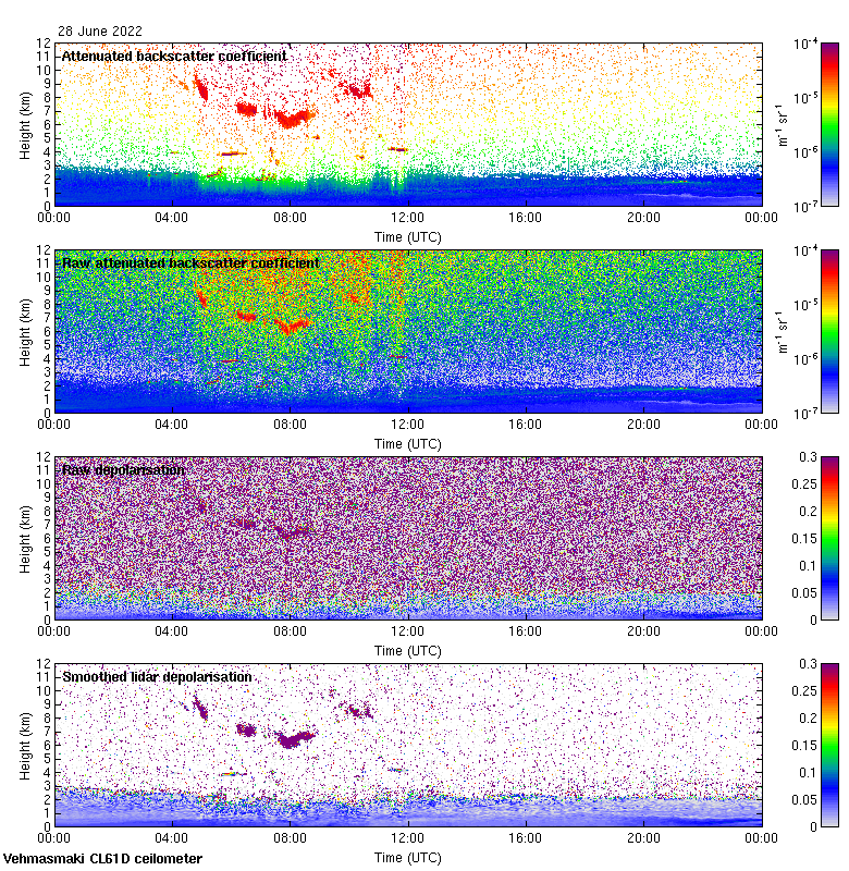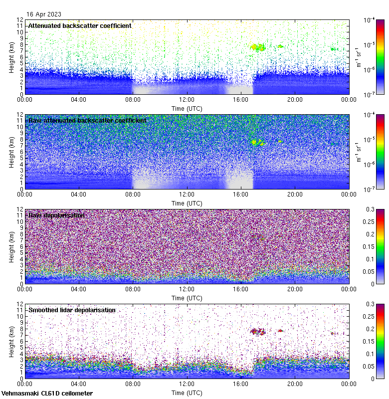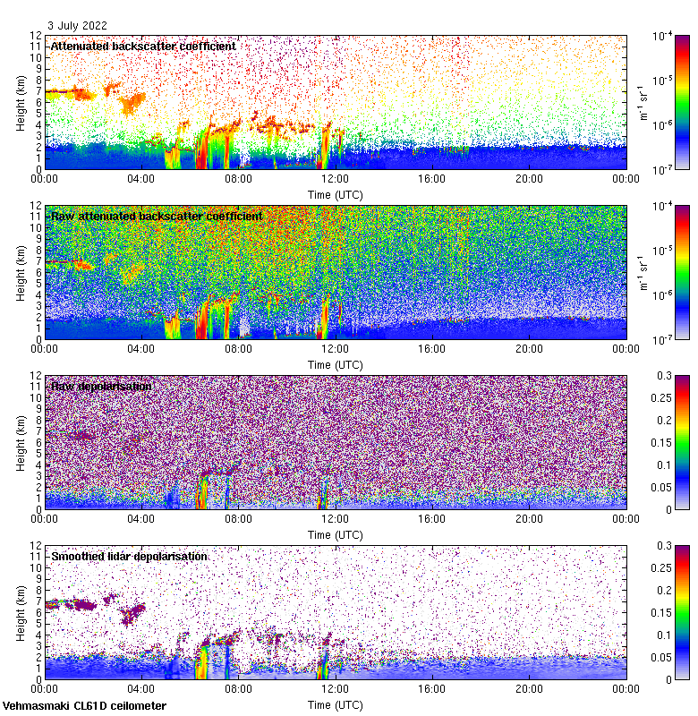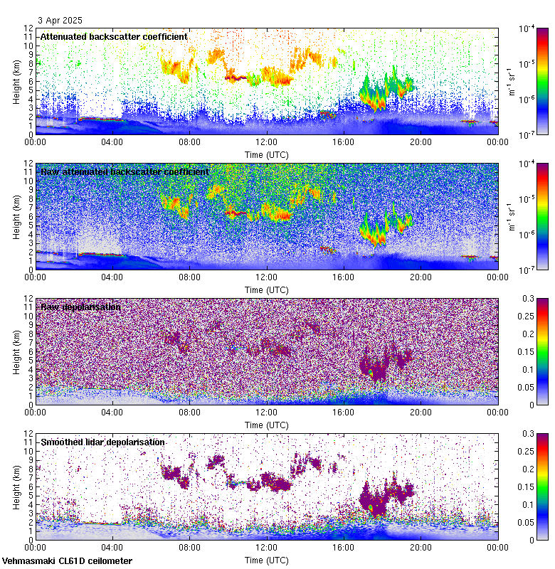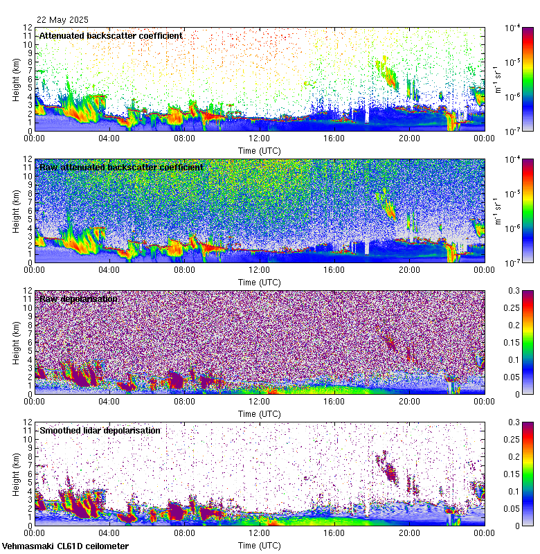 This page contains links to the daily Vehmasmaki Vaisala CL61D ceilometer images created at Kumpula.