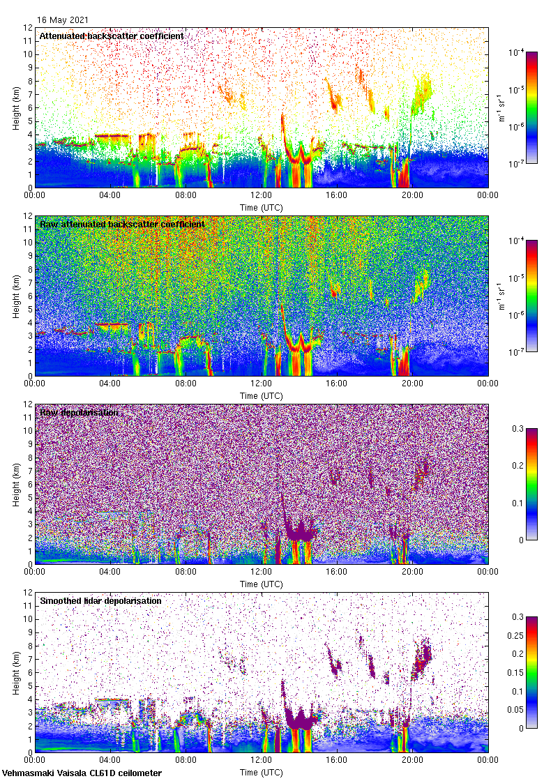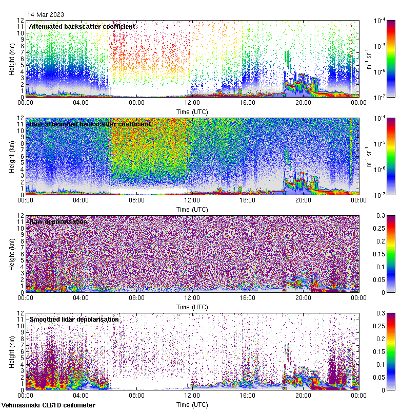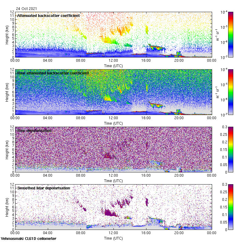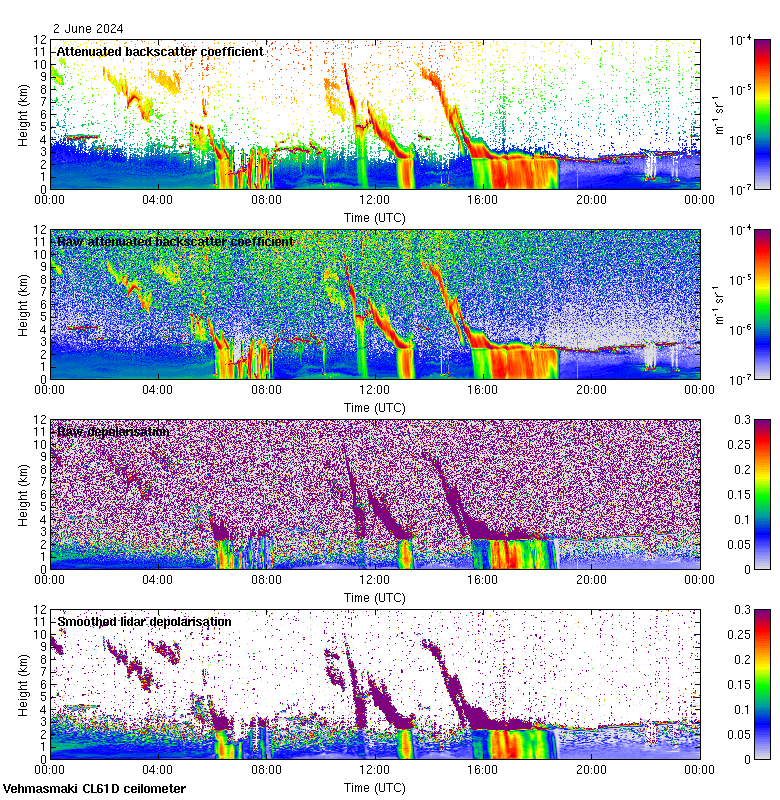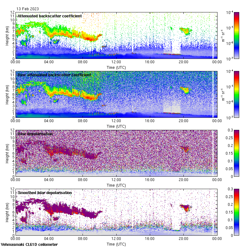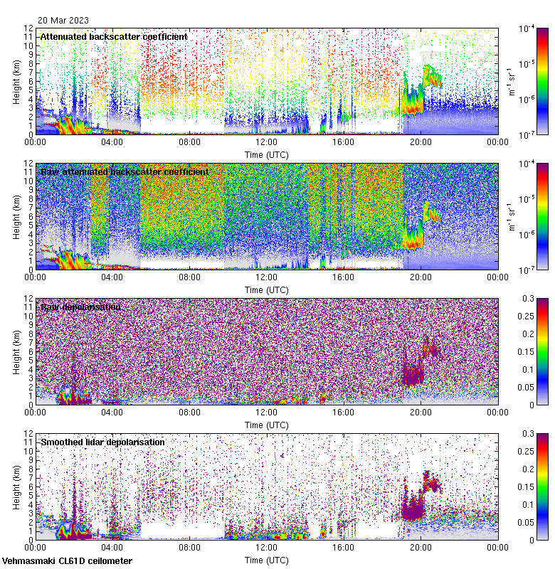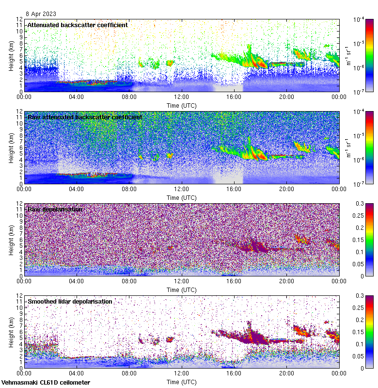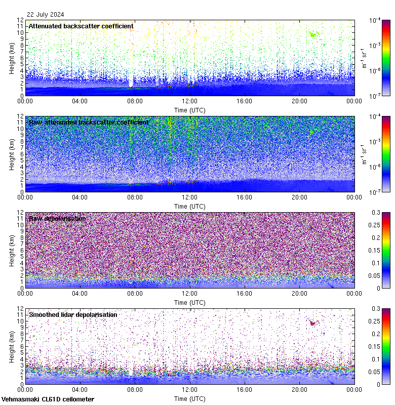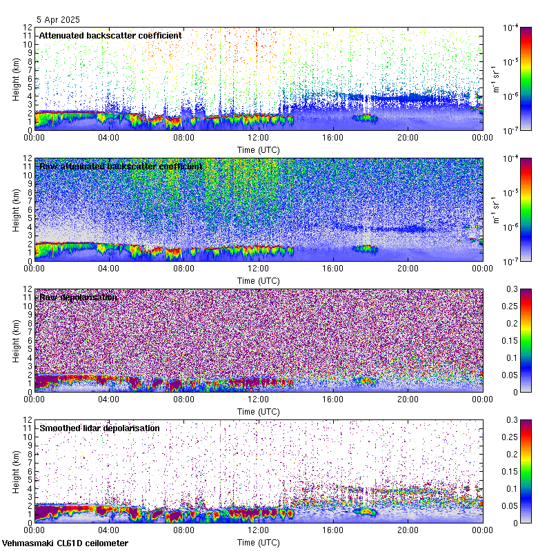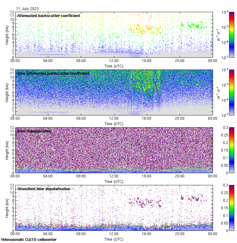 This page contains links to the daily Vehmasmaki Vaisala CL61D ceilometer images created at Kumpula.