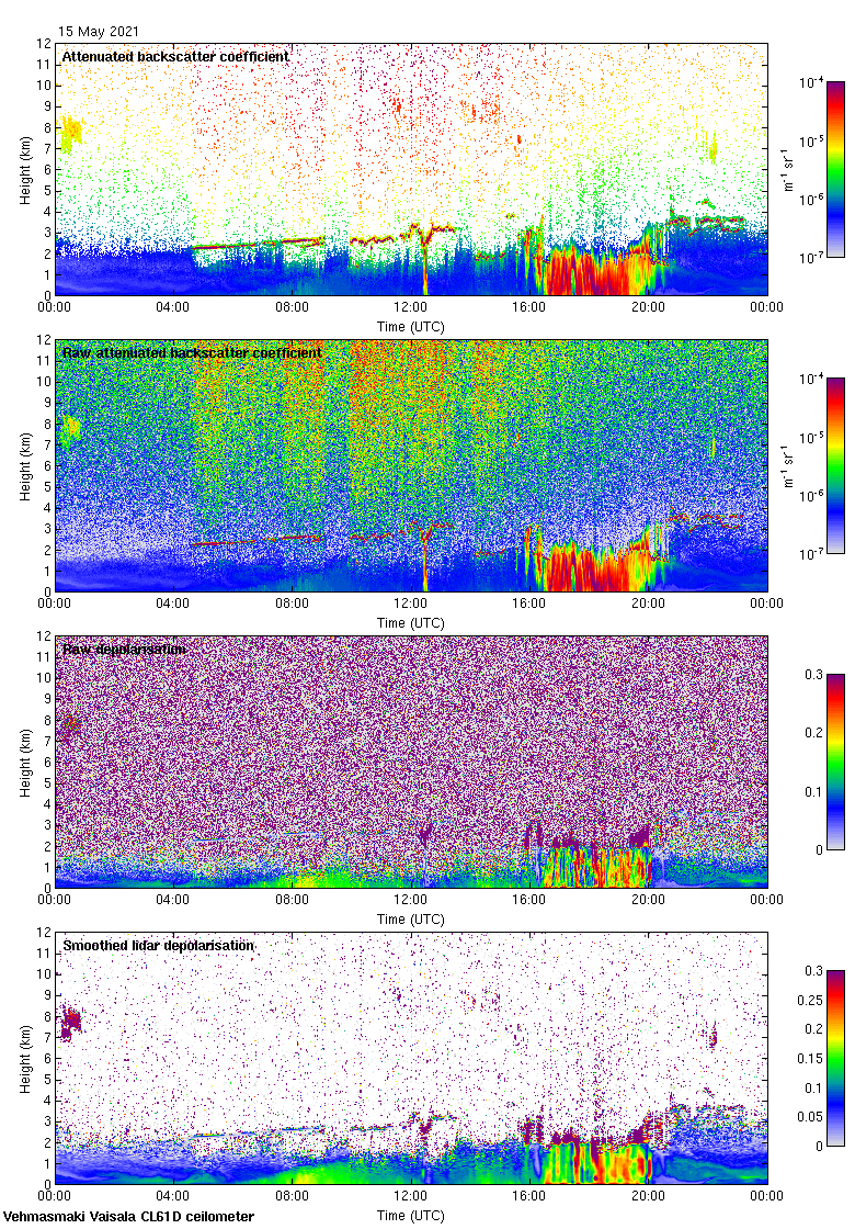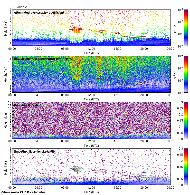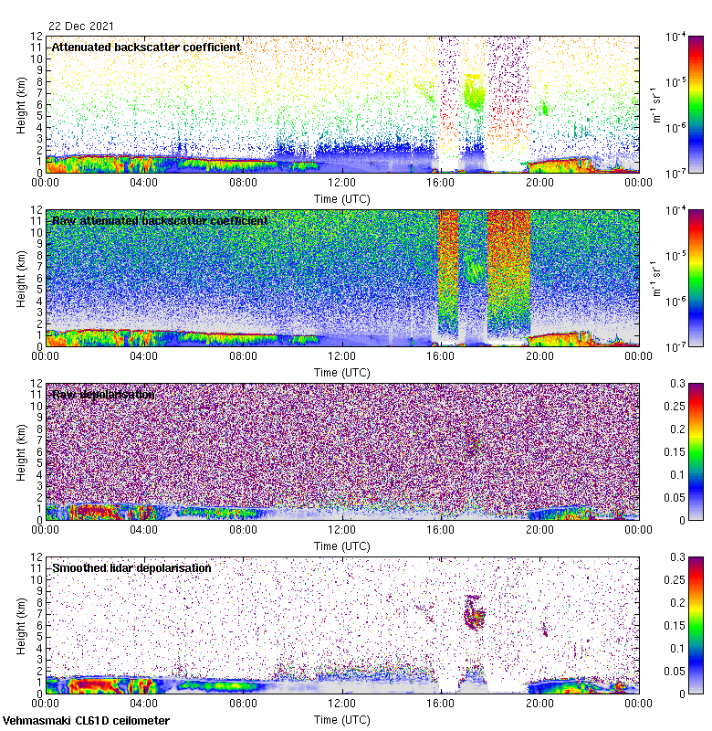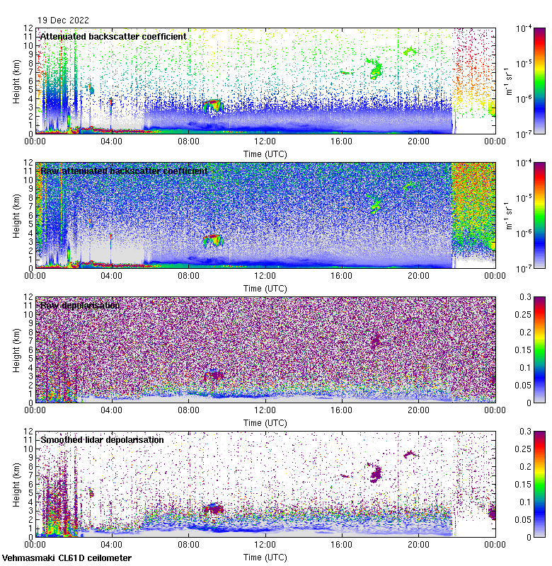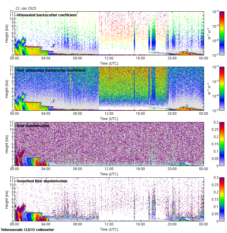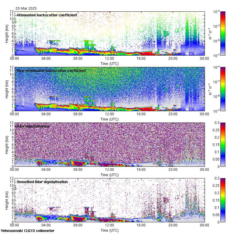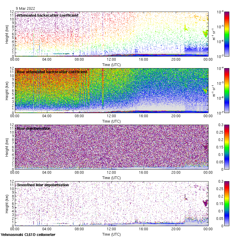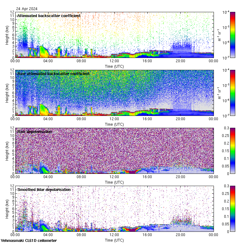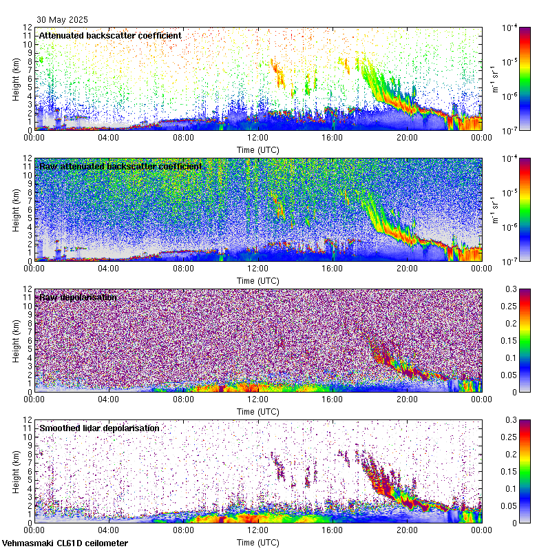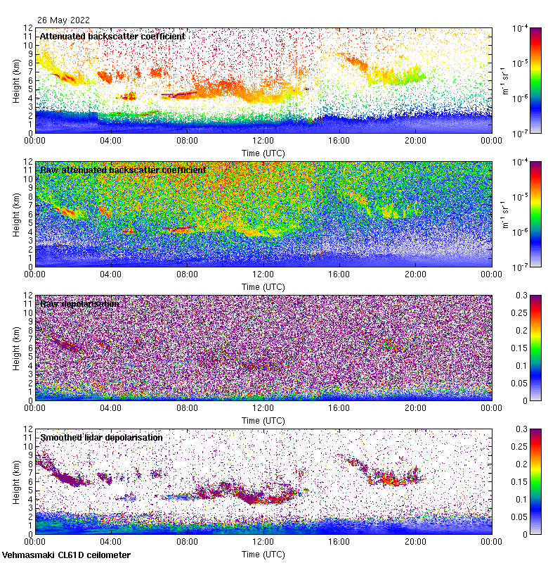 This page contains links to the daily Vehmasmaki Vaisala CL61D ceilometer images created at Kumpula.