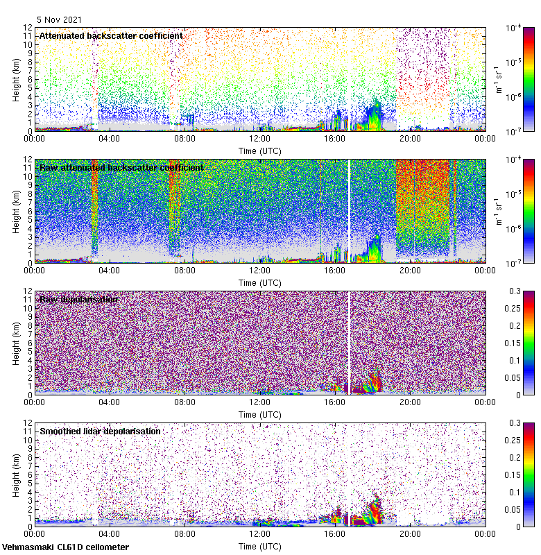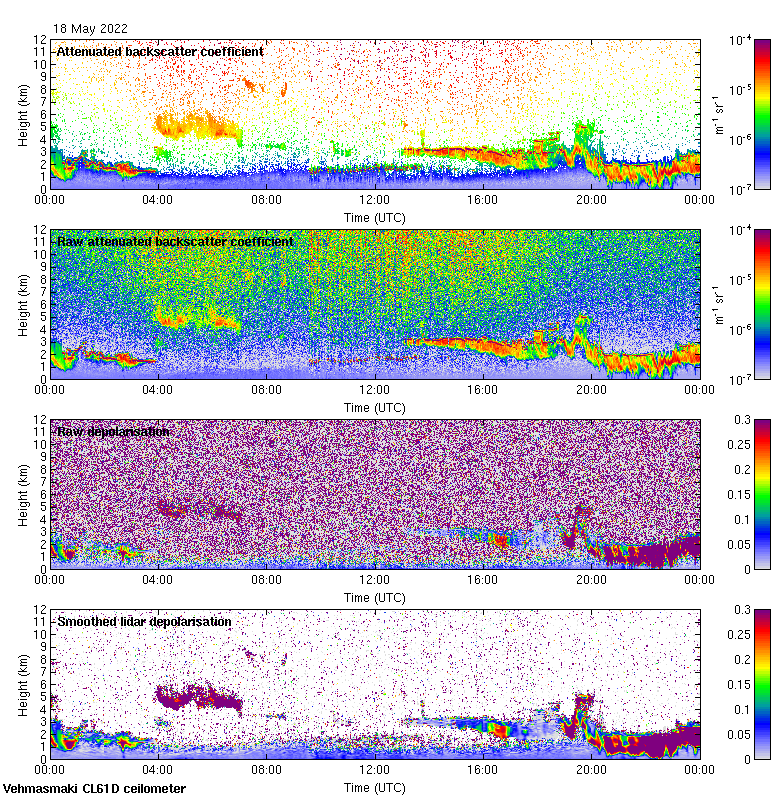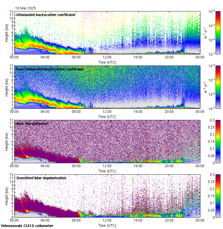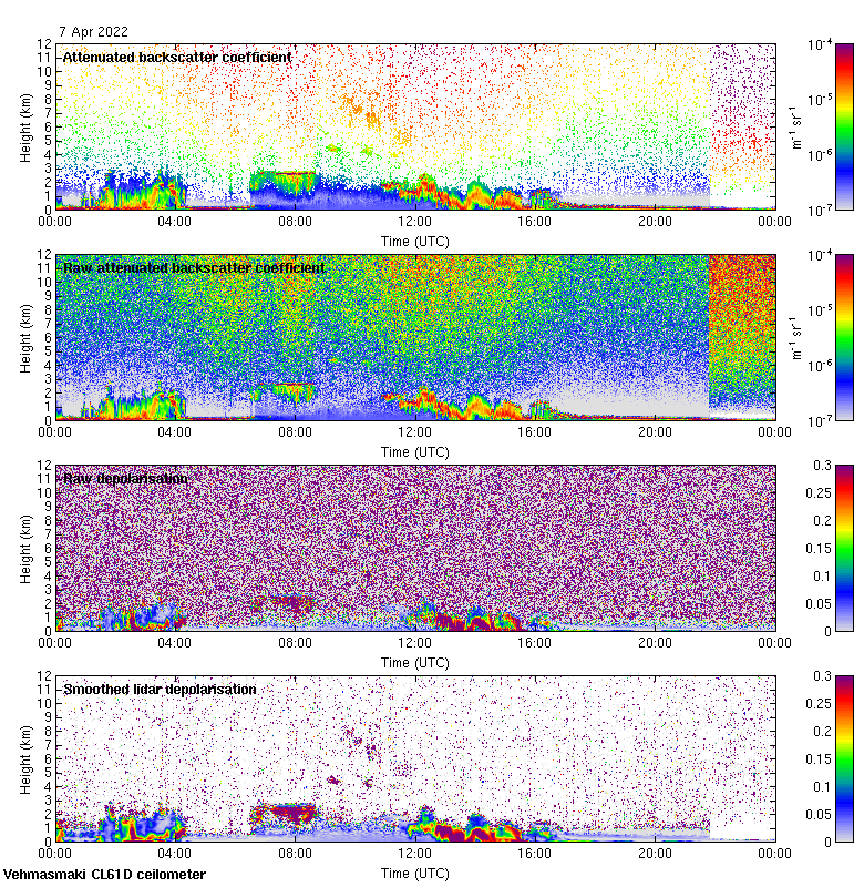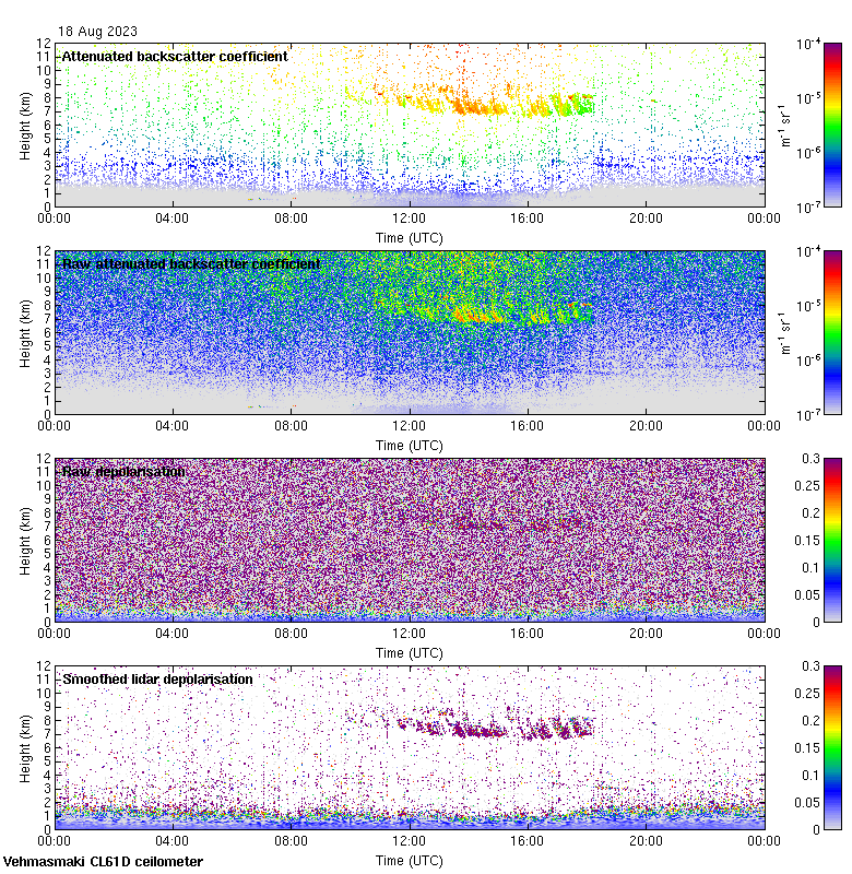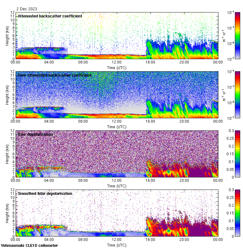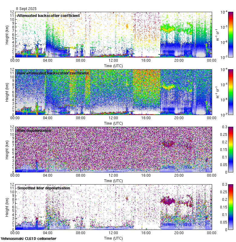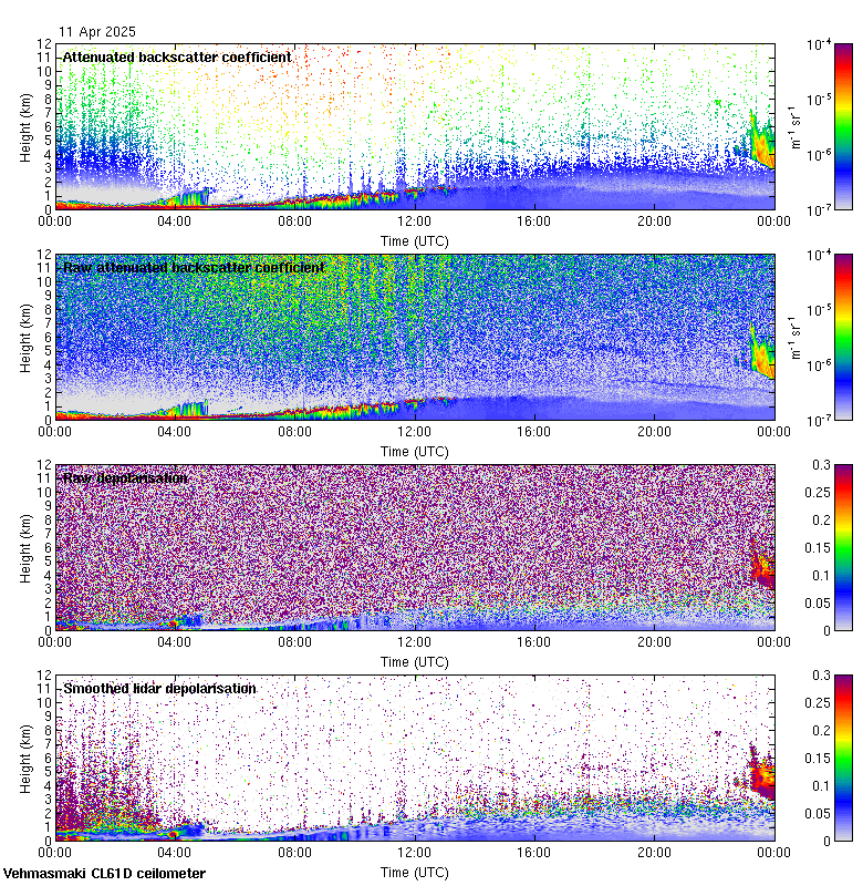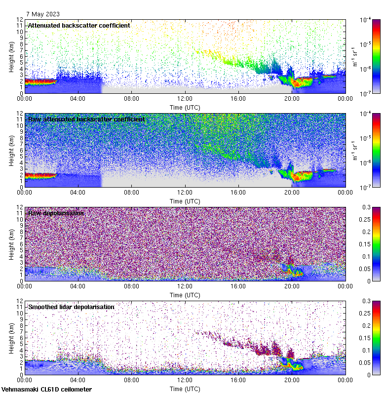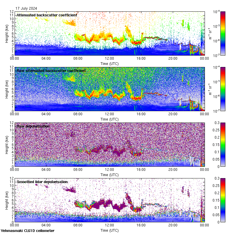 This page contains links to the daily Vehmasmaki Vaisala CL61D ceilometer images created at Kumpula.