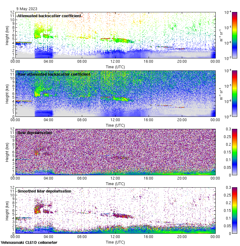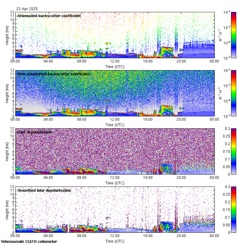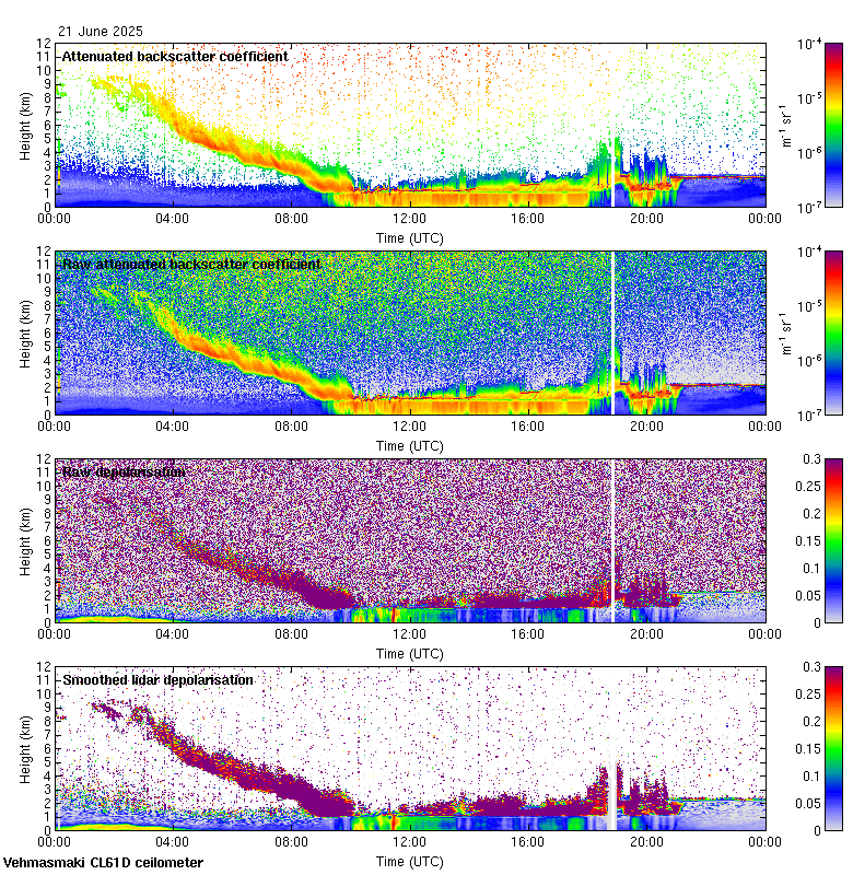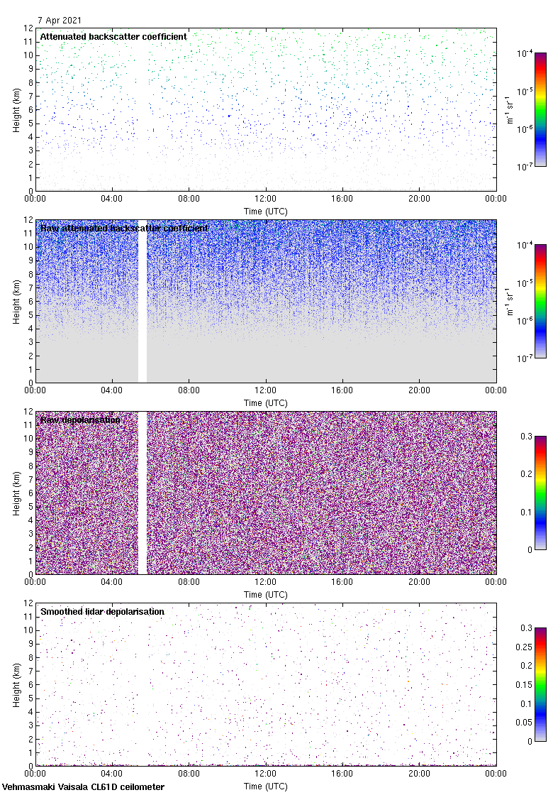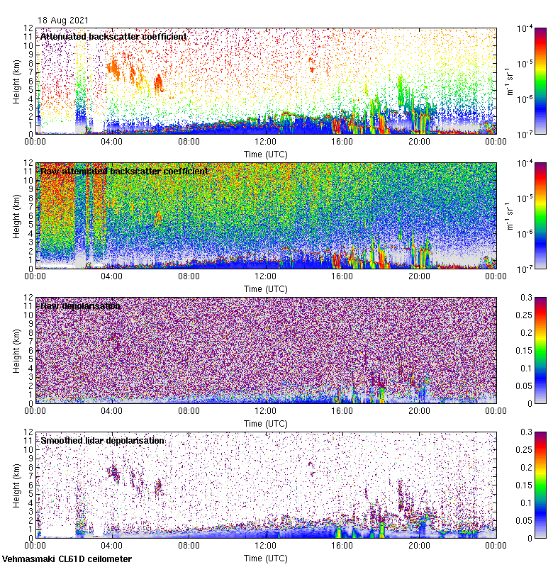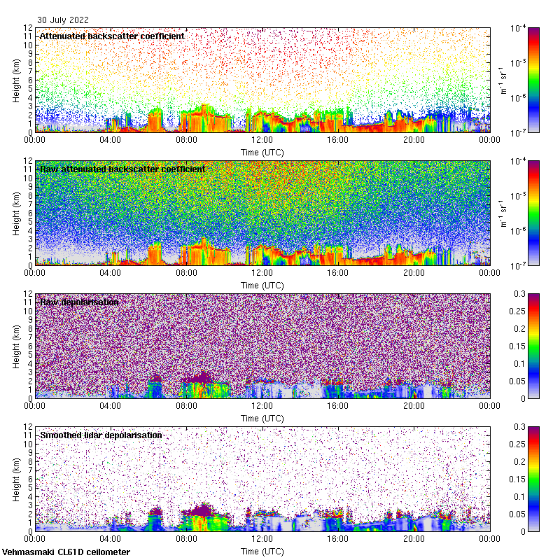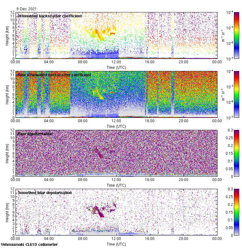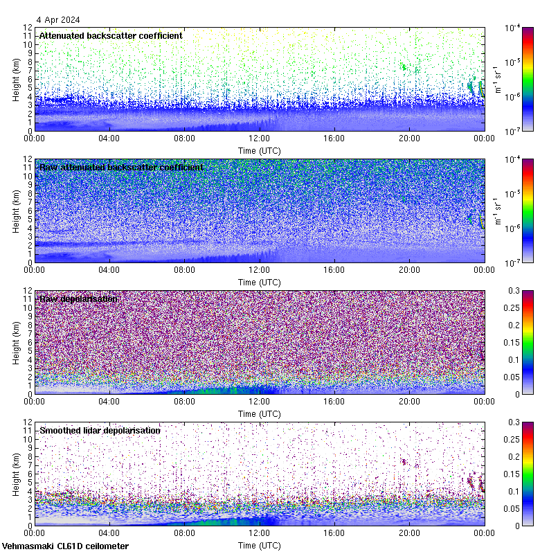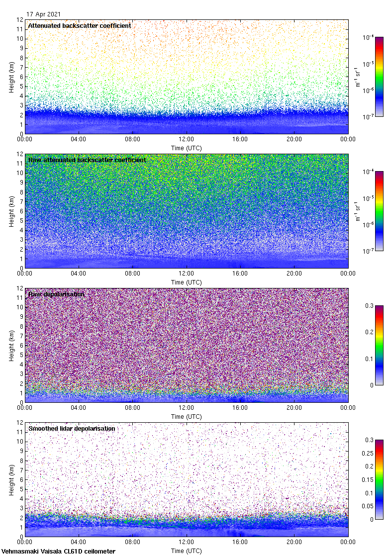 This page contains links to the daily Vehmasmaki Vaisala CL61D ceilometer images created at Kumpula.